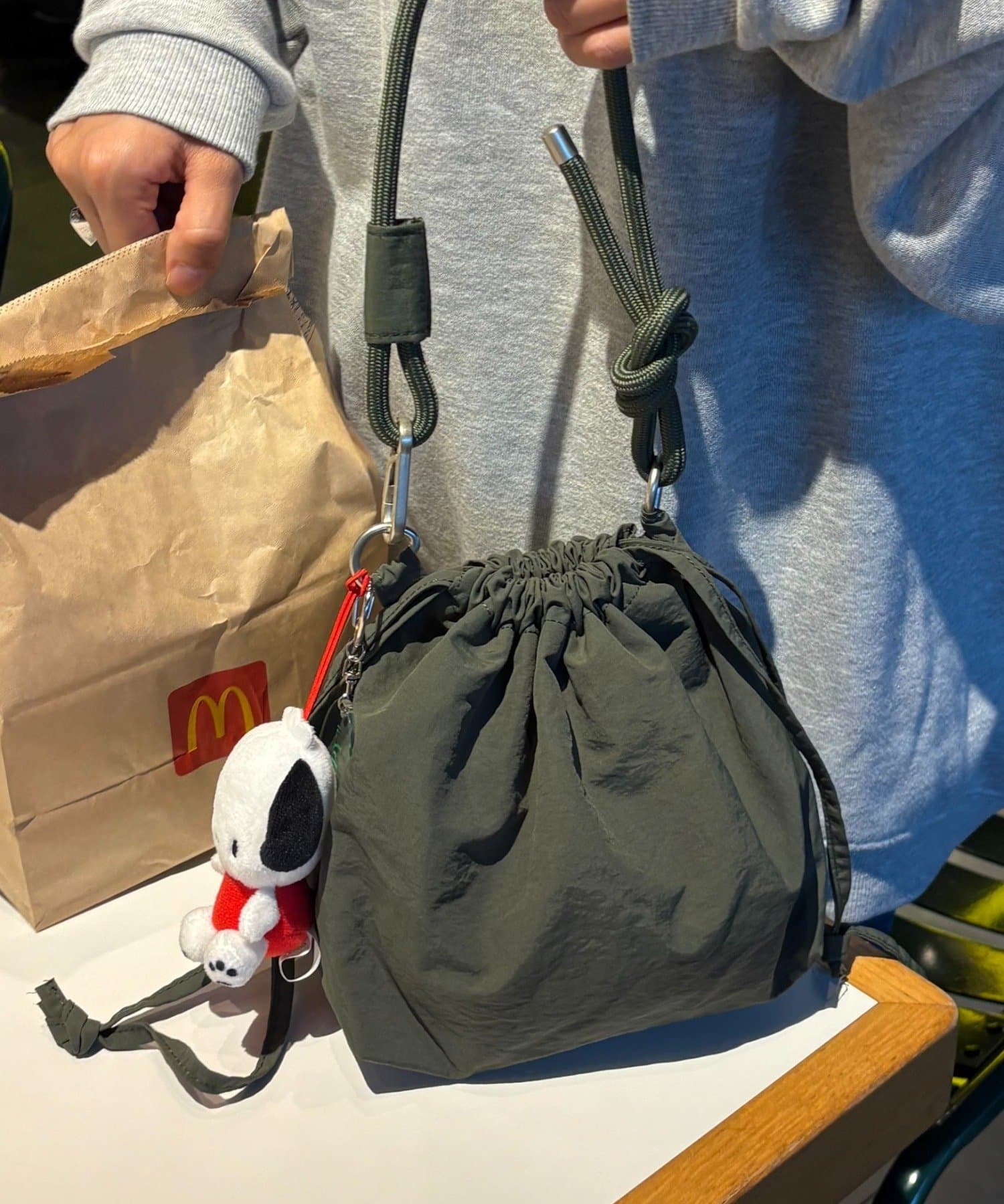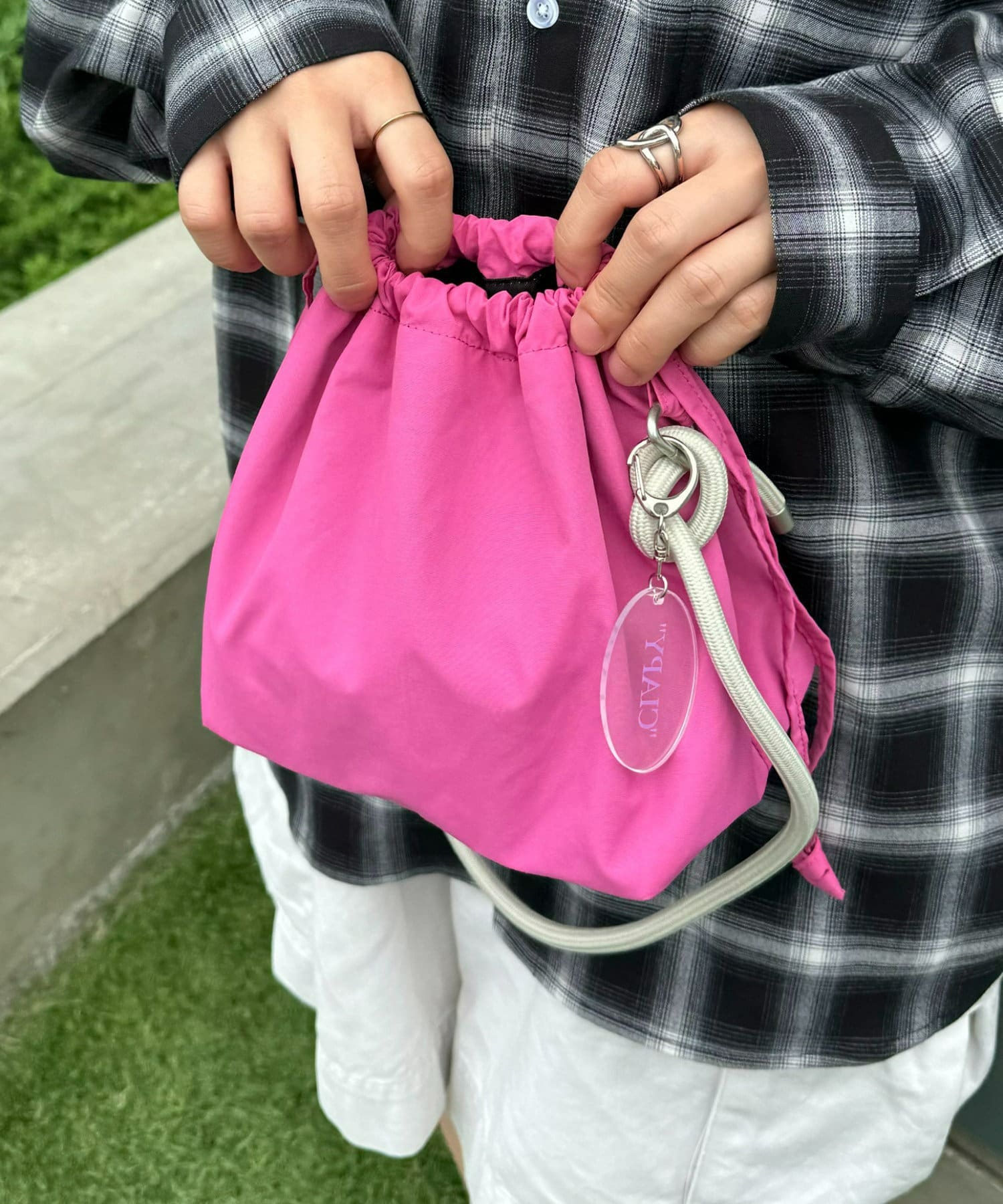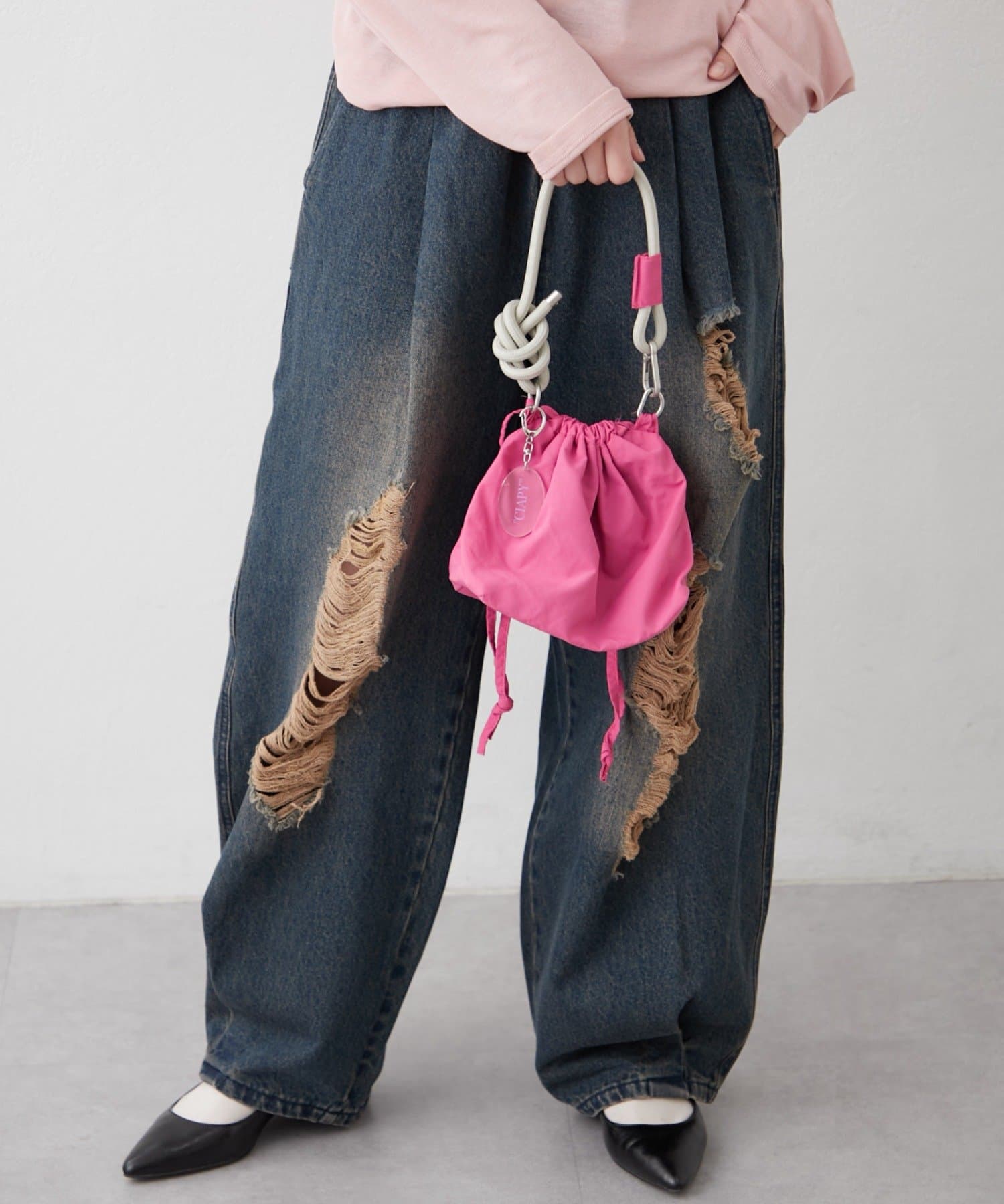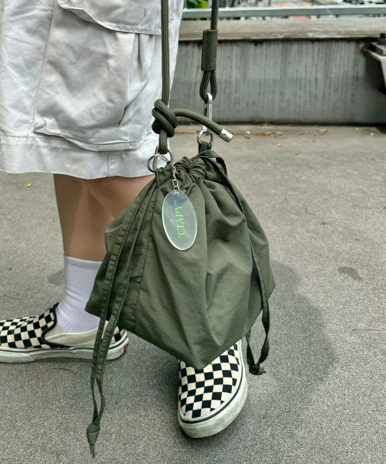 トレンド感のある巾着バッグを