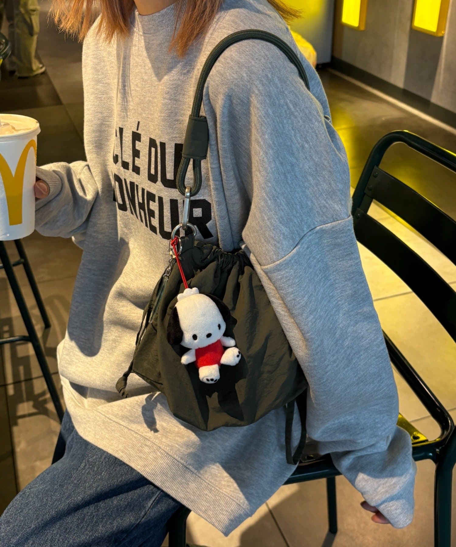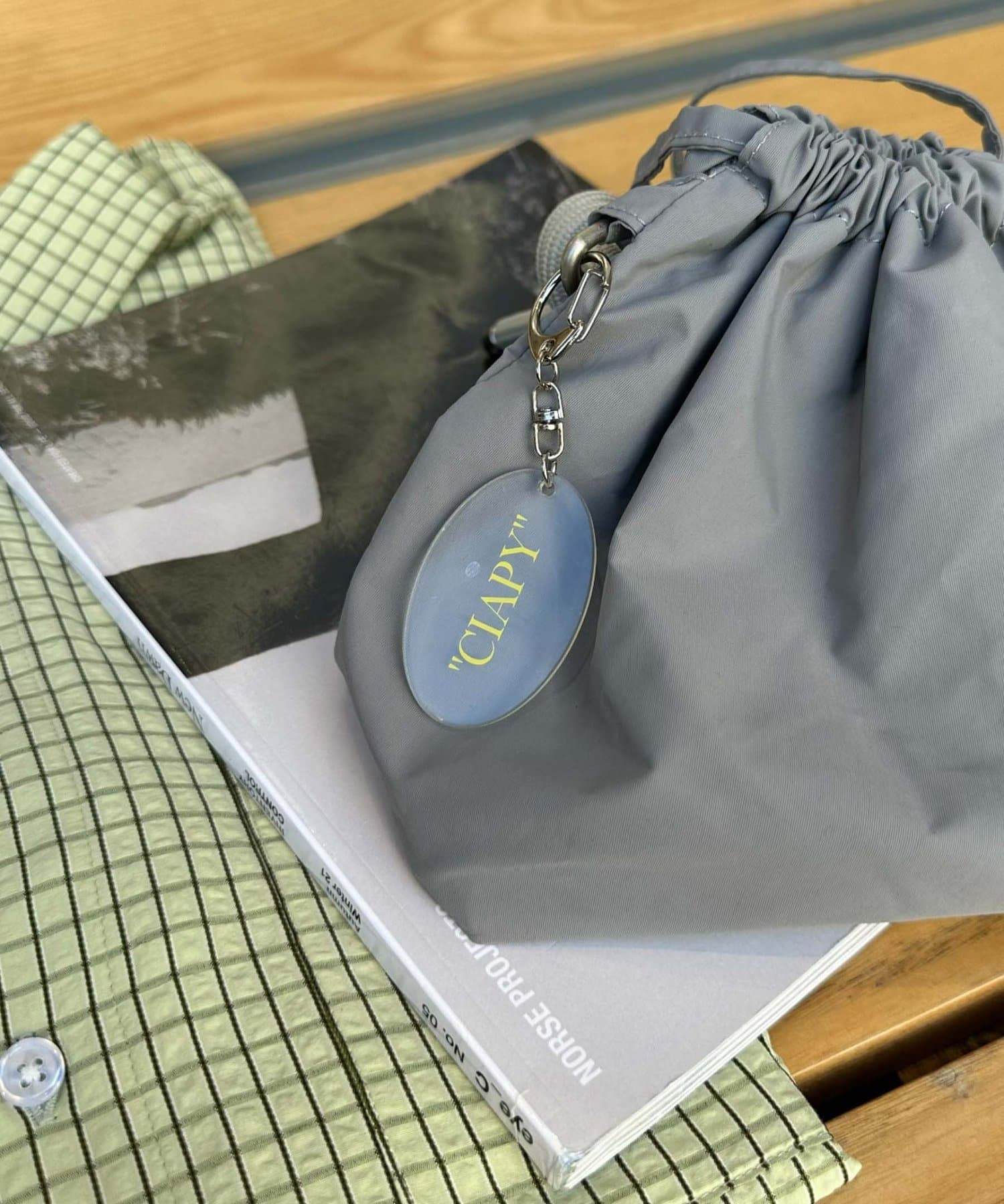 バッグ(グレー)→キーホルダー(イエロー)