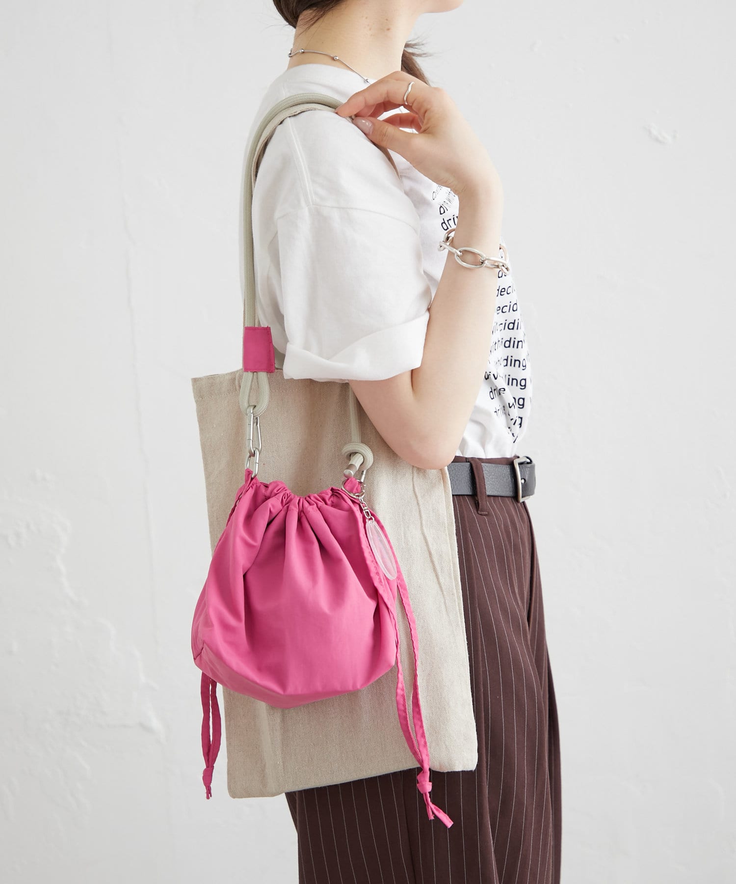 シンプルなデザインの巾着バッグとしてもお楽しみいただけます。