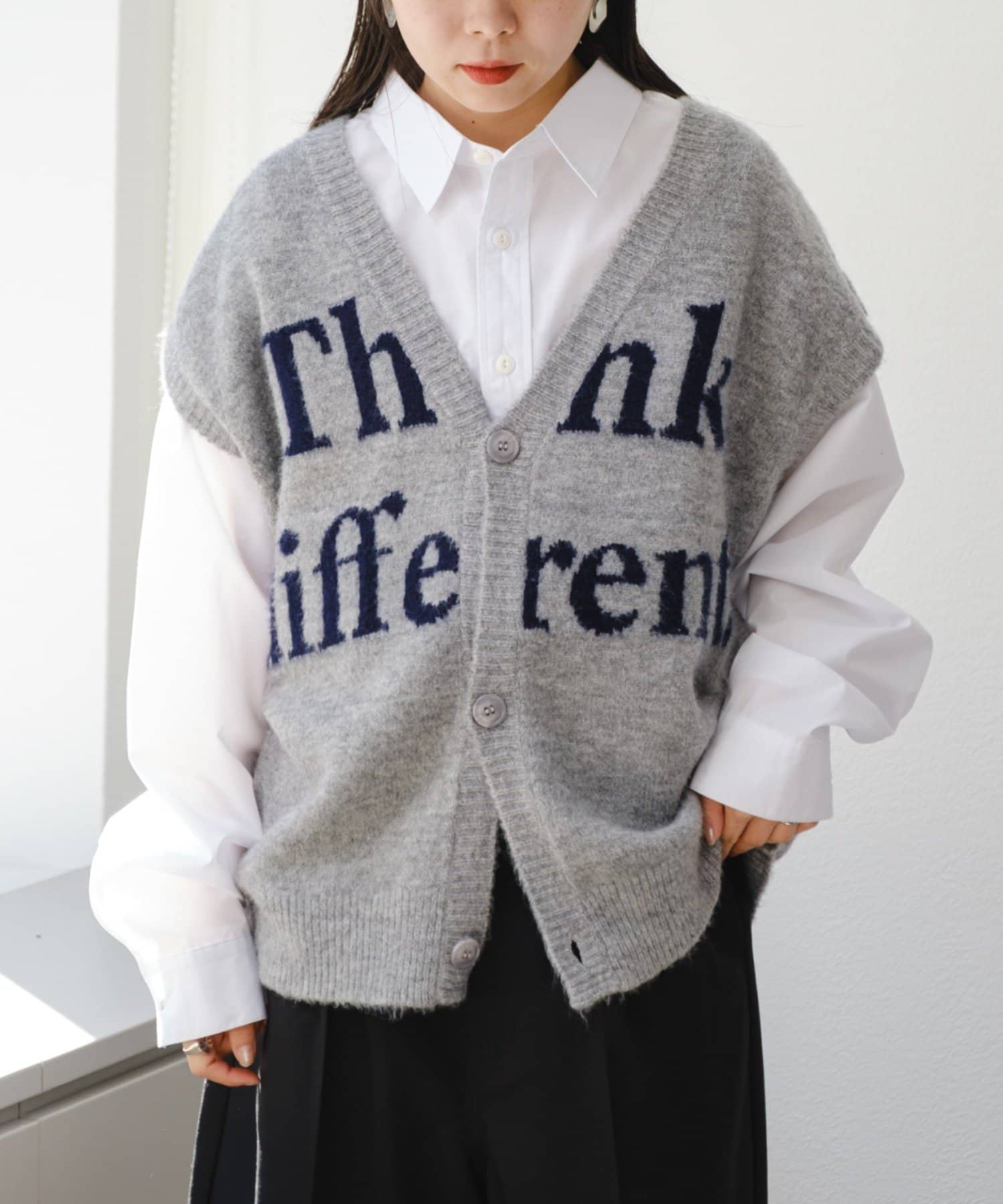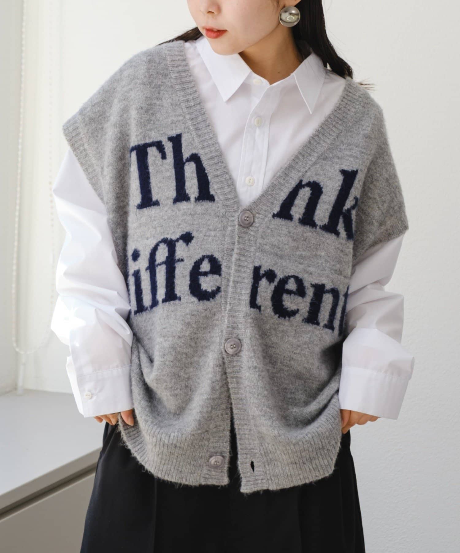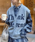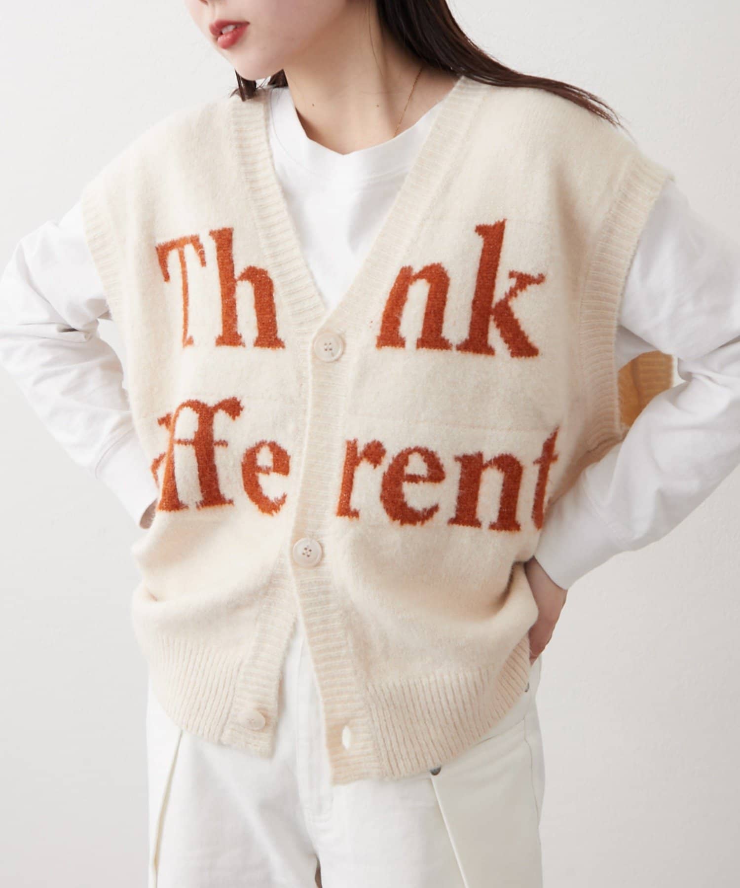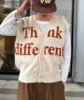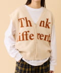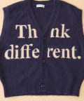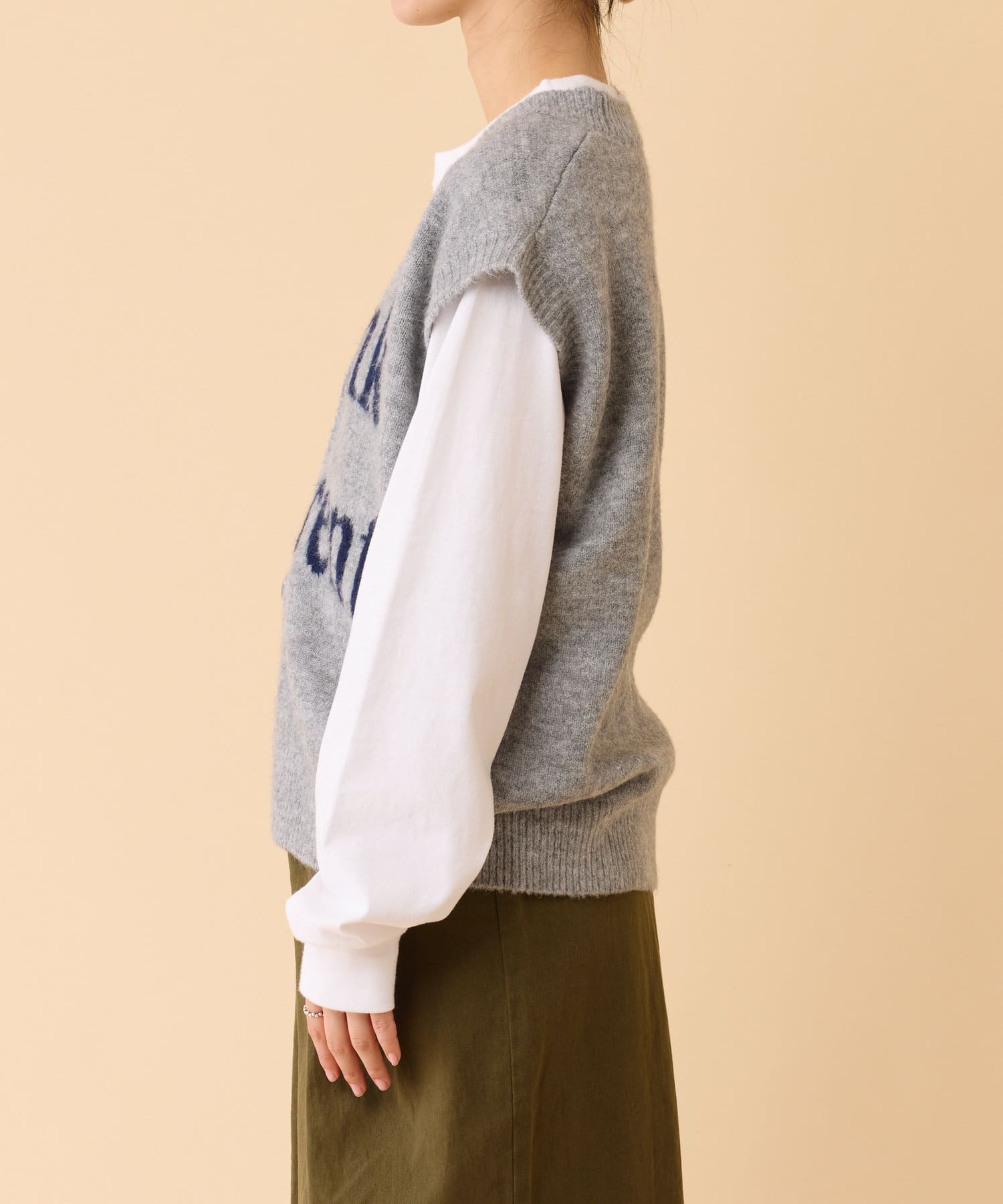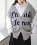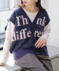 フロントのロゴデザインが目を引くニットベストです。
