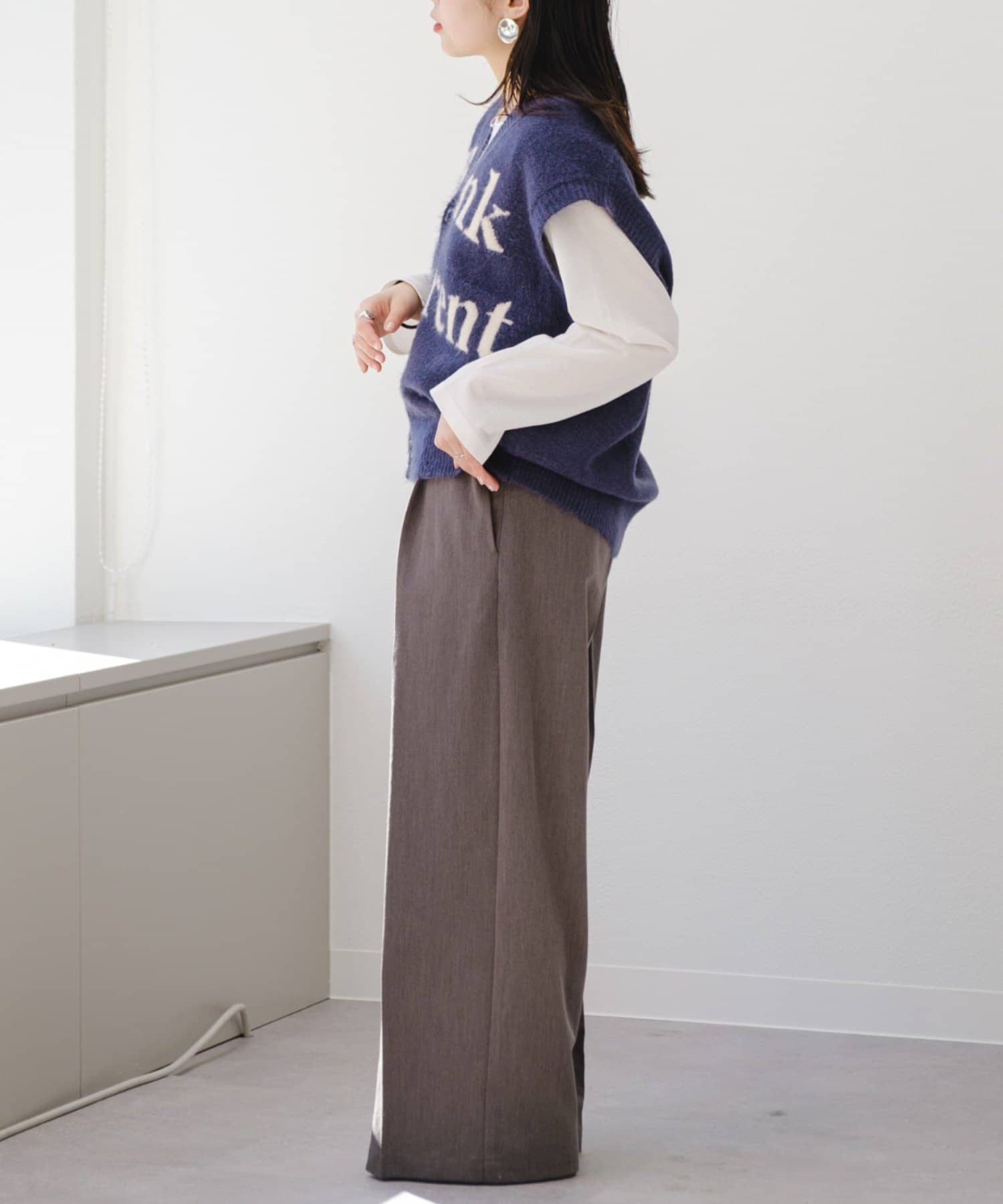 程よく身幅にゆとりを持たせたサイジングで、一枚着でも重ね着でも着やすい小さすぎないサイズ感◎