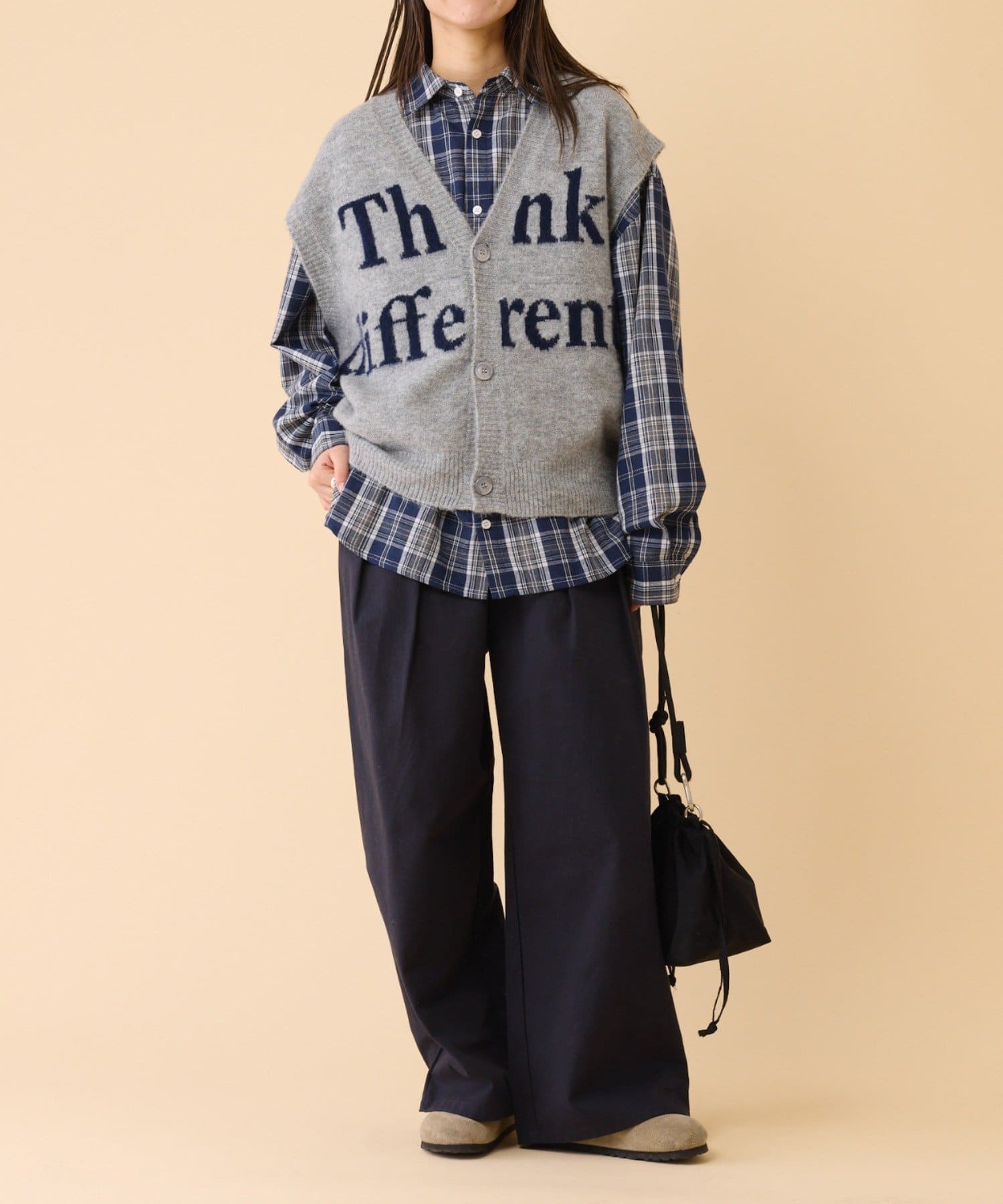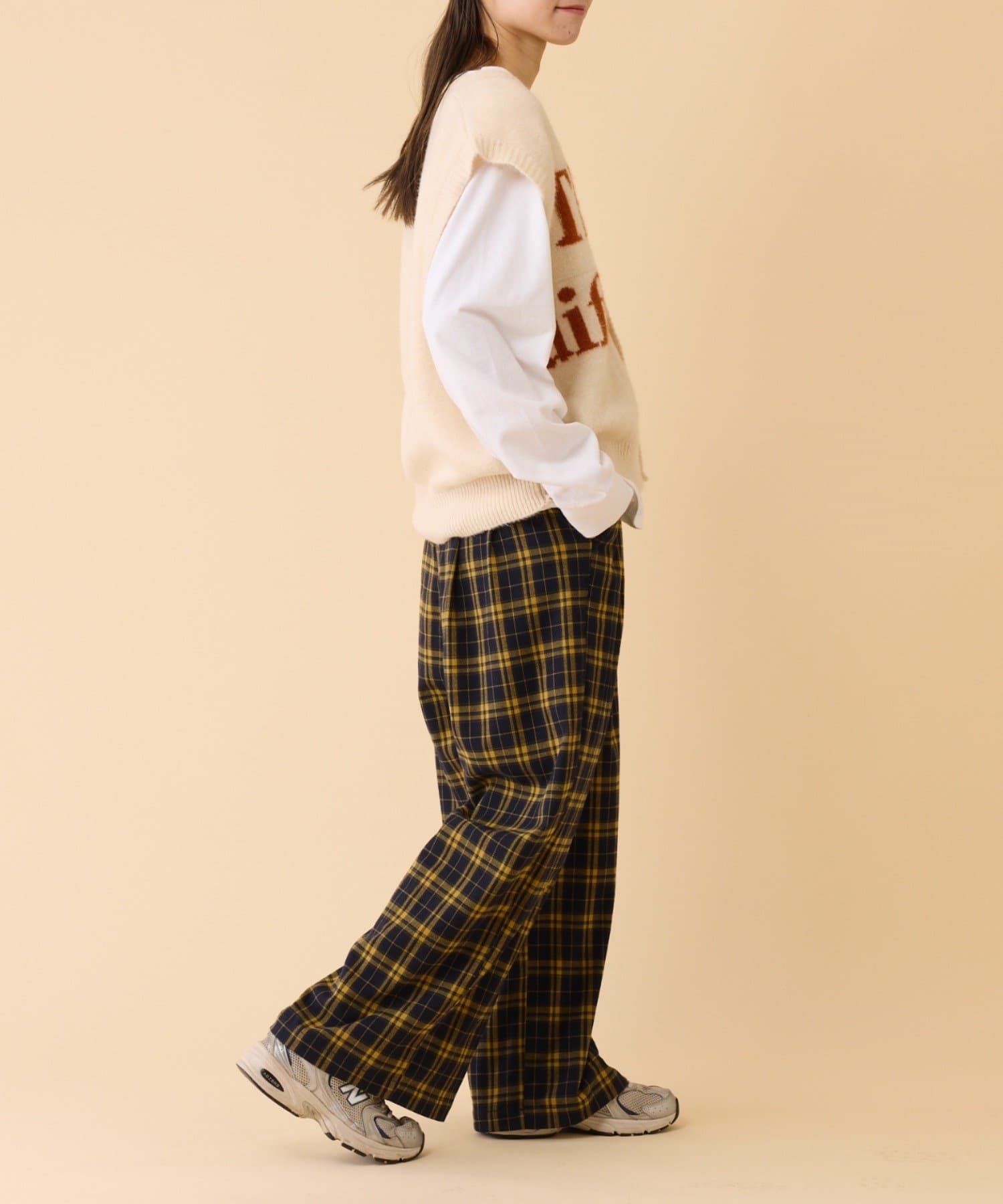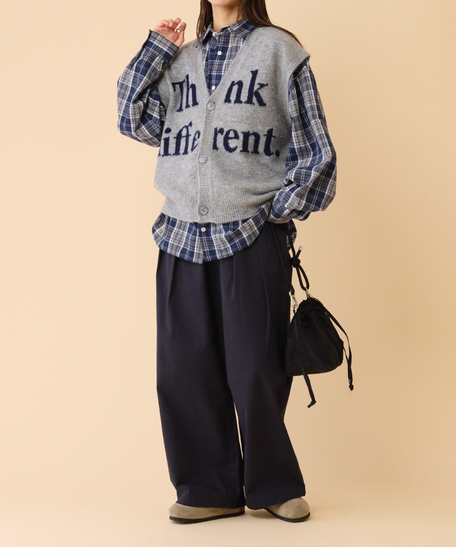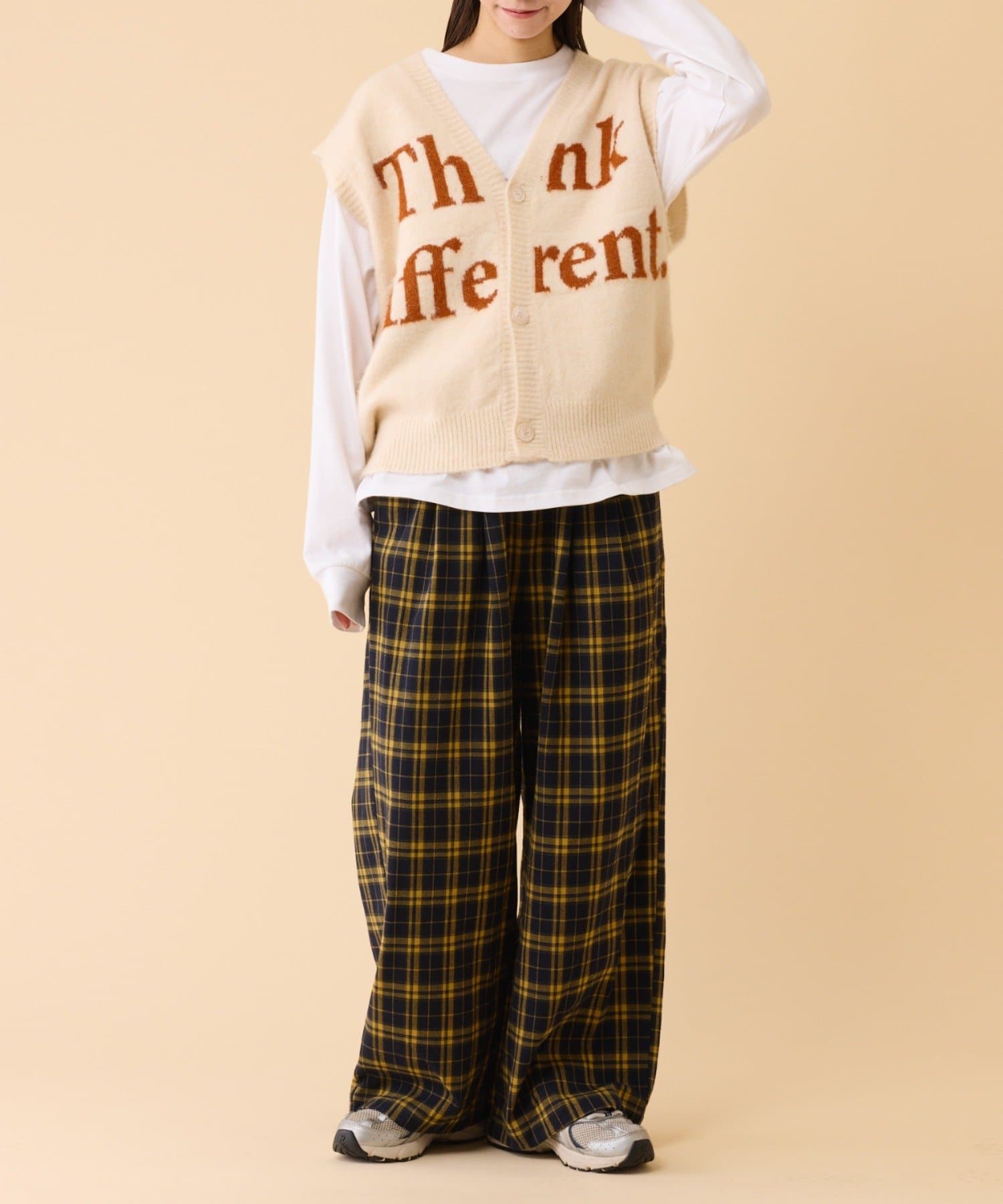 シアーアイテムやチェックシャツと合わせた上級者コーデもおすすめです。