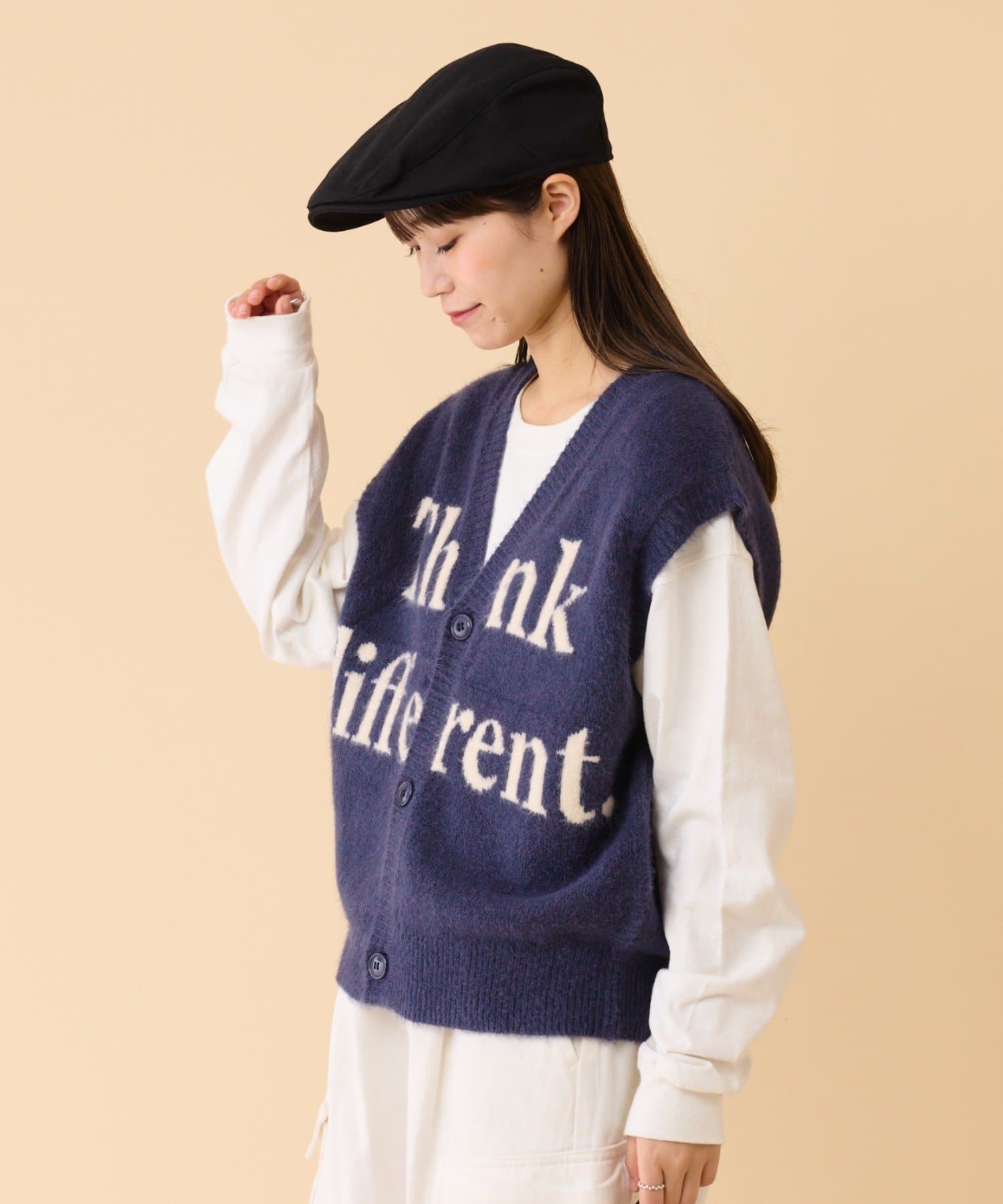 【CIAOPANIC TYPY】ロゴジャガード前開きニットベスト