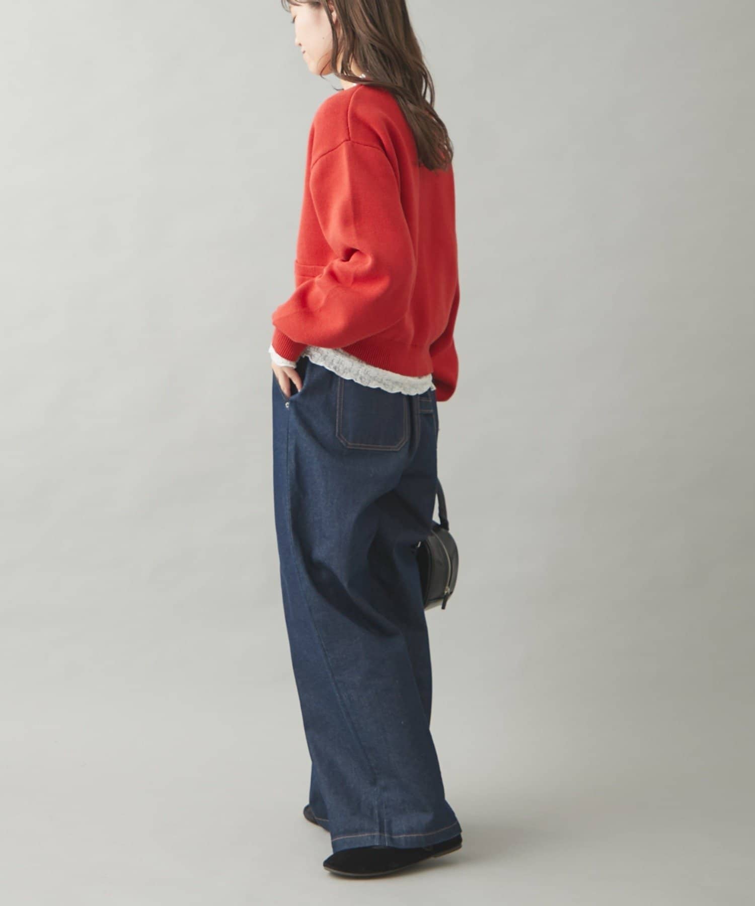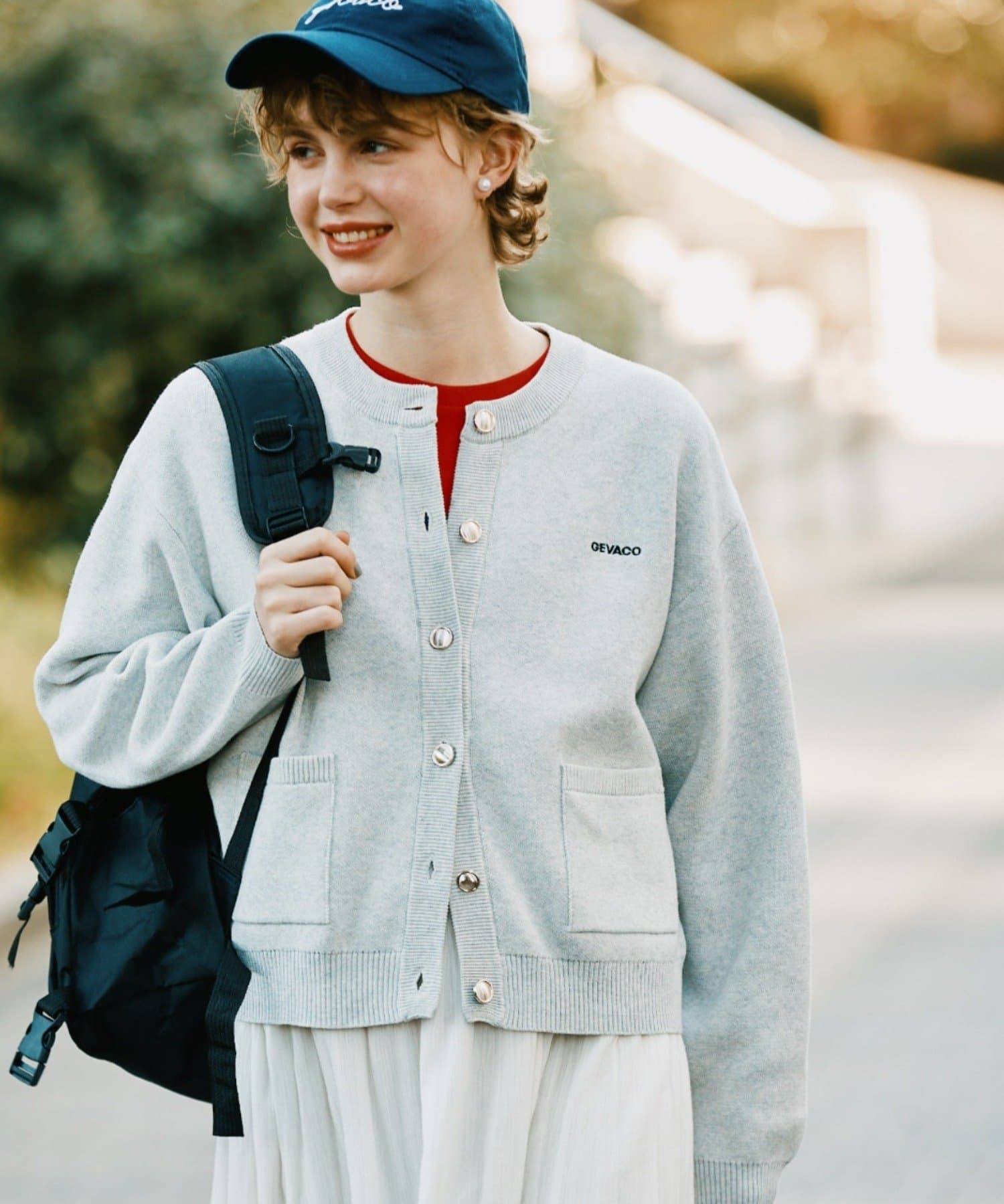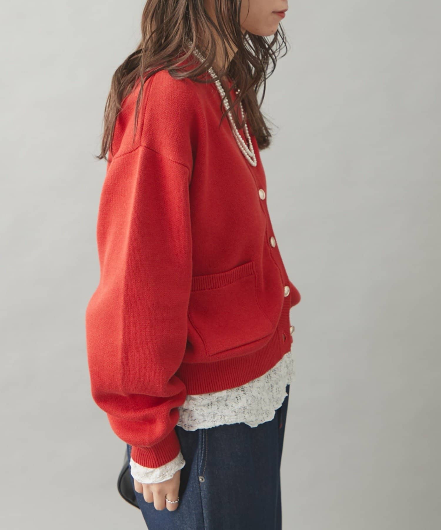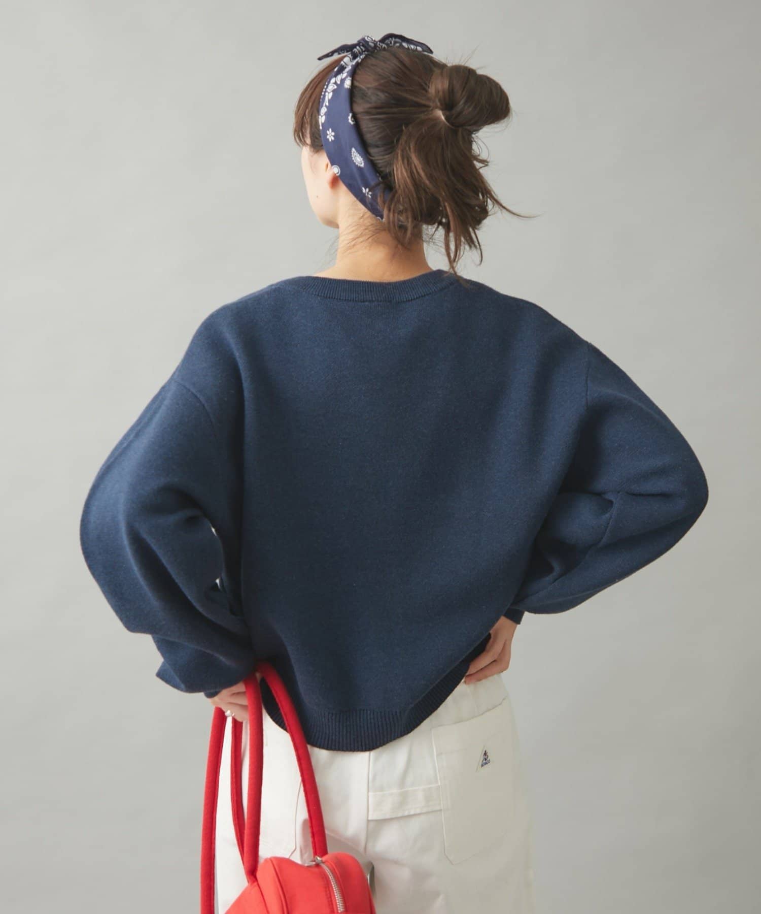 カーディガンとしてロゴTやブラウス、キャミソールの上に羽織るのはもちろん、ボタンを留めてプルオーバーとしての着用も◎
