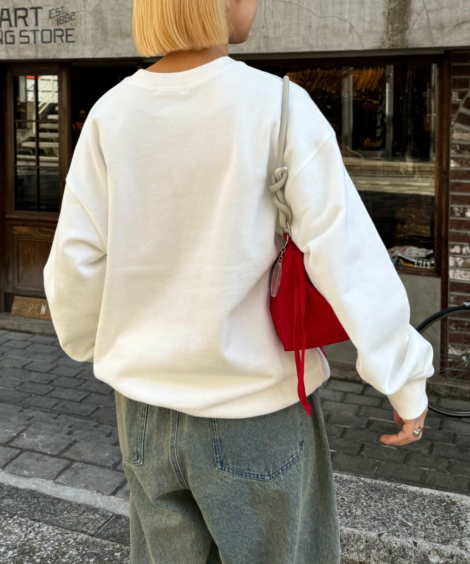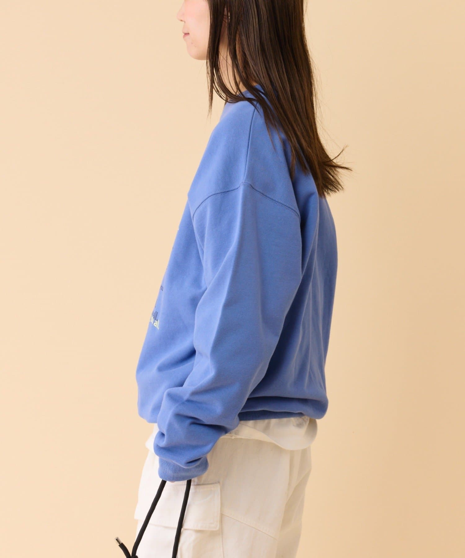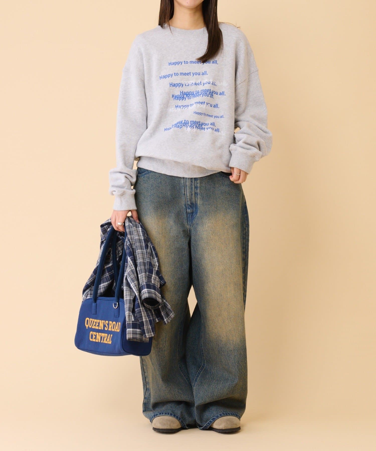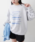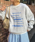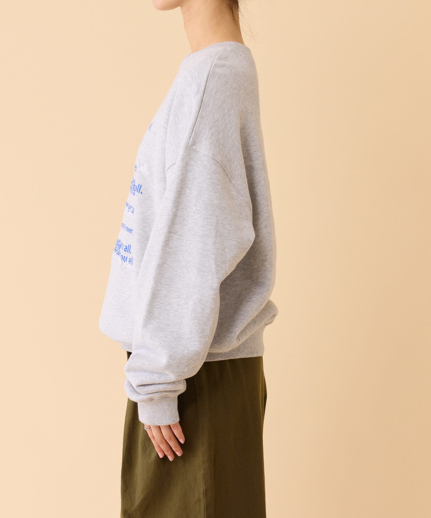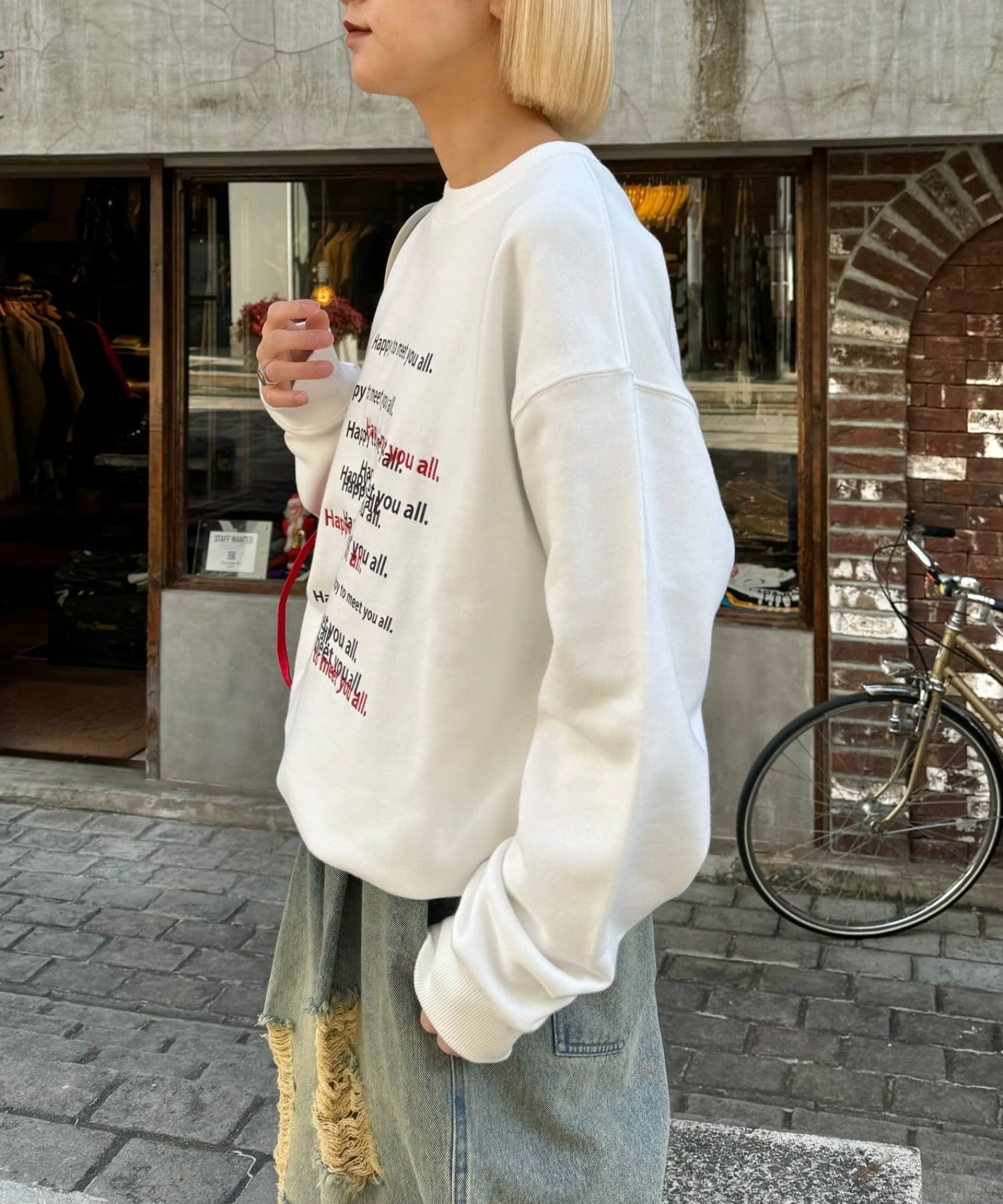 オーバーサイズのスウェットに存在感のあるメッセージプリントと刺繍をランダムに施したスウェットです。