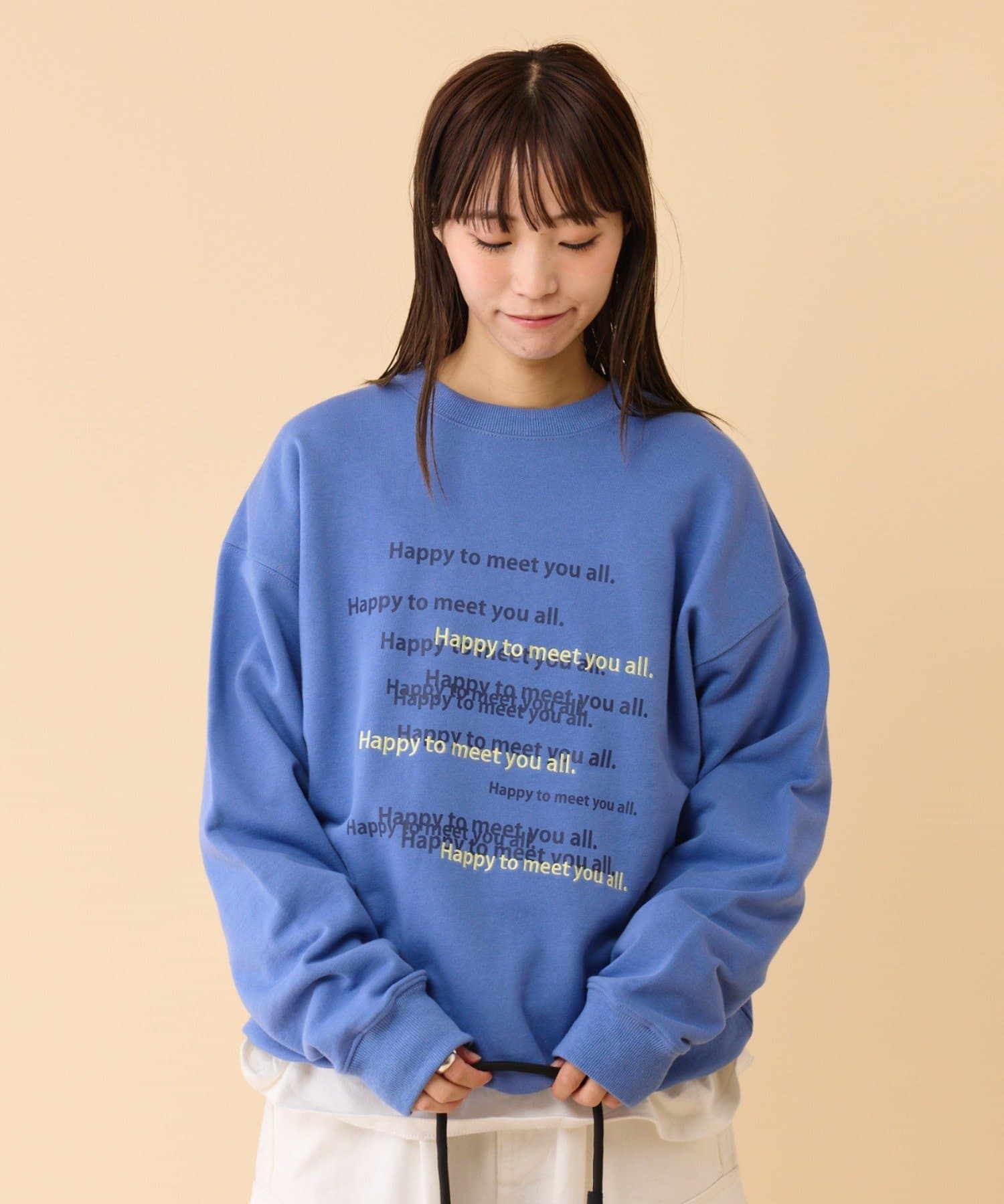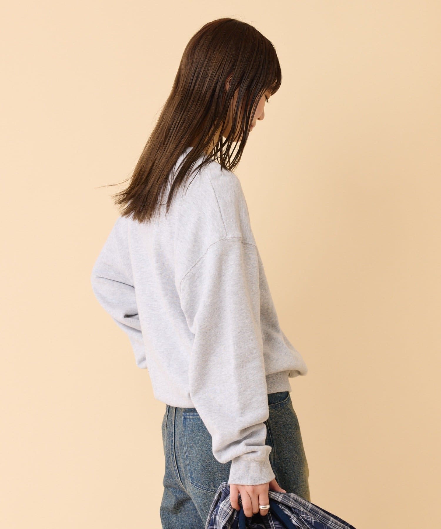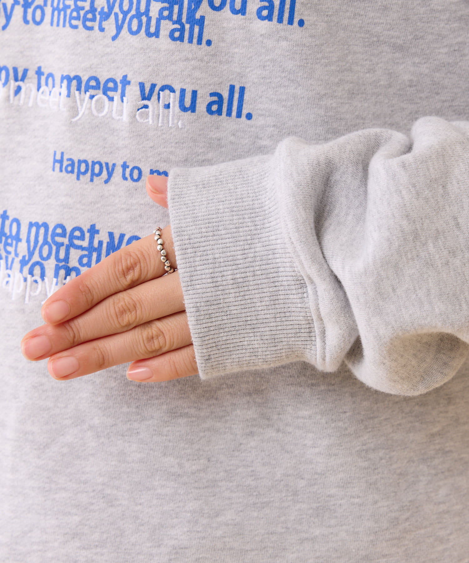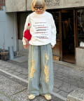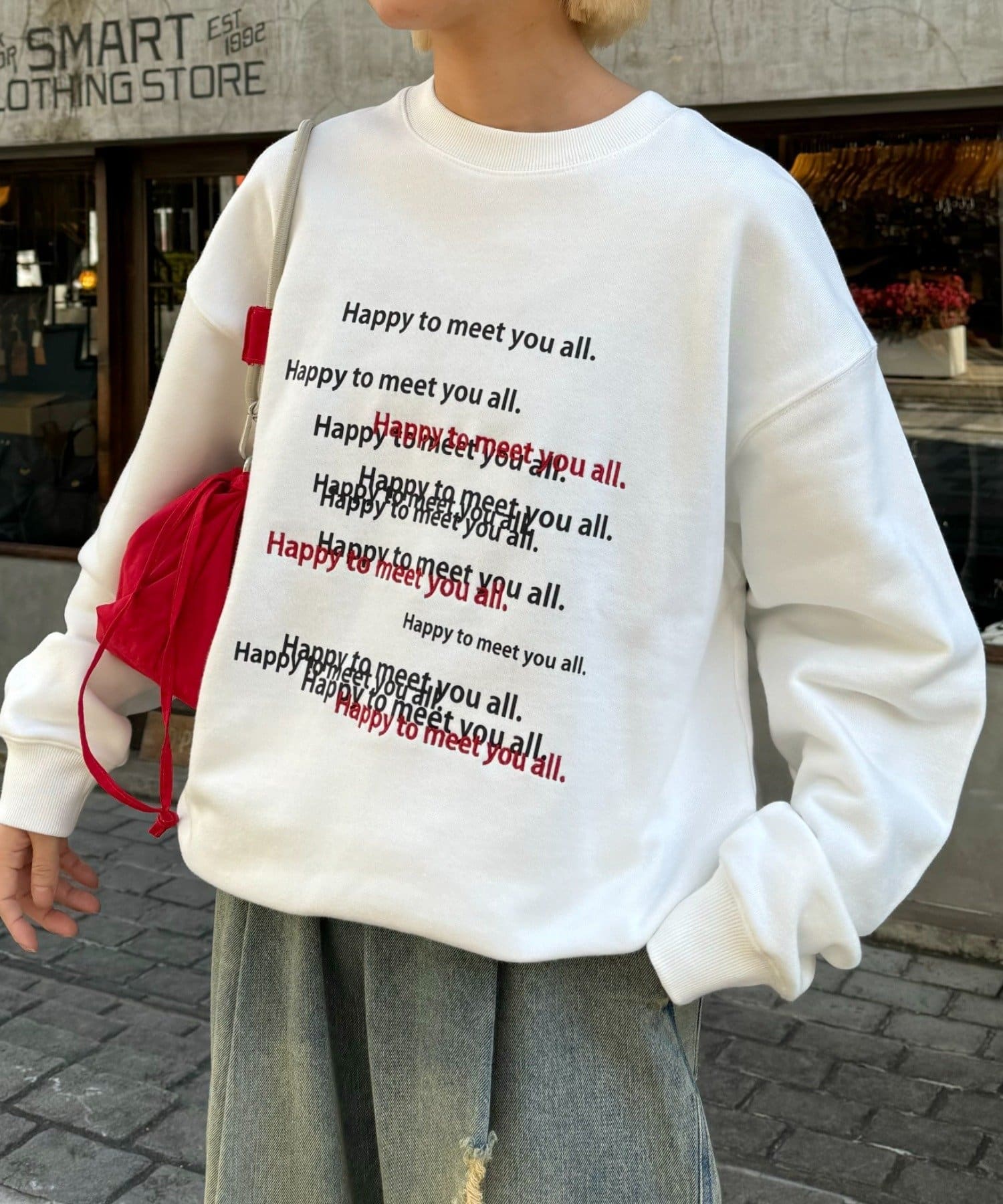 オーバーサイズのスウェットに存在感のあるメッセージプリントと刺繍をランダムに施したスウェットです。