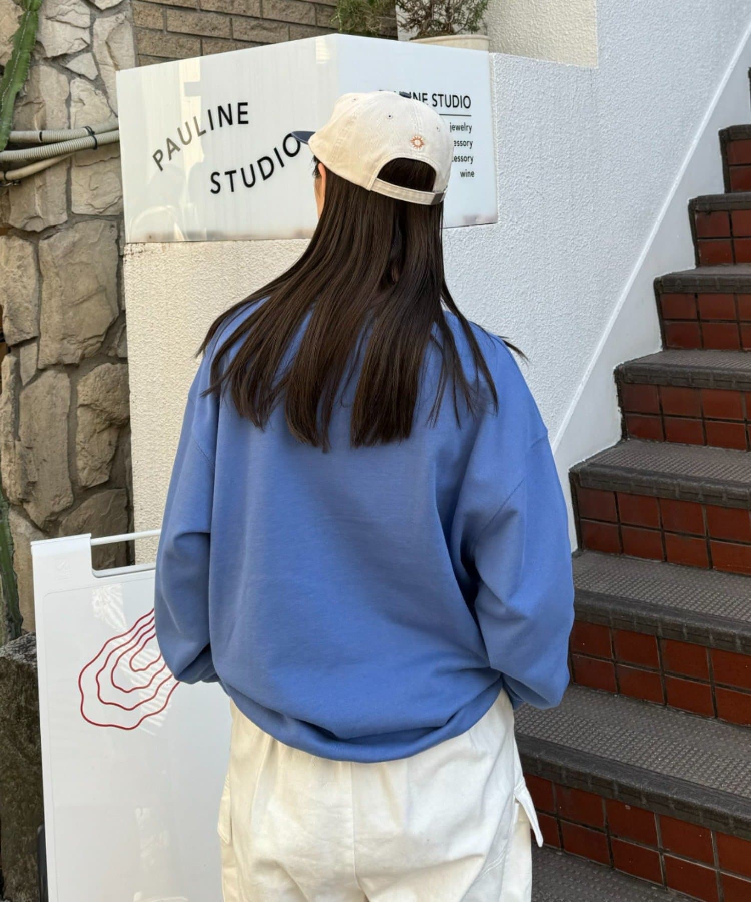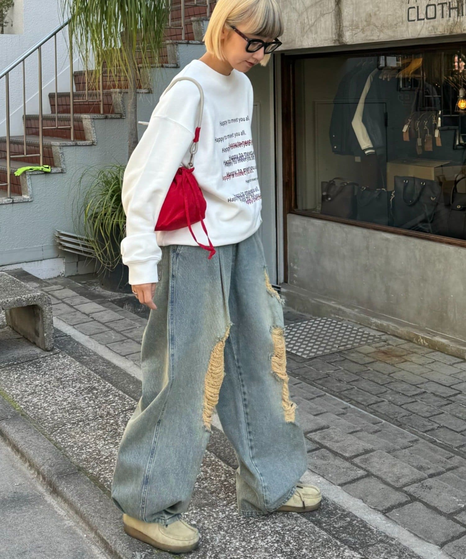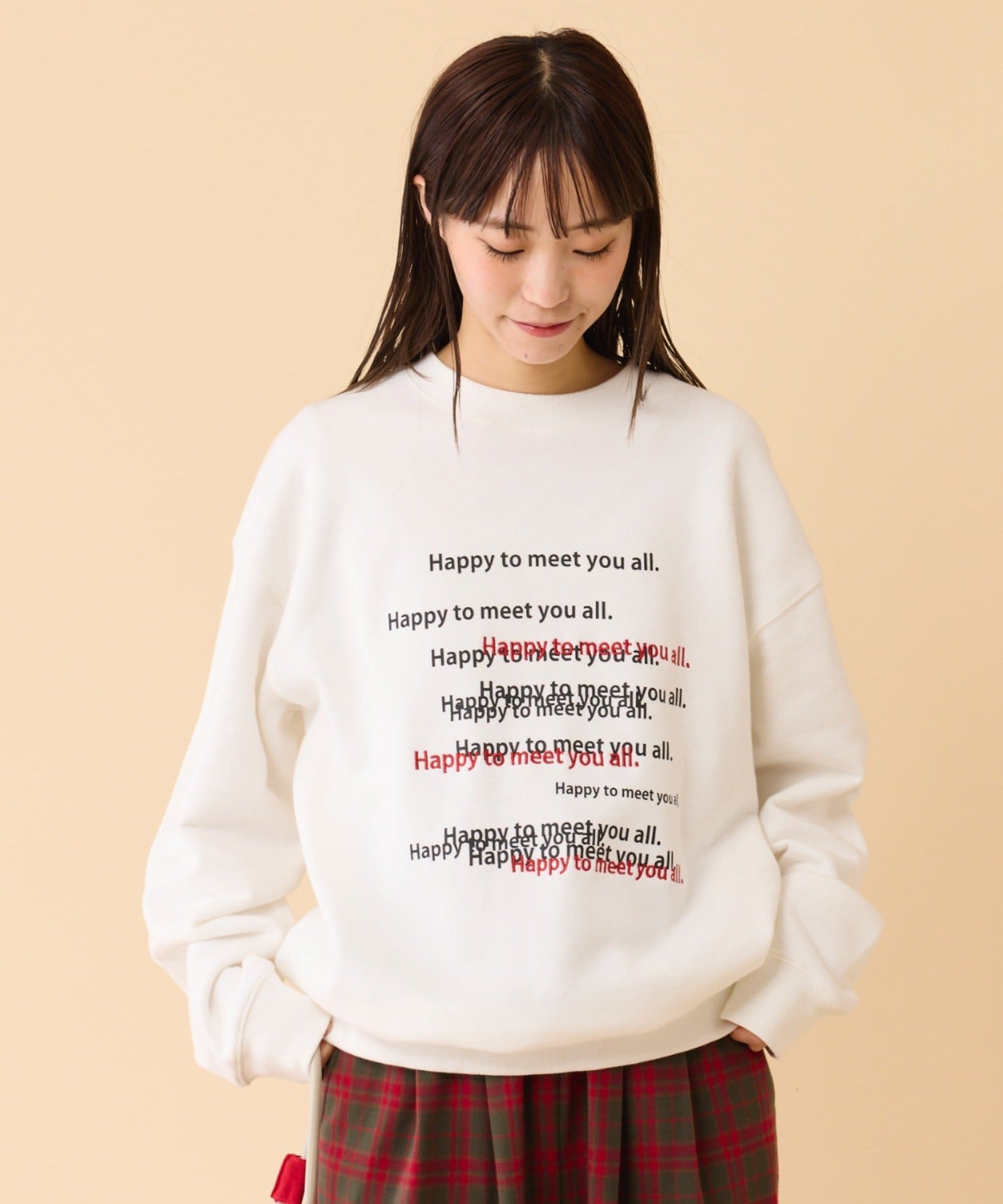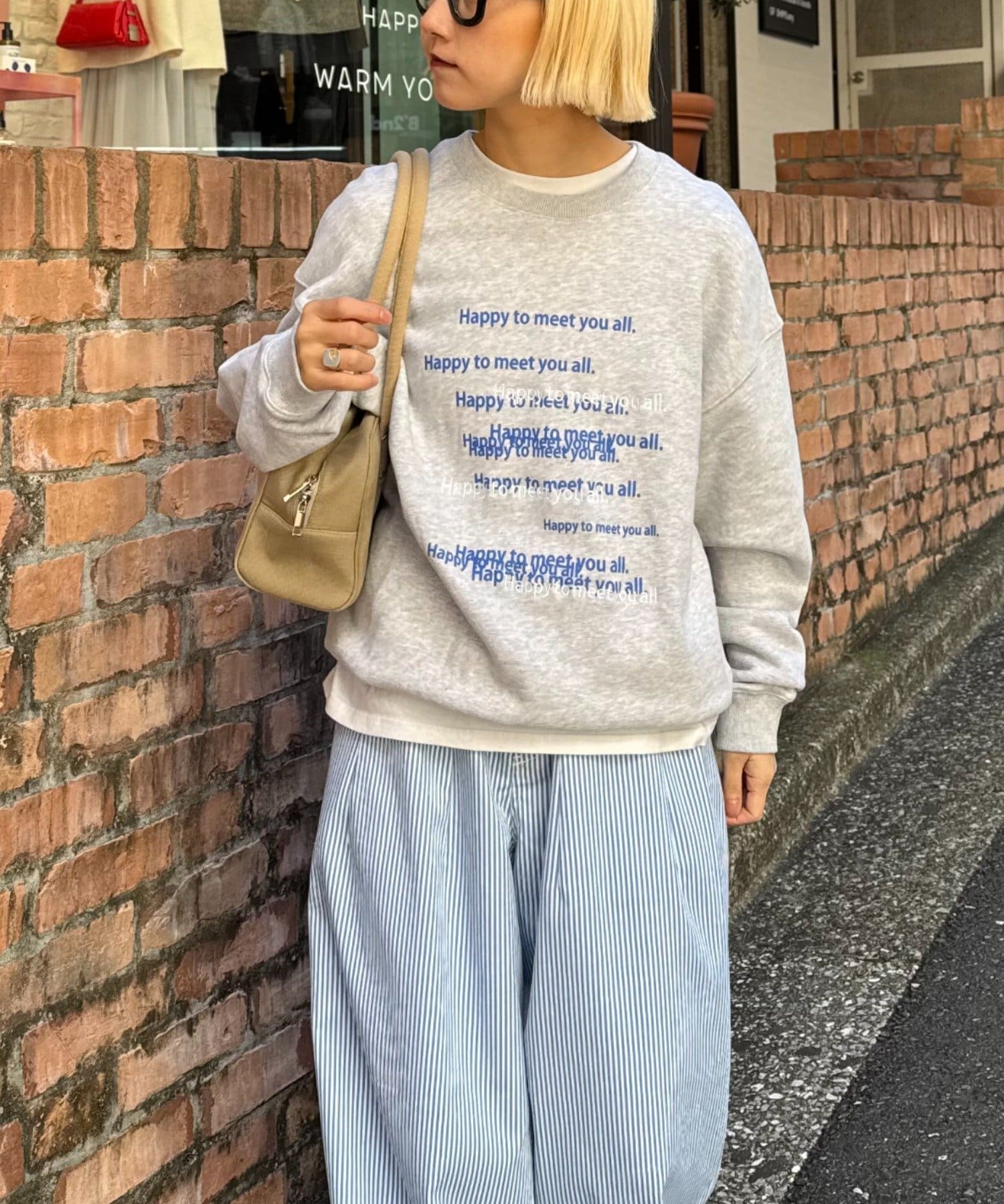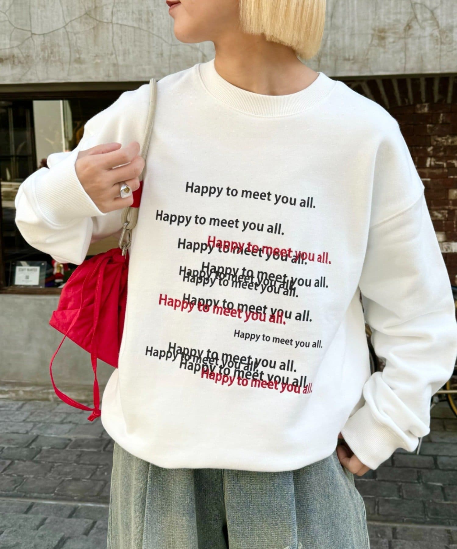 オーバーサイズのスウェットに存在感のあるメッセージプリントと刺繍をランダムに施したスウェットです。