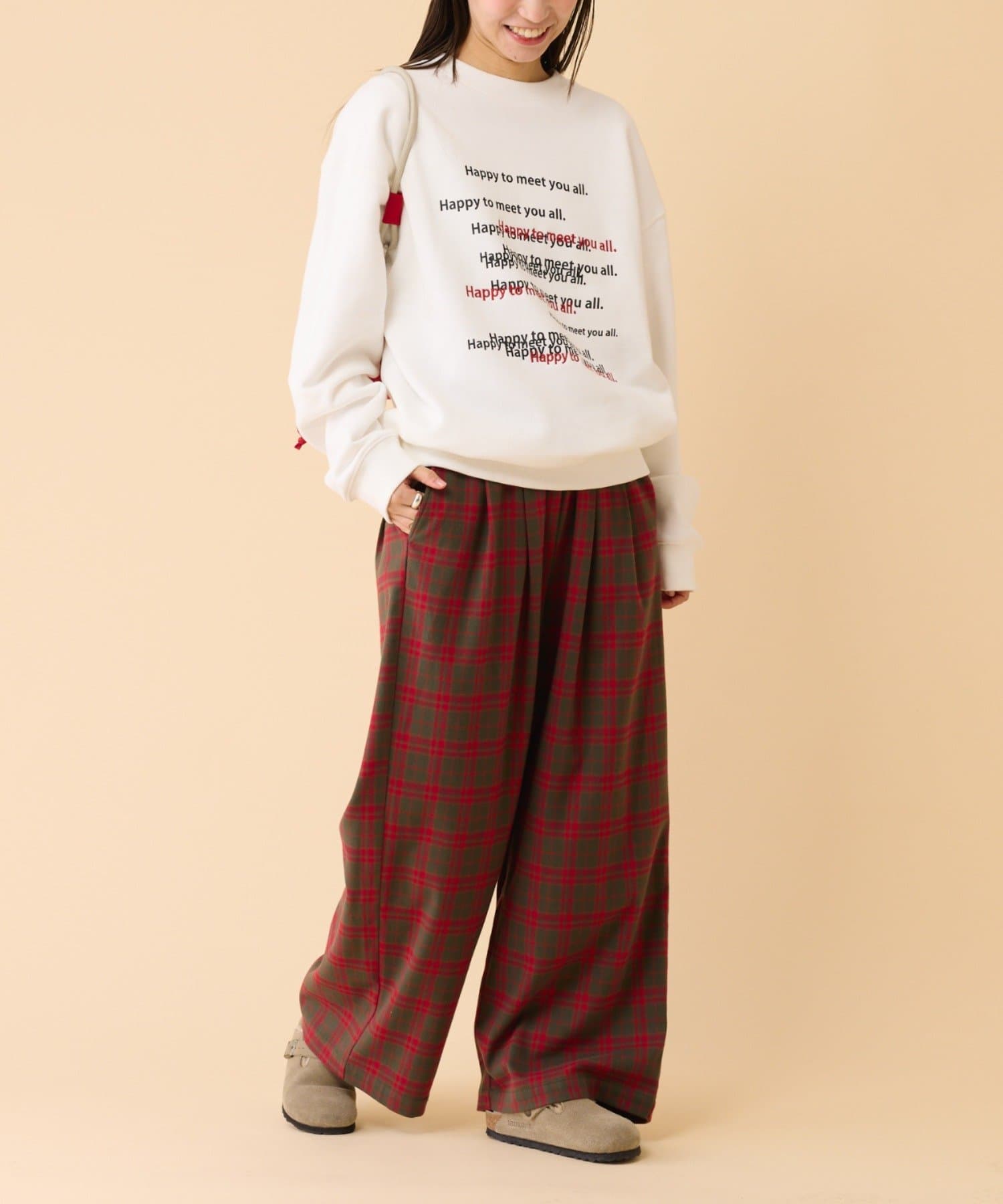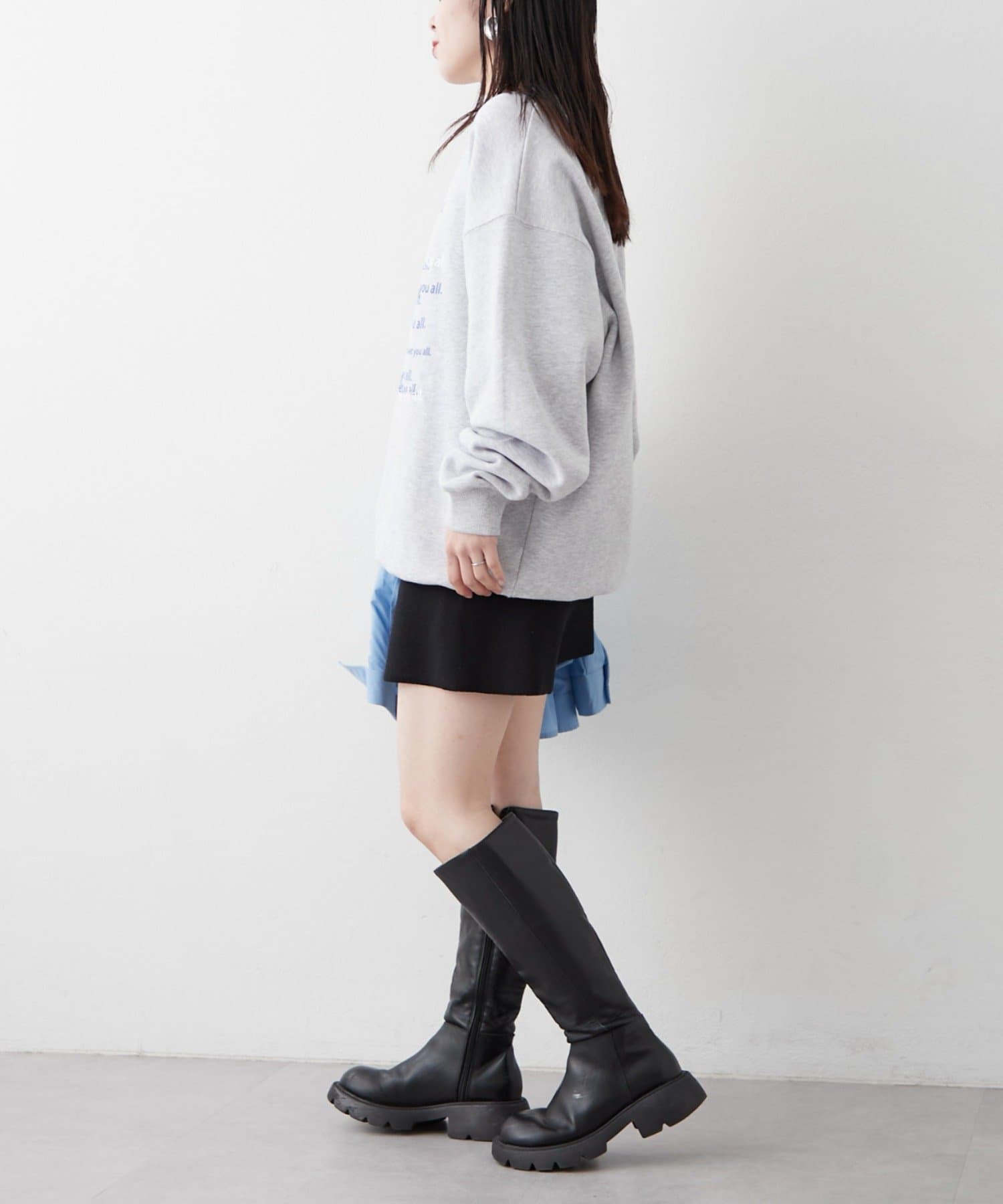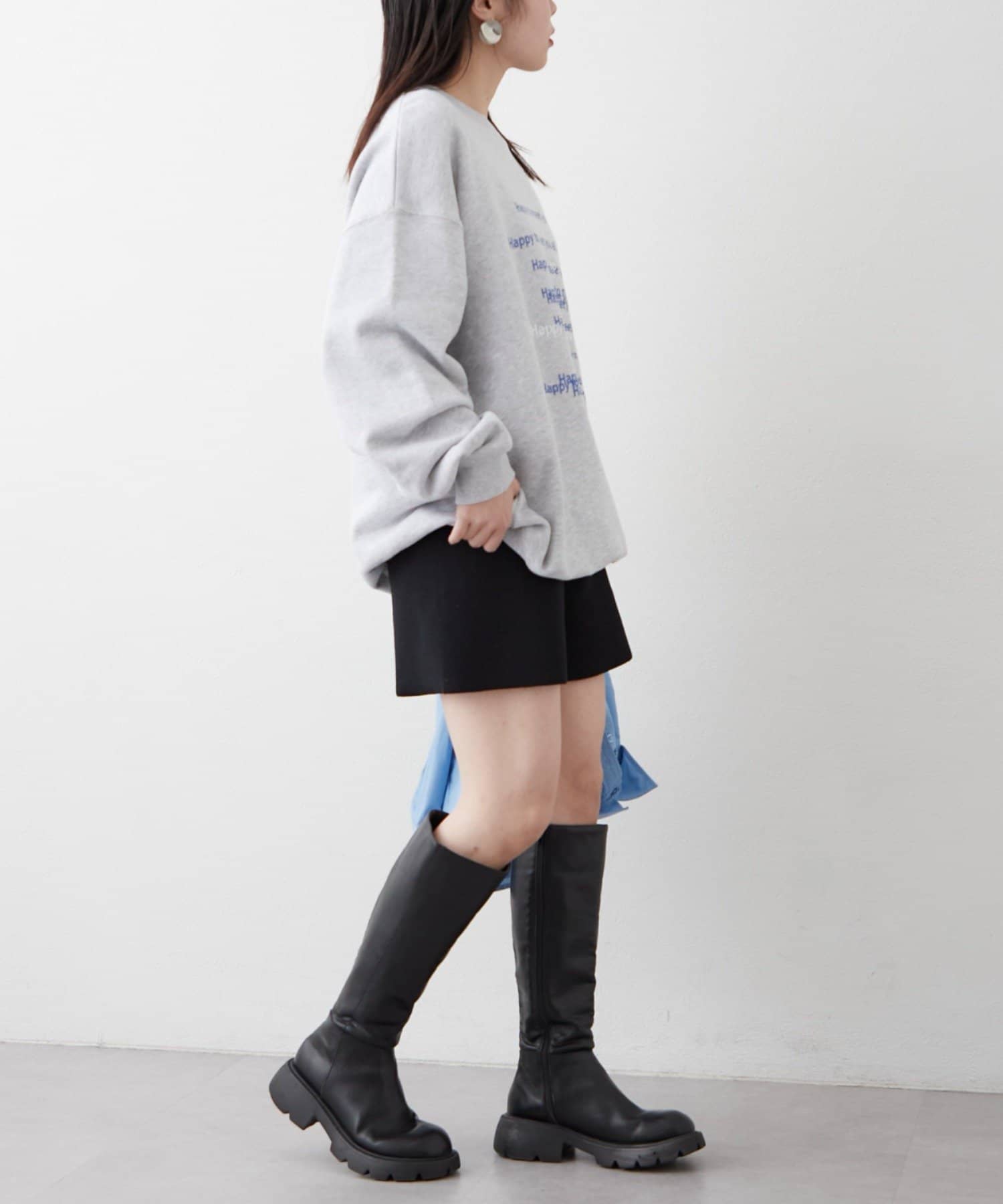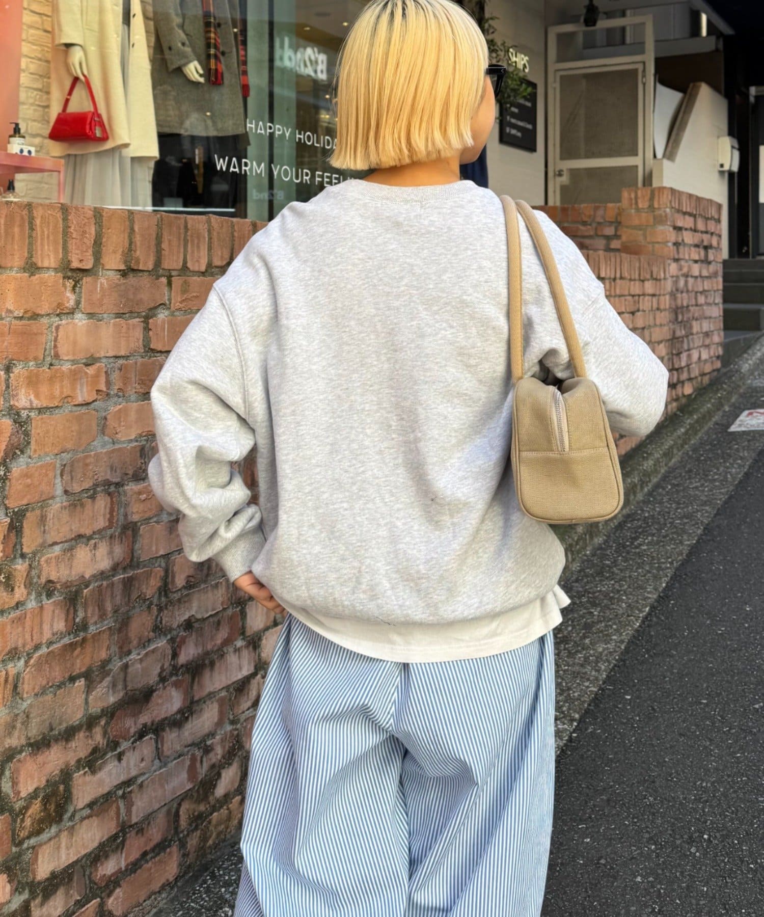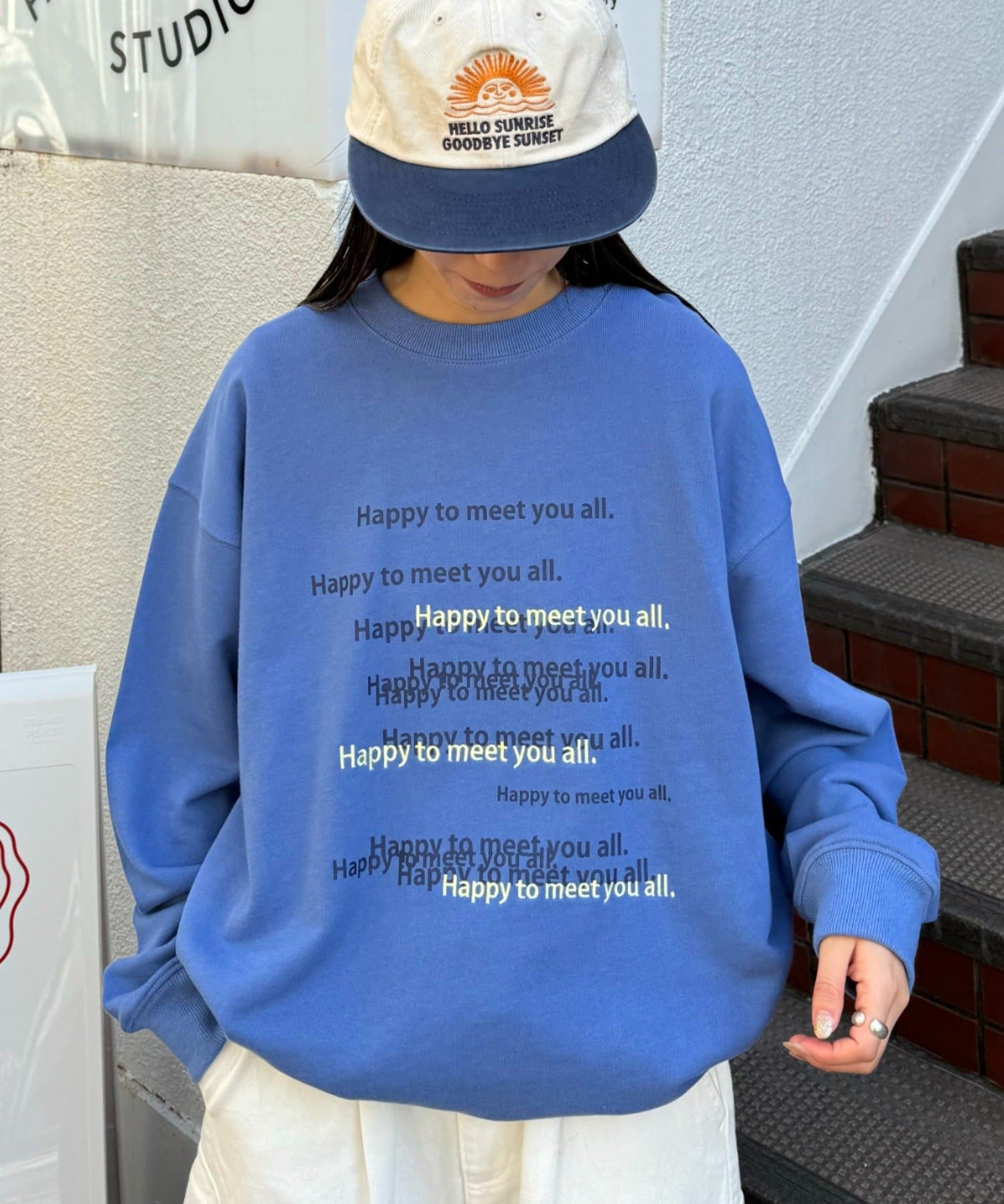 オーバーサイズのスウェットに存在感のあるメッセージプリントと刺繍をランダムに施したスウェットです。