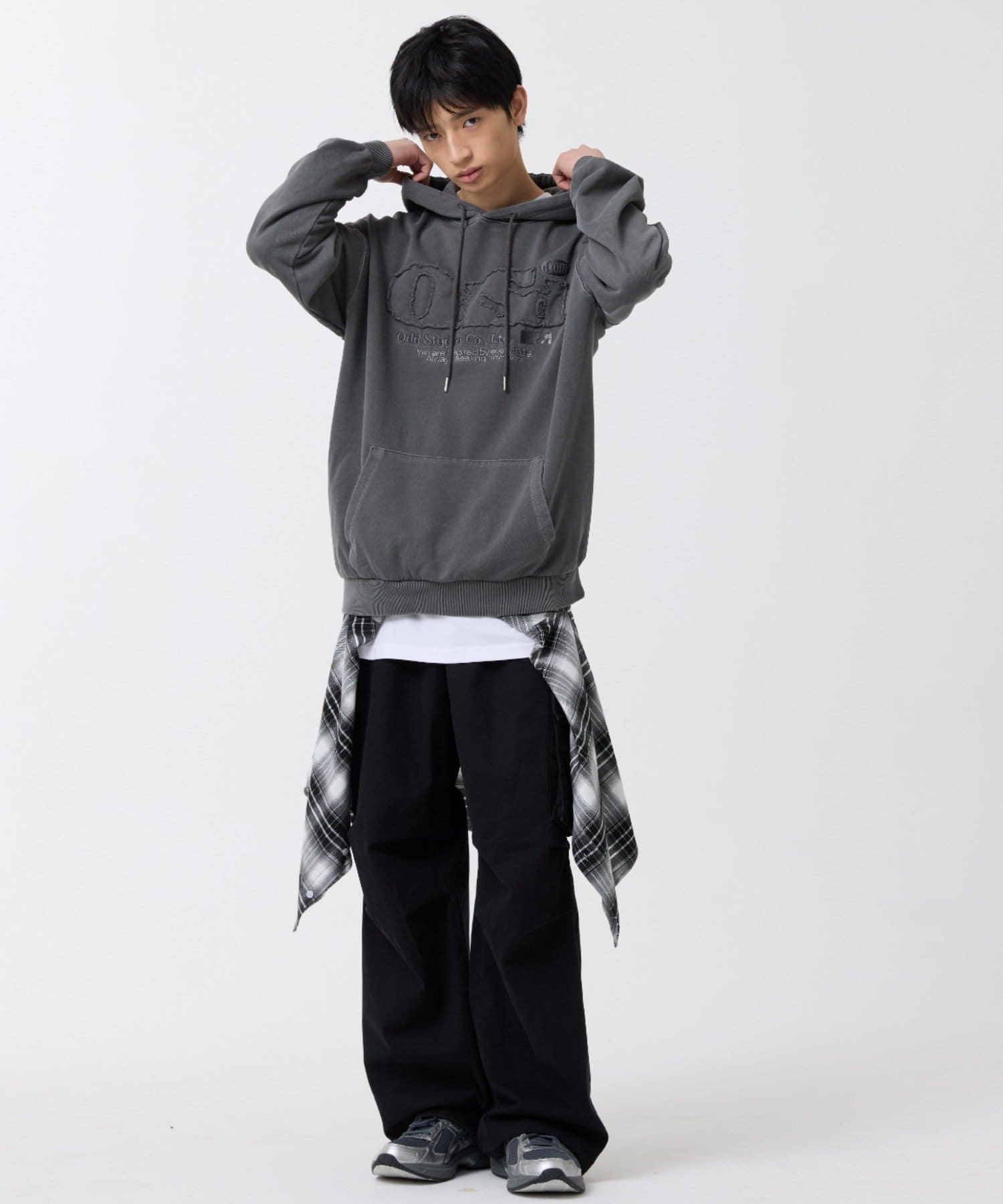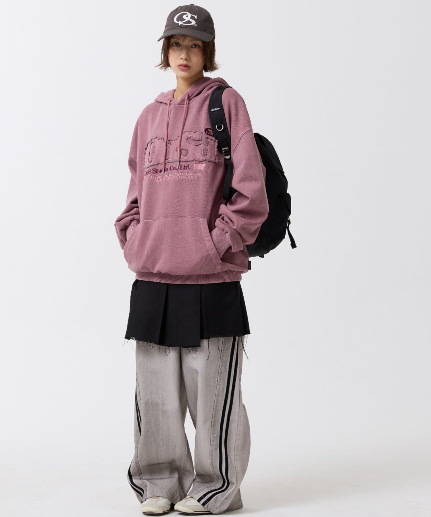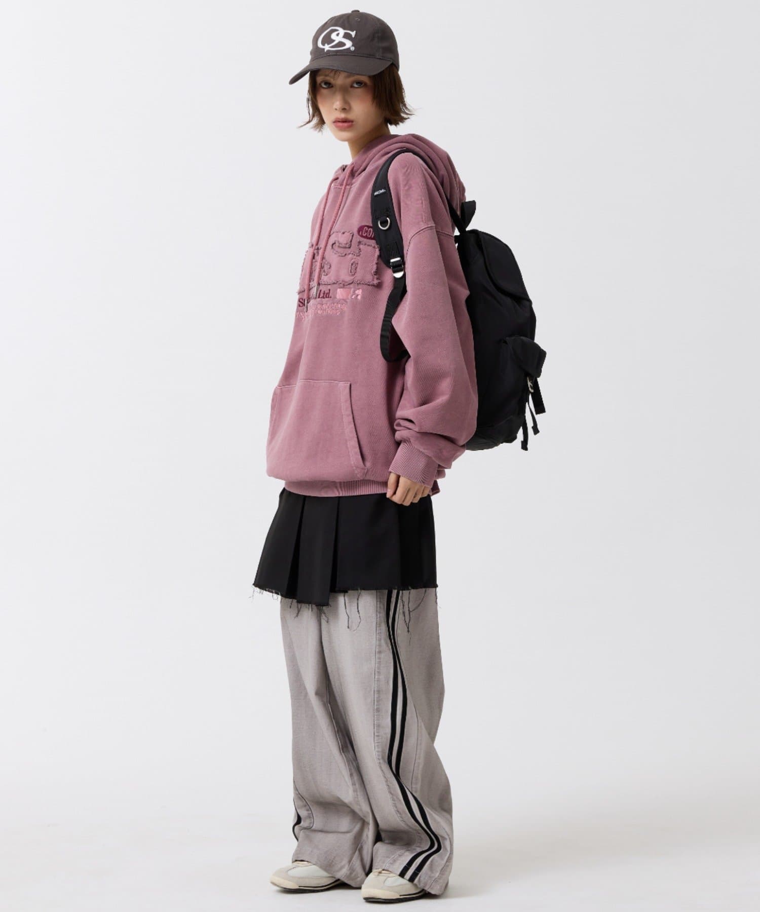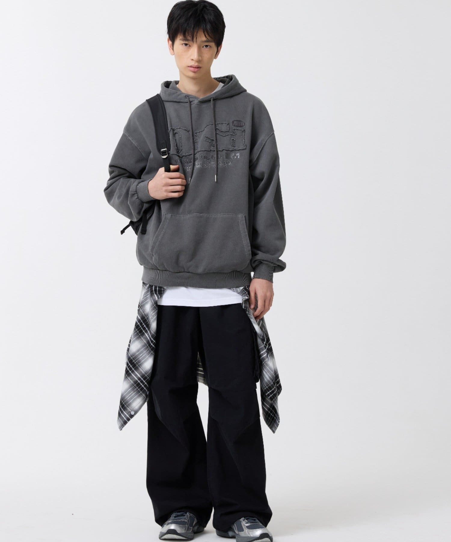 程よくゆるダボなシルエット感で、ピグメント加工を加えてトレンドの韓国ストリートの雰囲気を感じさせるデザインに仕上げました。