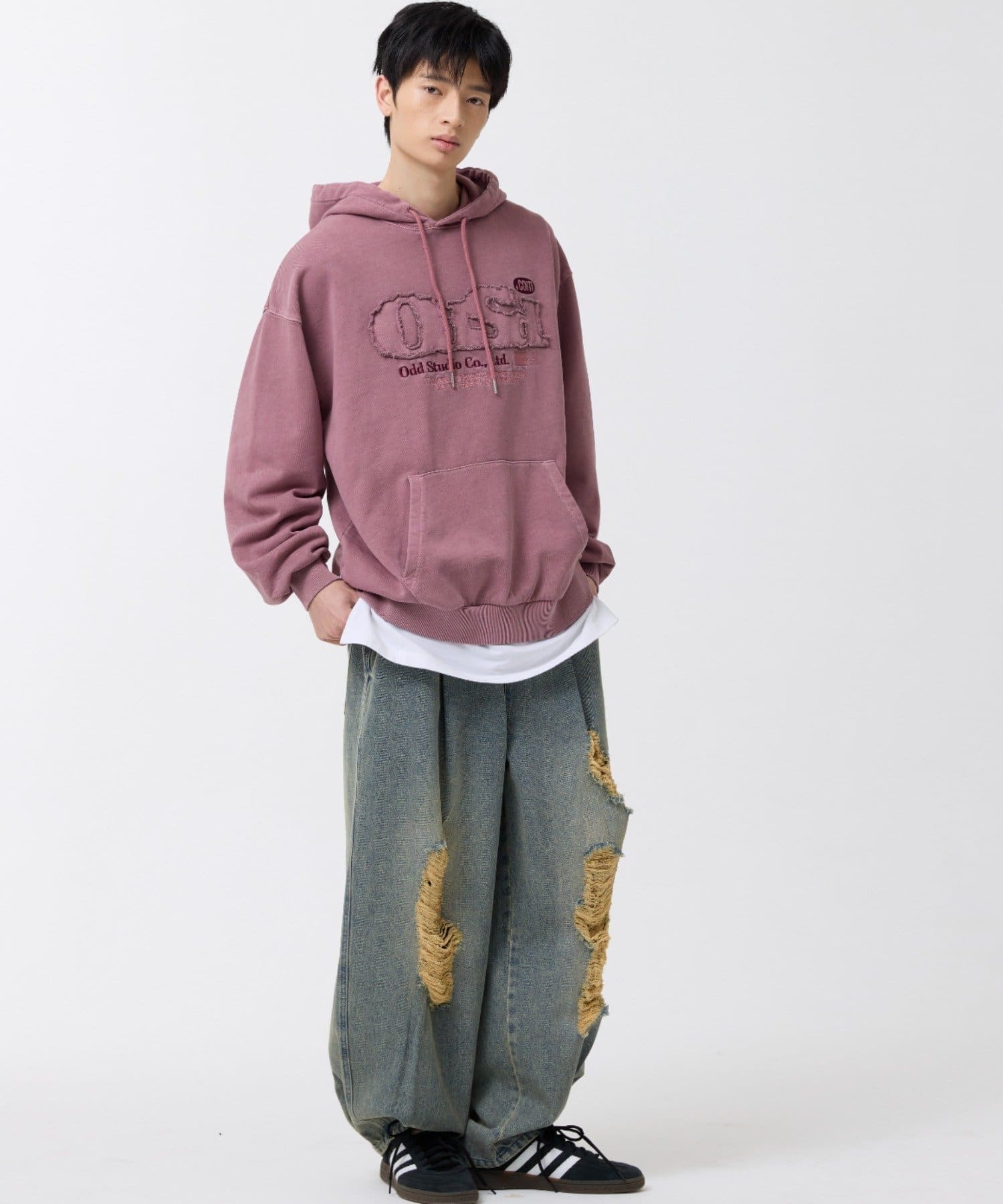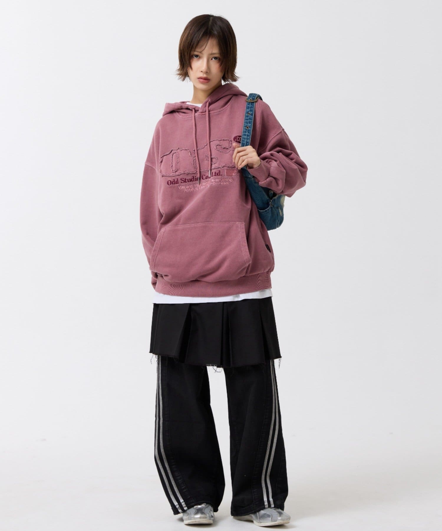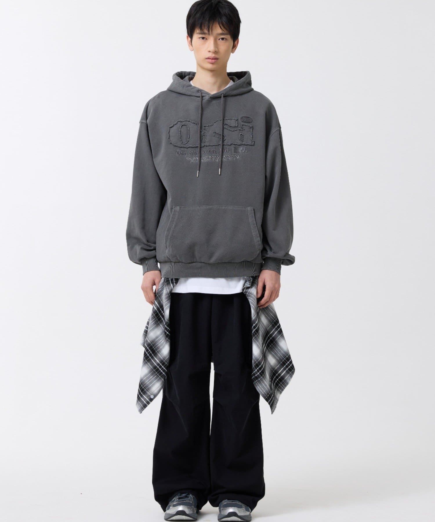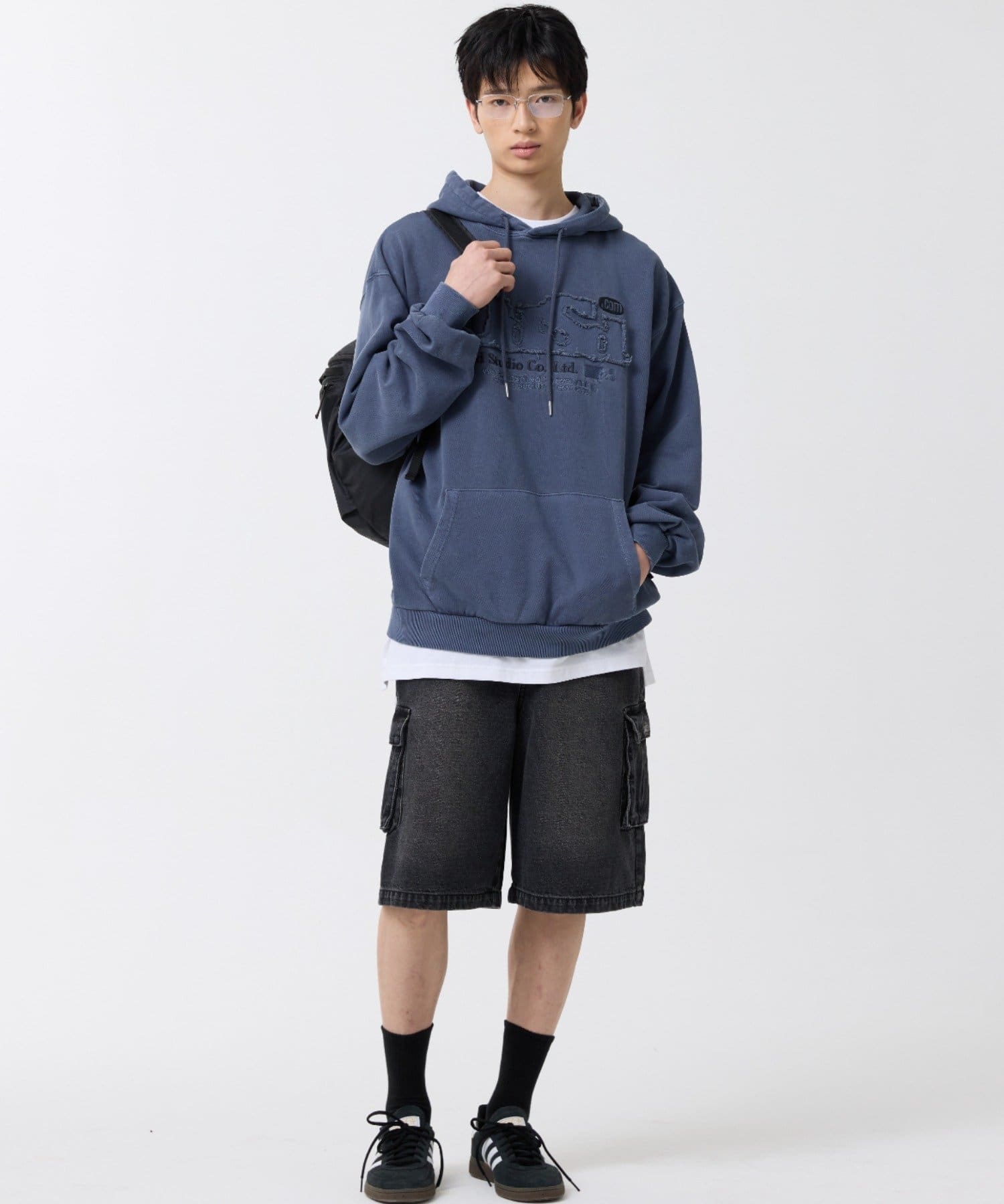 程よくゆるダボなシルエット感で、ピグメント加工を加えてトレンドの韓国ストリートの雰囲気を感じさせるデザインに仕上げました。