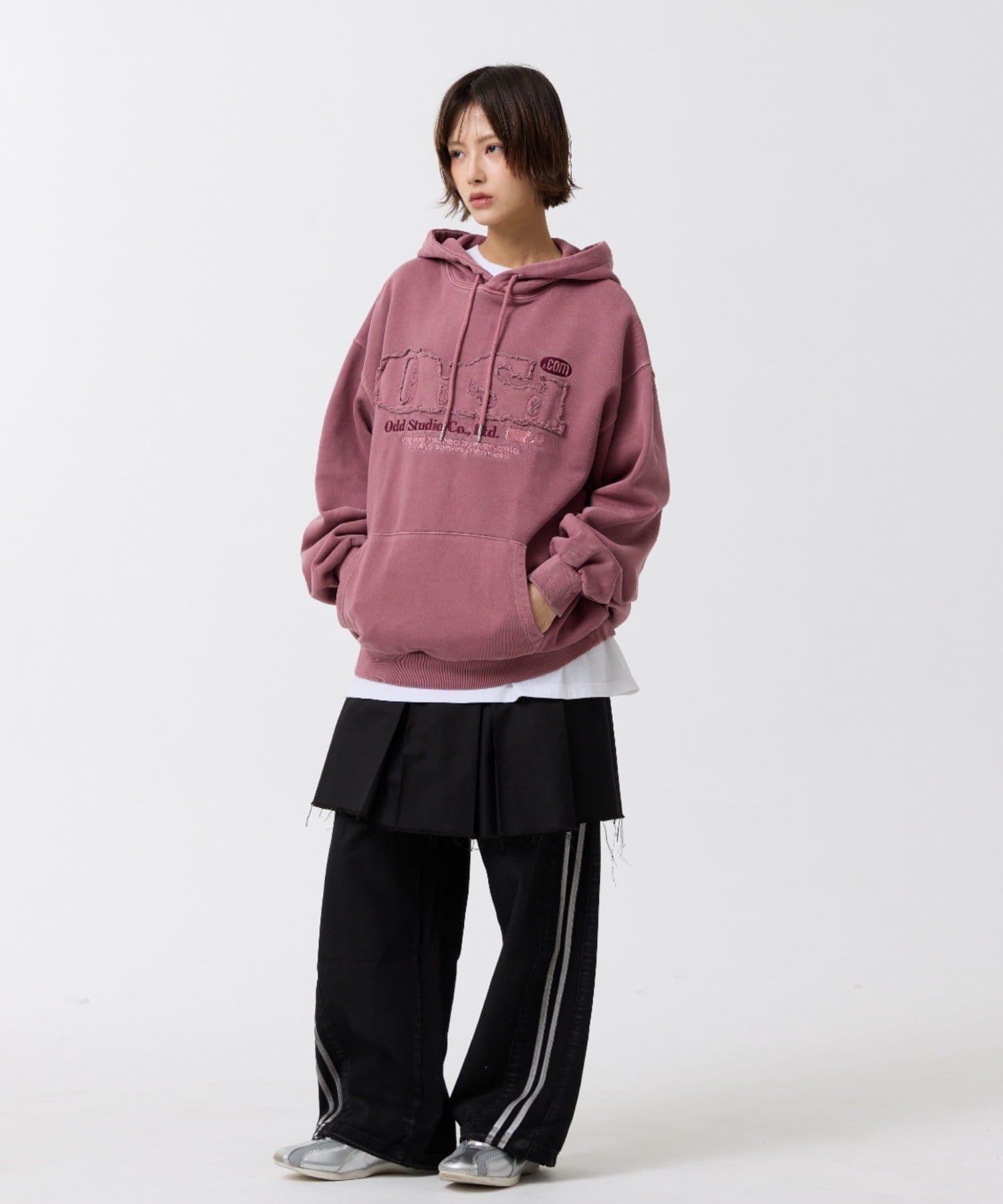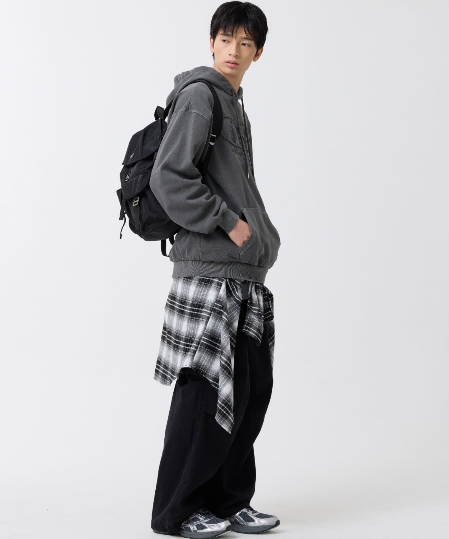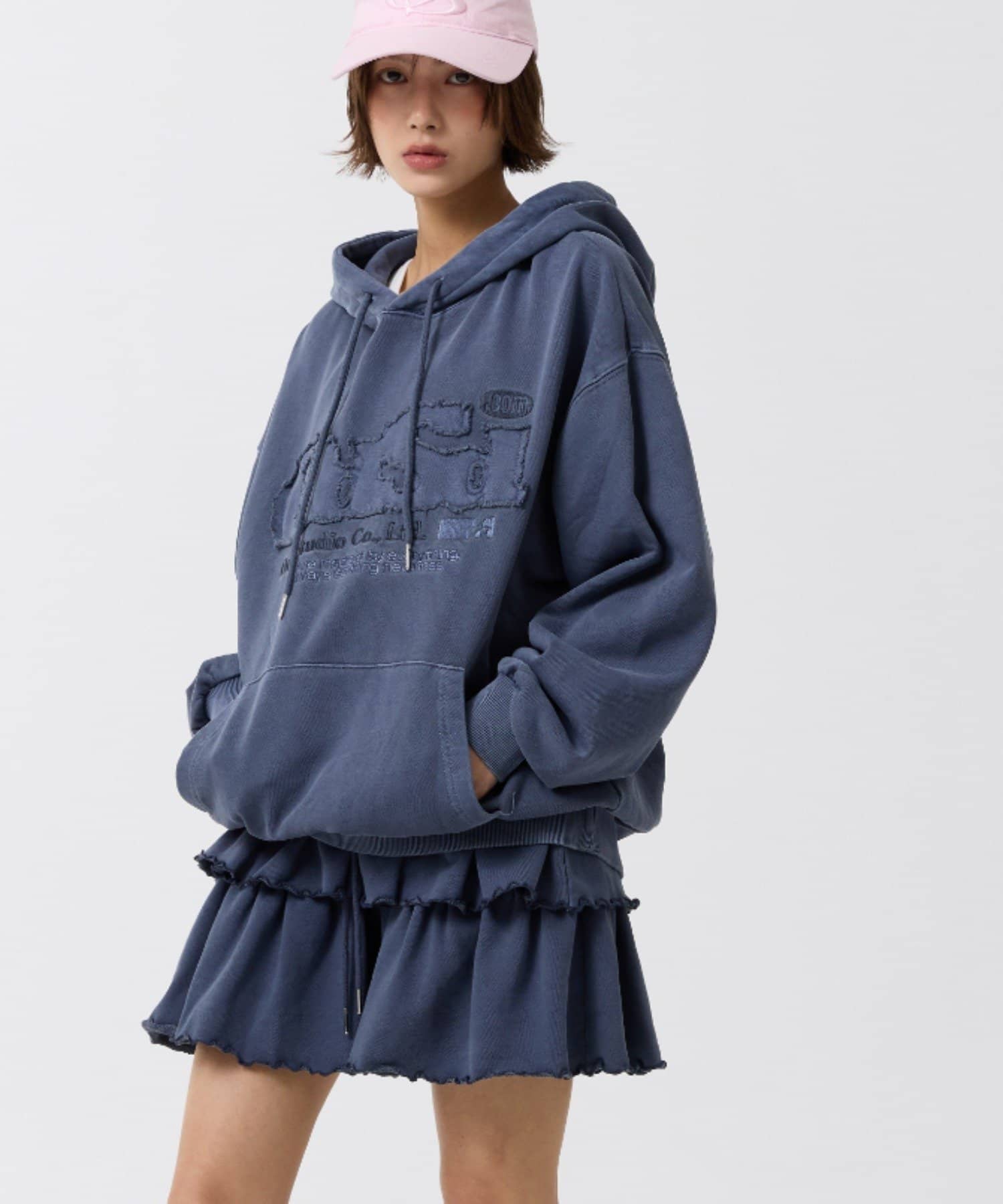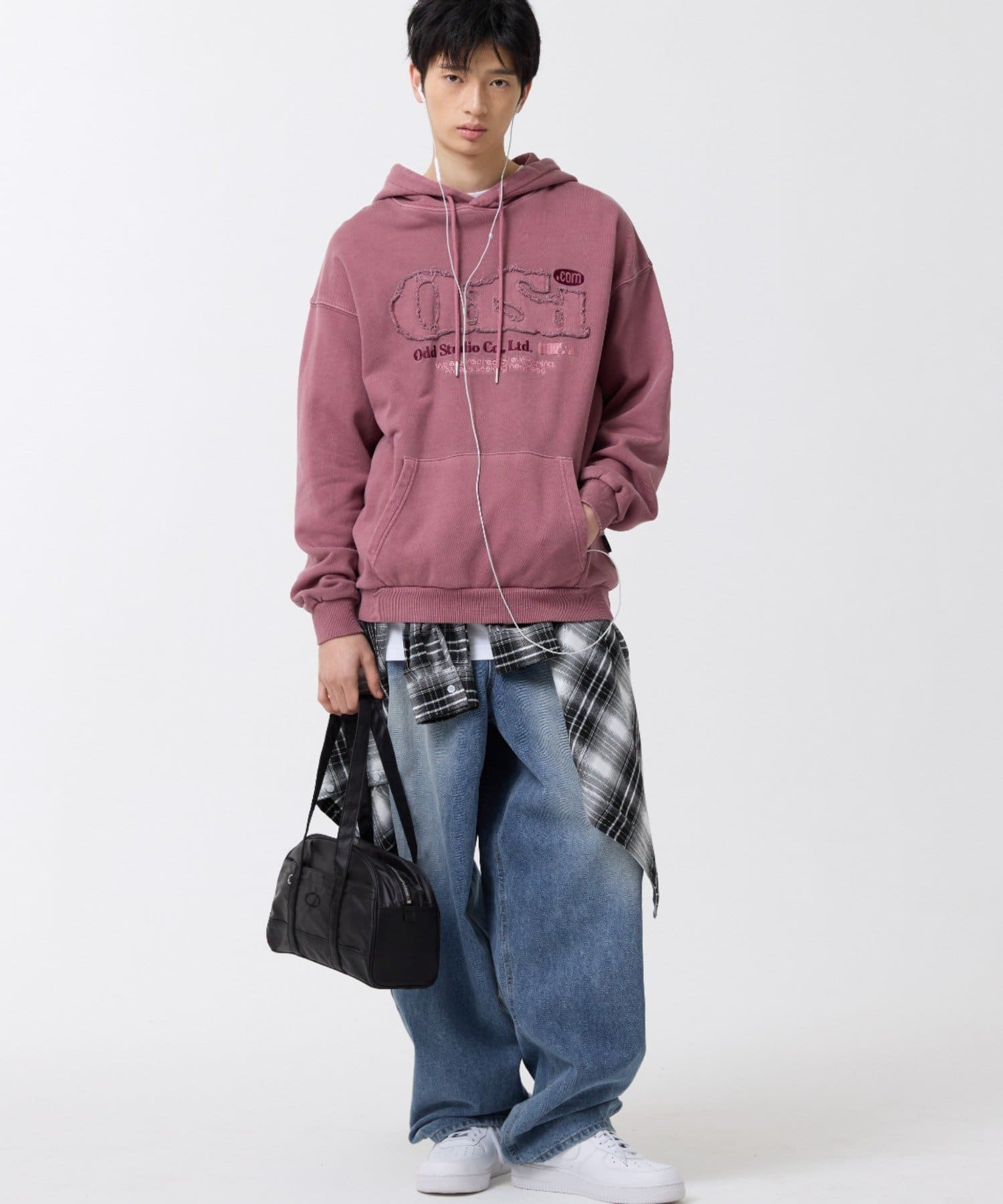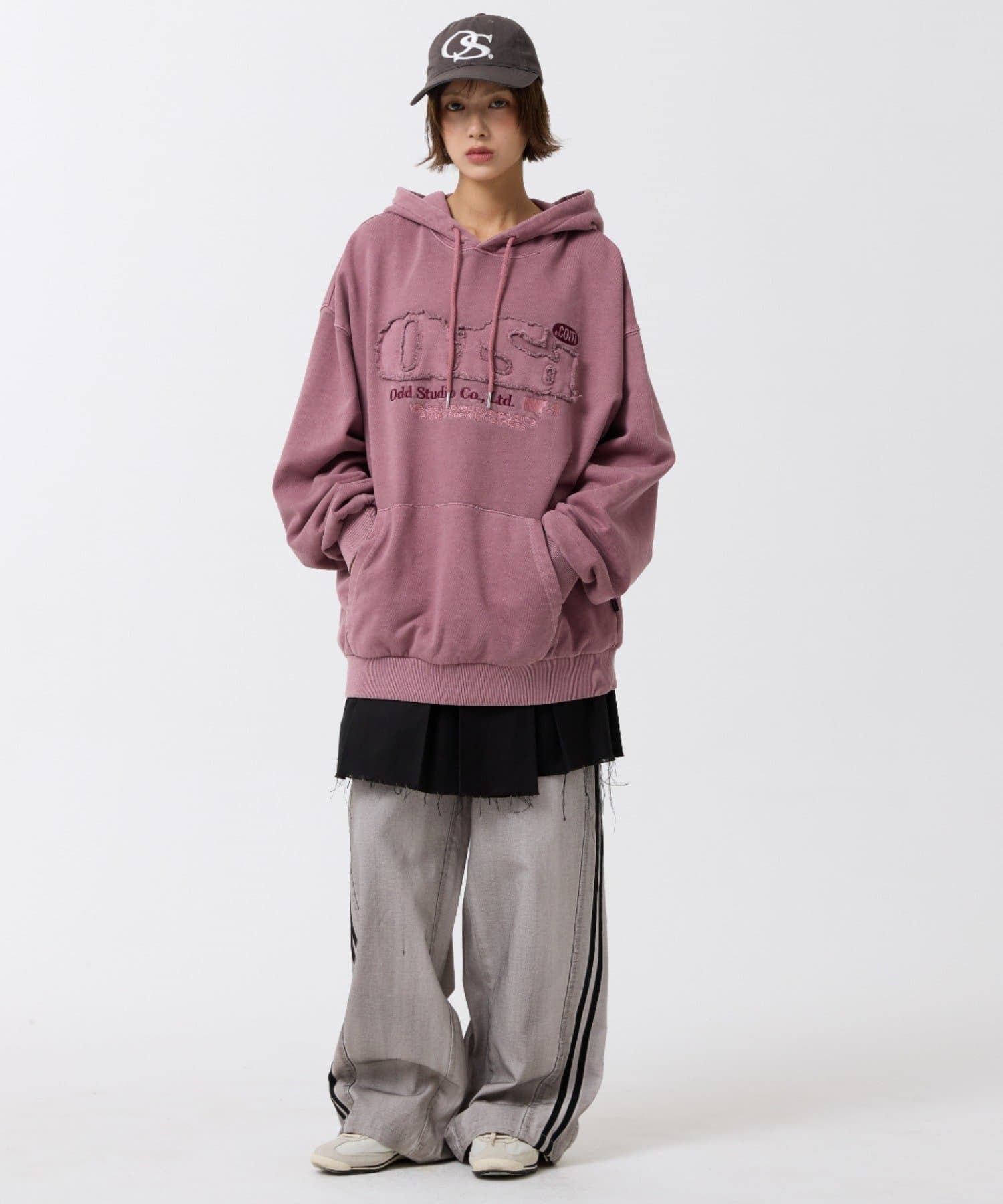 程よくゆるダボなシルエット感で、ピグメント加工を加えてトレンドの韓国ストリートの雰囲気を感じさせるデザインに仕上げました。