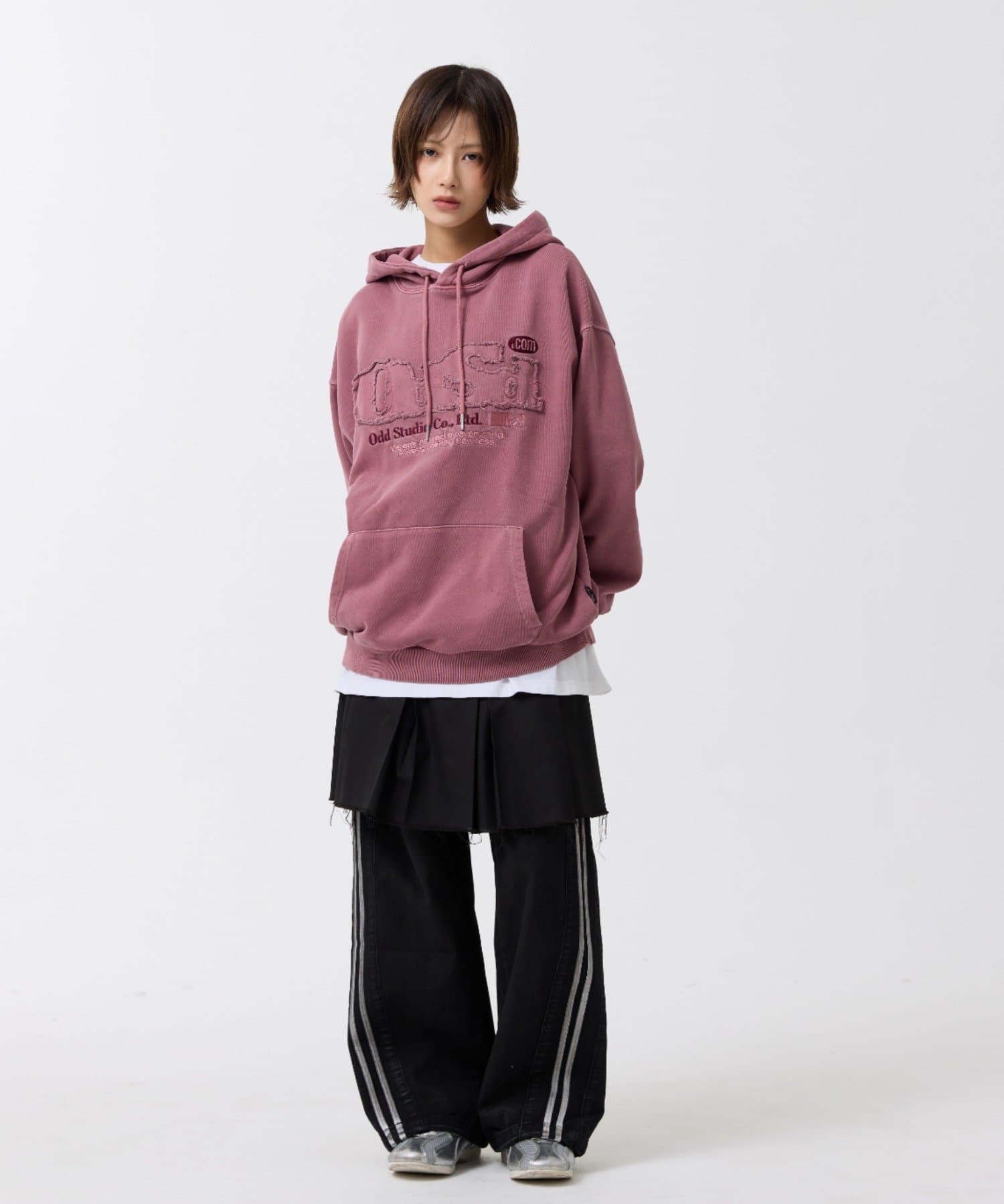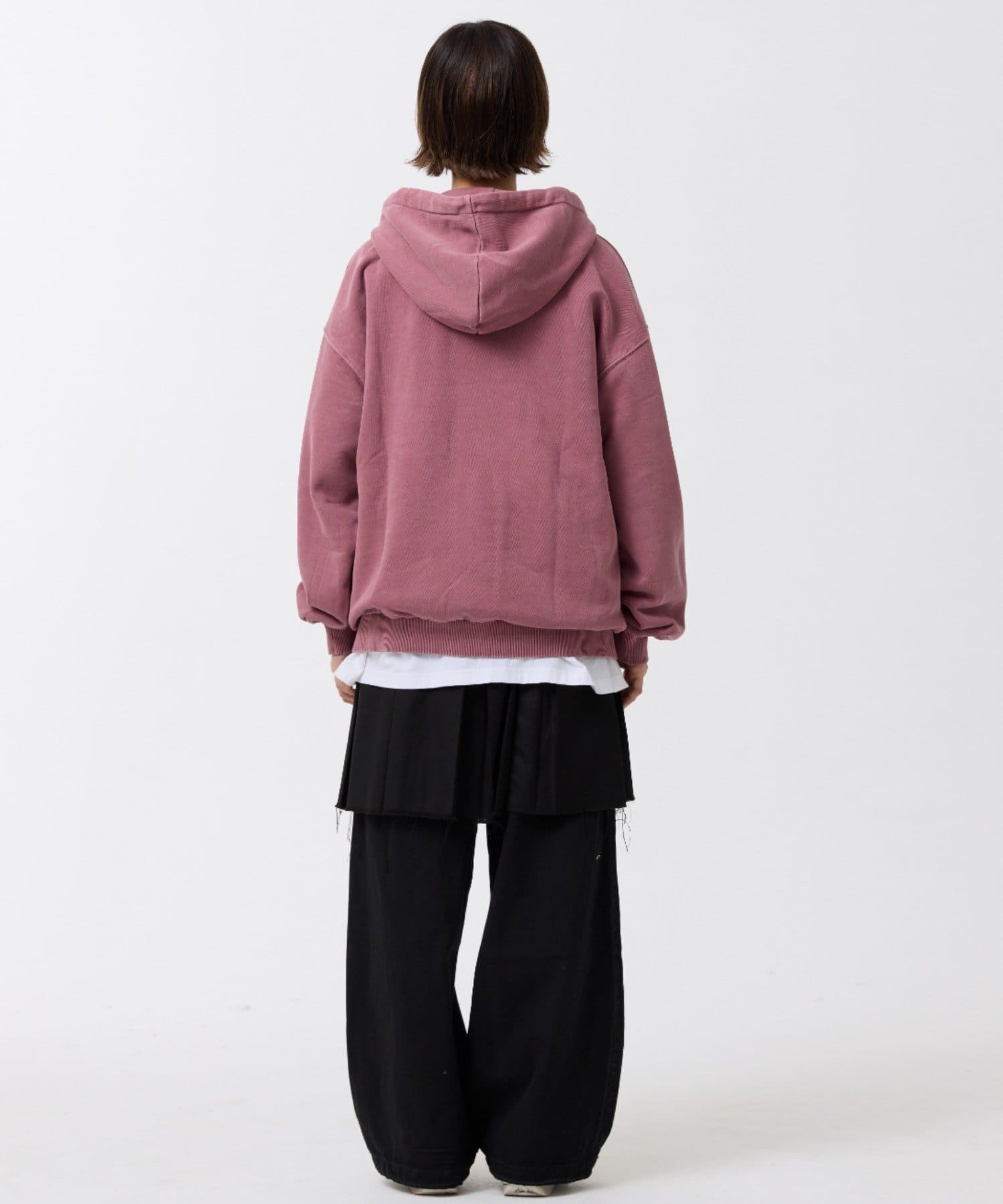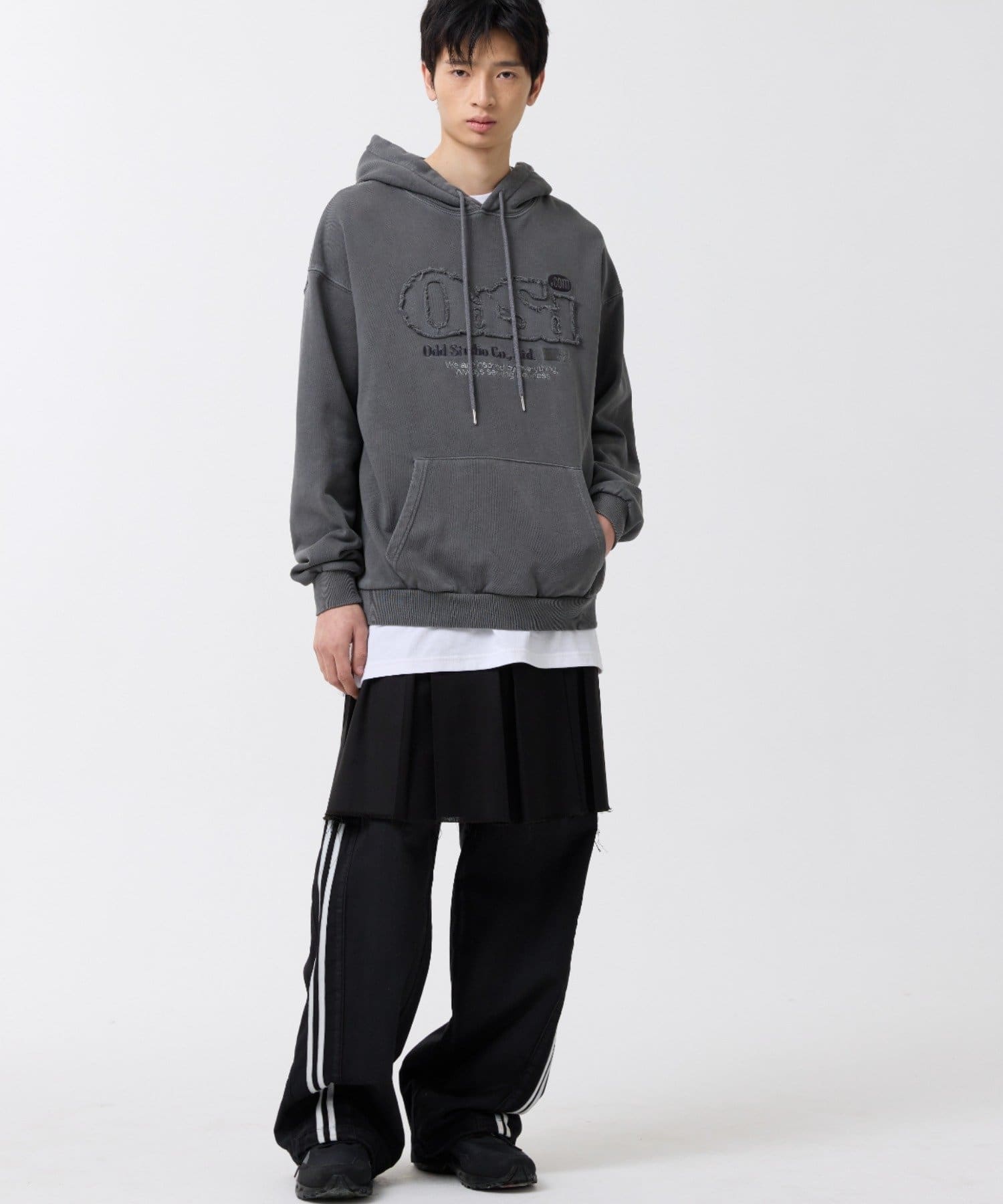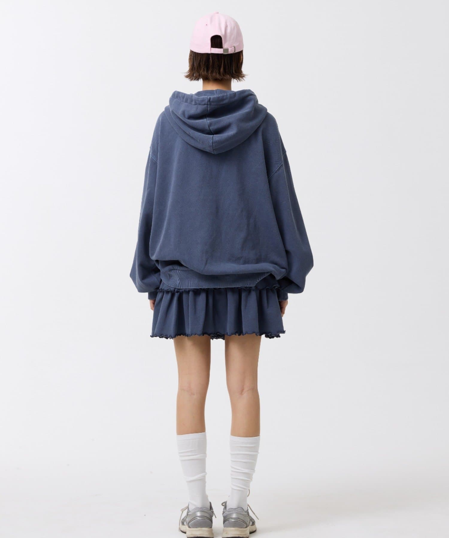 程よくゆるダボなシルエット感で、ピグメント加工を加えてトレンドの韓国ストリートの雰囲気を感じさせるデザインに仕上げました。
