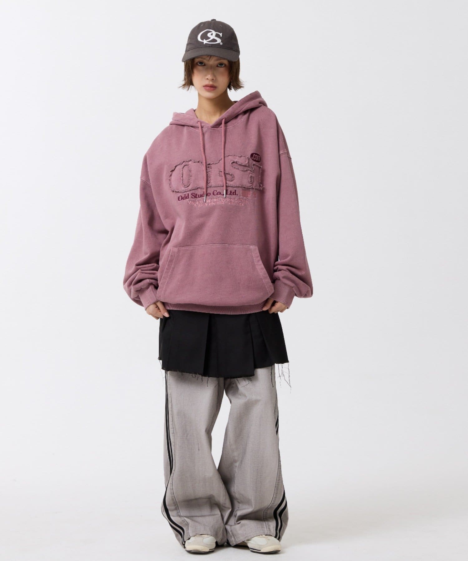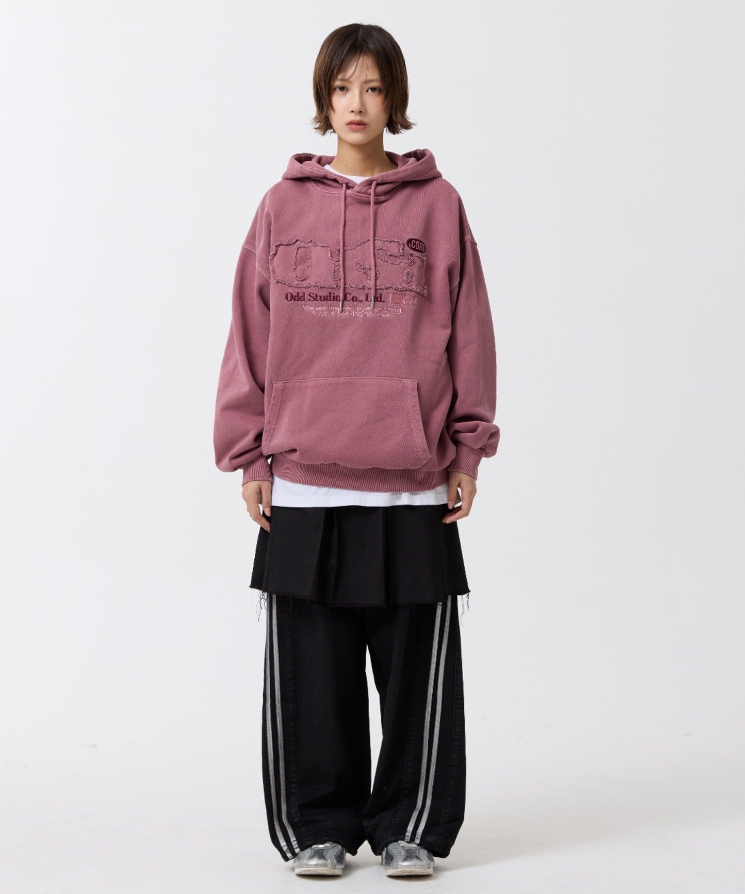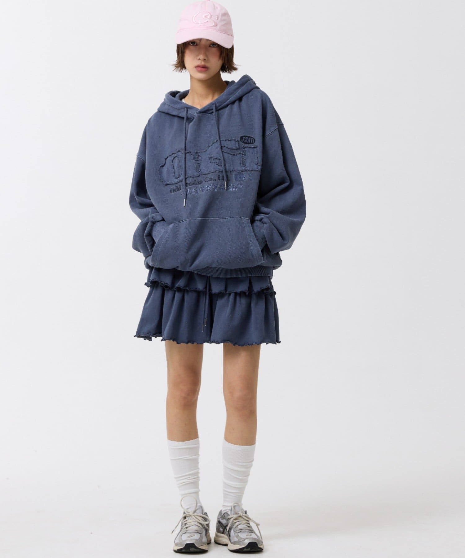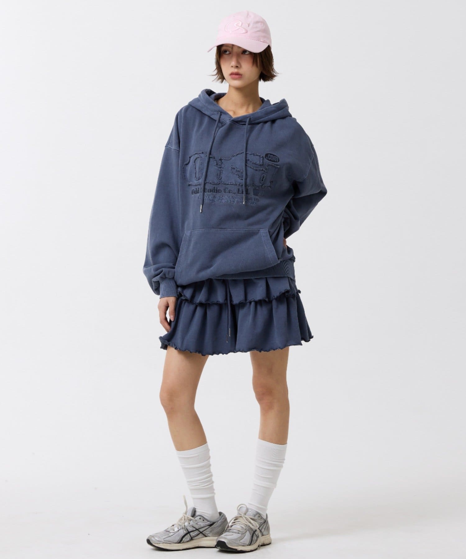 程よくゆるダボなシルエット感で、ピグメント加工を加えてトレンドの韓国ストリートの雰囲気を感じさせるデザインに仕上げました。