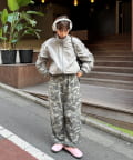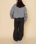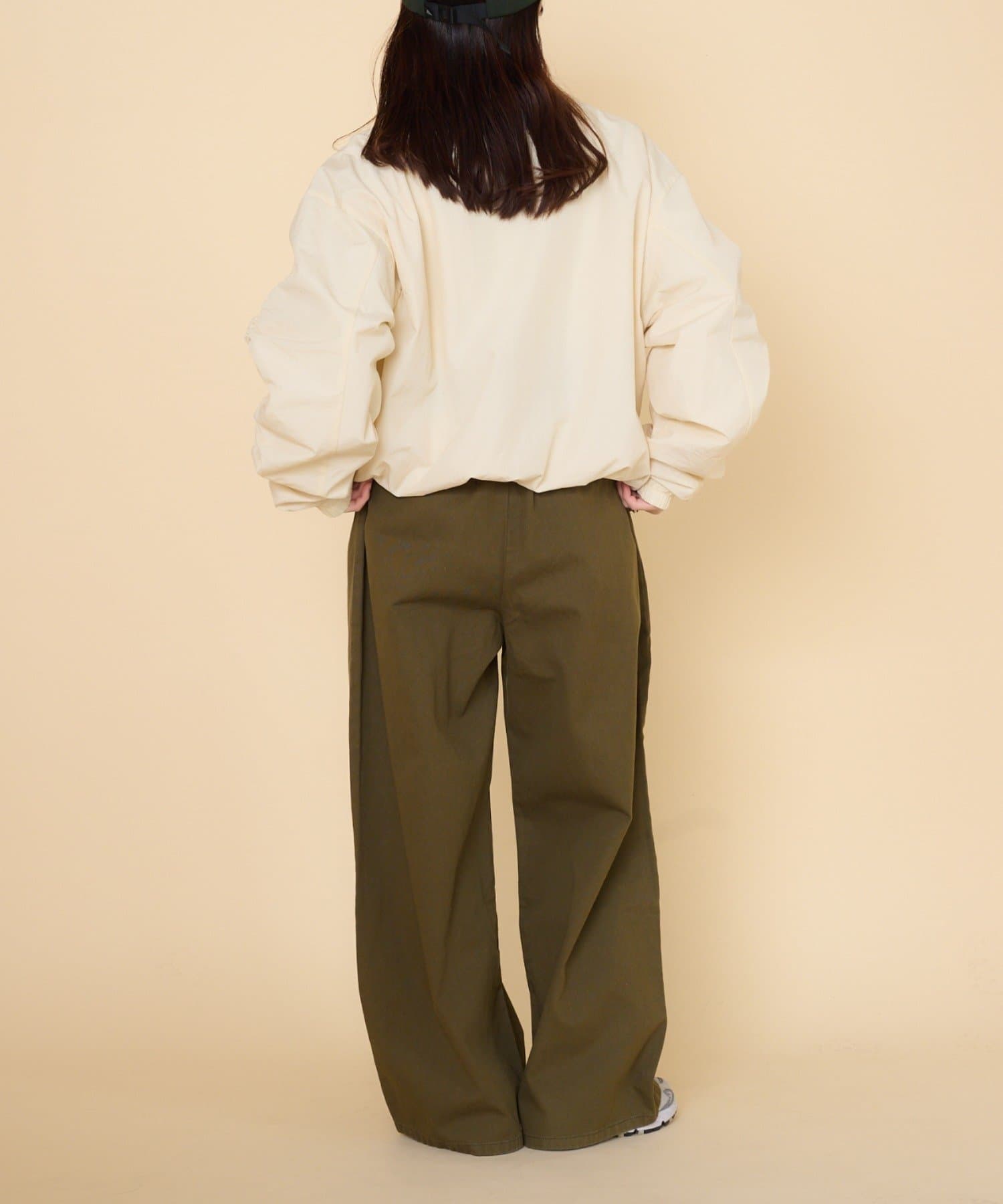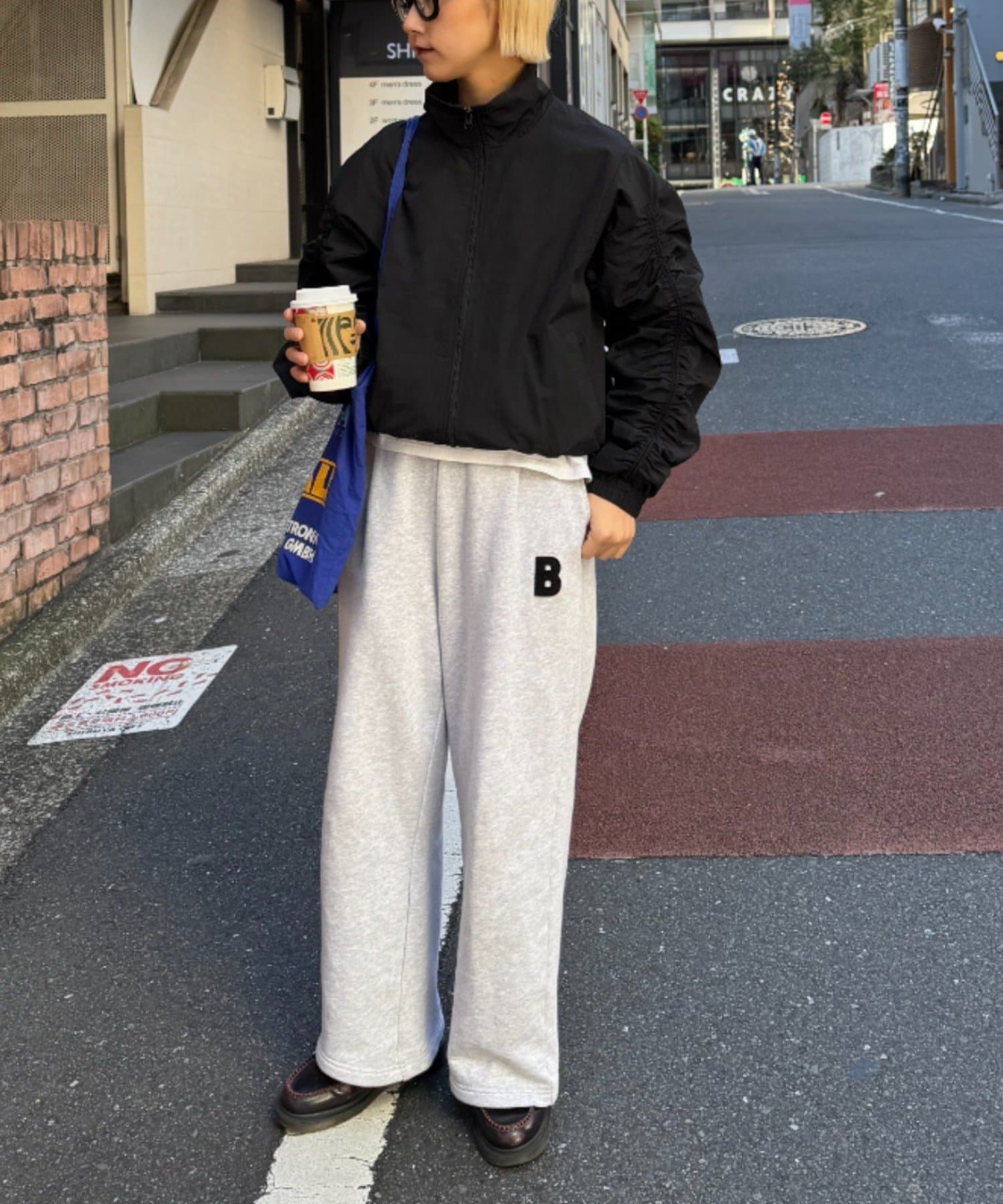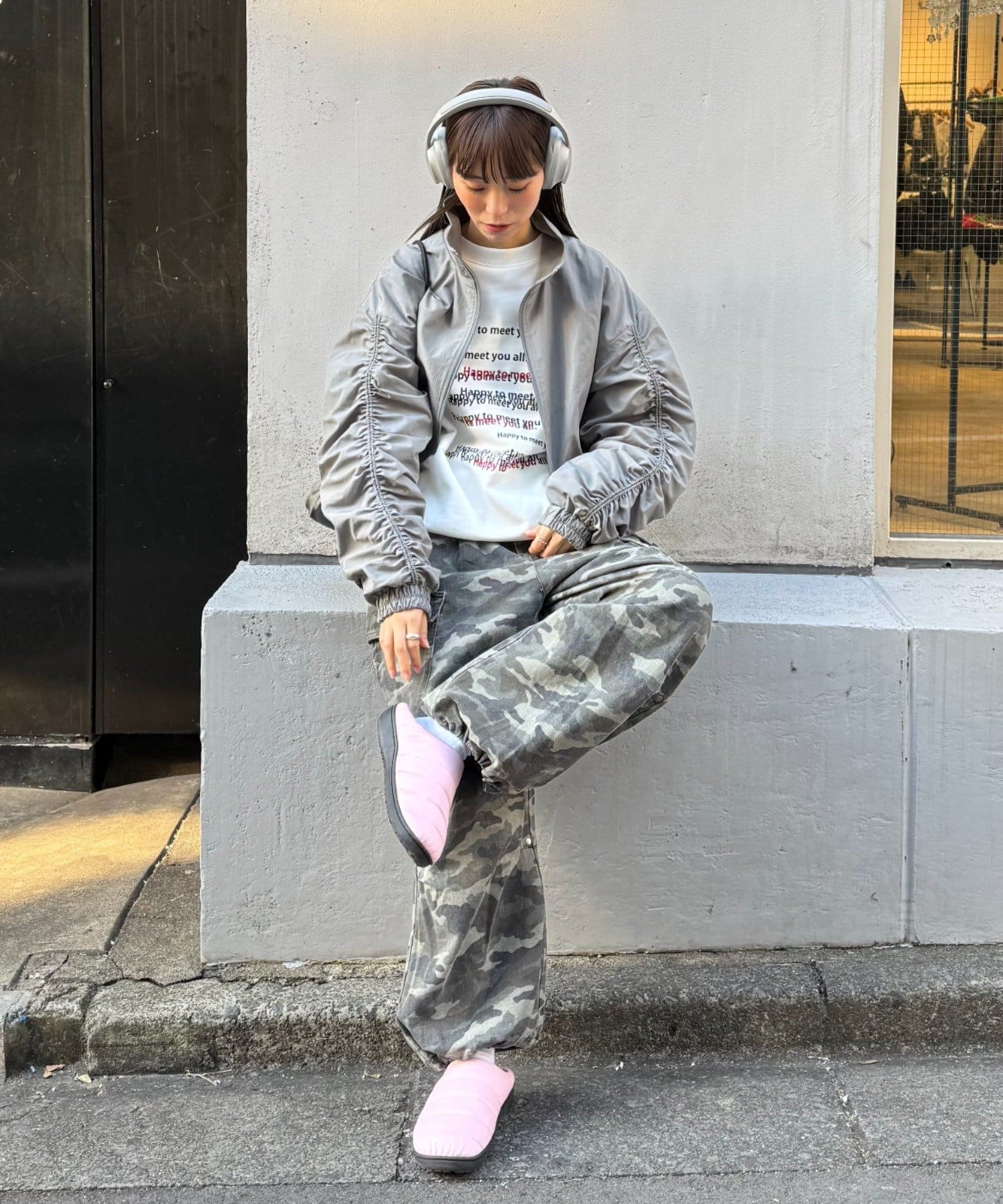 袖のギャザーがコーデのアクセントになり、スポーティーすぎない印象に。