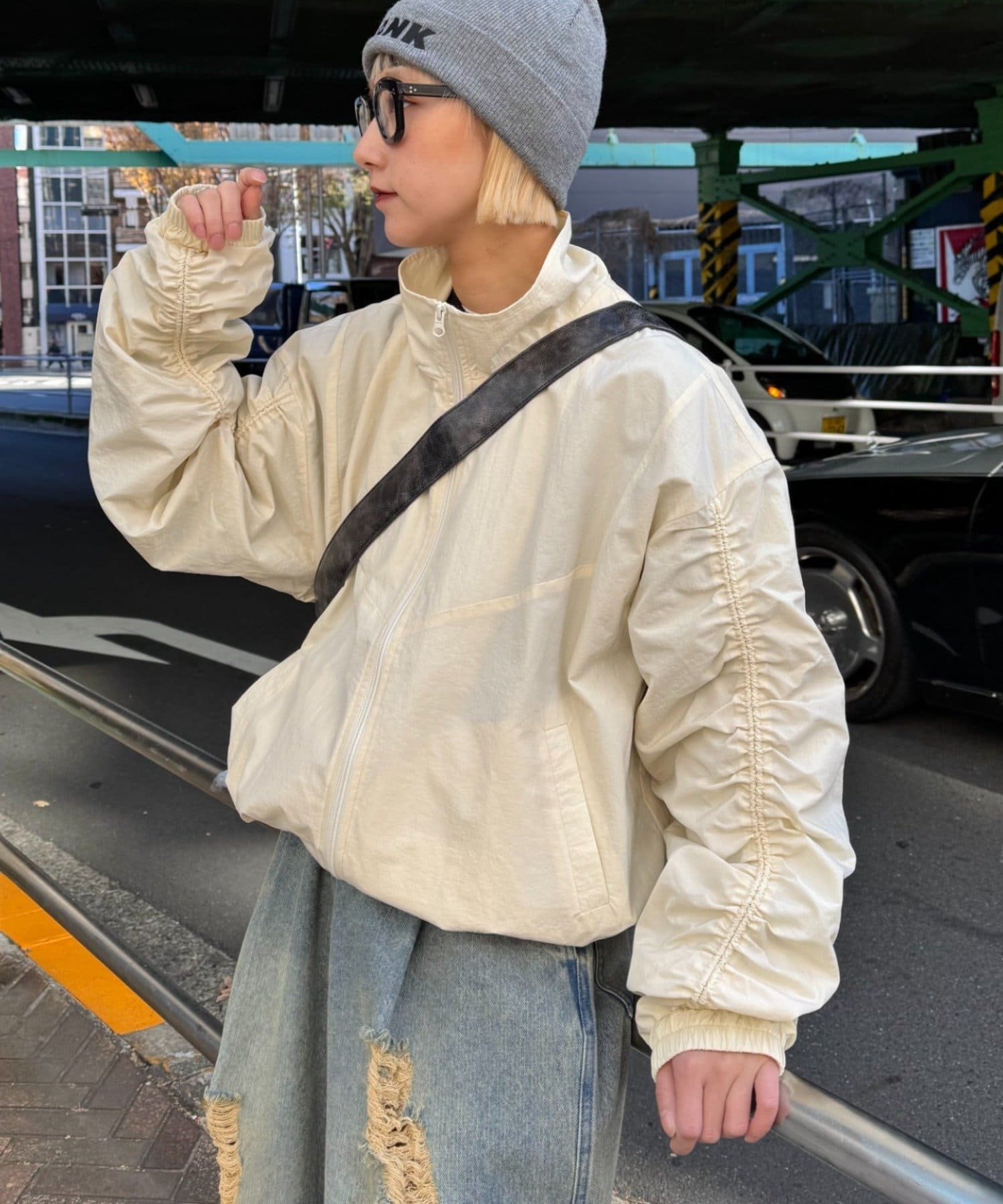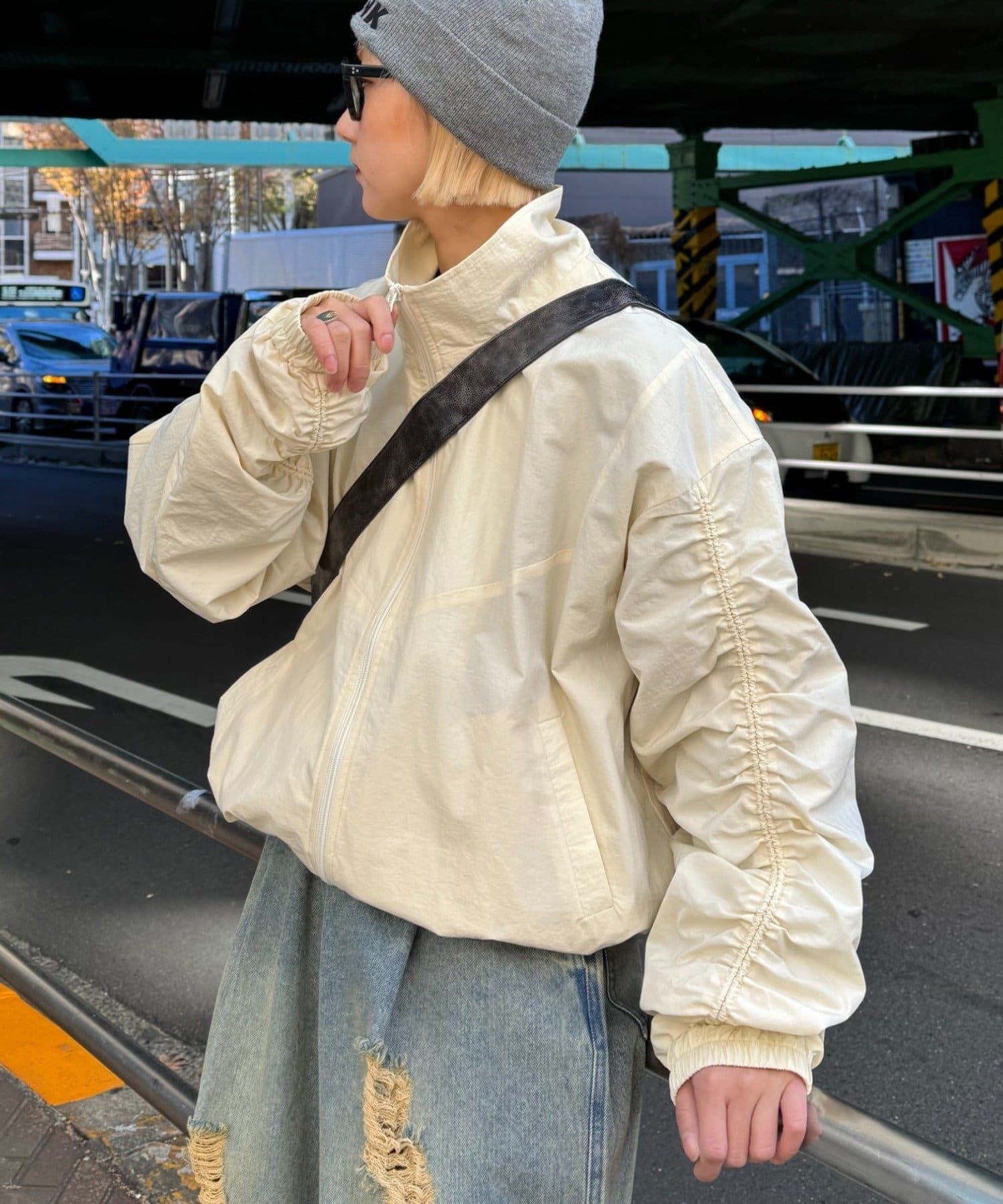 袖のギャザーがコーデのアクセントに!最旬ナイロンジャケットが登場