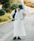 頭にスッキリとフィットし、こなれた印象に。大人カジュアルなコーデにもワンポイントとしても◎
