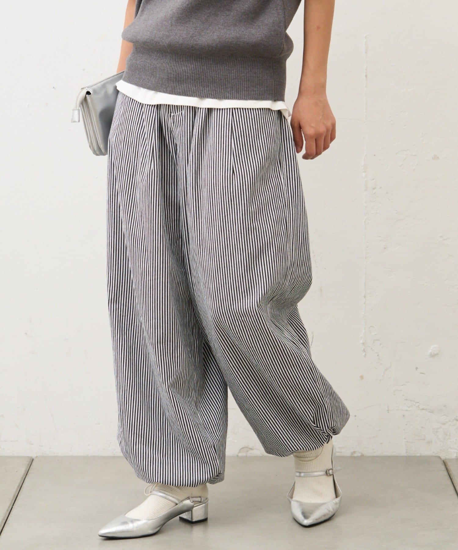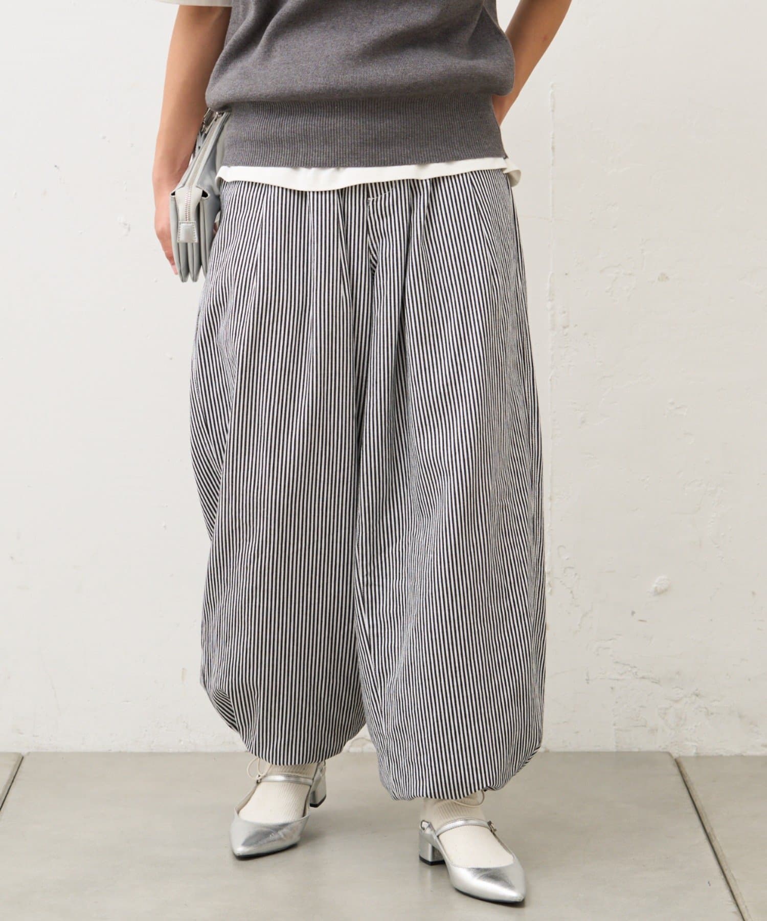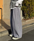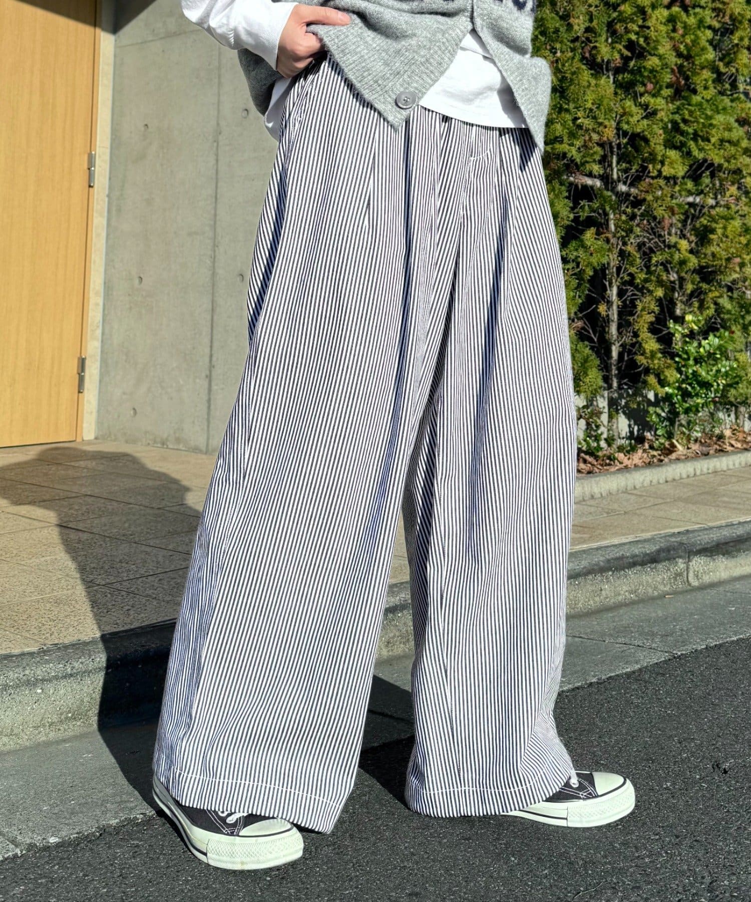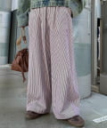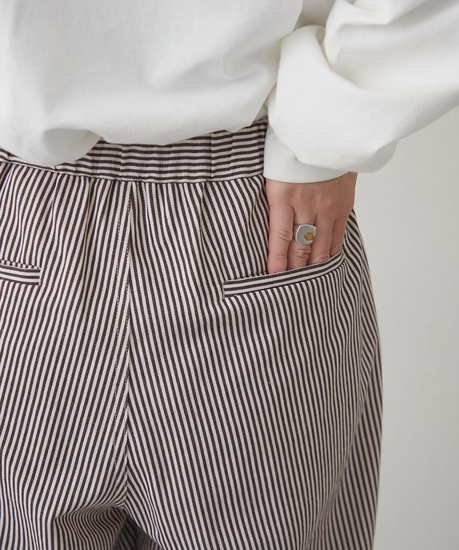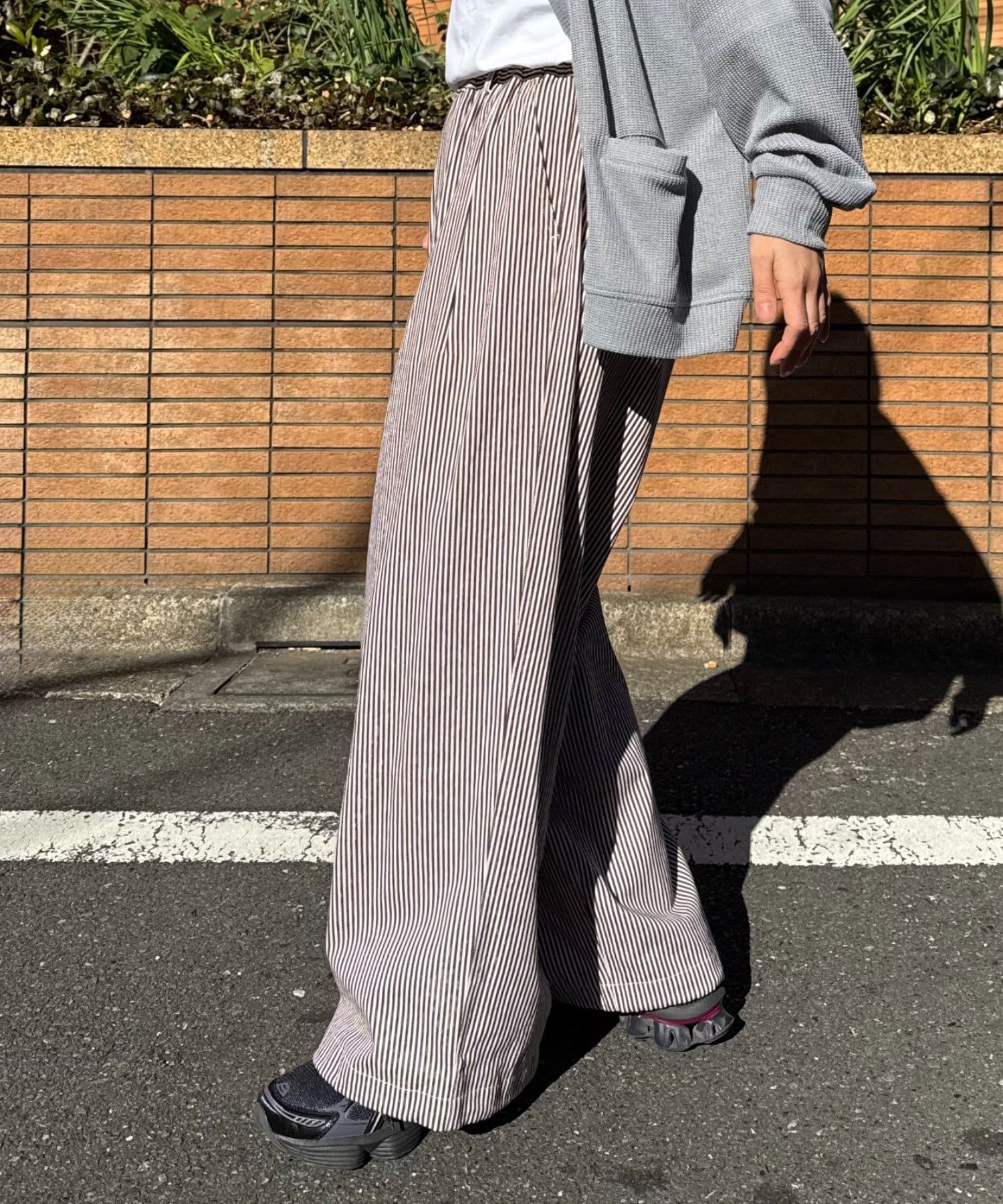 細やかなストライプ柄がスタイリングに表情をプラスするイージーパンツ