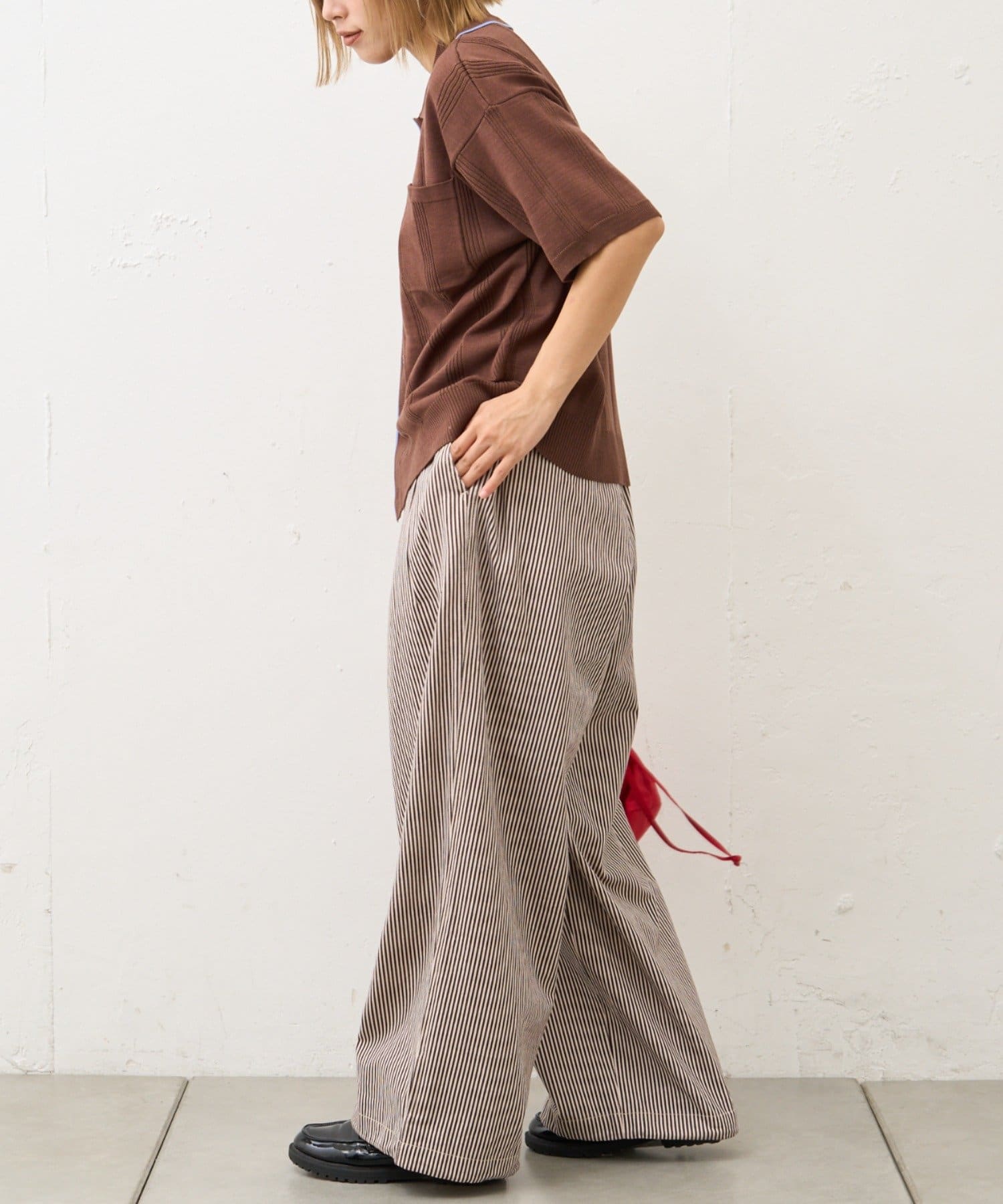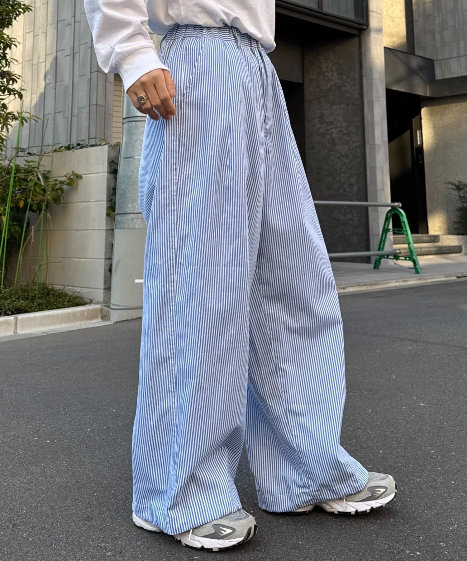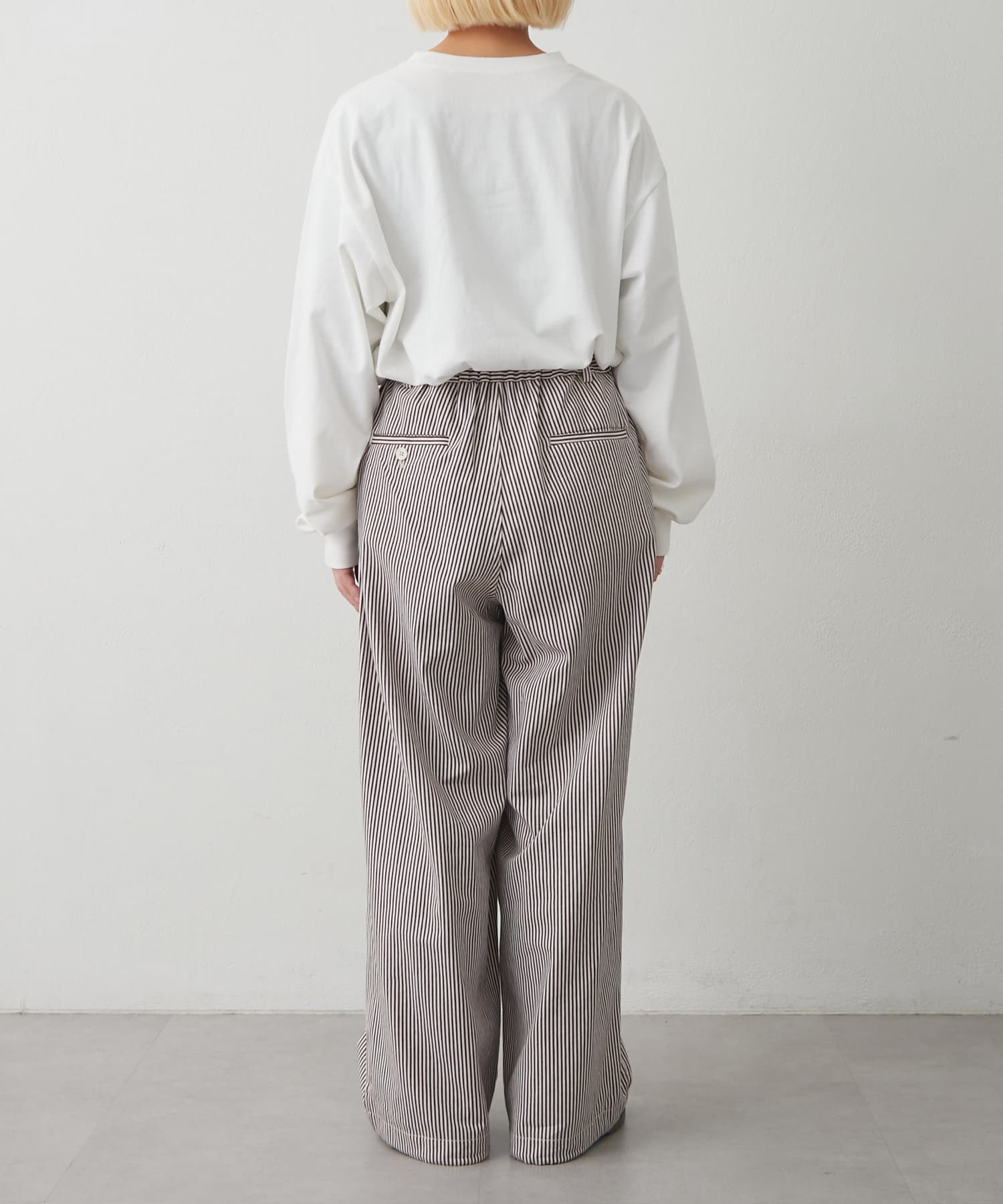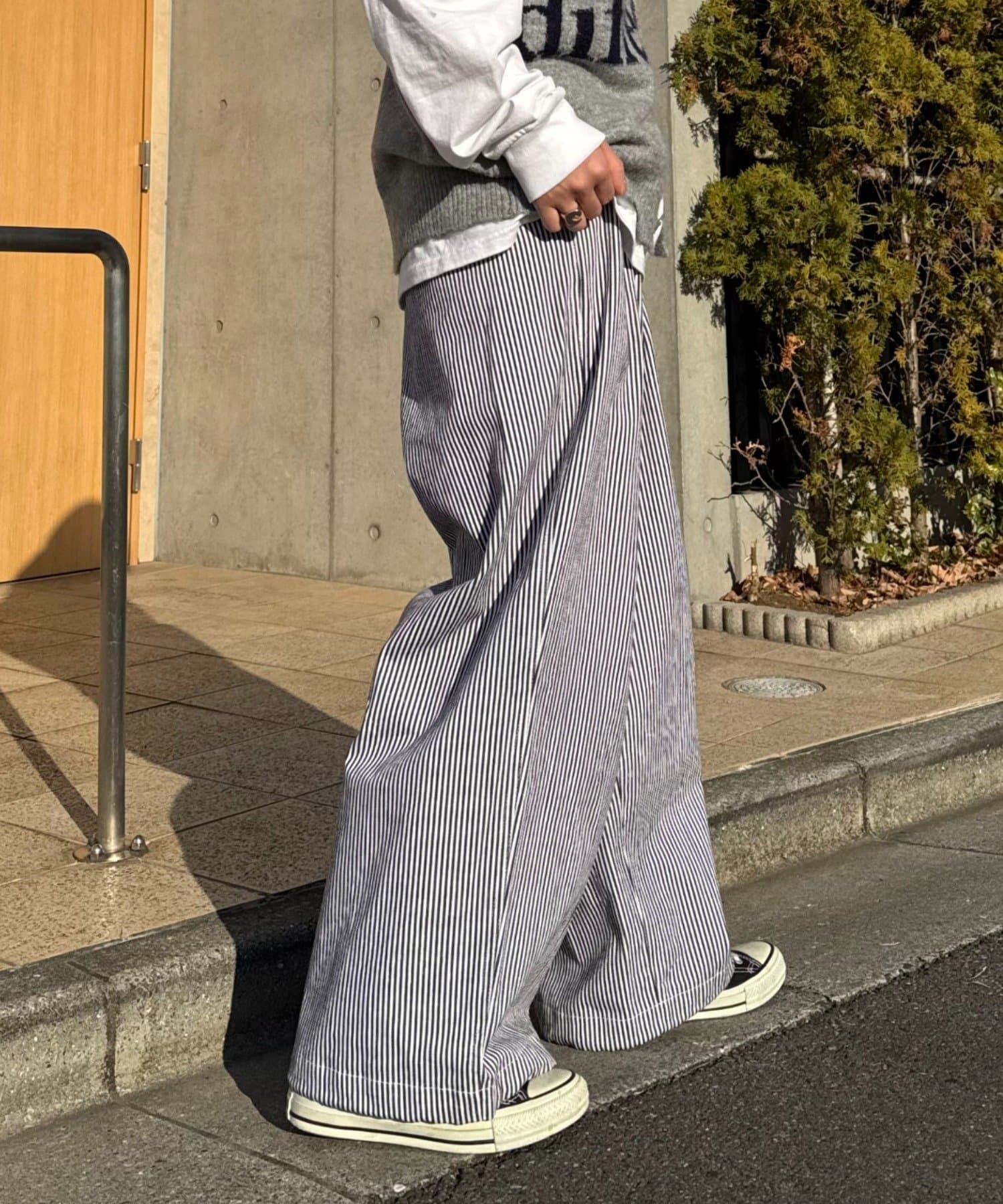 細やかなストライプ柄がスタイリングに表情をプラスするイージーパンツ