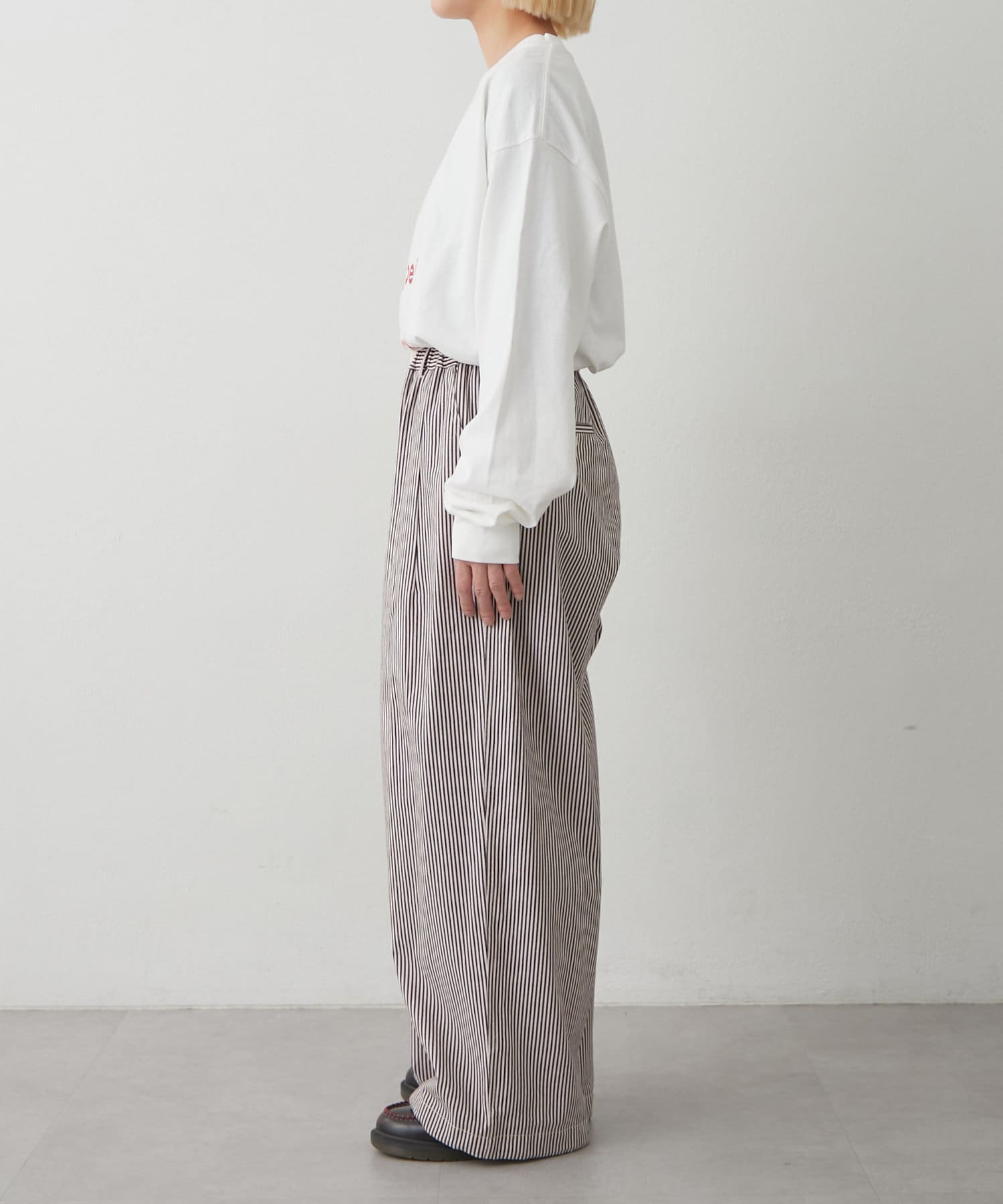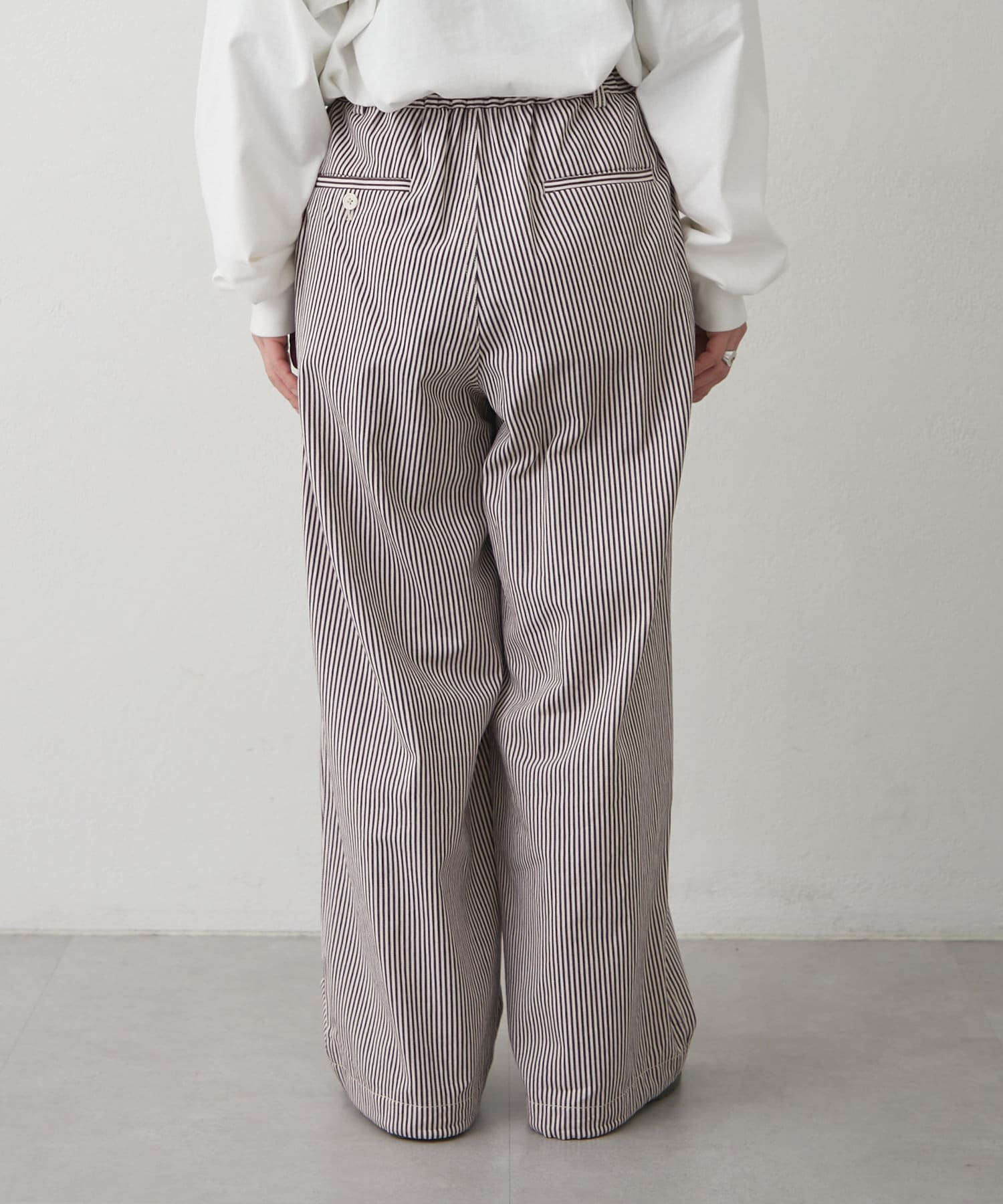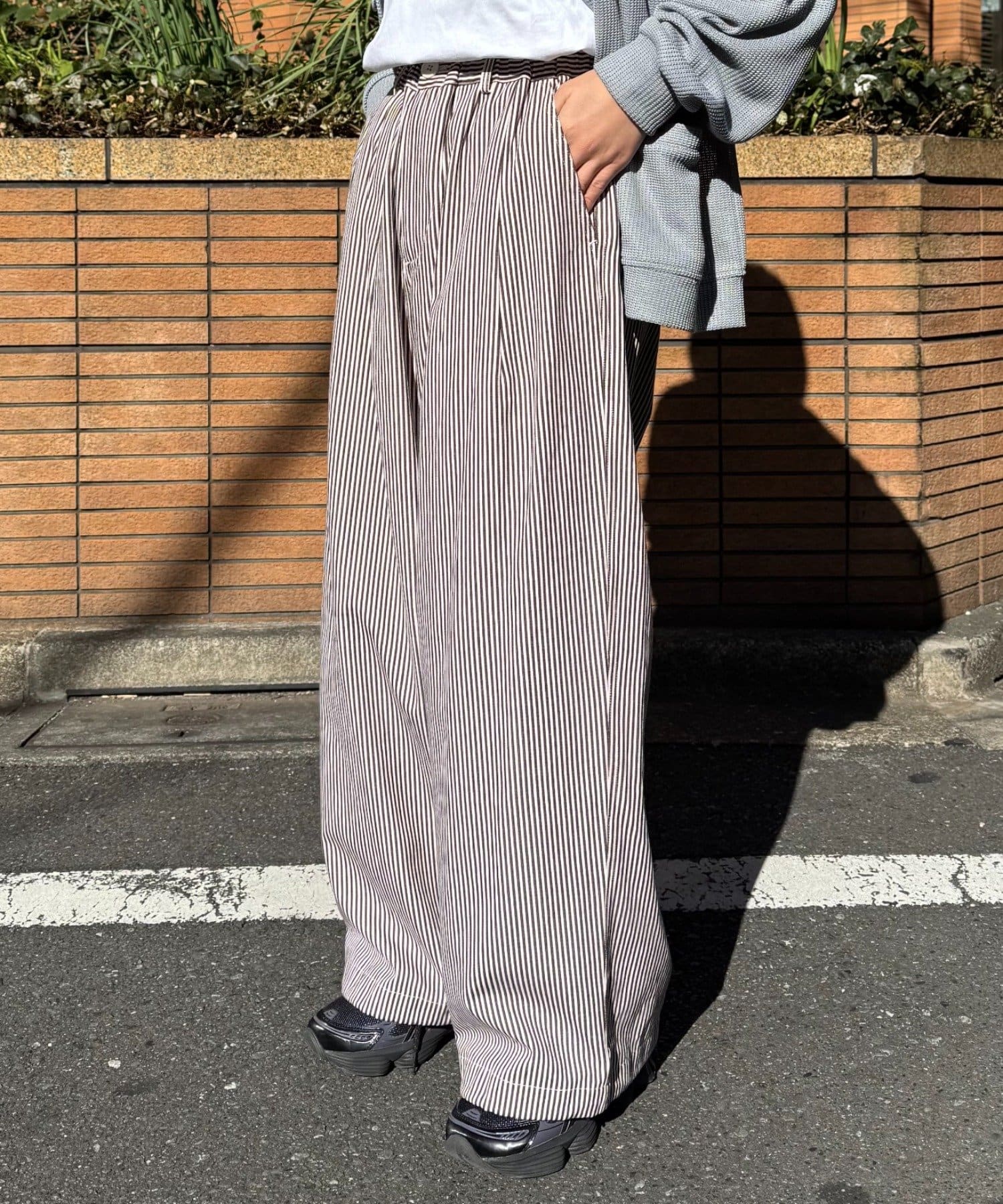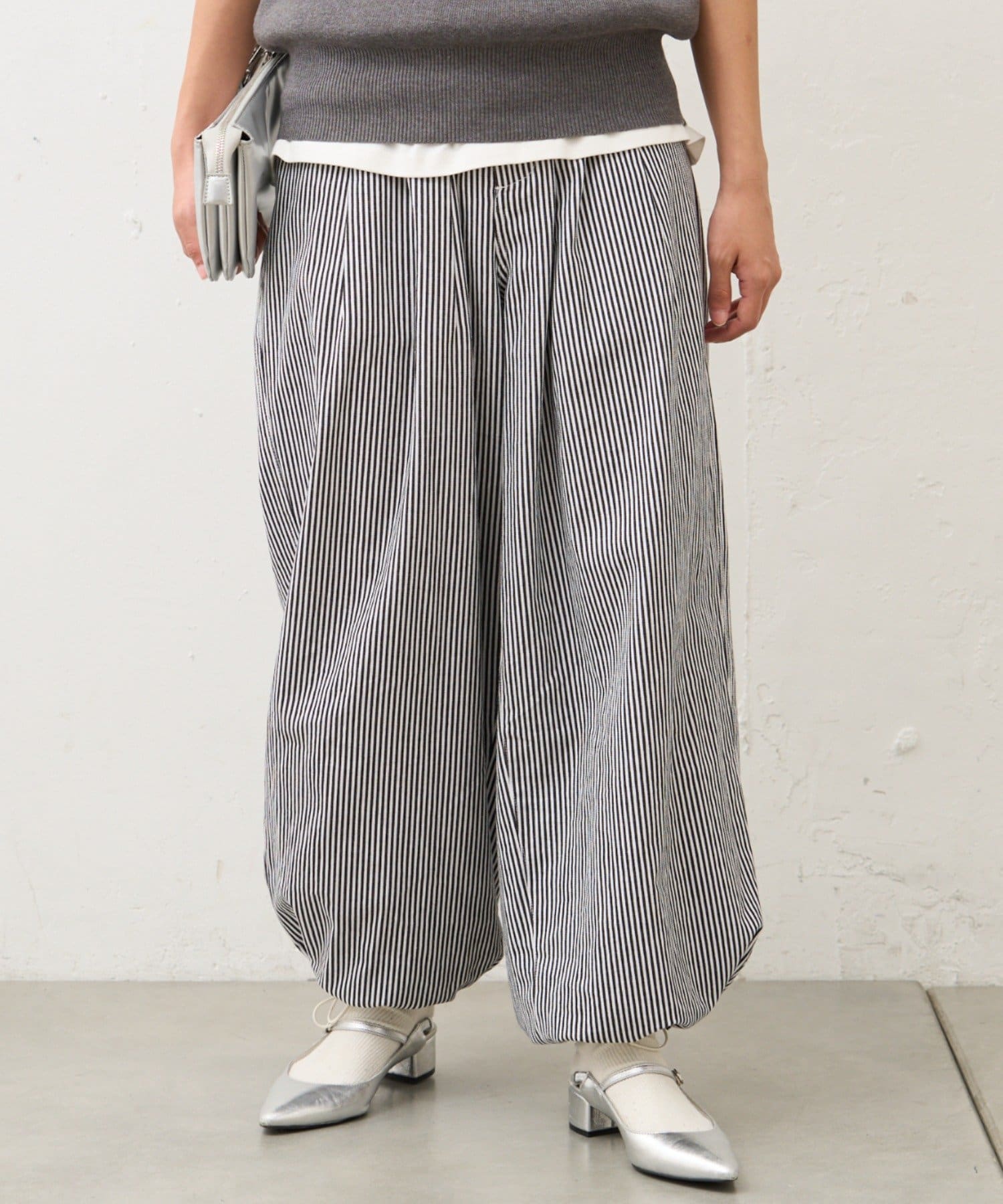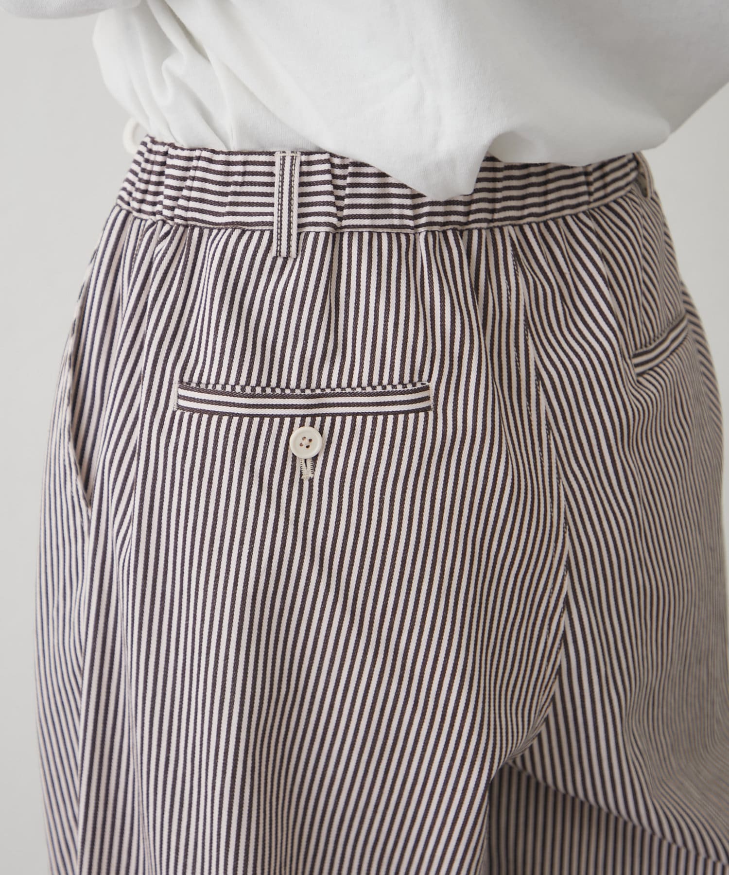 細やかなストライプ柄がスタイリングに表情をプラスするイージーパンツ