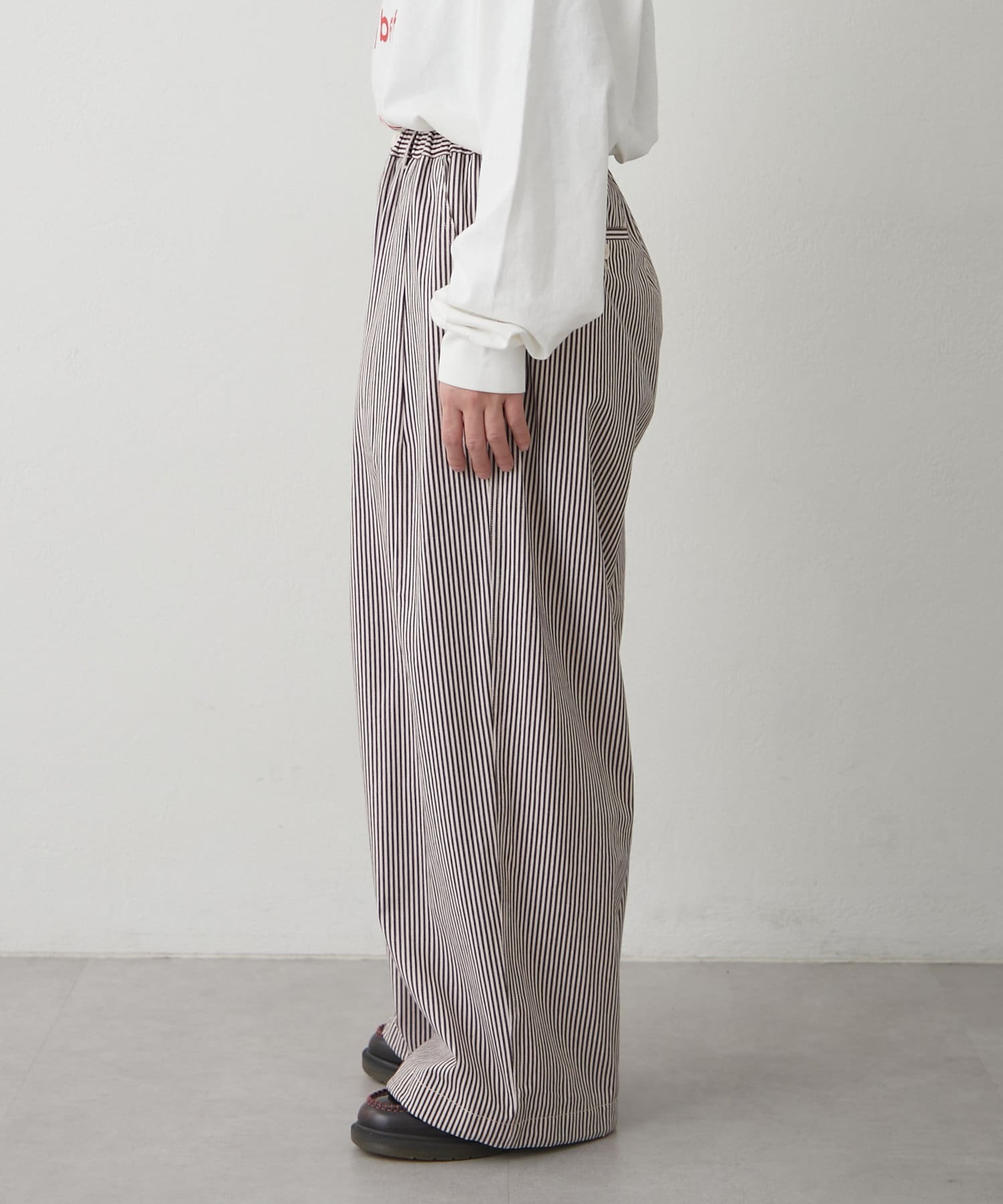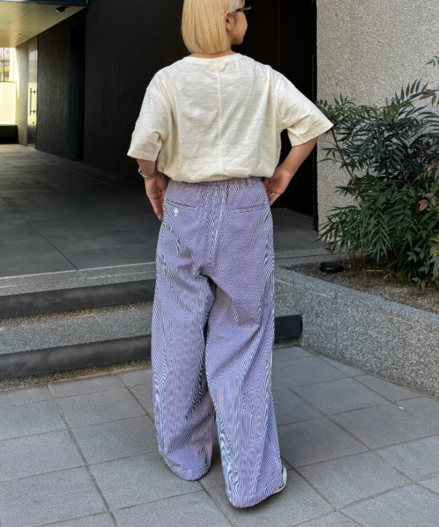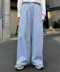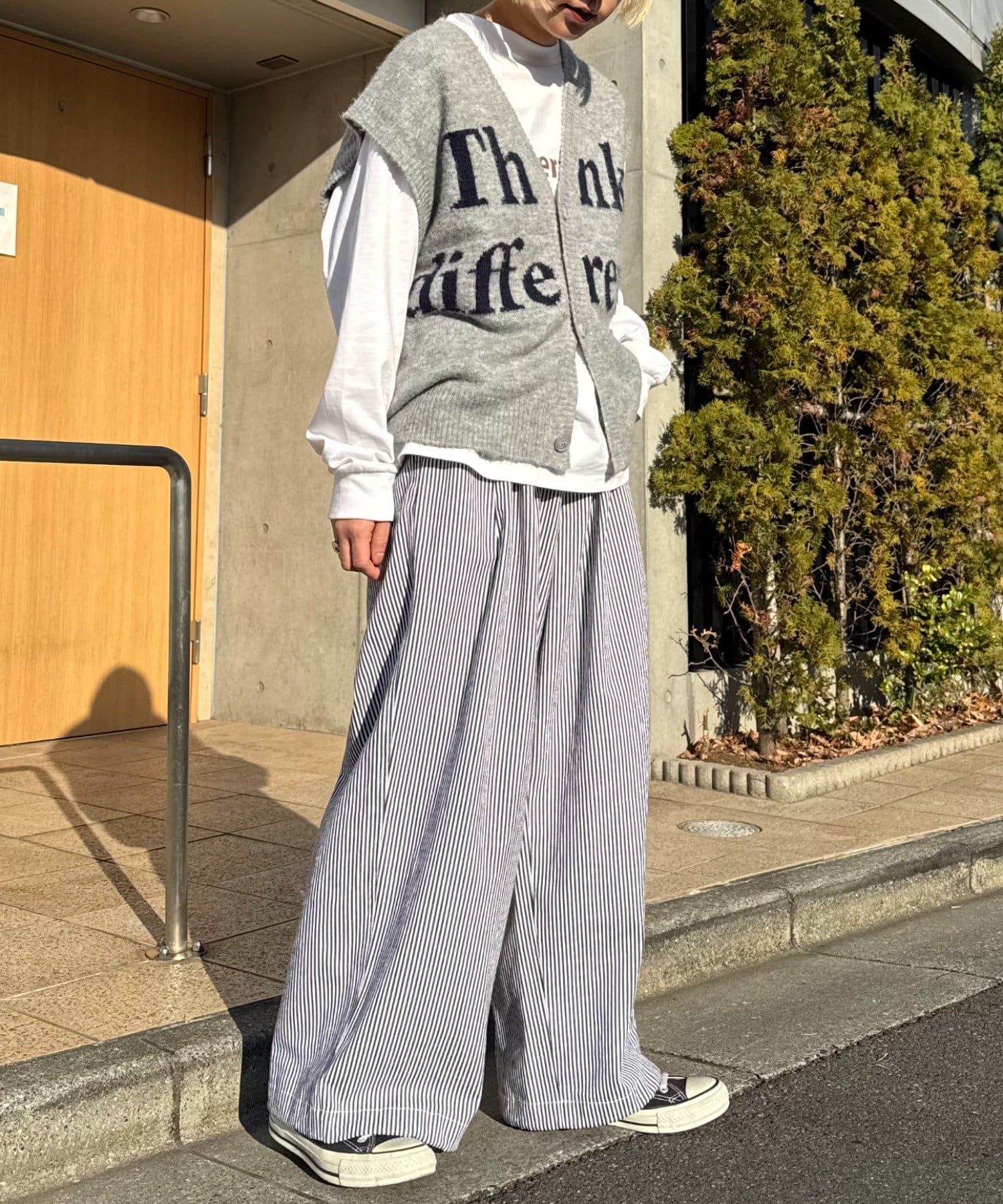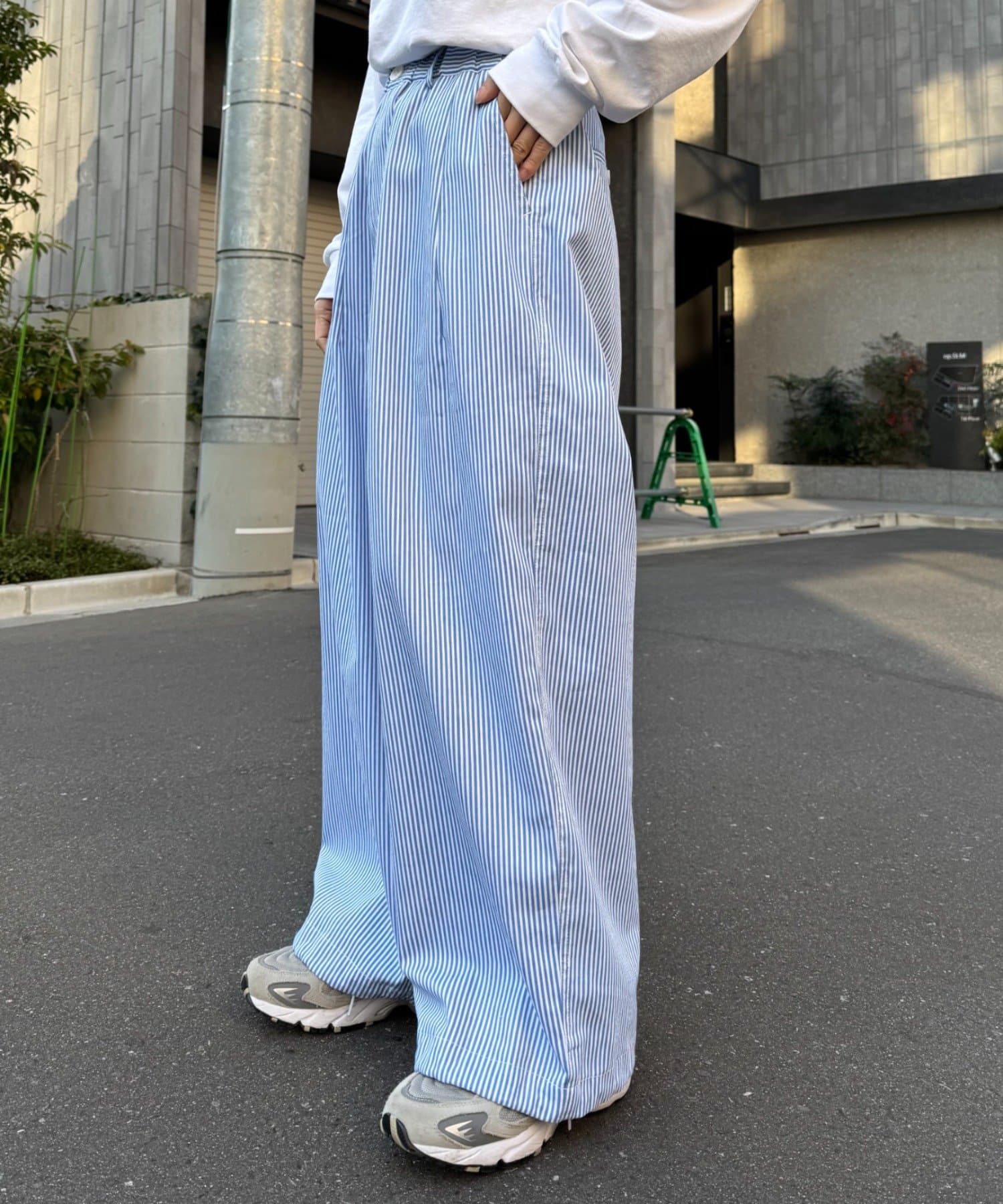 細やかなストライプ柄がスタイリングに表情をプラスするイージーパンツ