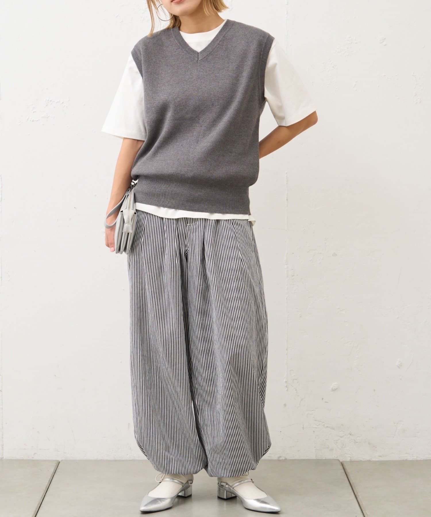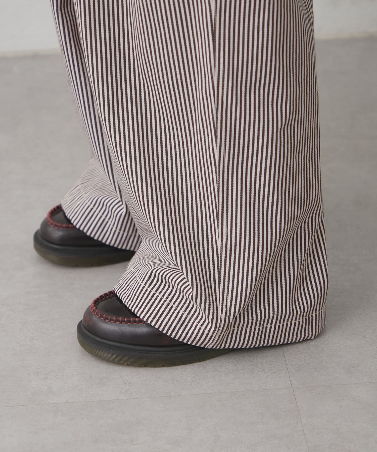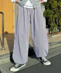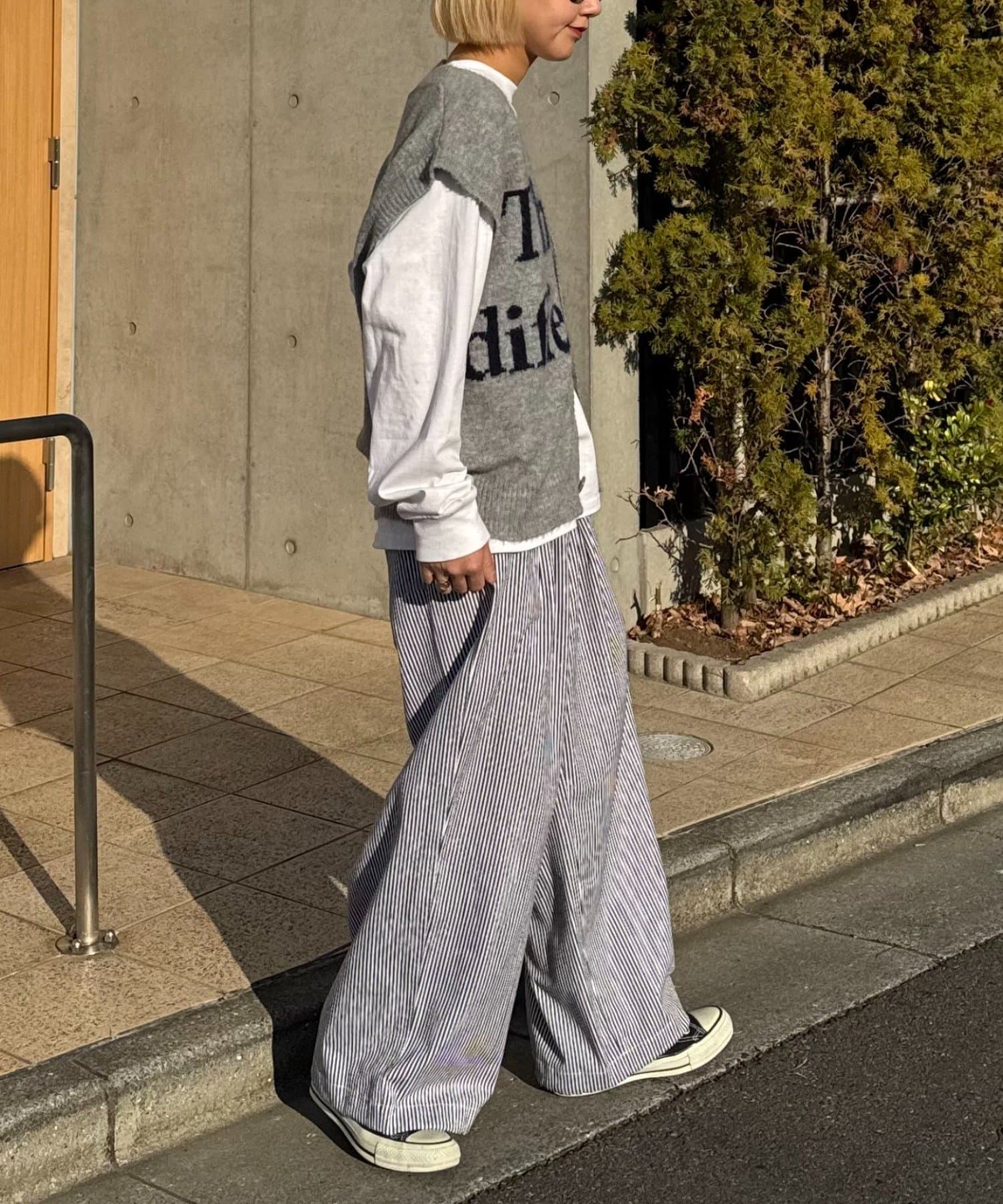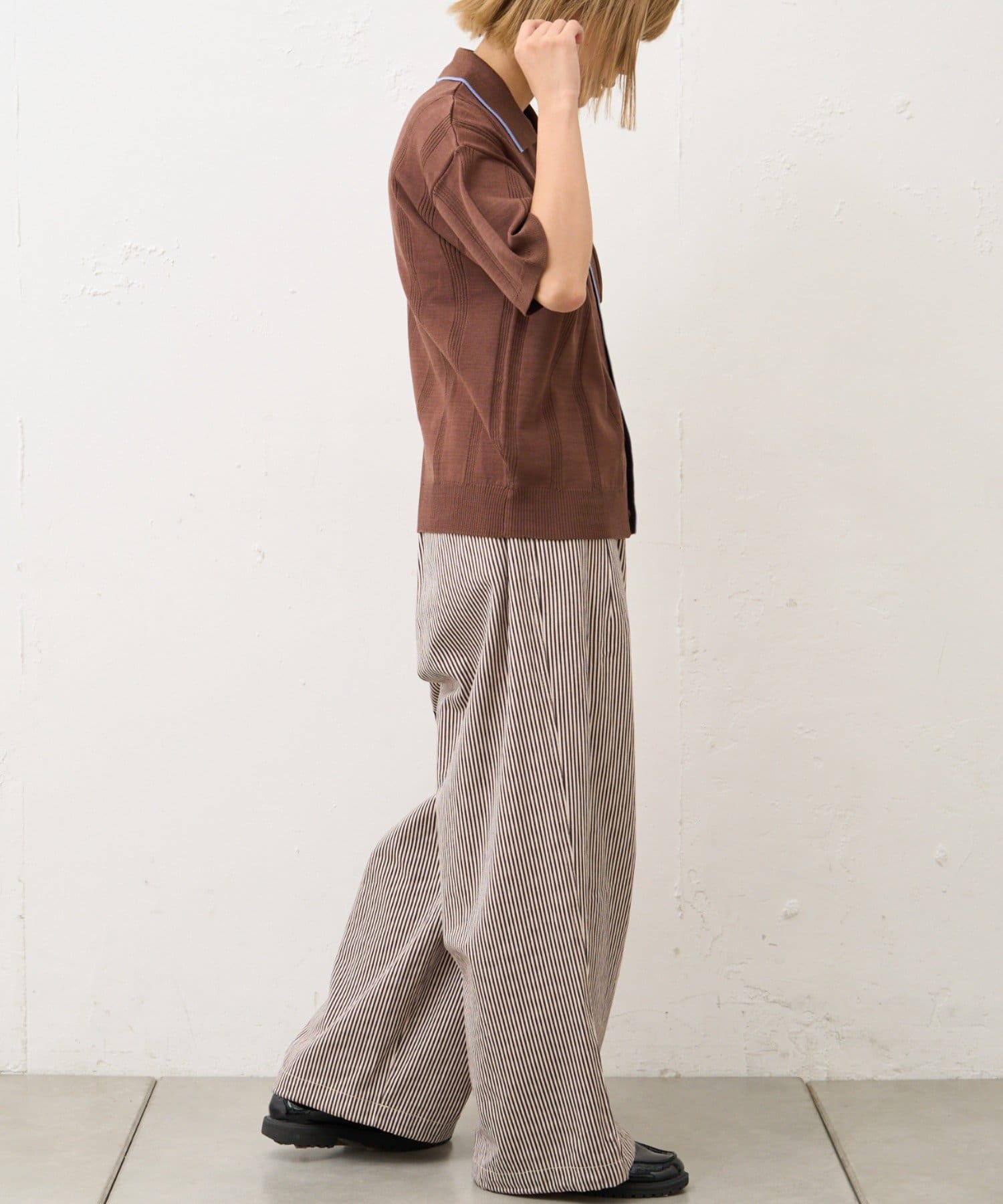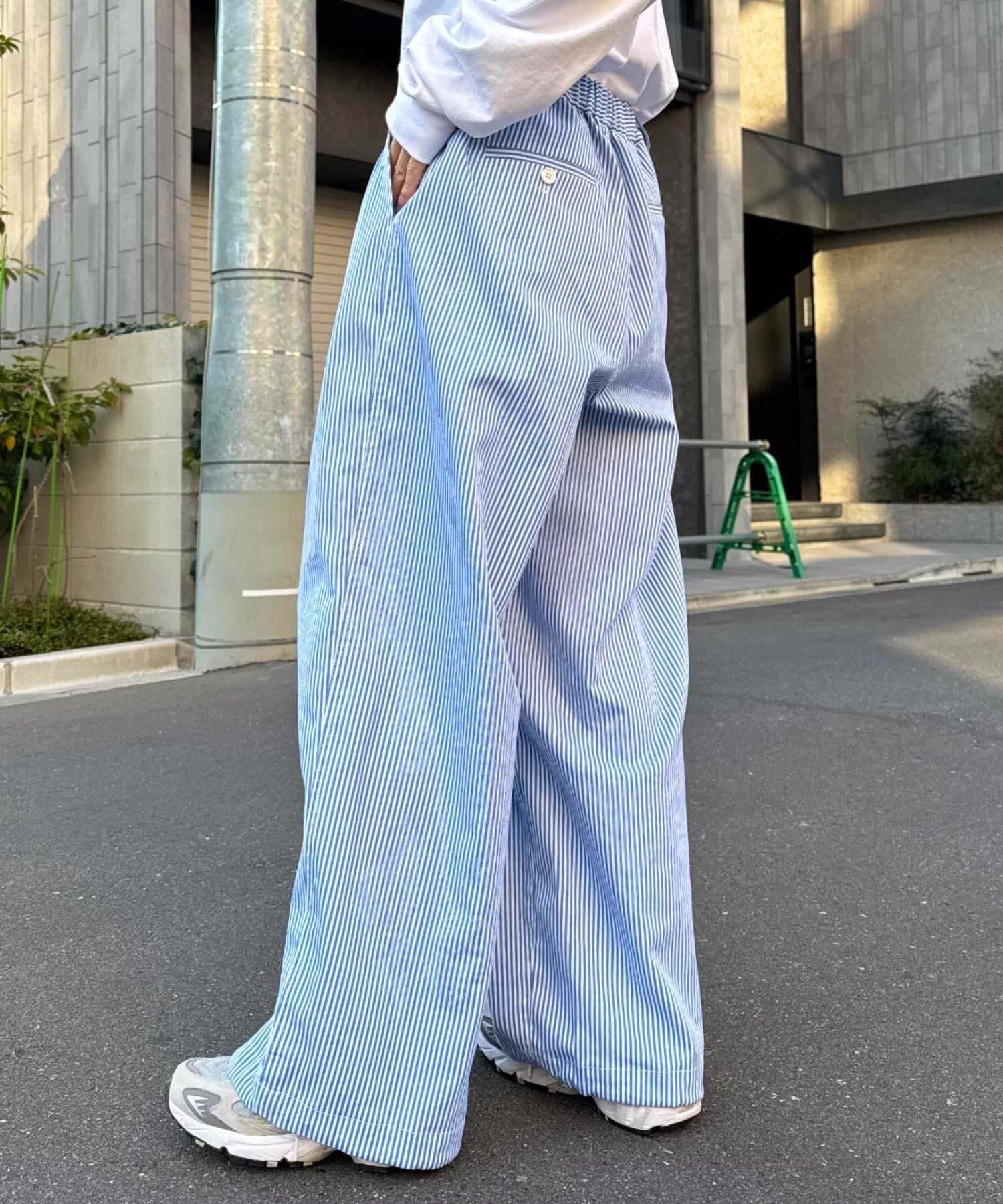 細やかなストライプ柄がスタイリングに表情をプラスするイージーパンツ