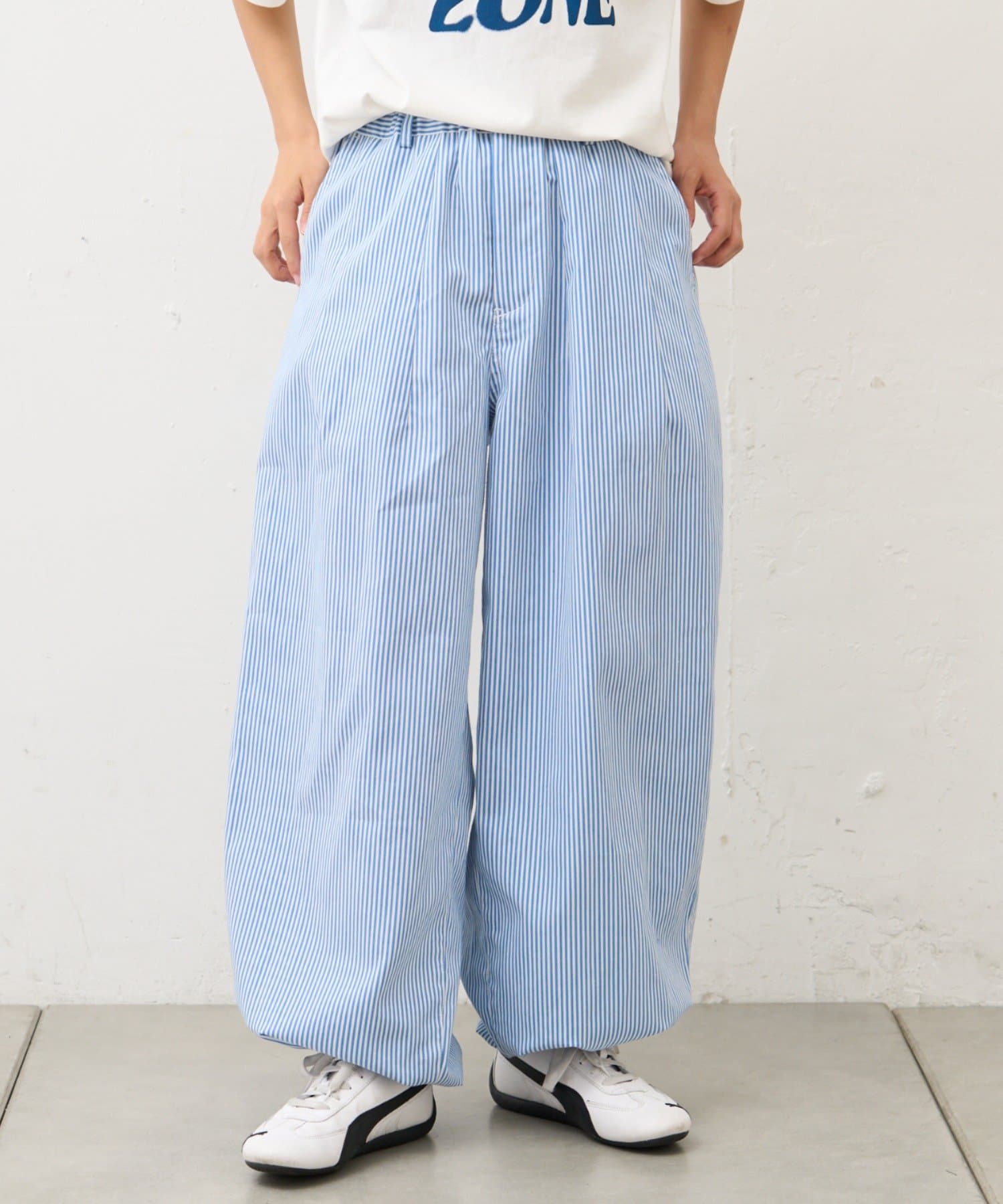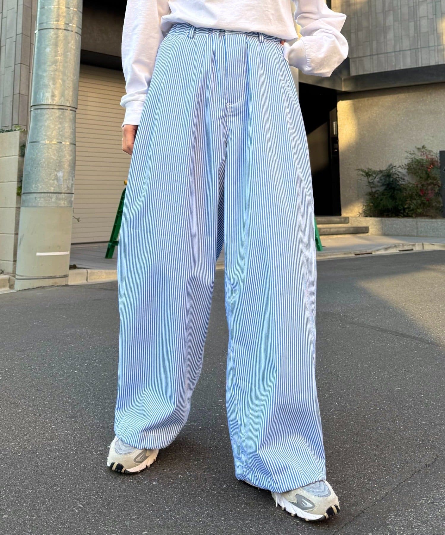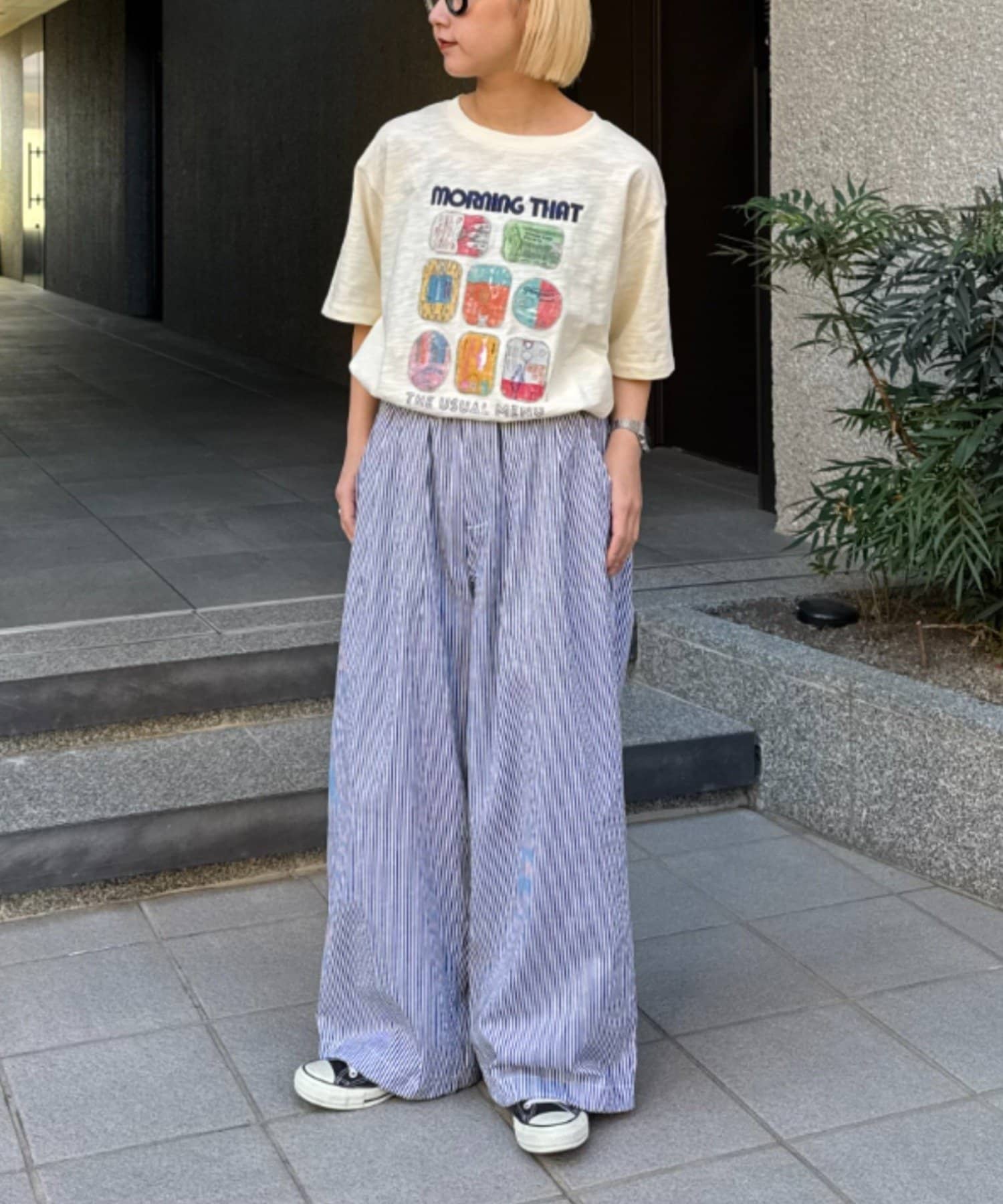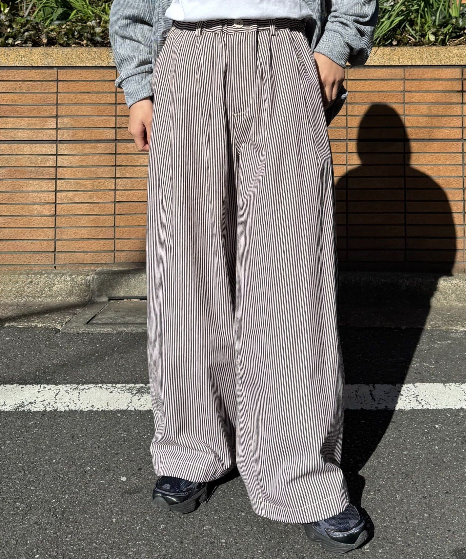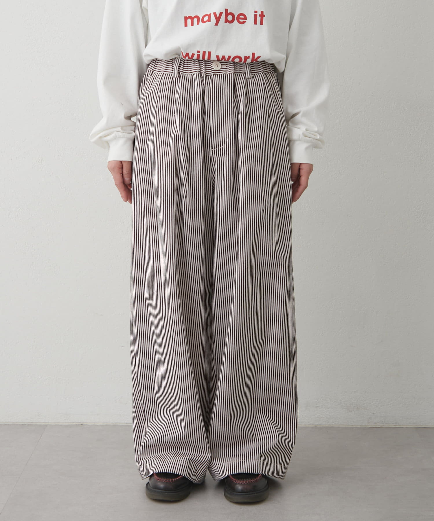 細やかなストライプ柄がスタイリングに表情をプラスするイージーパンツ