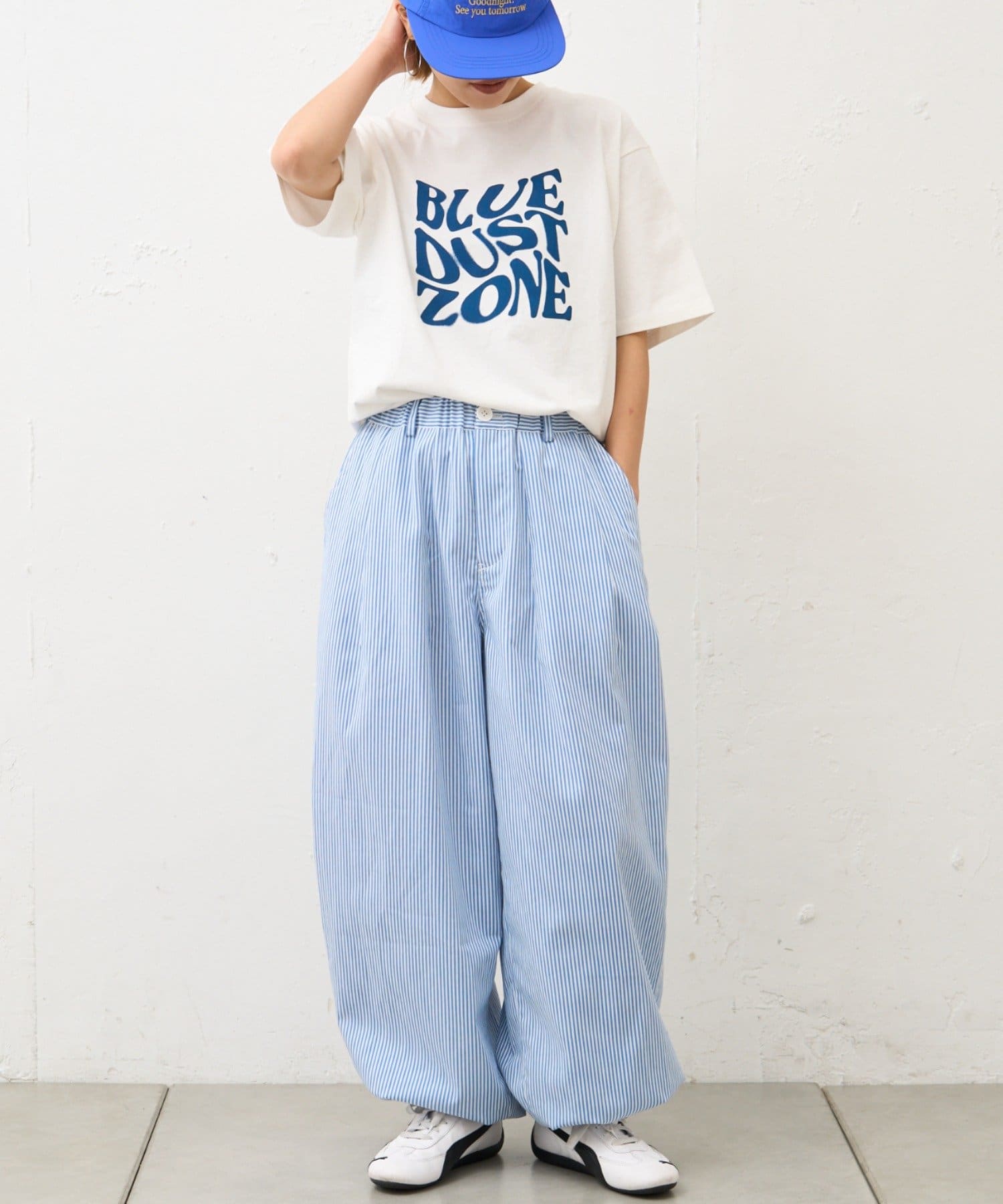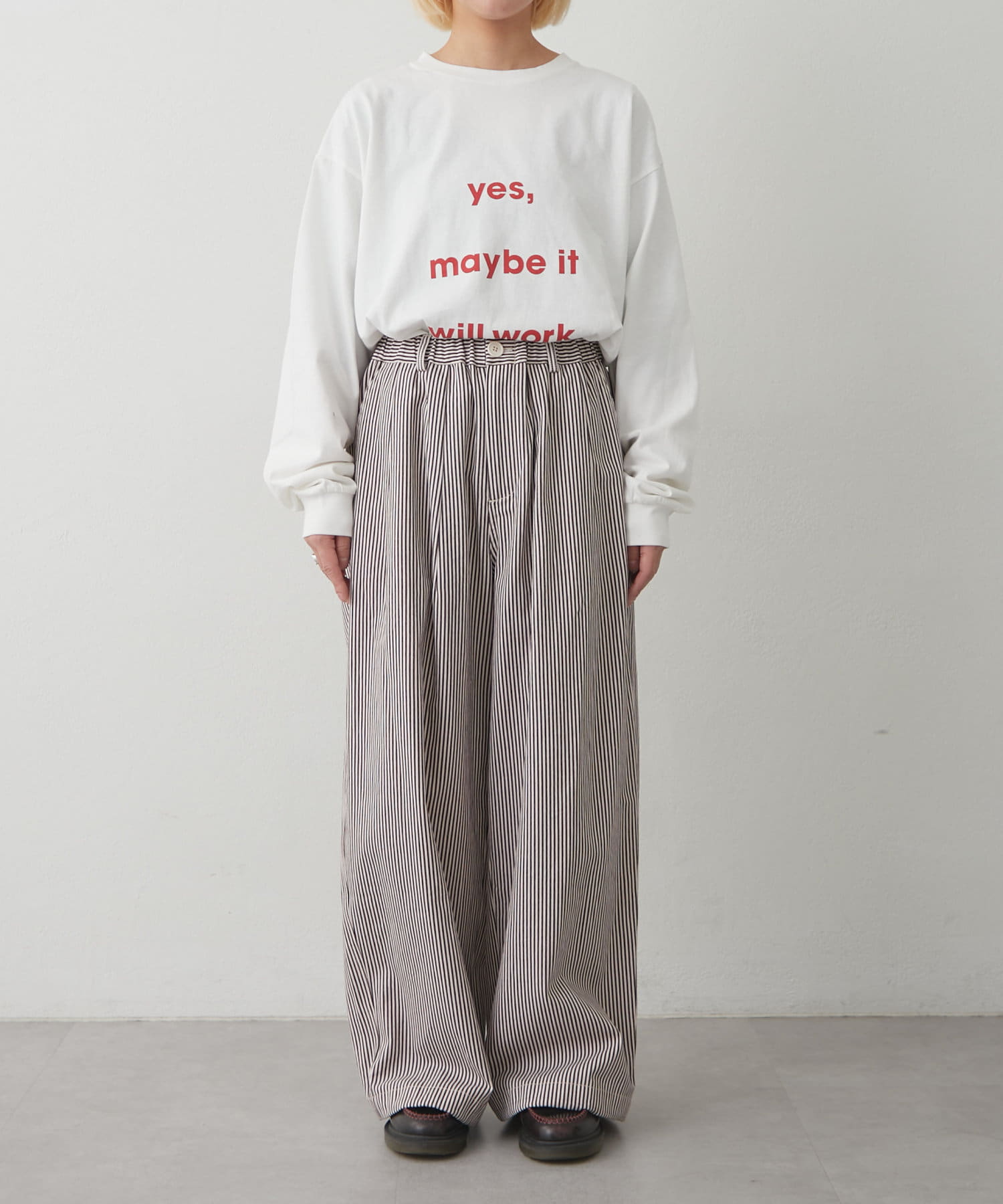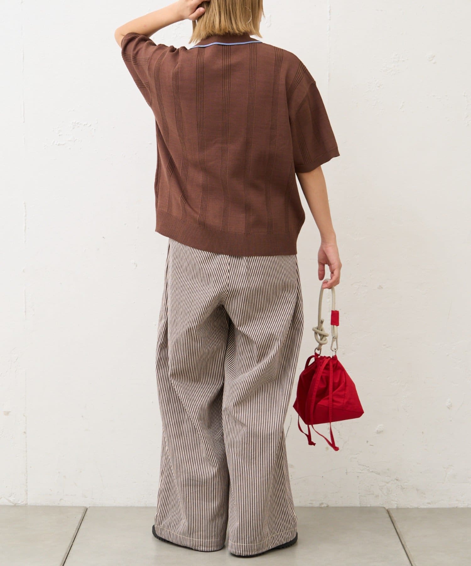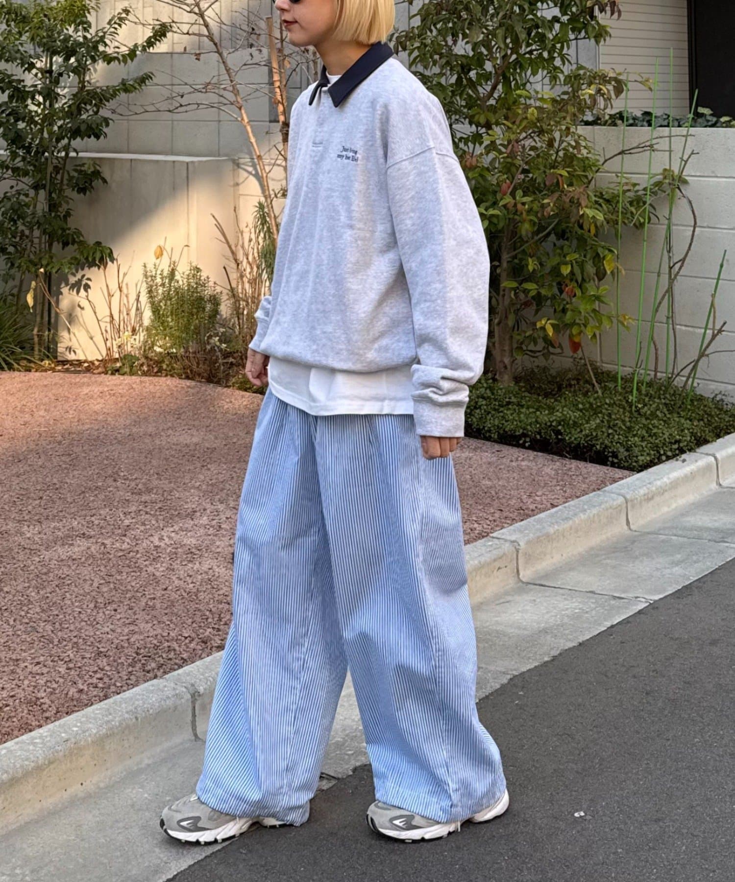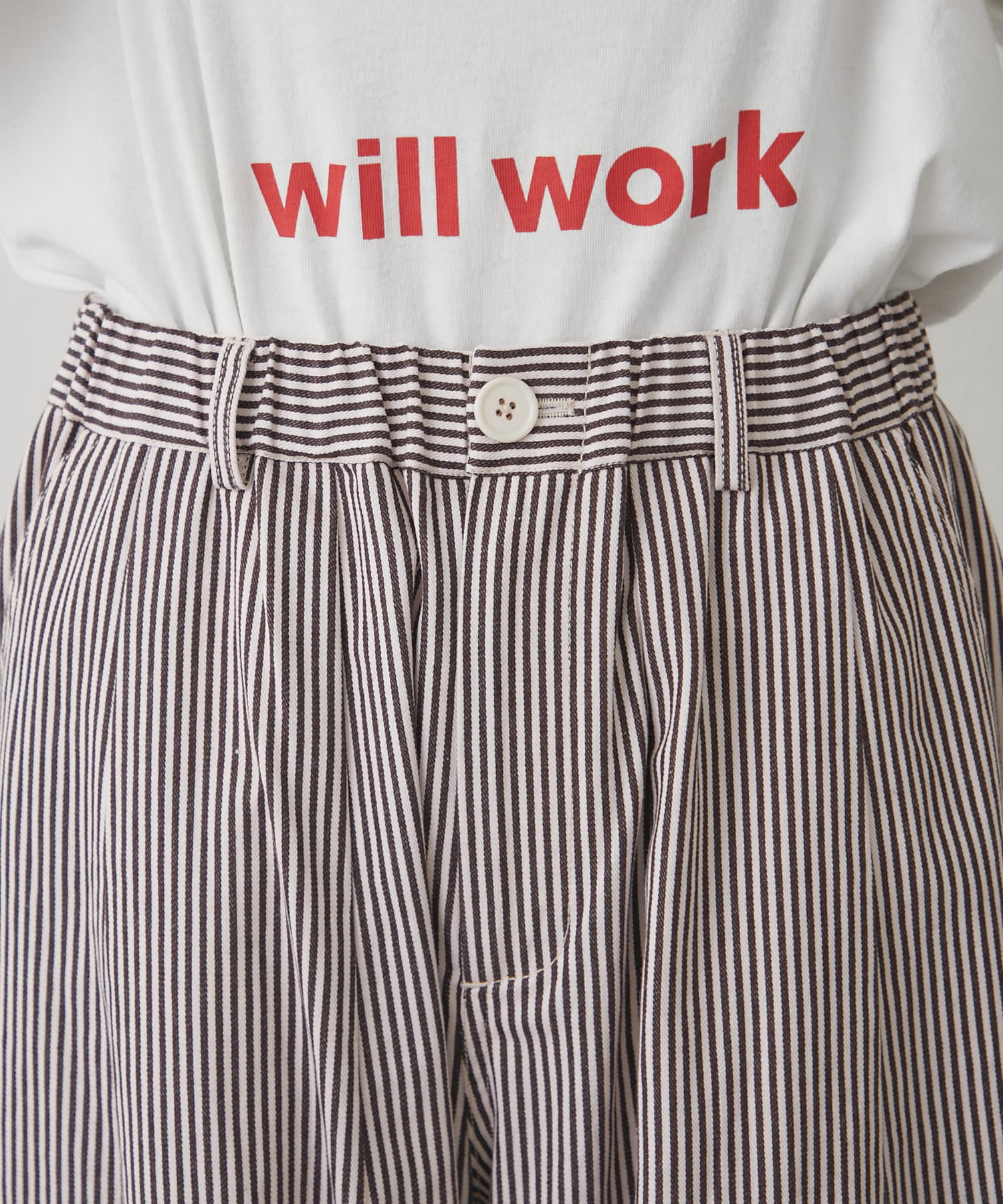細やかなストライプ柄がスタイリングに表情をプラスするイージーパンツ
