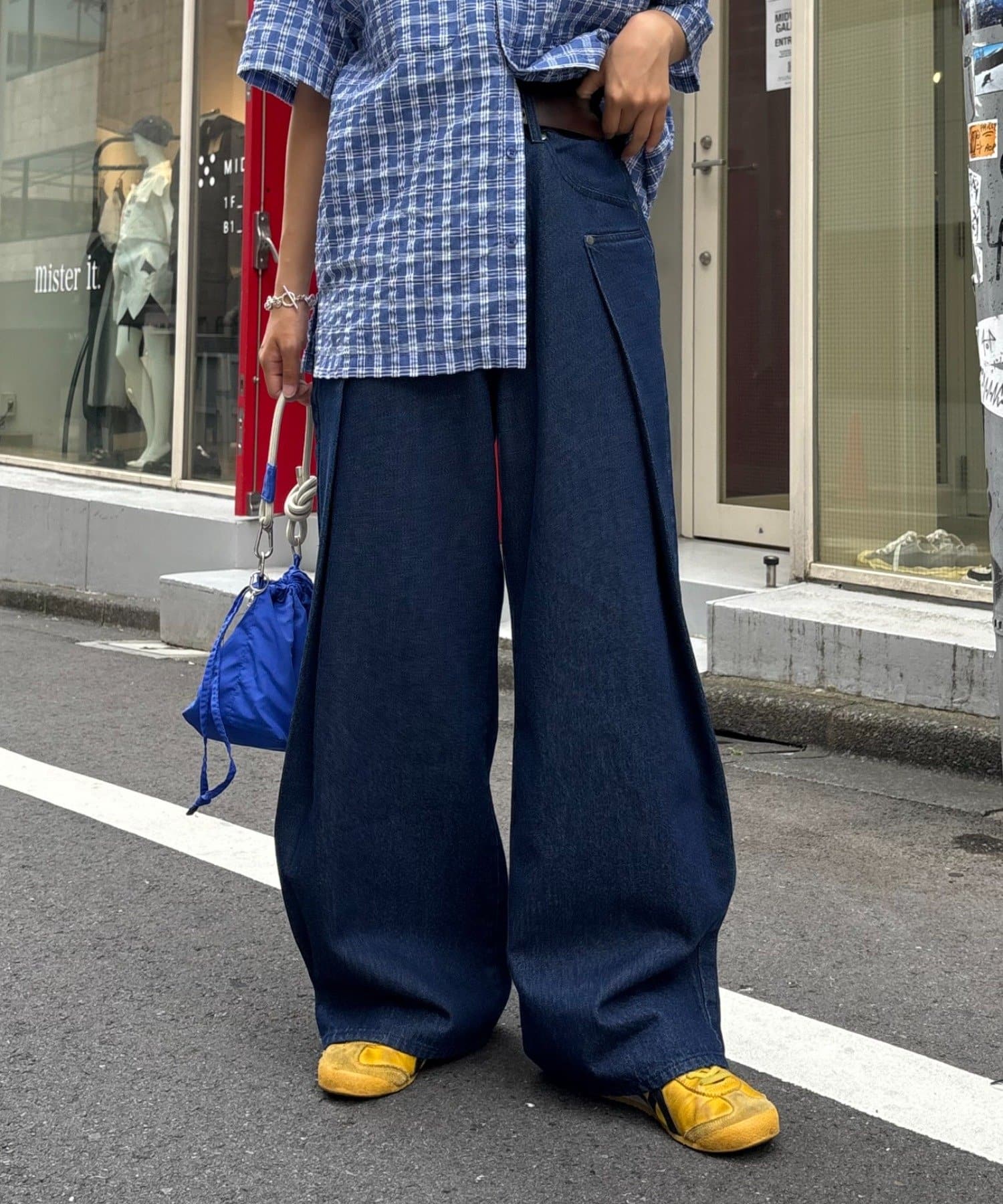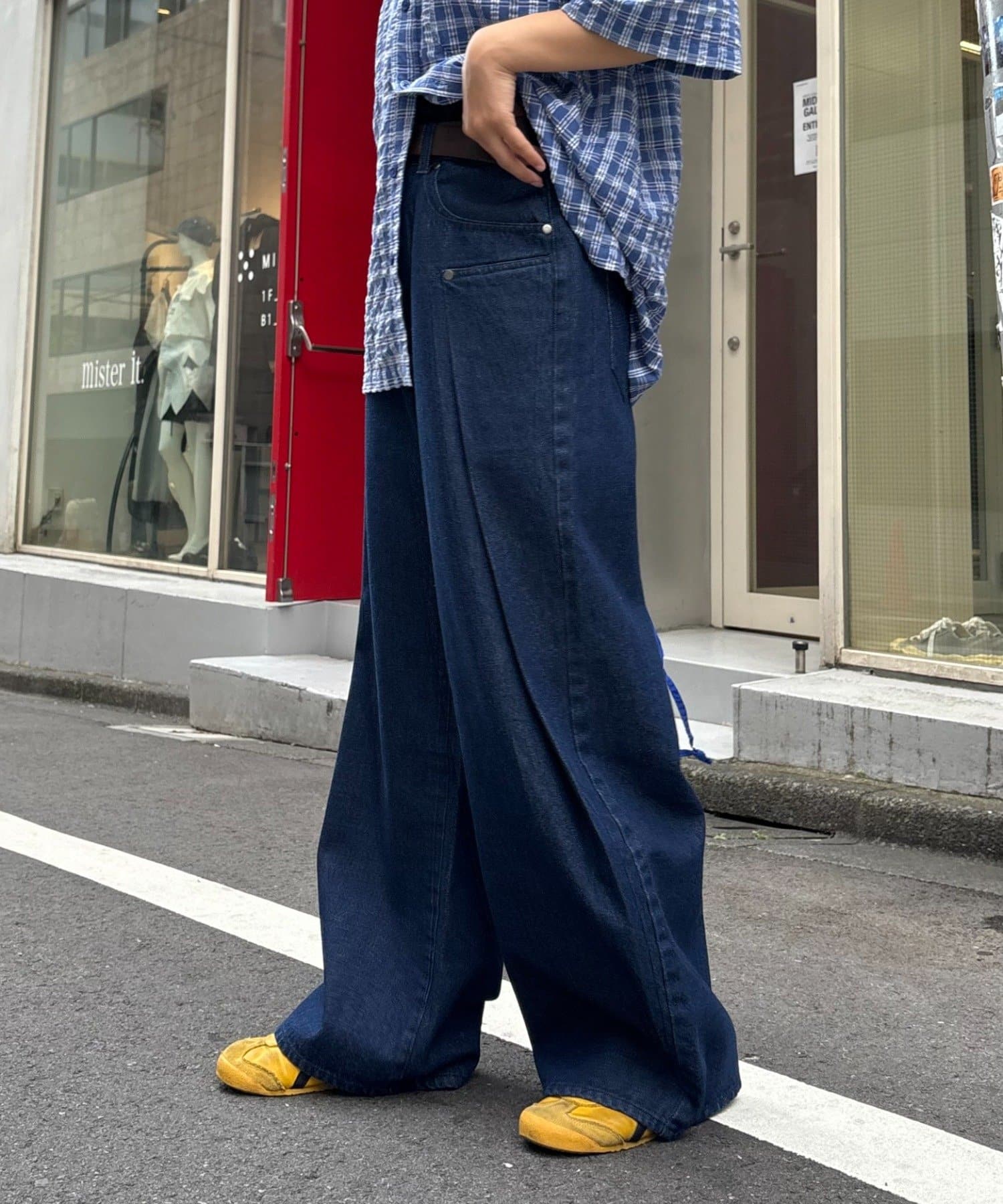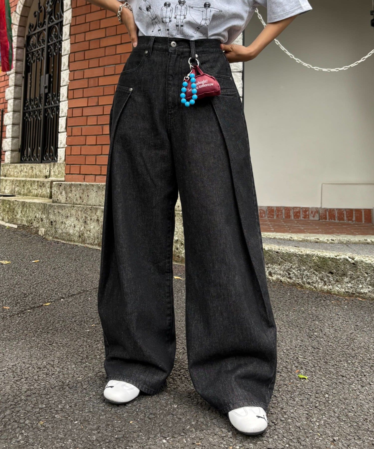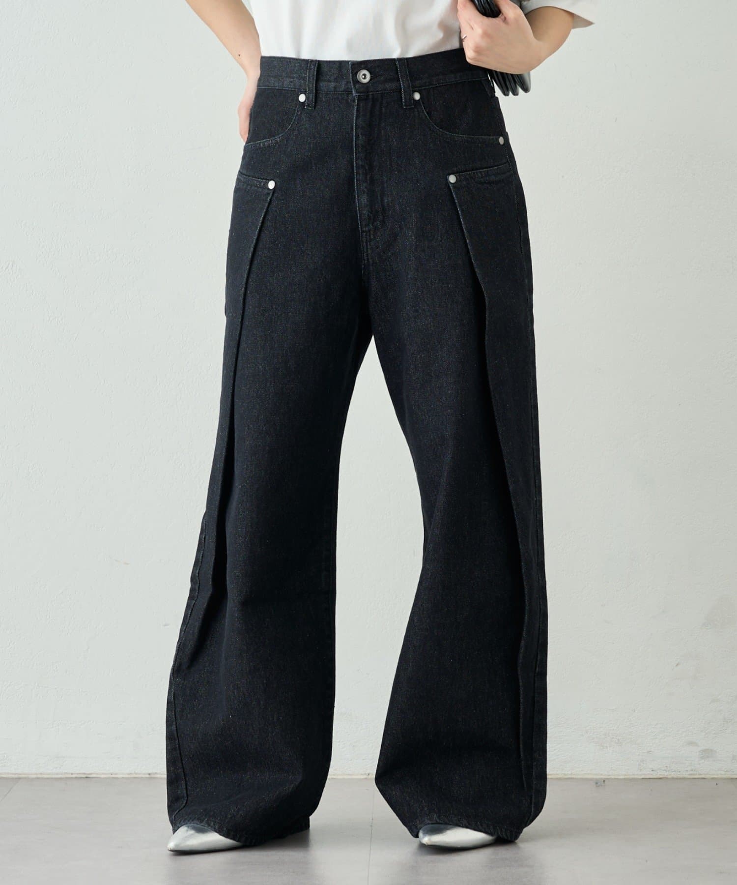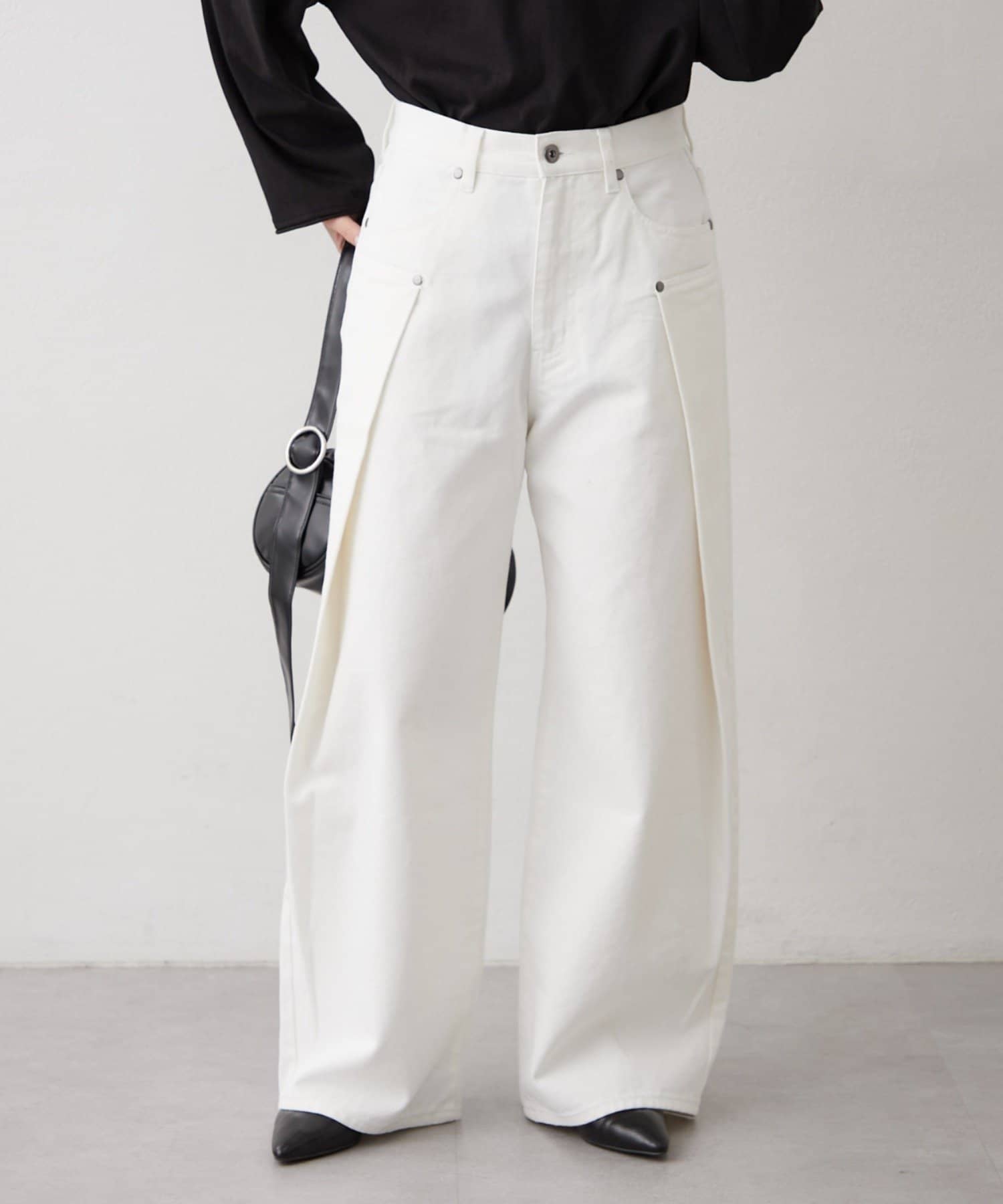 太もも部分から入ったタックがおしゃれ見えするデニムパンツが登場。