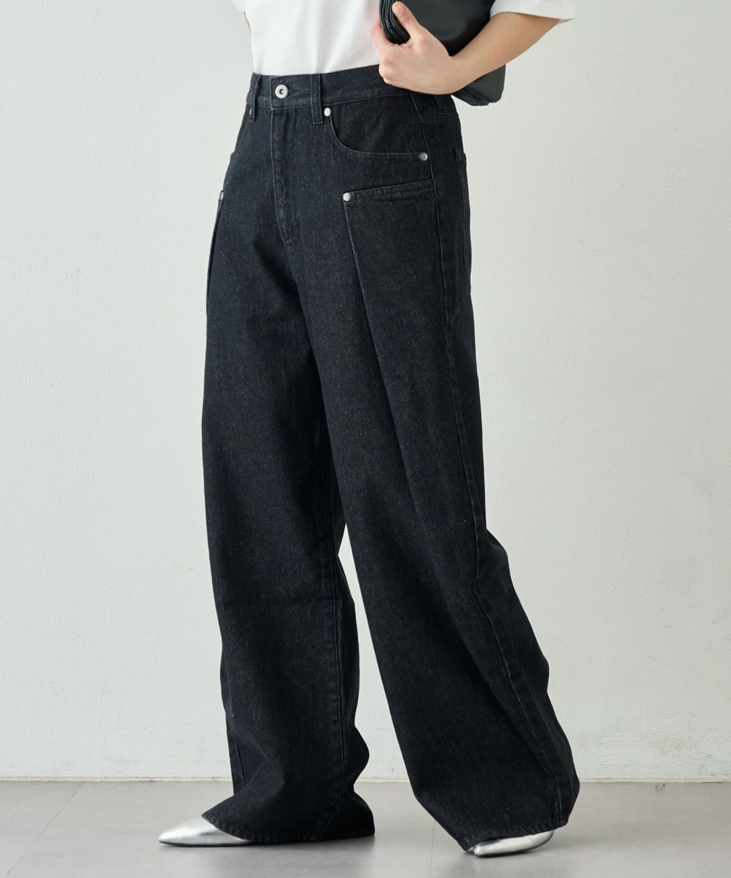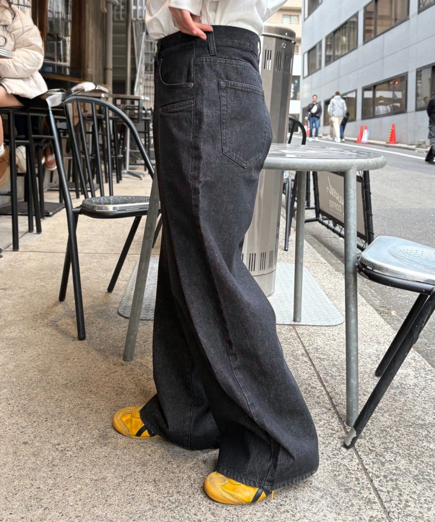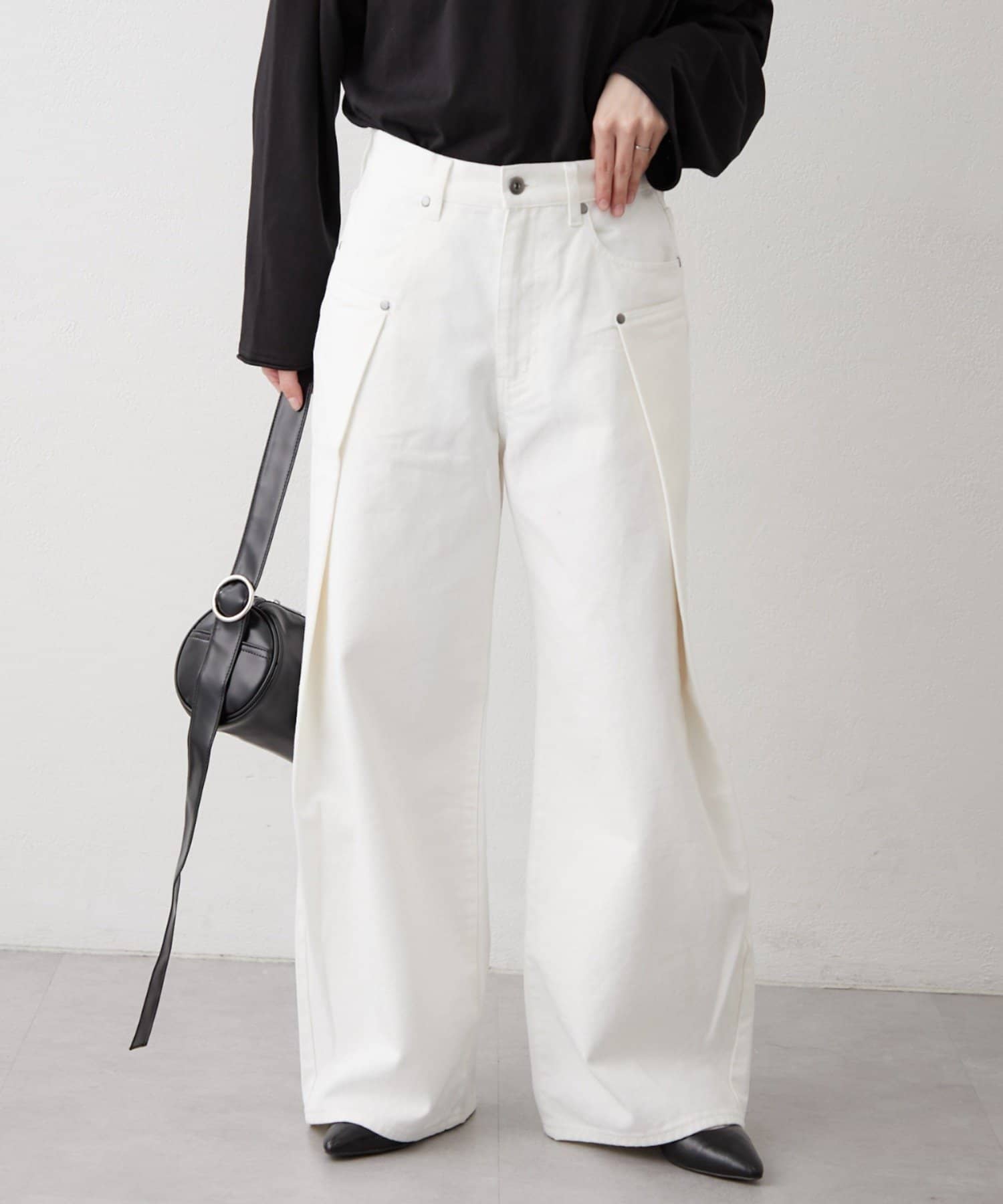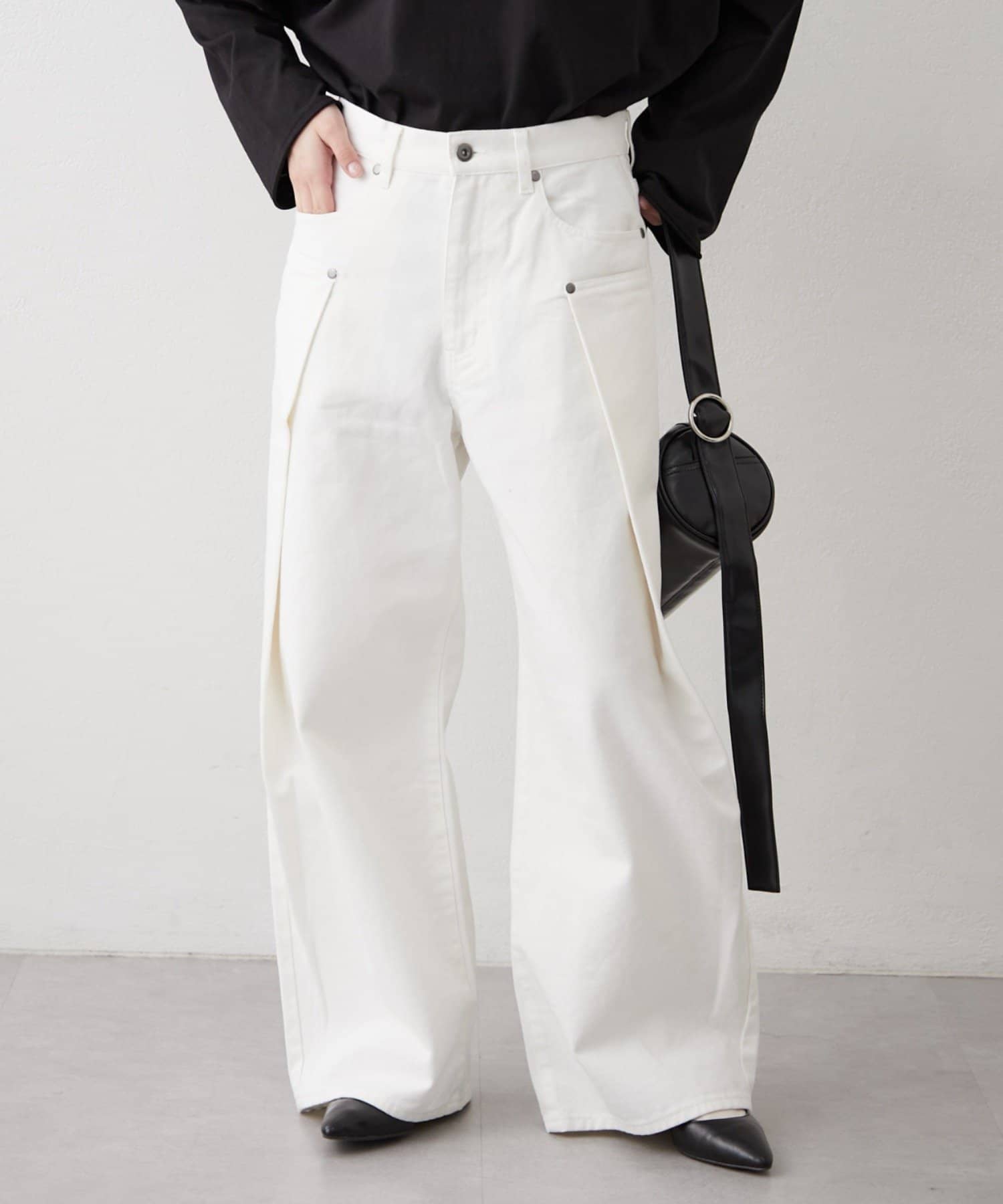 太もも部分から入ったタックがおしゃれ見えするデニムパンツが登場。