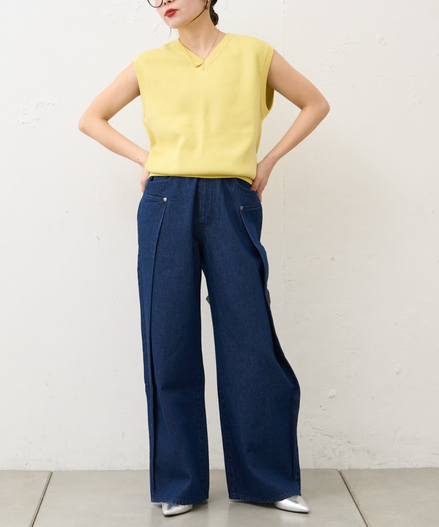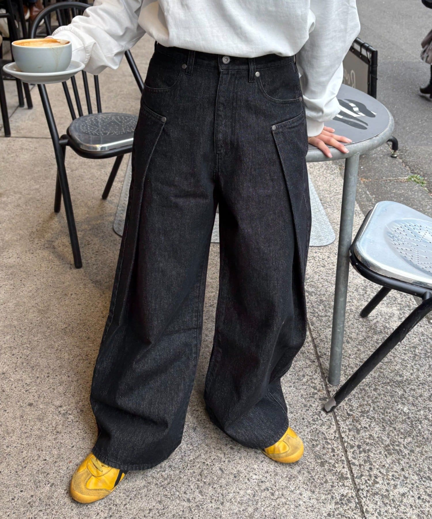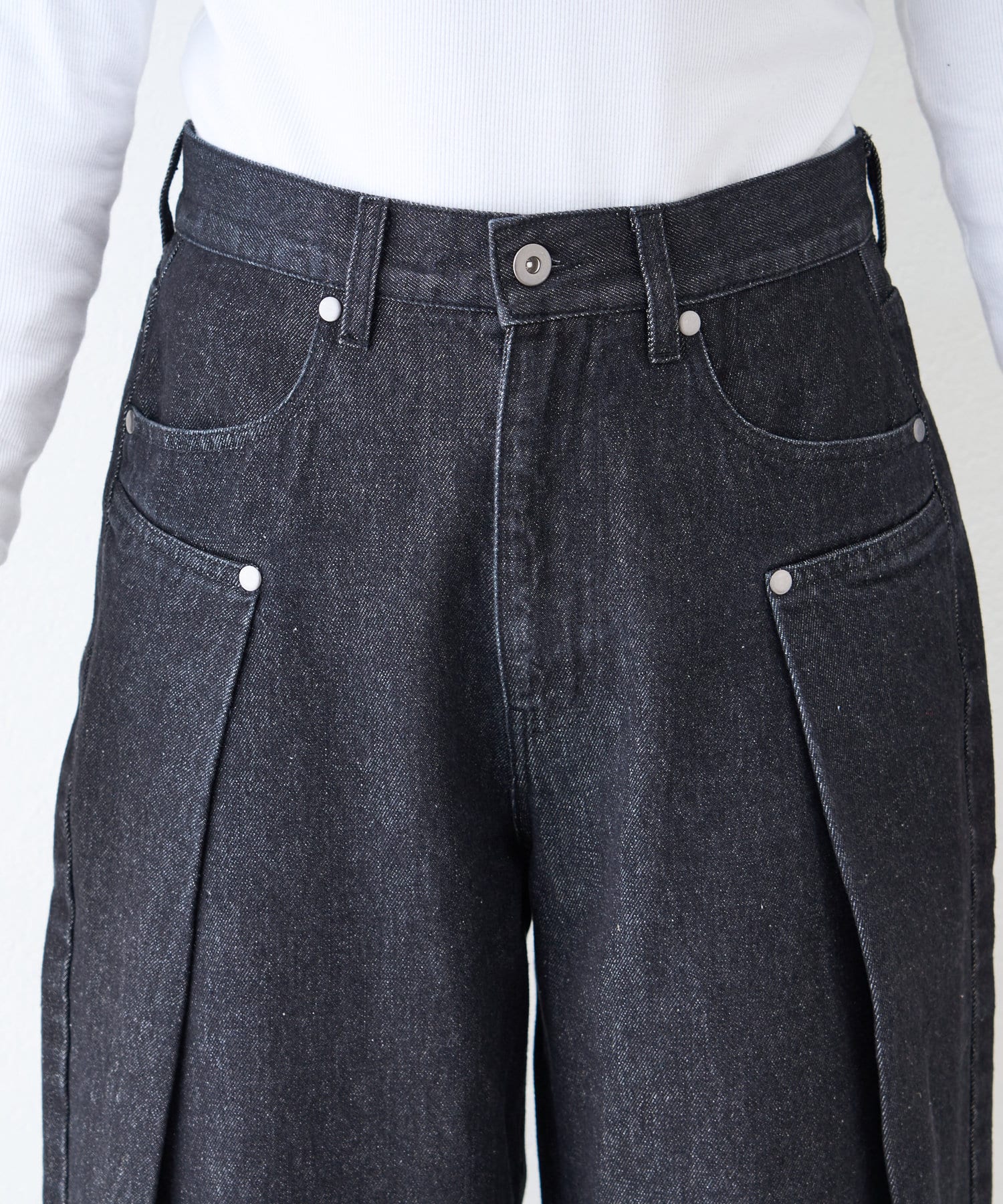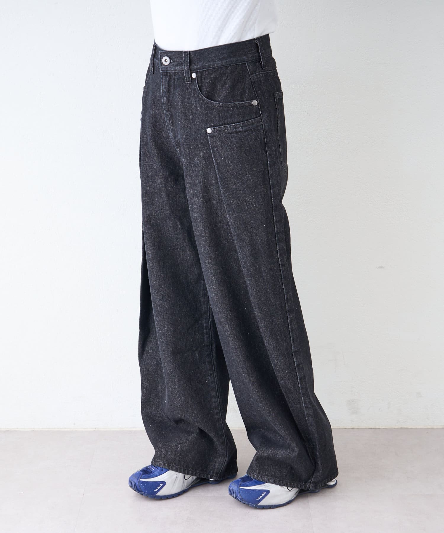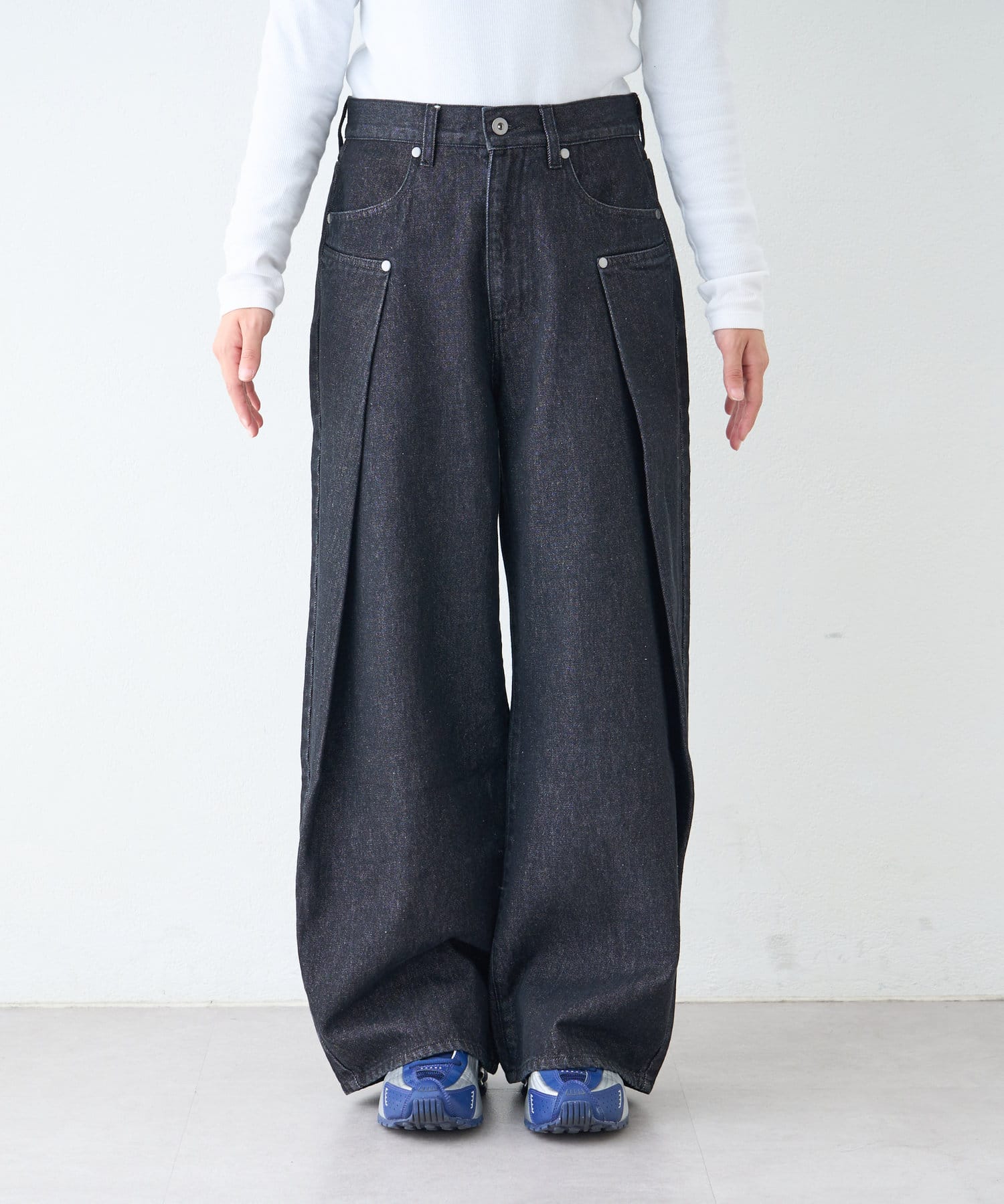 太もも部分から入ったタックがおしゃれ見えするデニムパンツが登場。