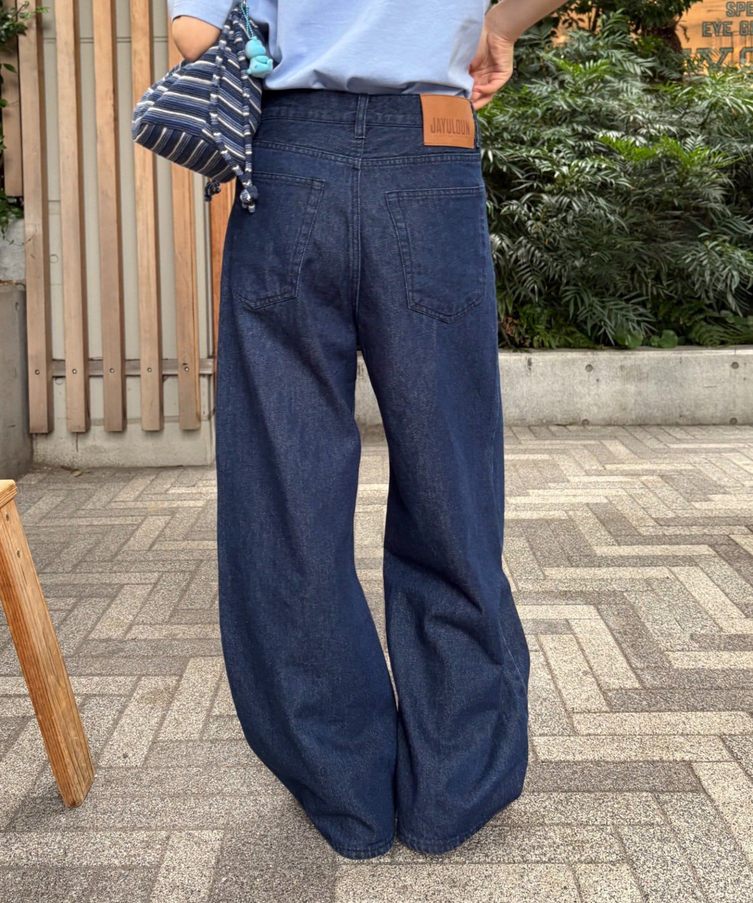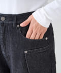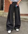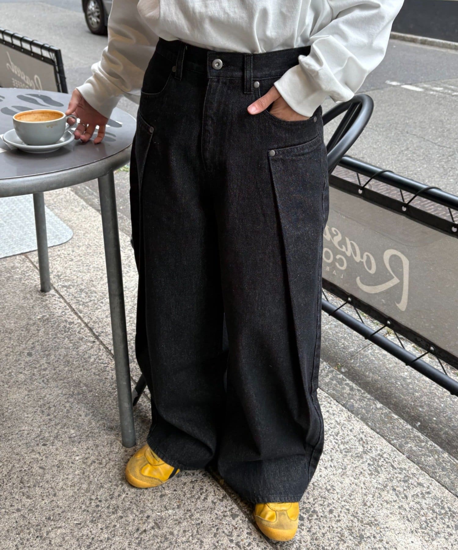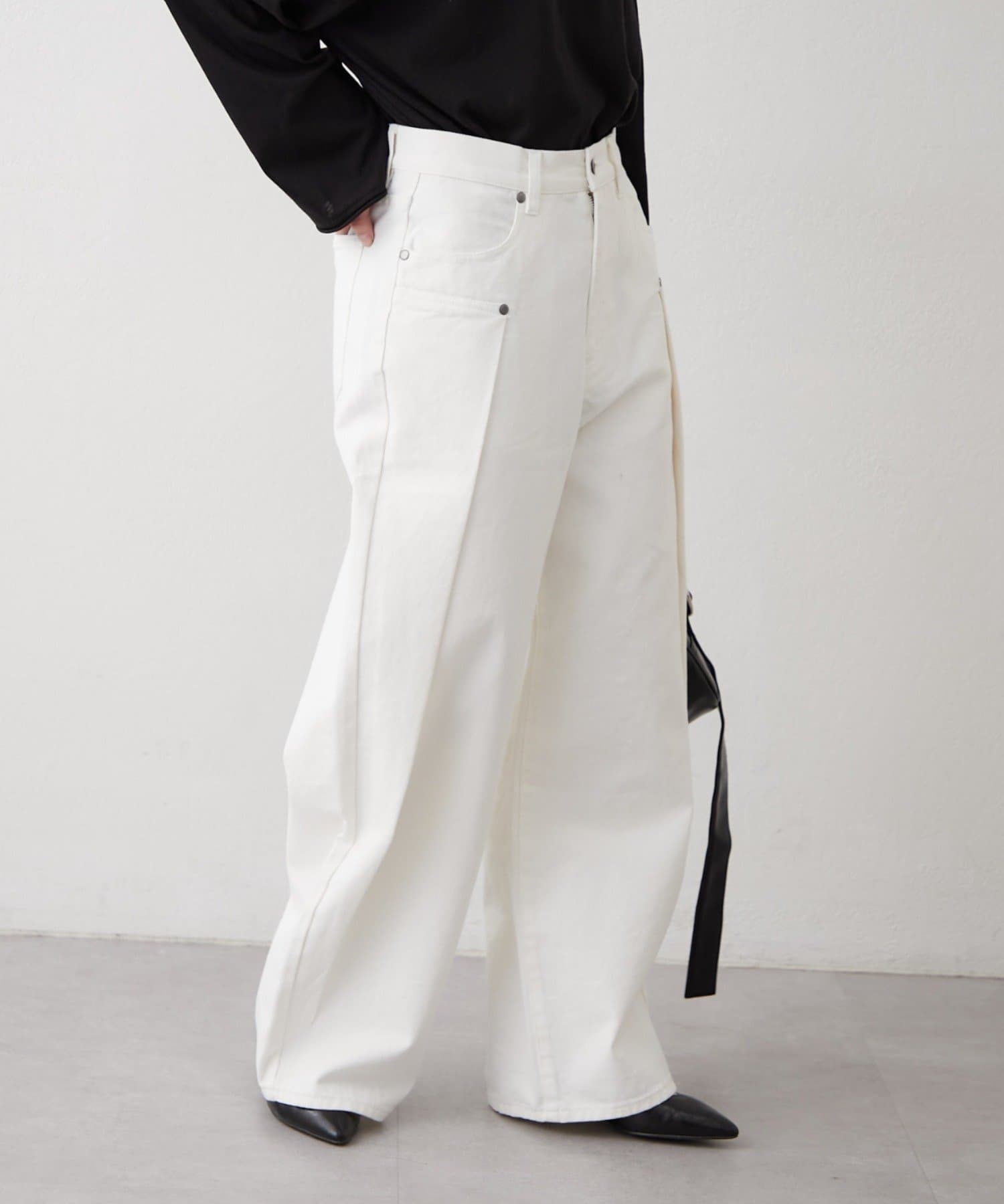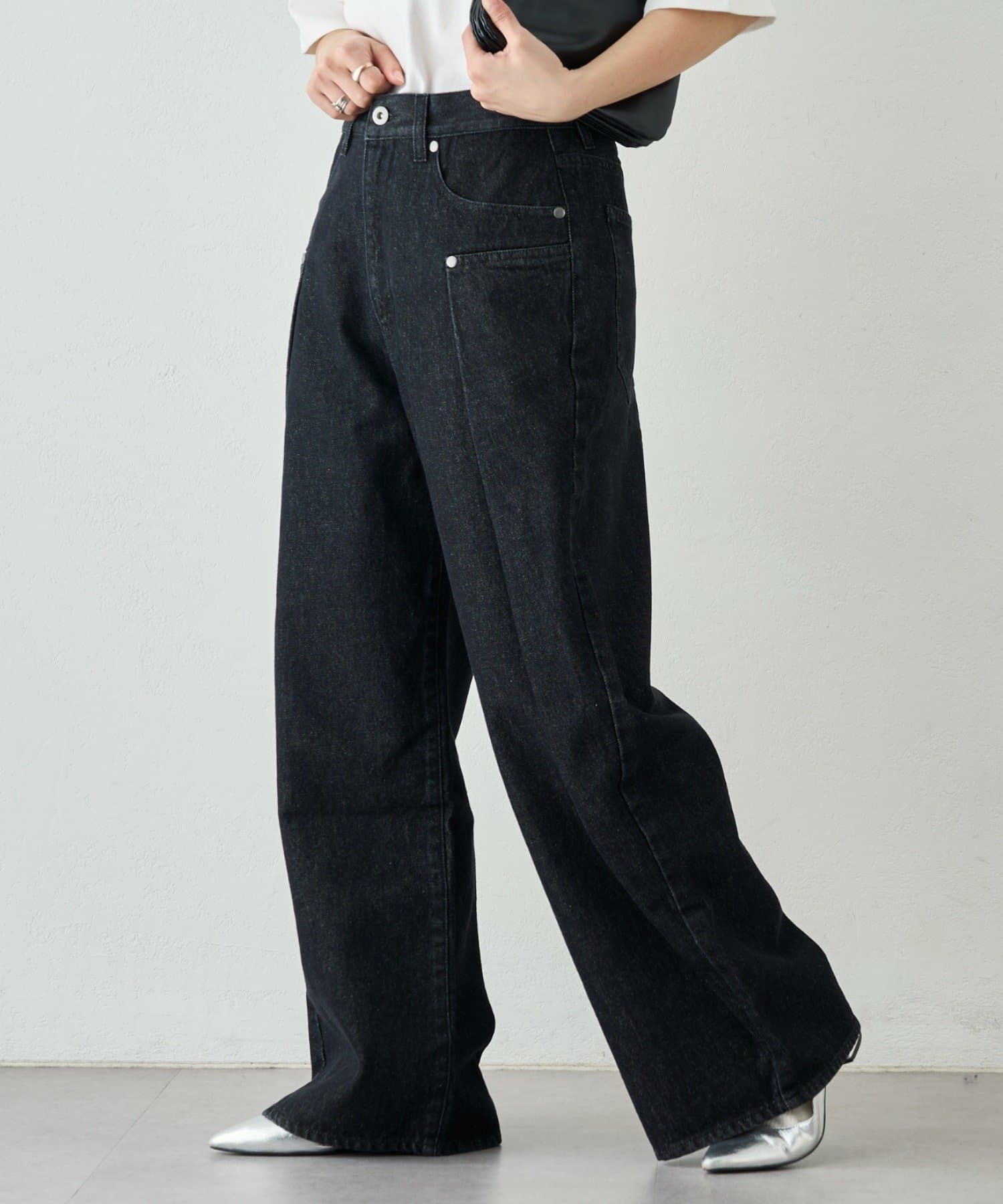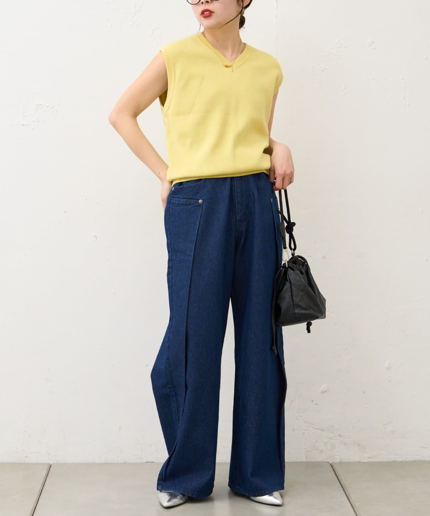 太もも部分から入ったタックがおしゃれ見えするデニムパンツが登場。