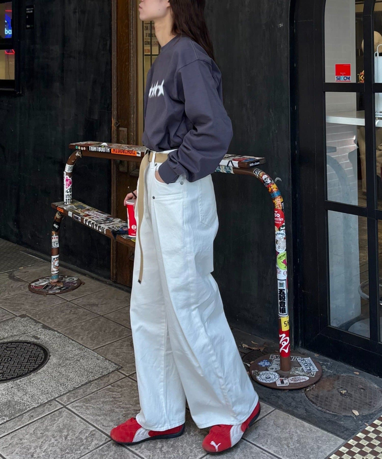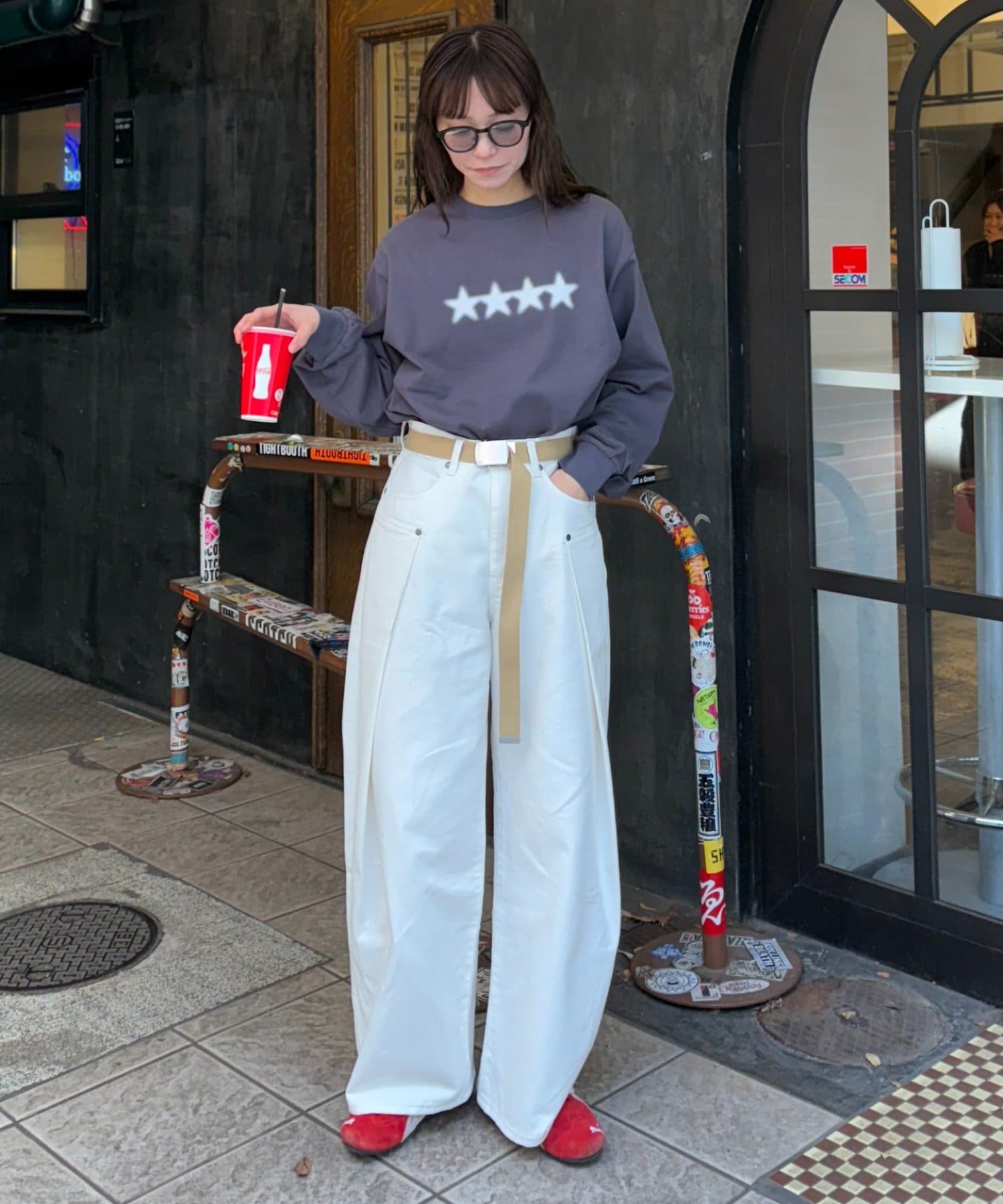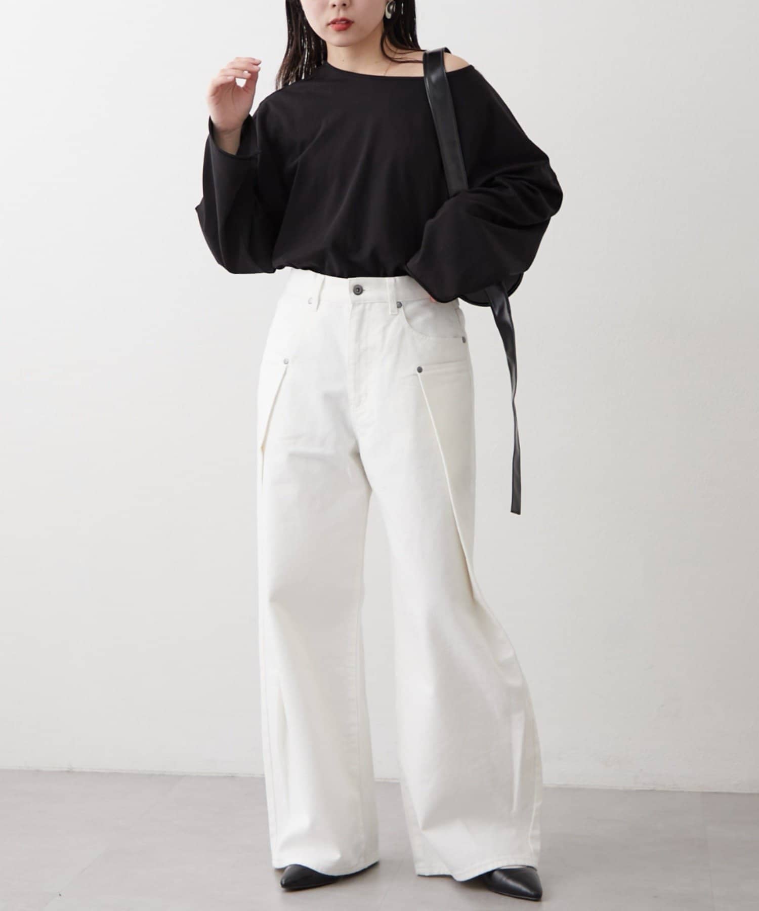 ワイドシルエットで、脚のラインもきれいにカバーできるのがうれしいポイントです◎