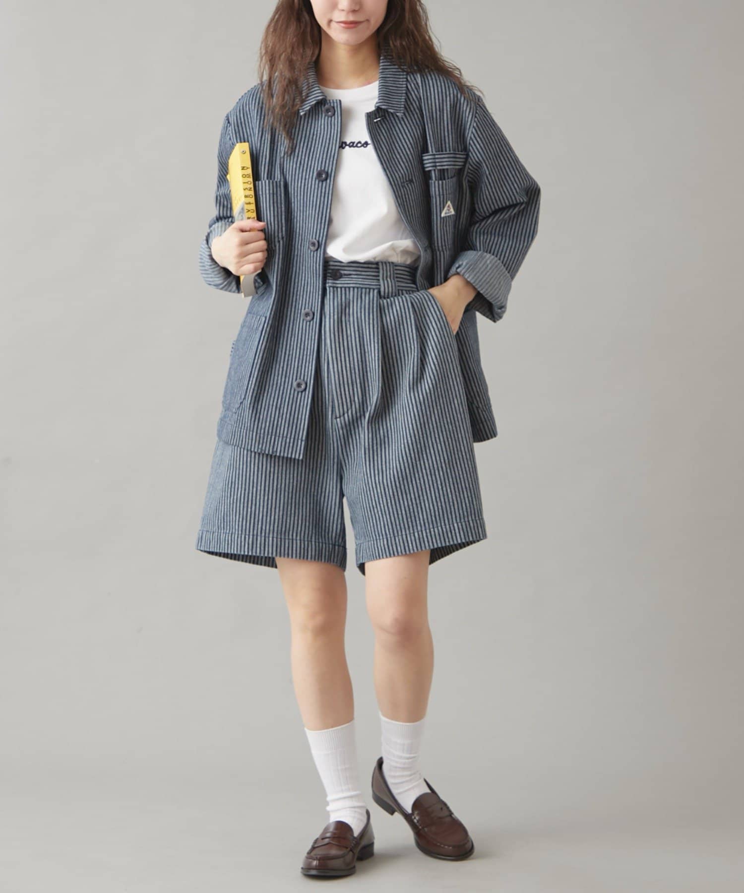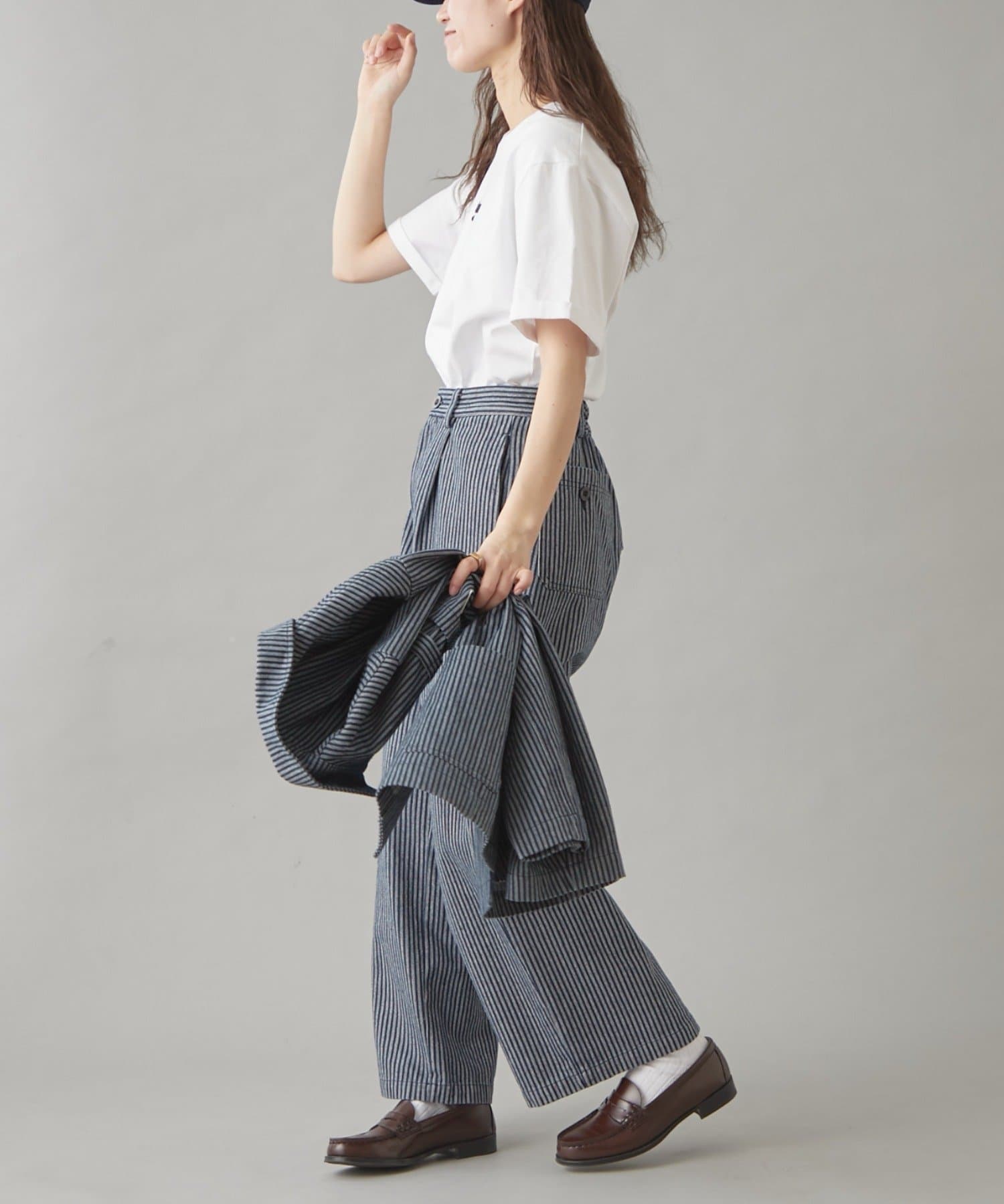 シンプルにデニム合わせや、シャツやジャケットを羽織るのも◎