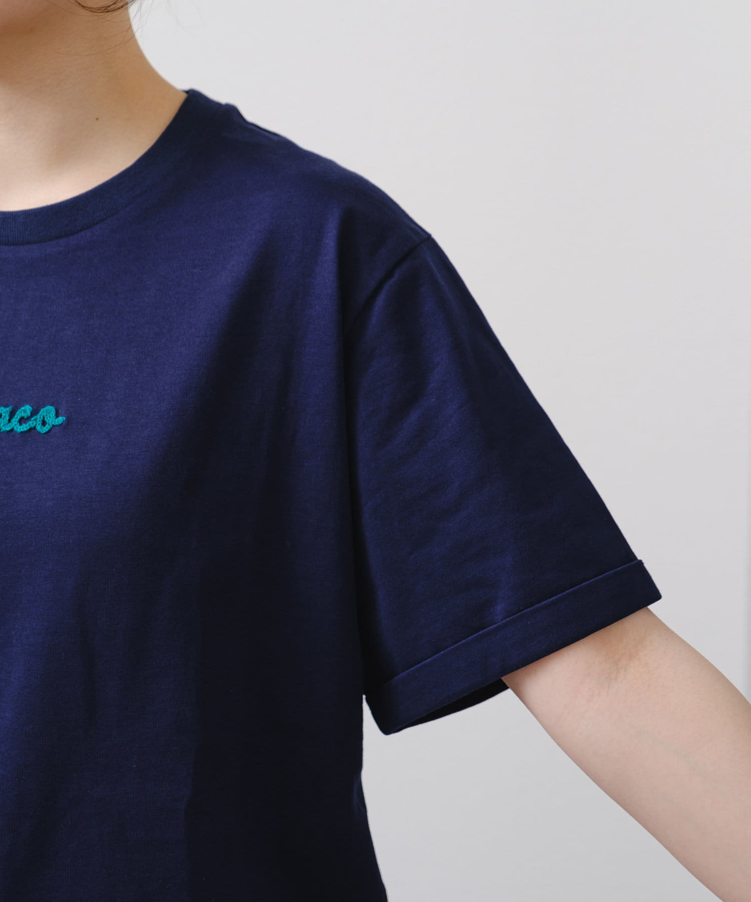 立体感のあるチェーン刺繍がワンポイントに。