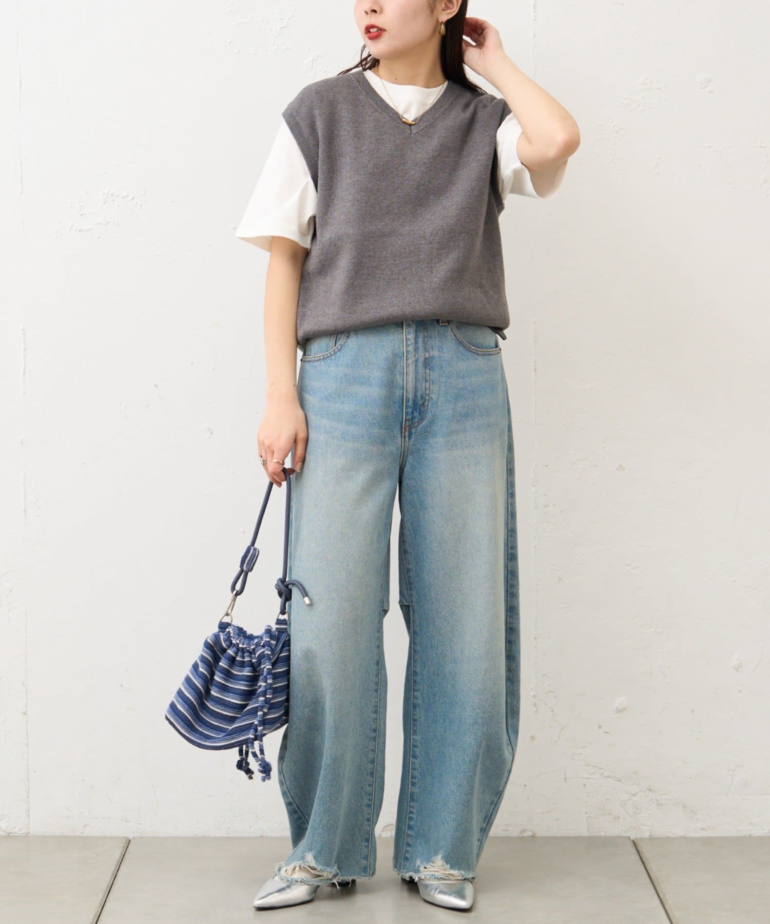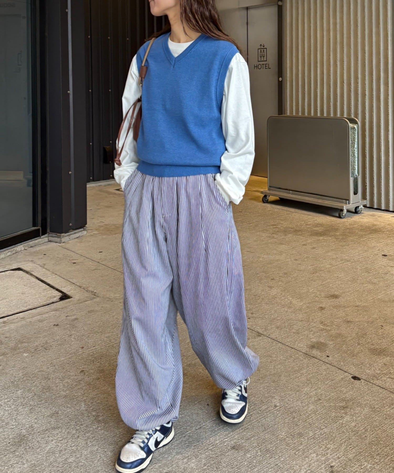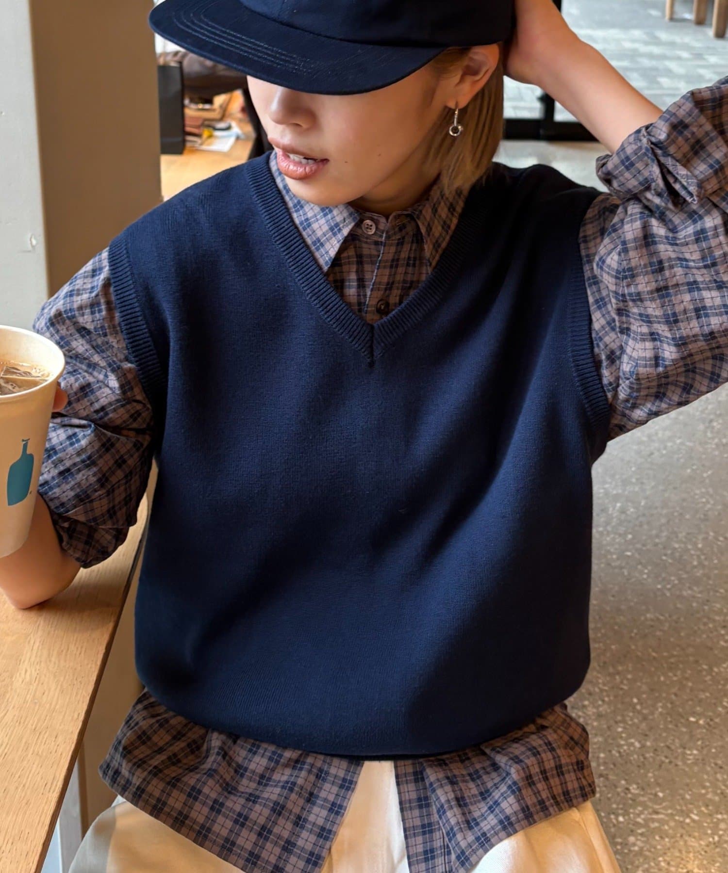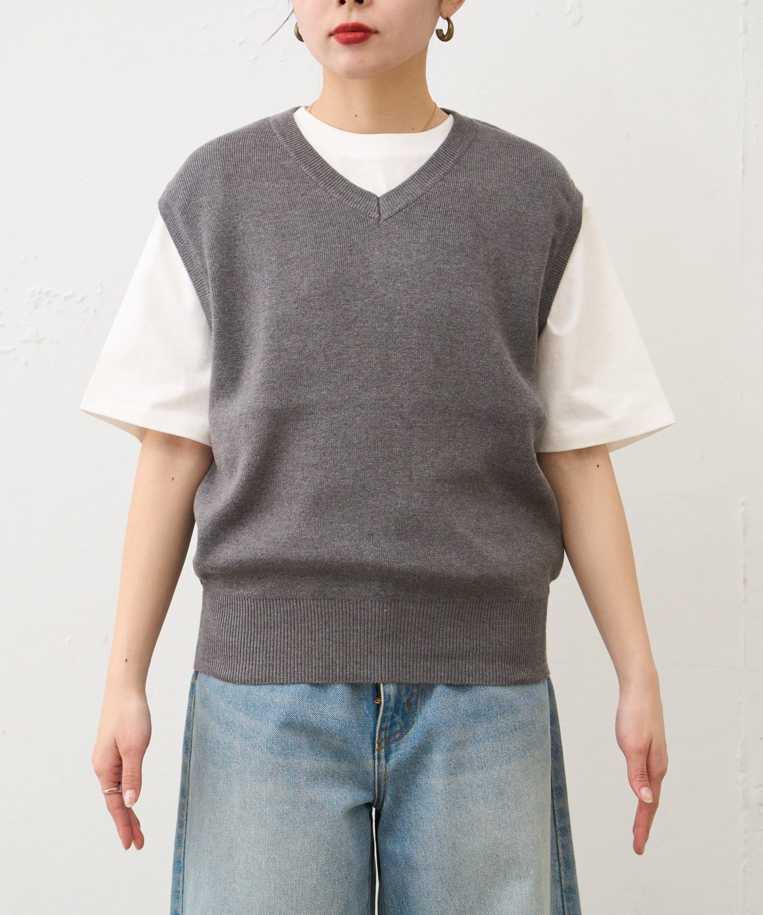 シンプルなベストなので、様々なアイテムと相性抜群!