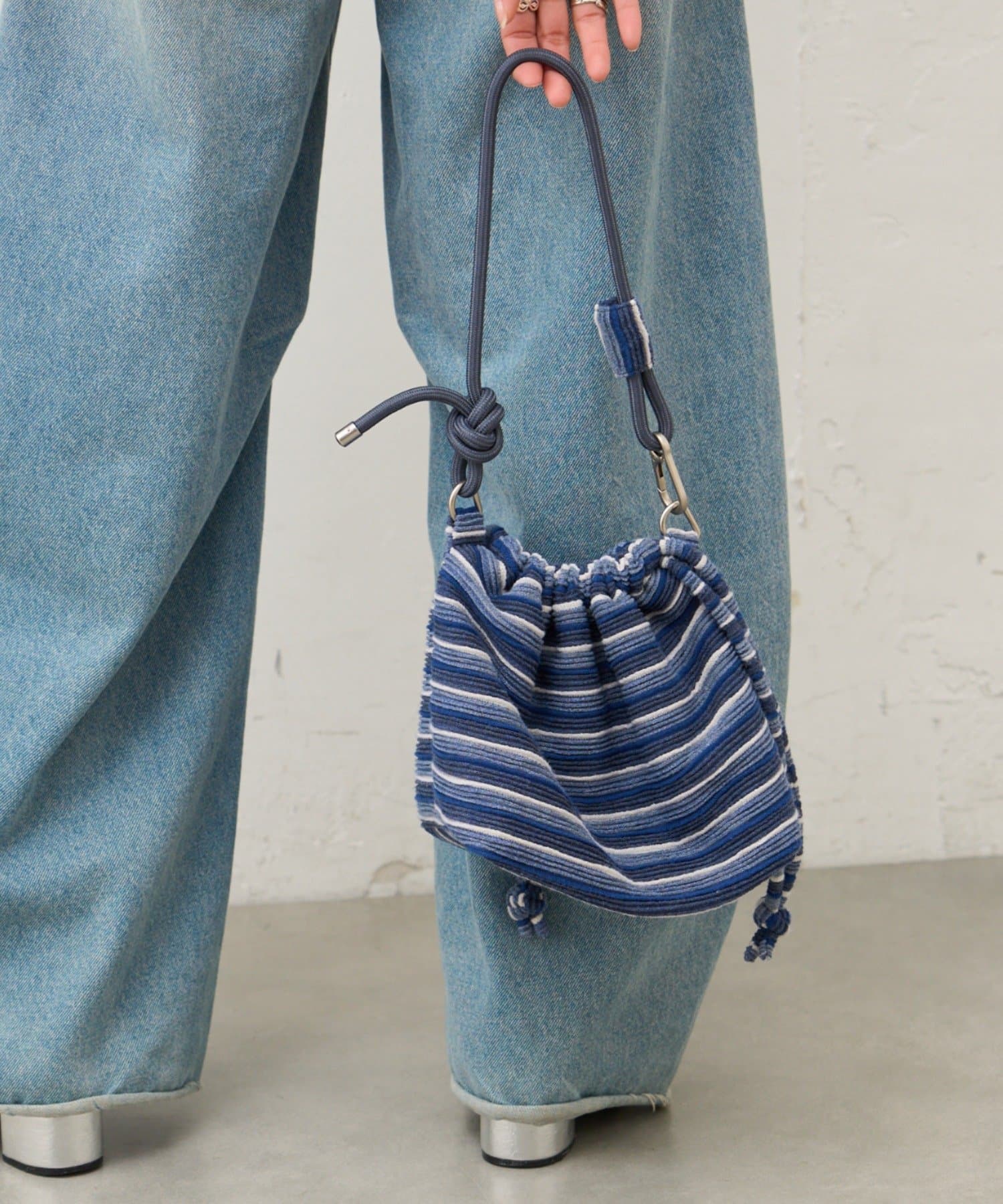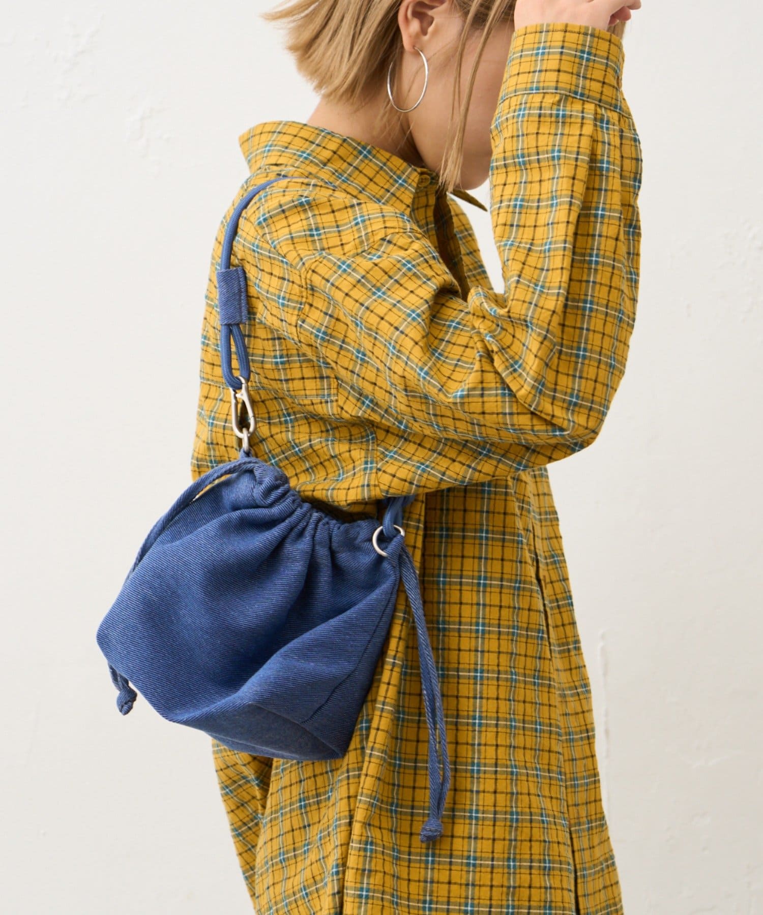 ショルダーと手持ち、2WAYで使える巾着バッグ。
