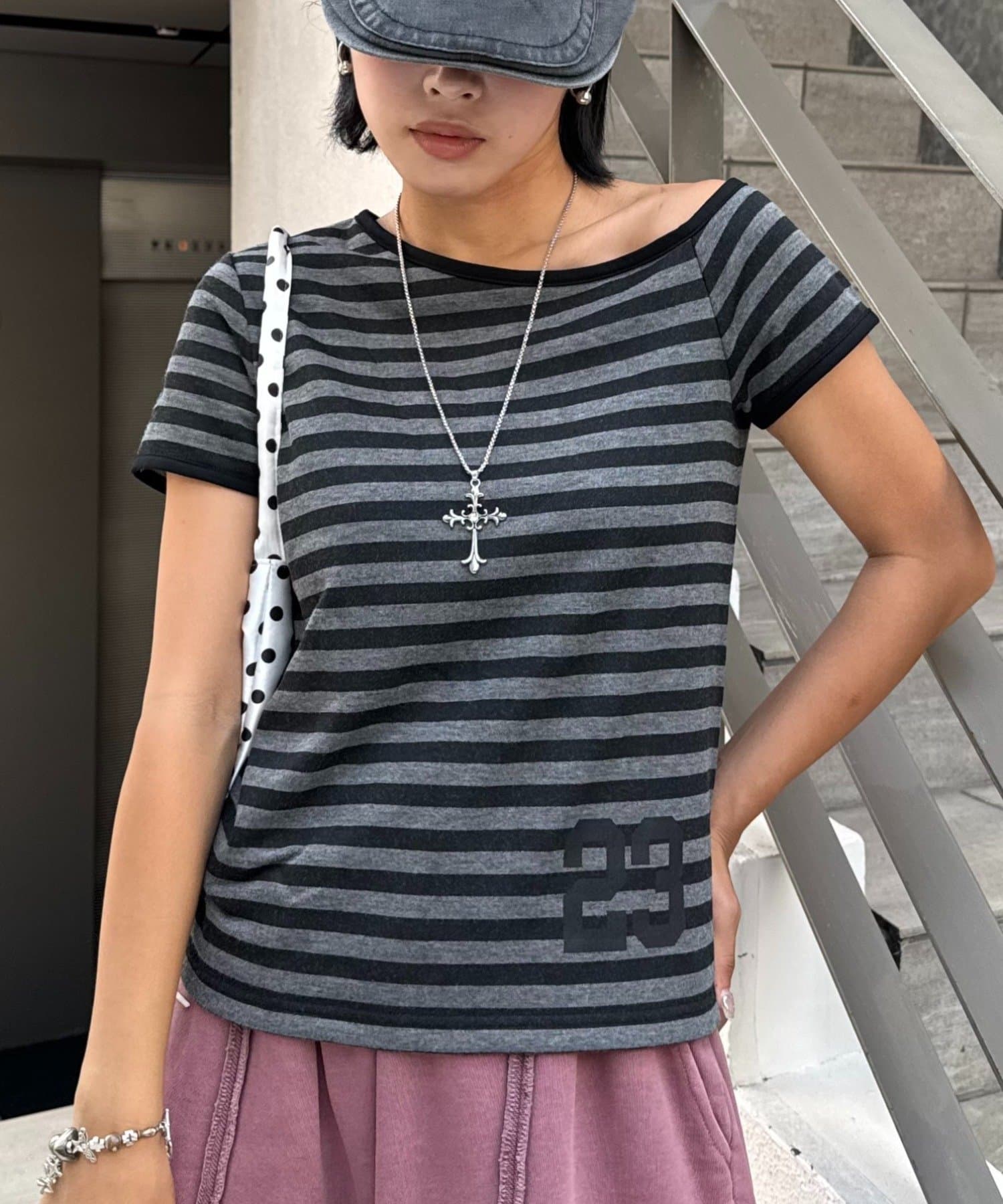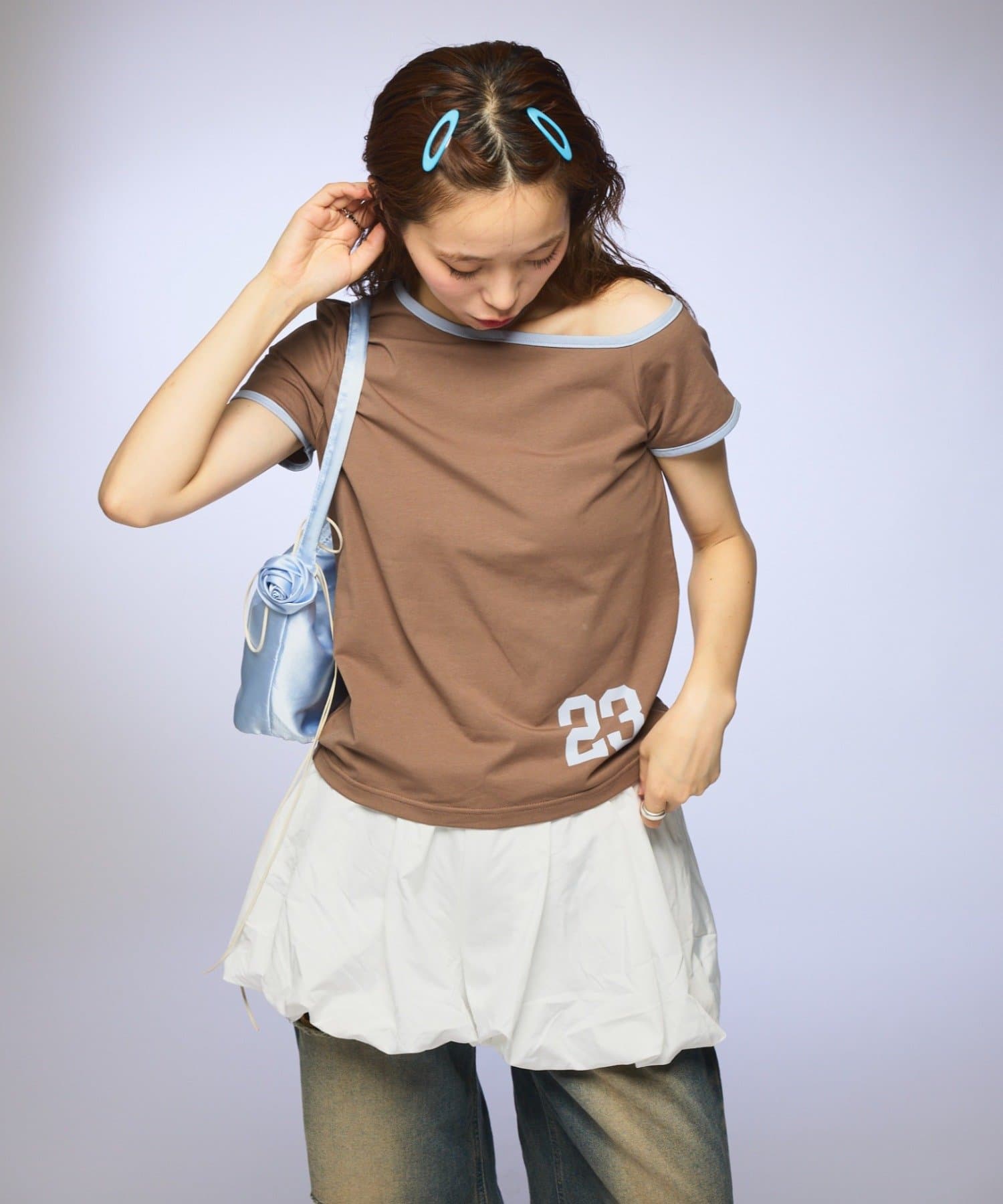 ほどよい肌見せができるオフショルデザインで、トレンドライクな印象に!