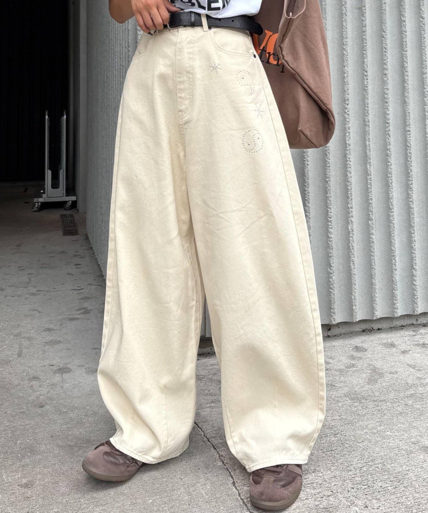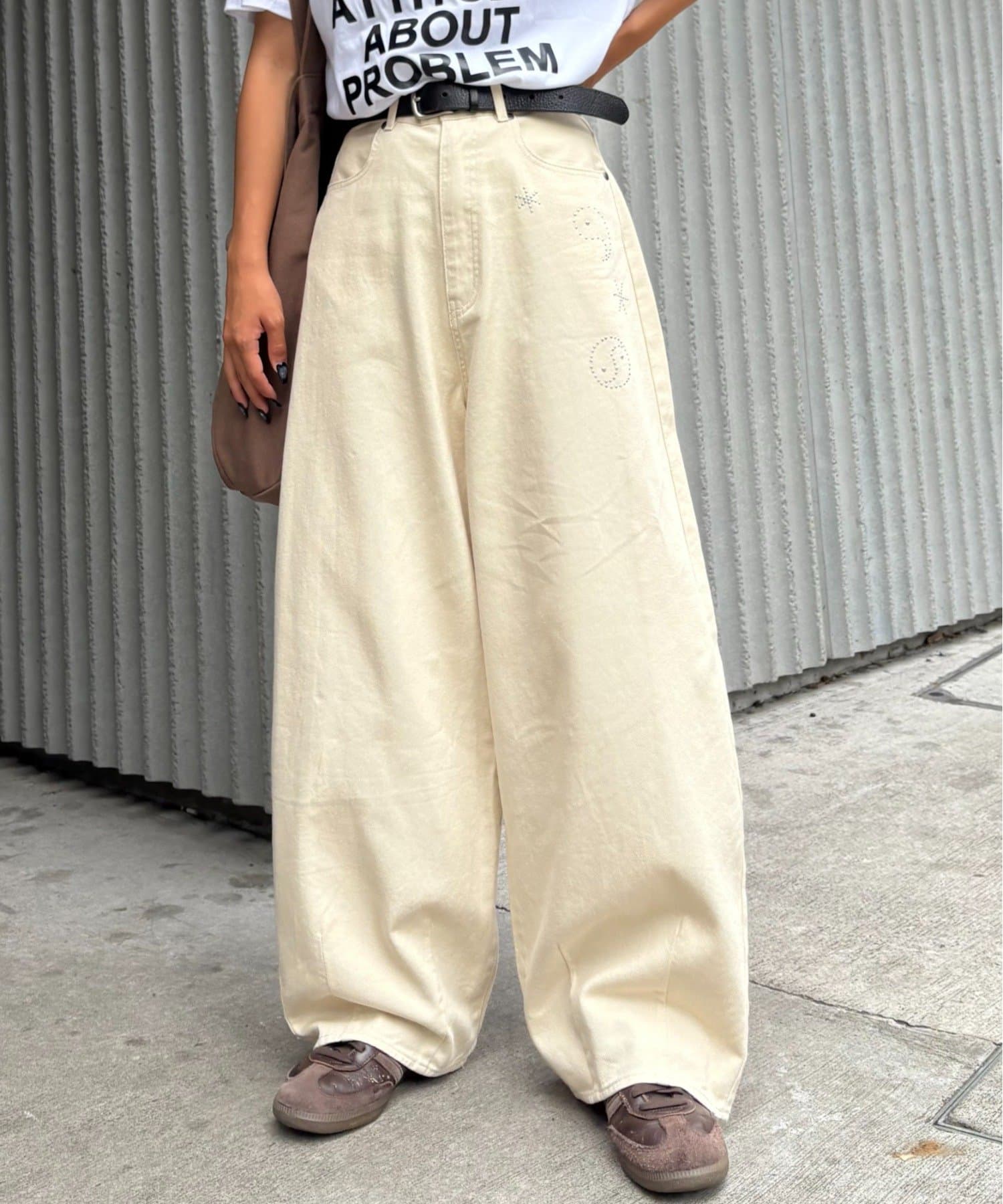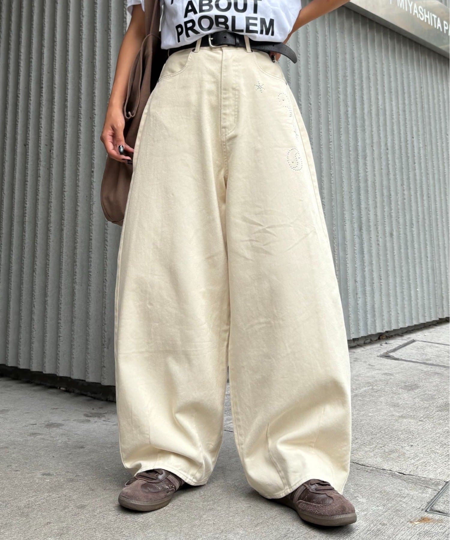 ロゴTシャツやオーバーサイズのシャツを合わせるのはもちろん、