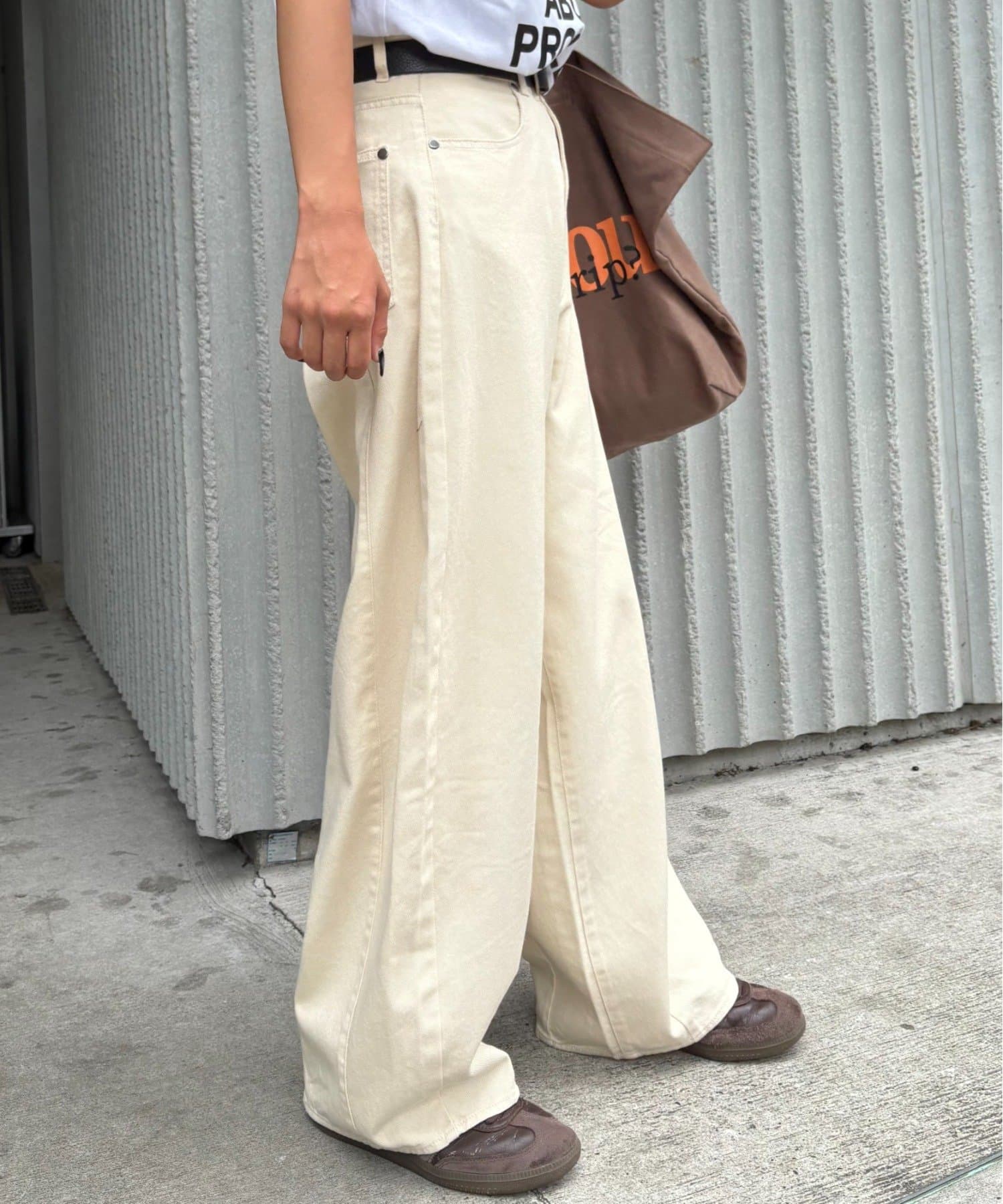 カーブシルエットが今っぽさを演出してくれるチノパンツ。