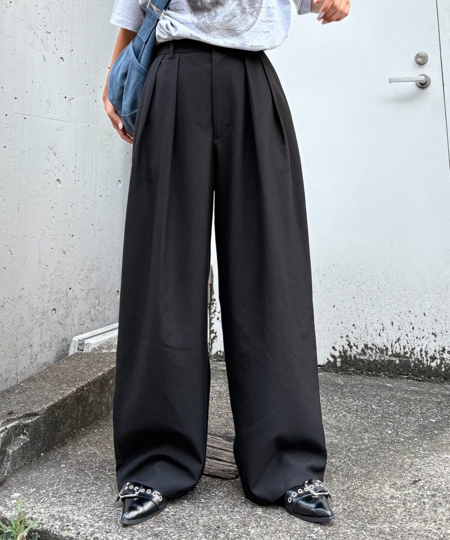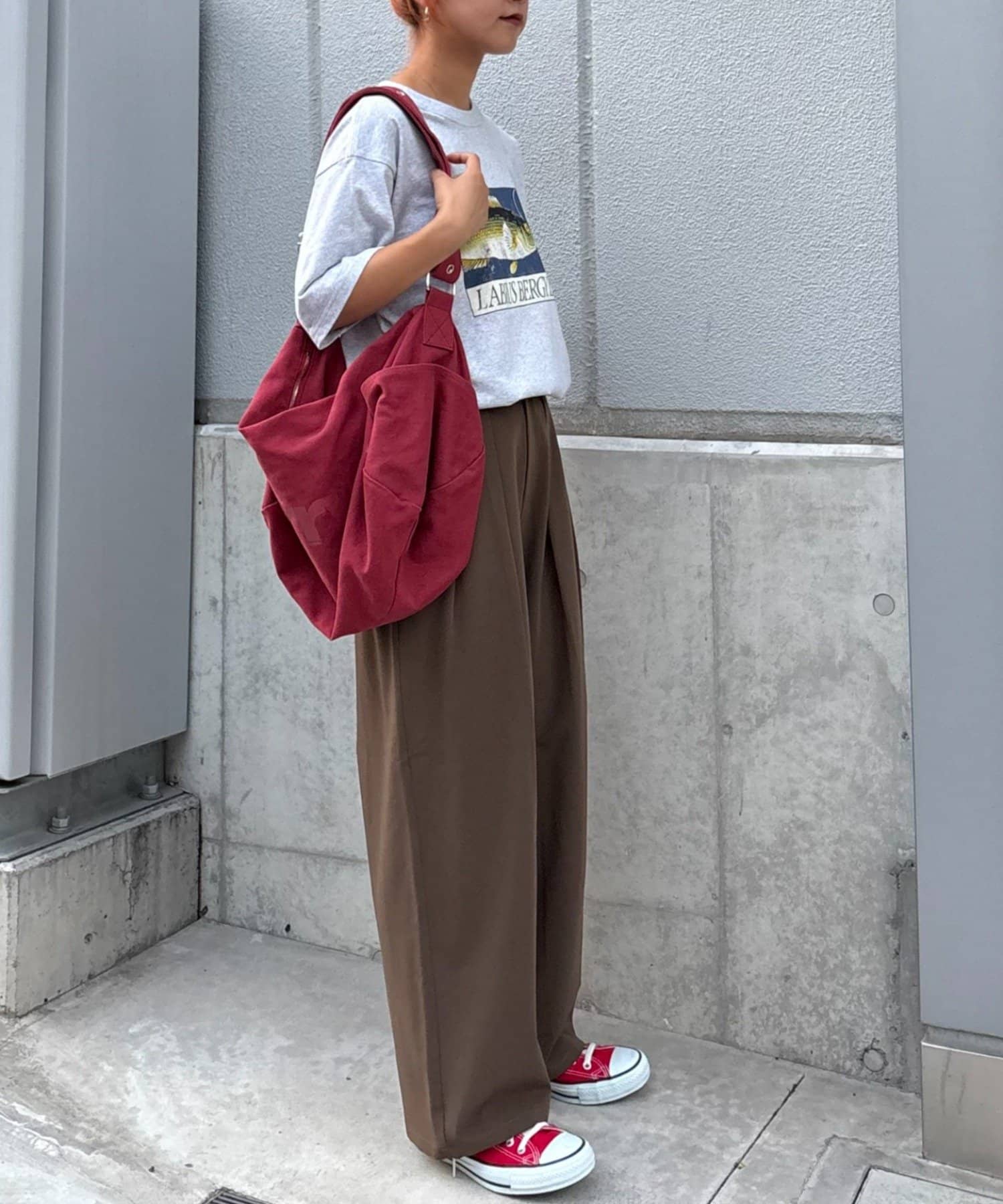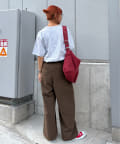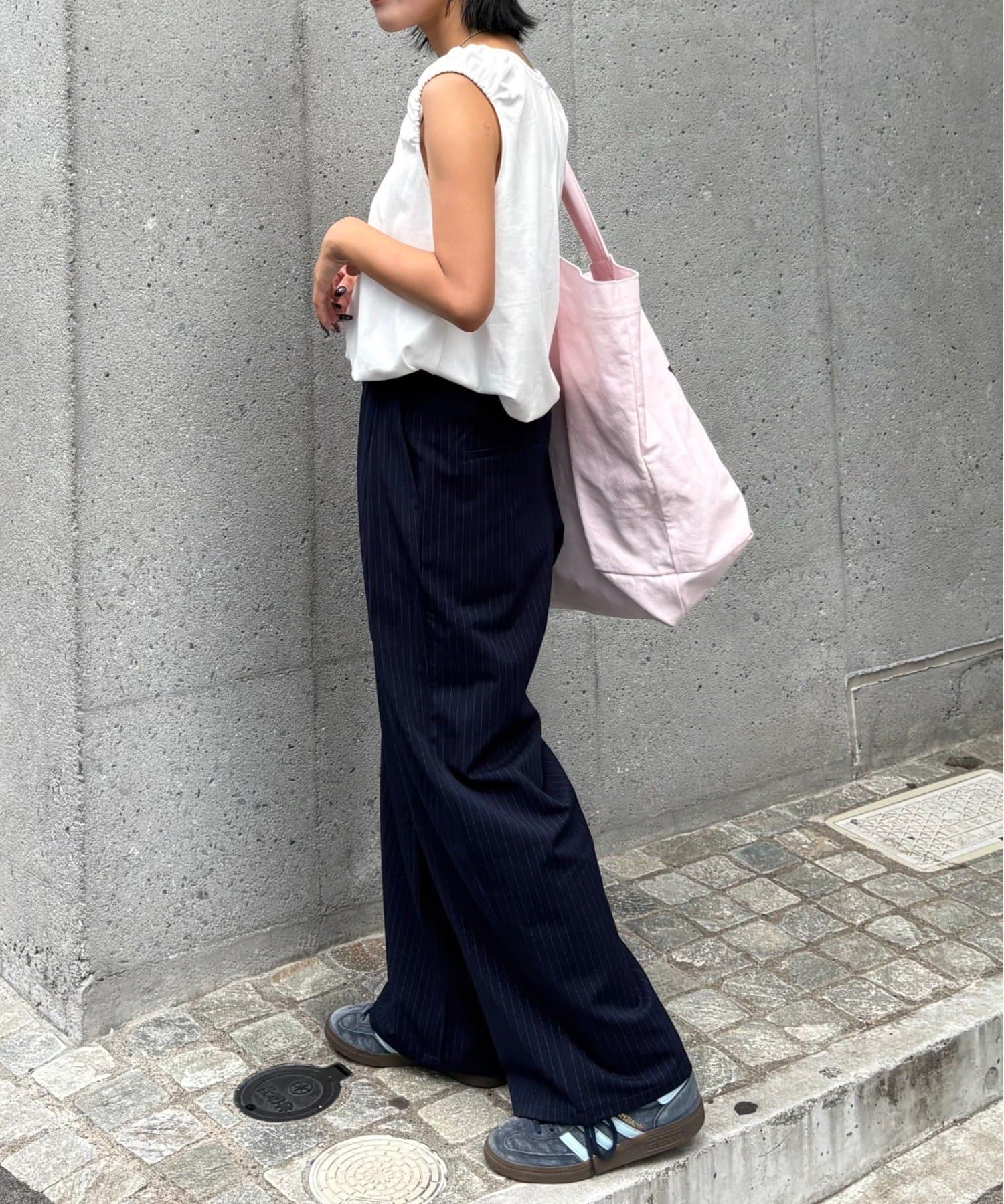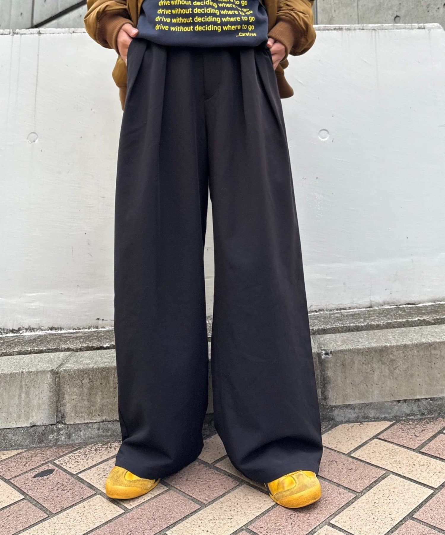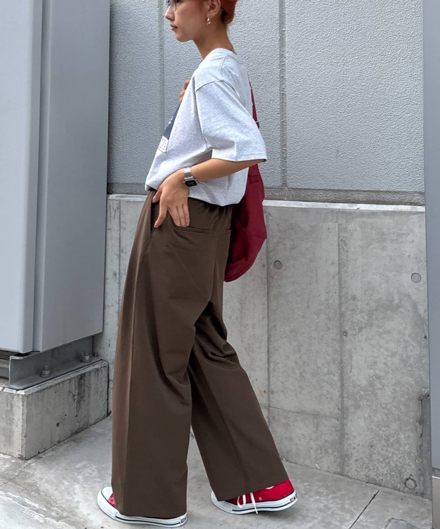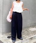 ワイドシルエットで、体型カバーしつつトレンドライクな印象に。