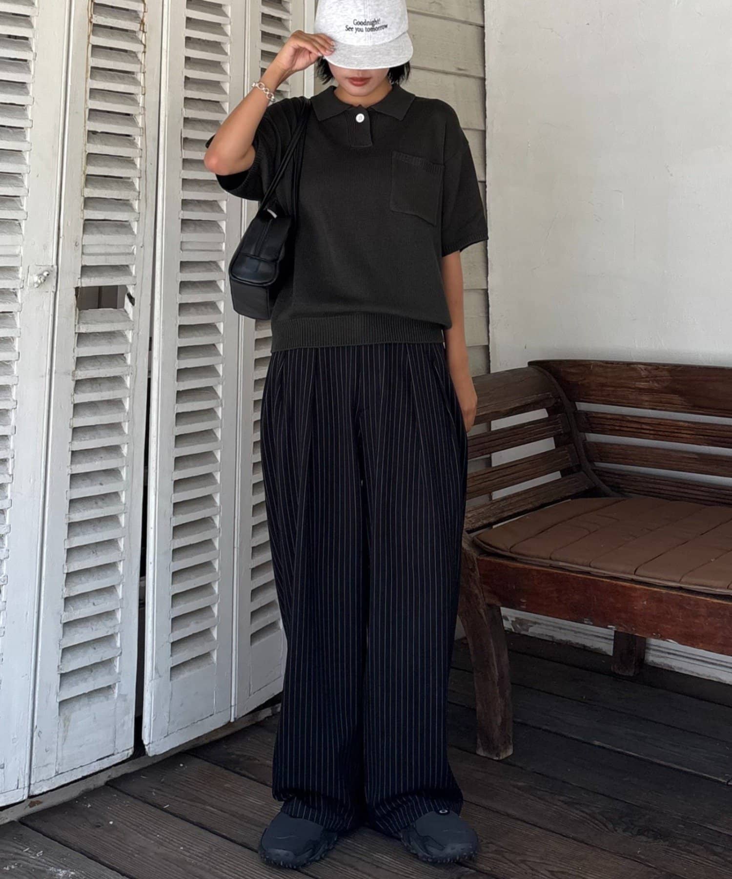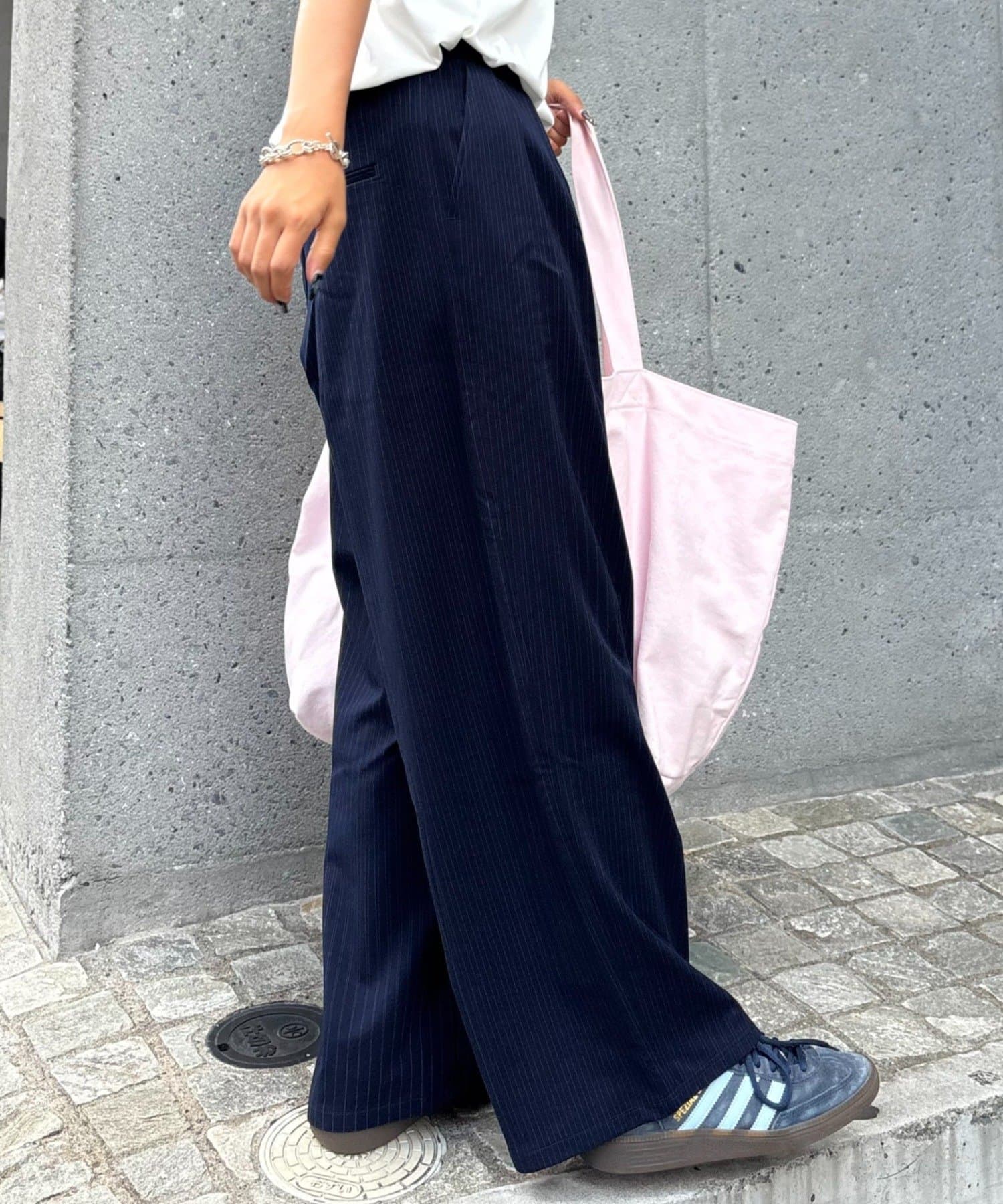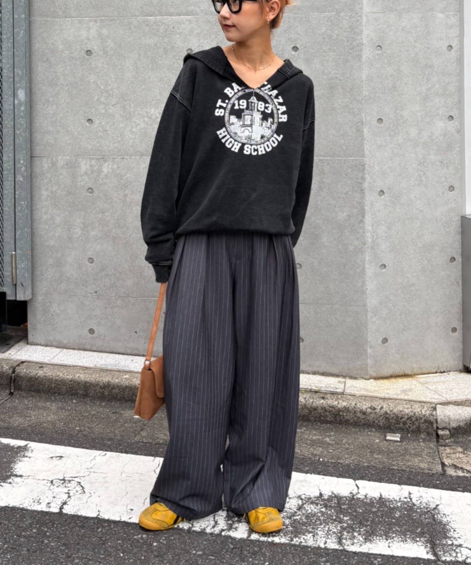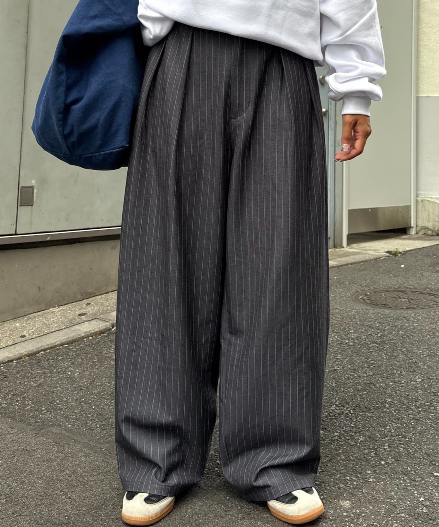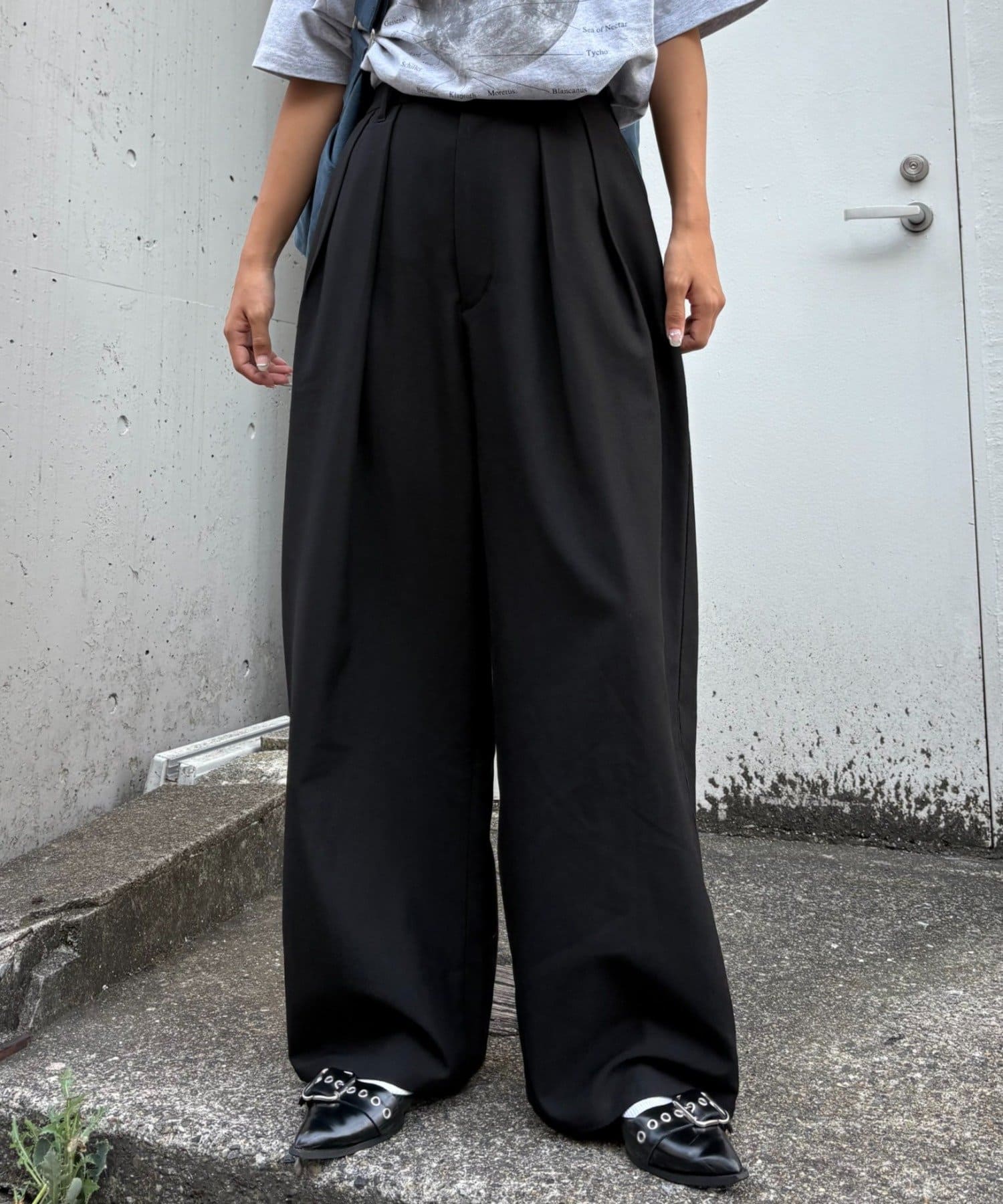 ワイドシルエットで、体型カバーしつつトレンドライクな印象に。