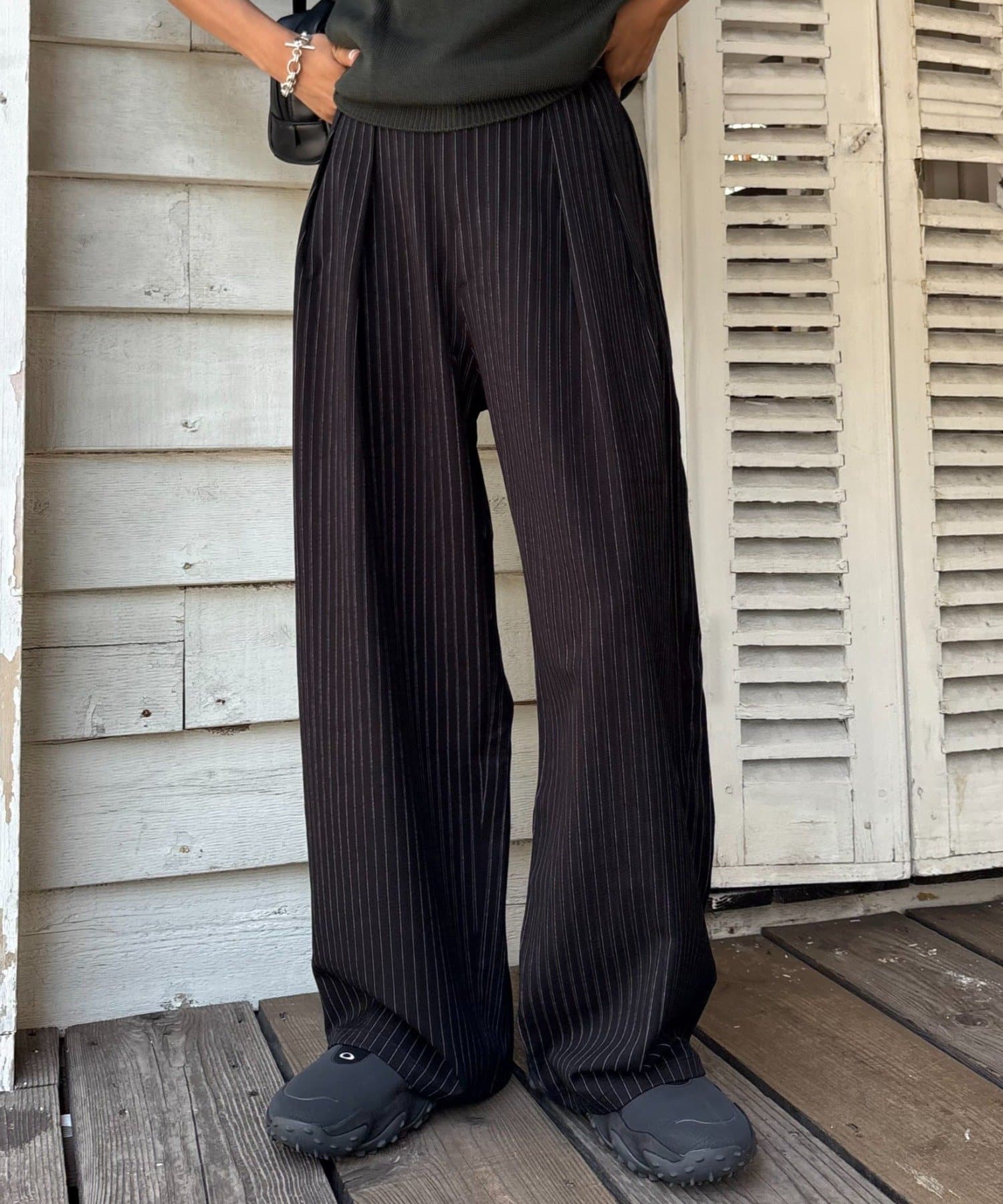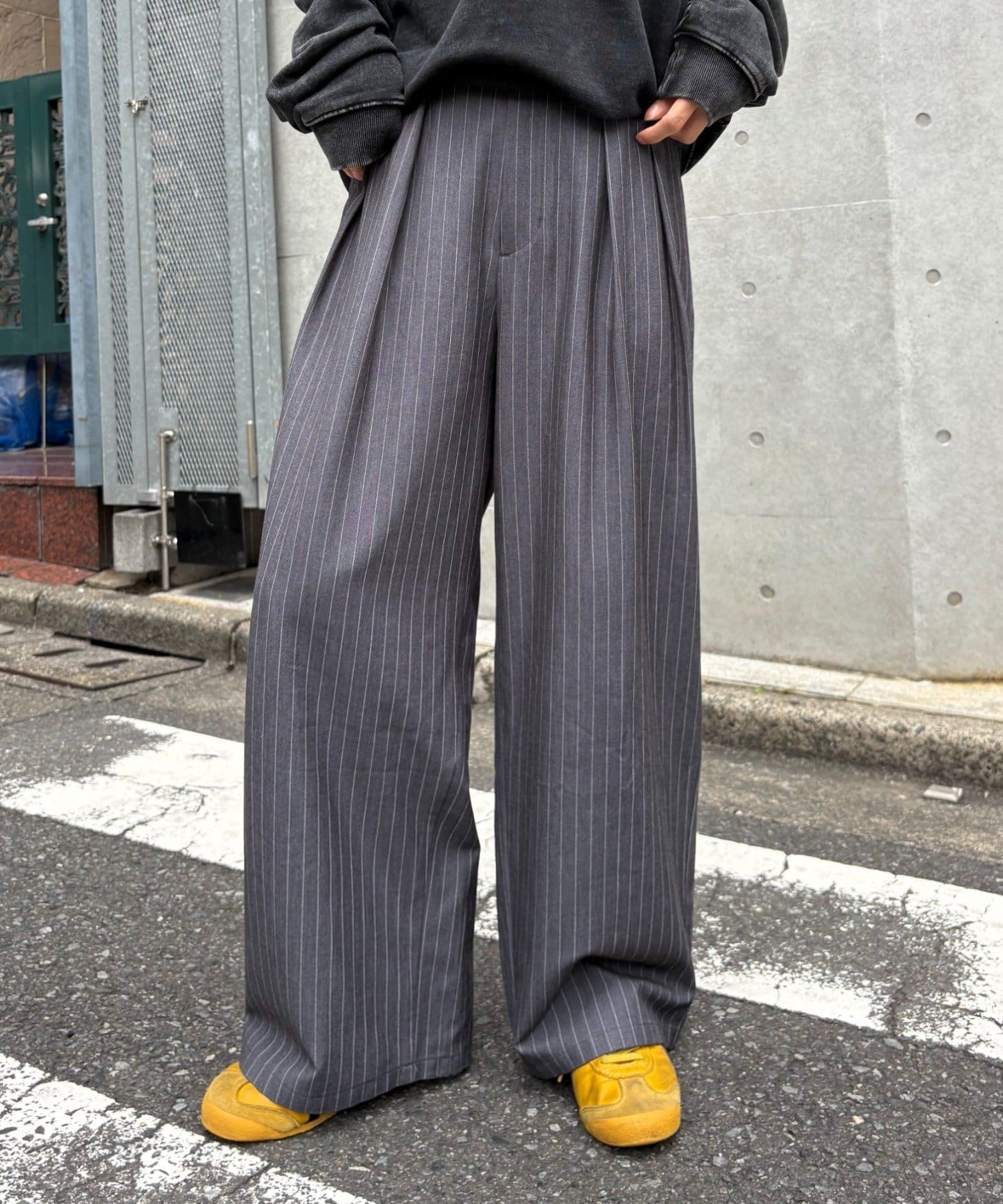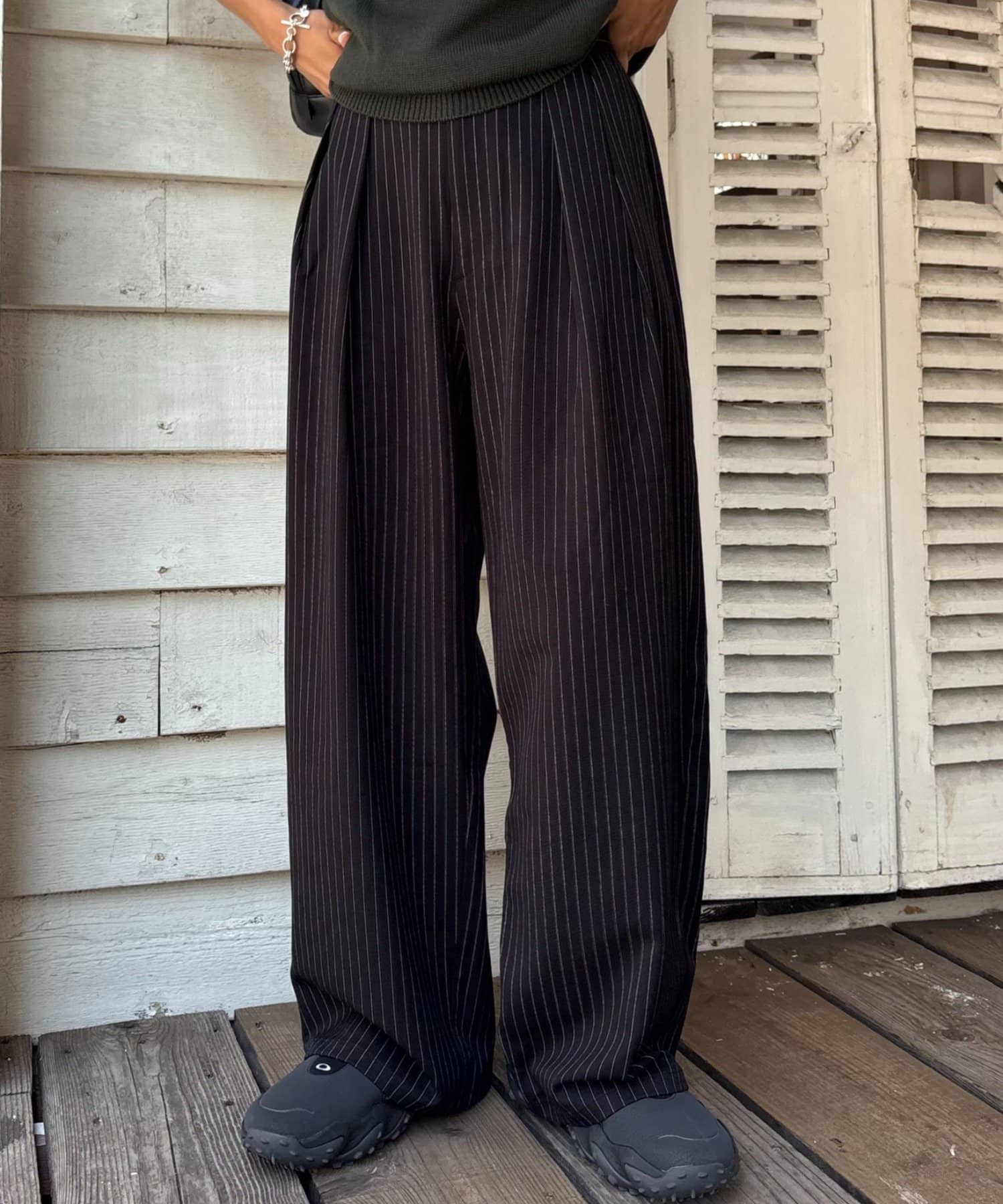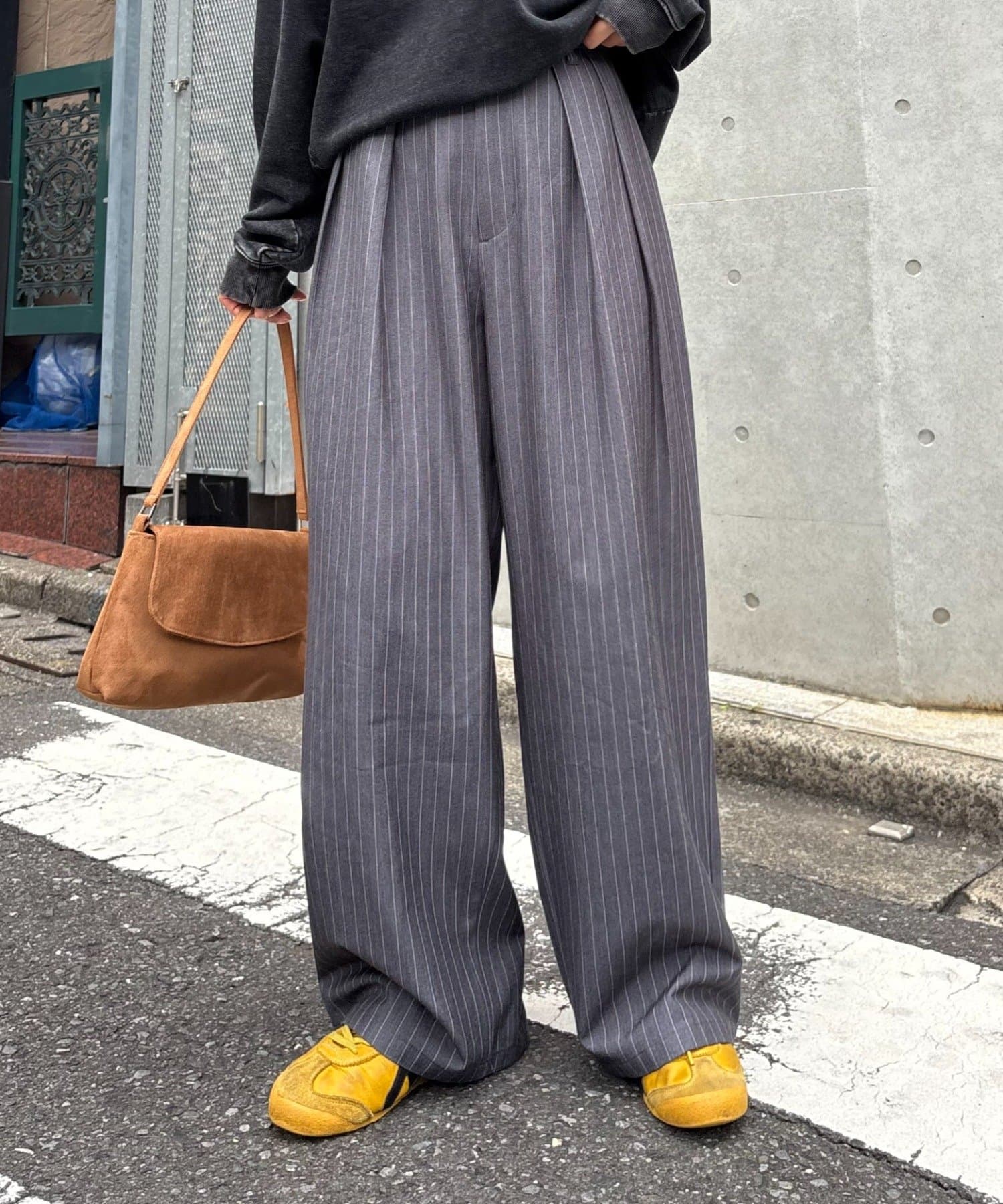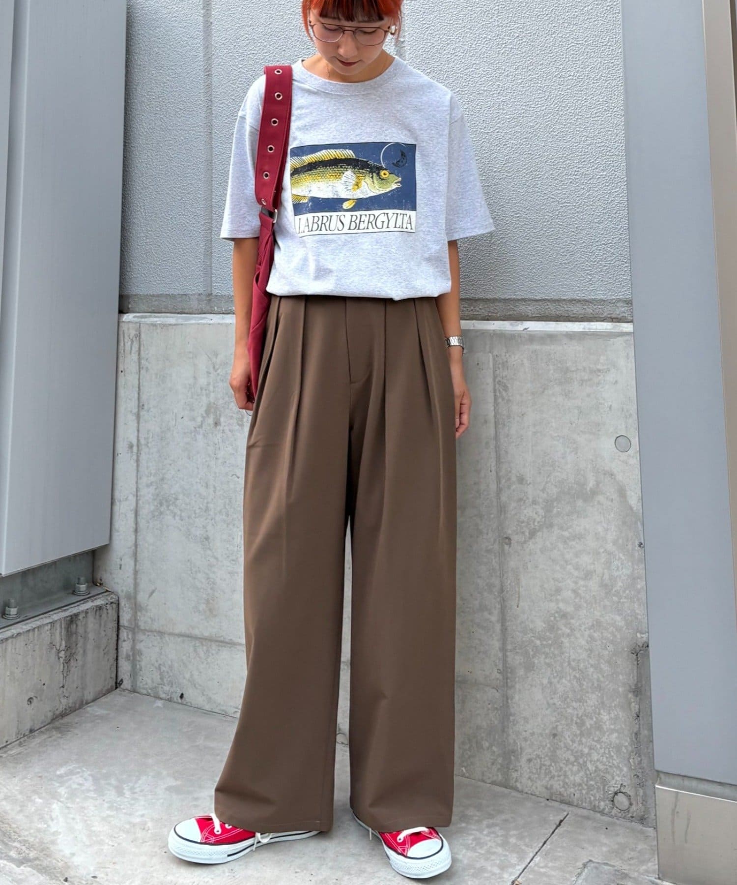 ワイドシルエットで、体型カバーしつつトレンドライクな印象に。