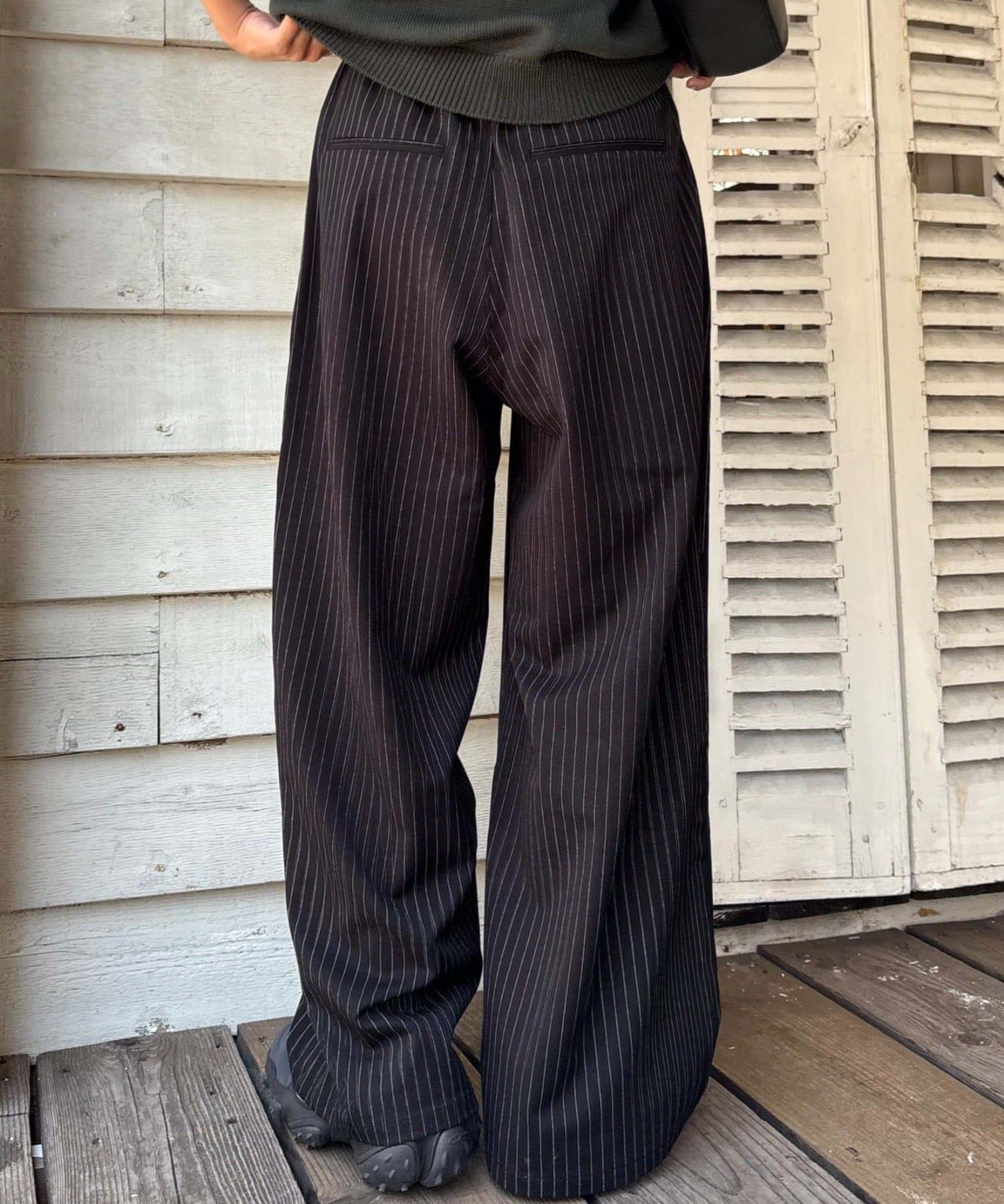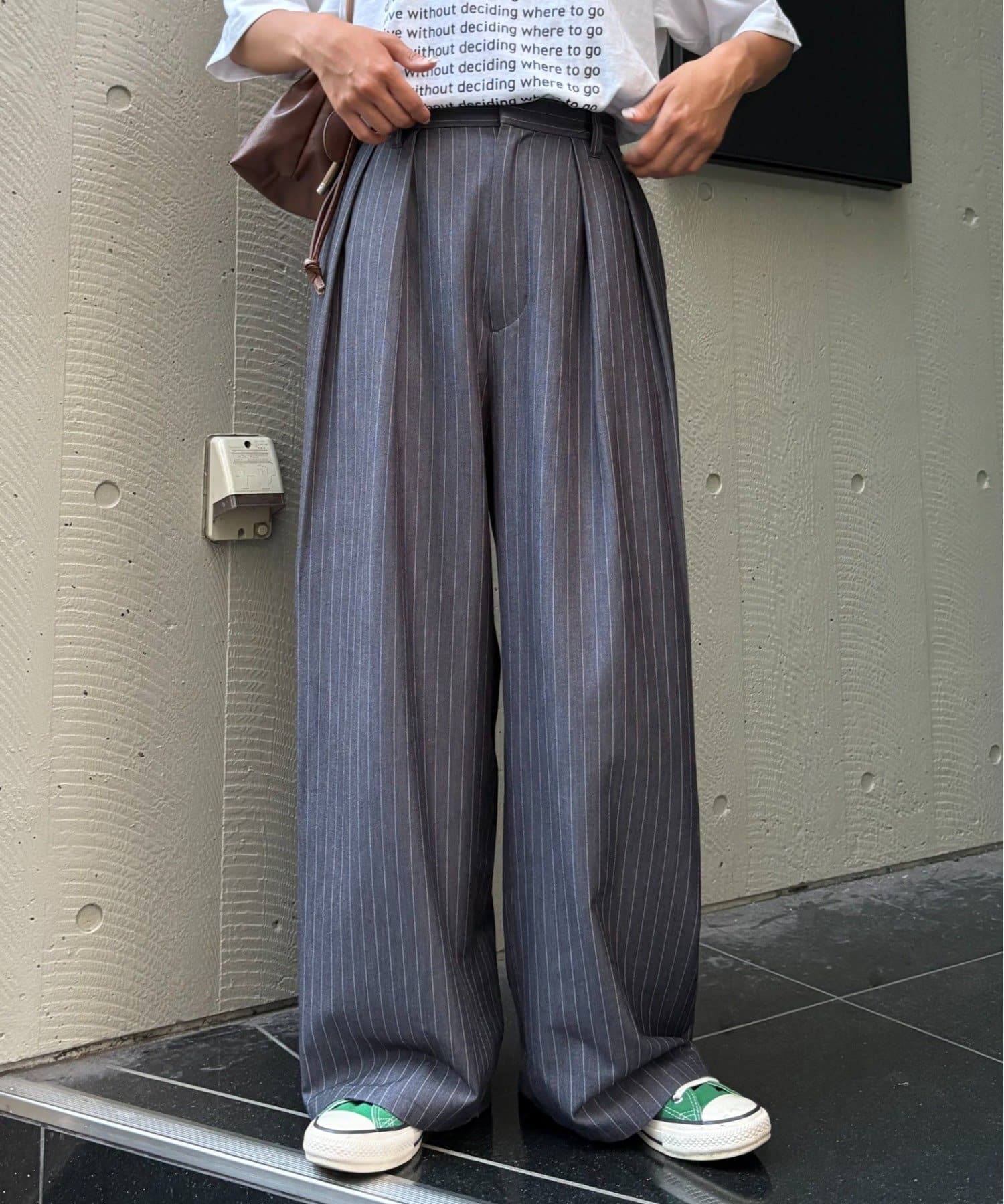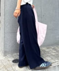 ウエスト部分から入ったタックデザインが魅力のワイドパンツ。