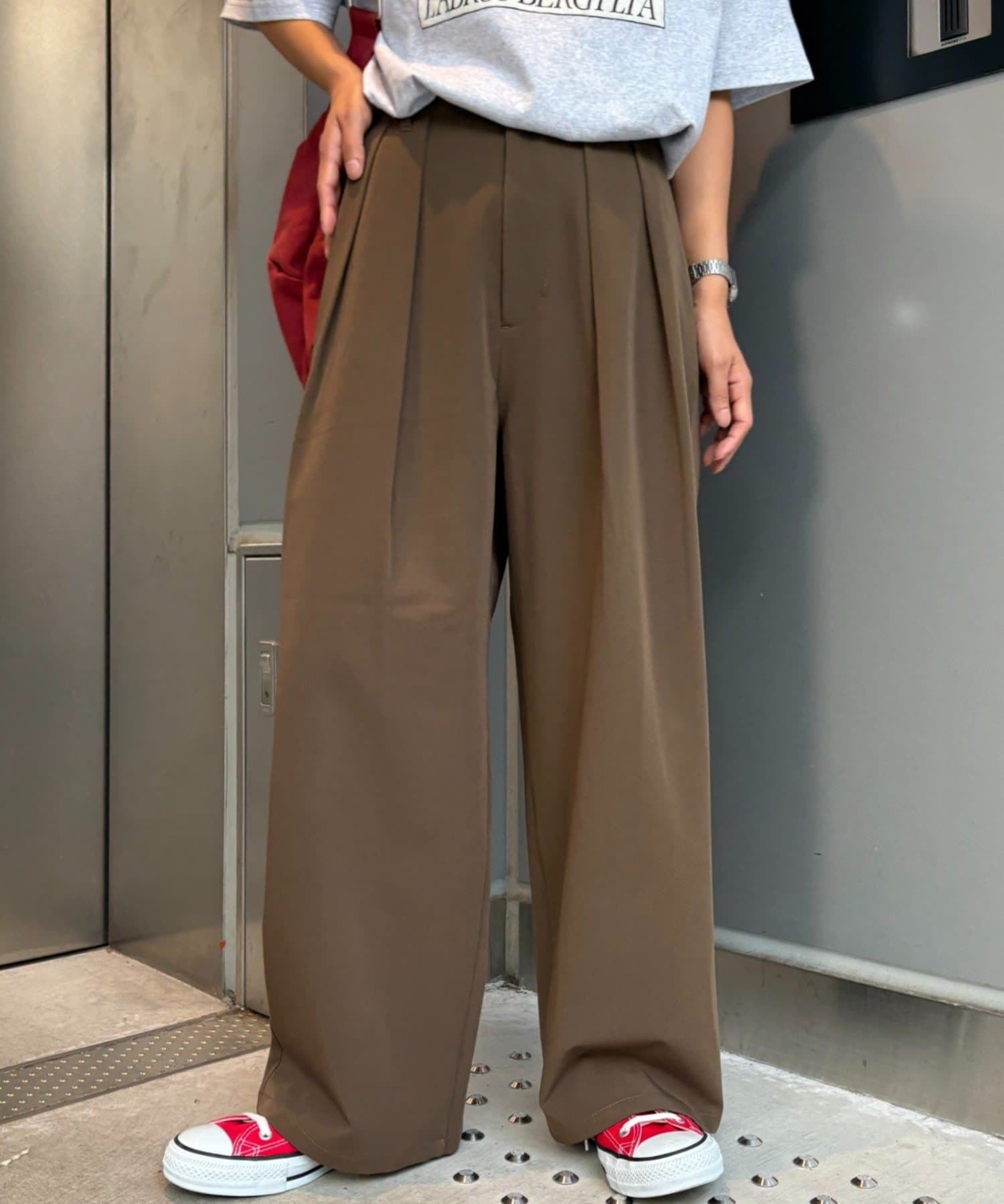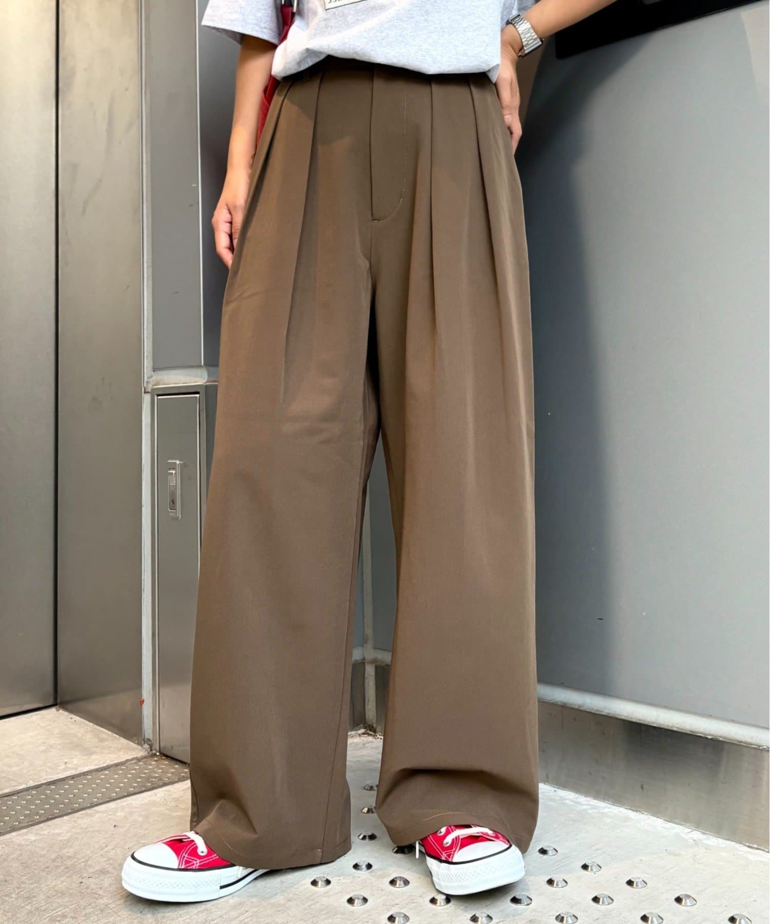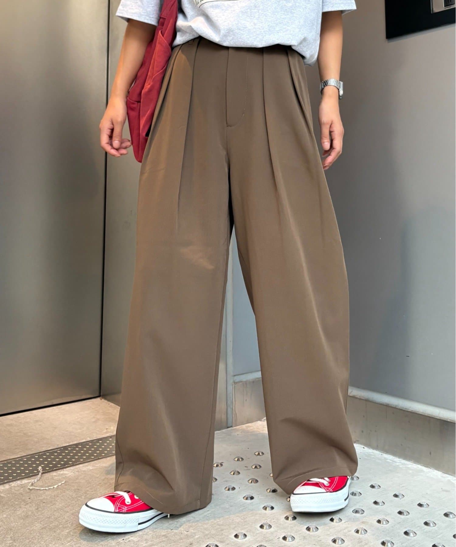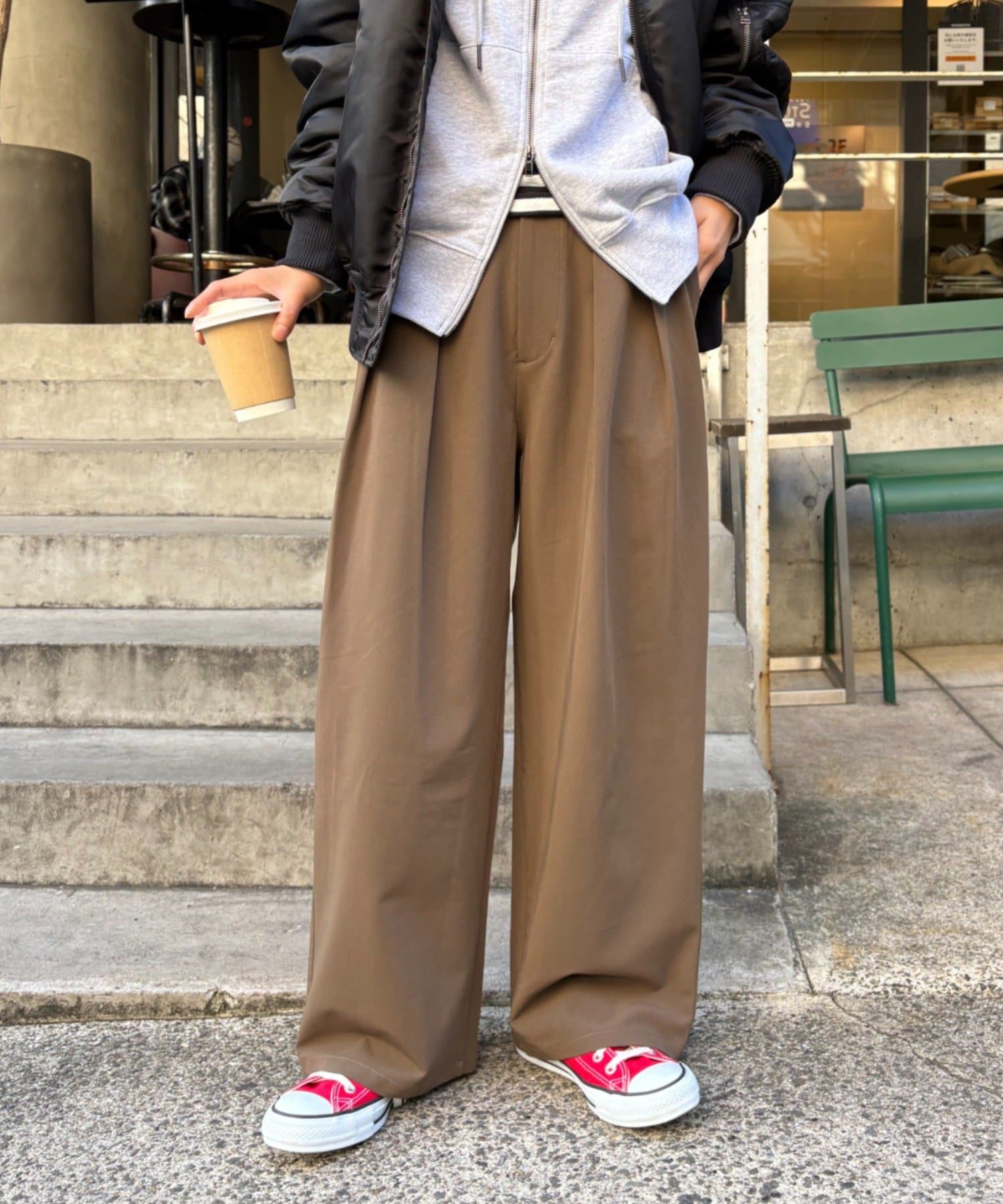 【新色追加/3サイズ展開】タックボリュームワイドパンツ