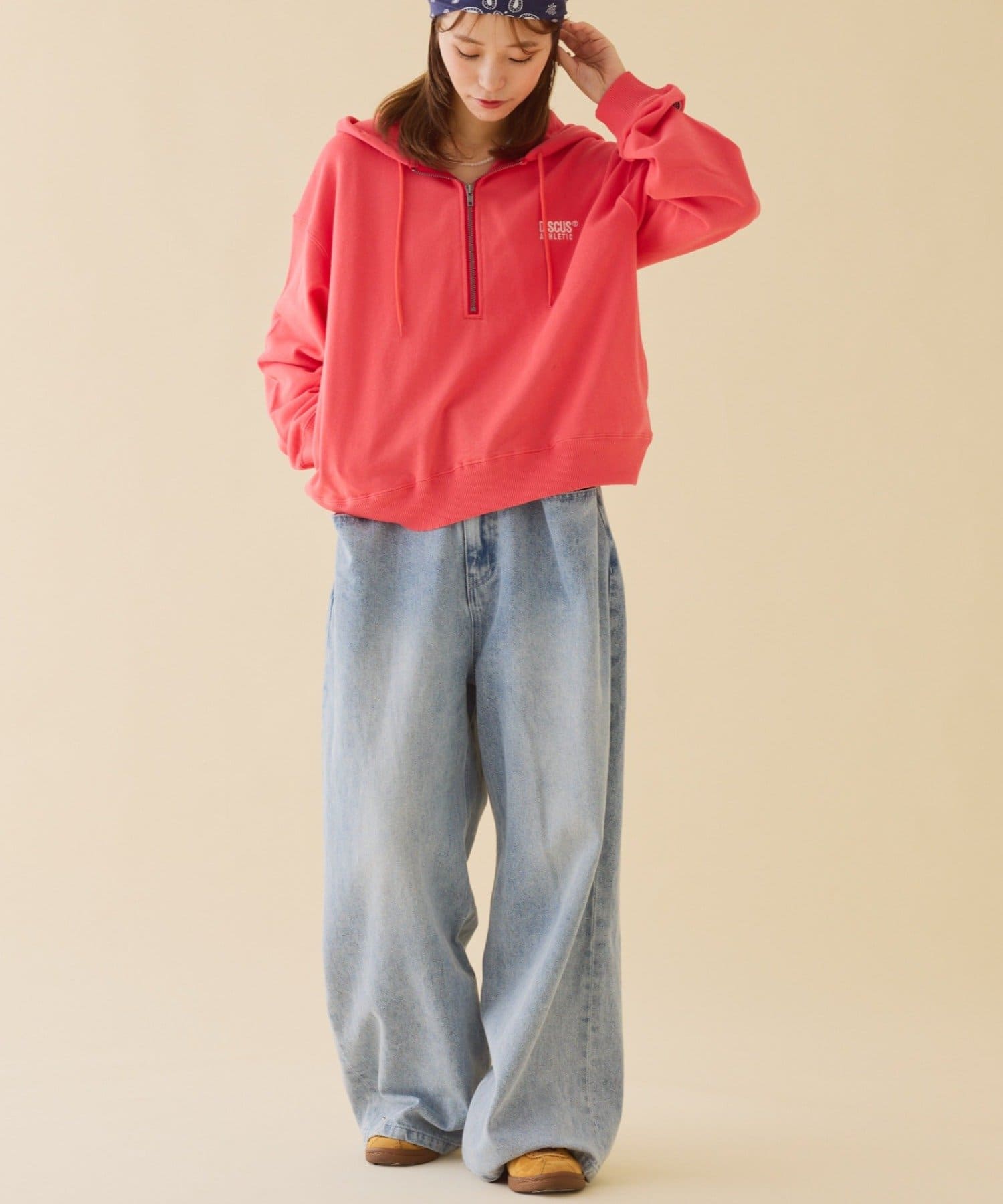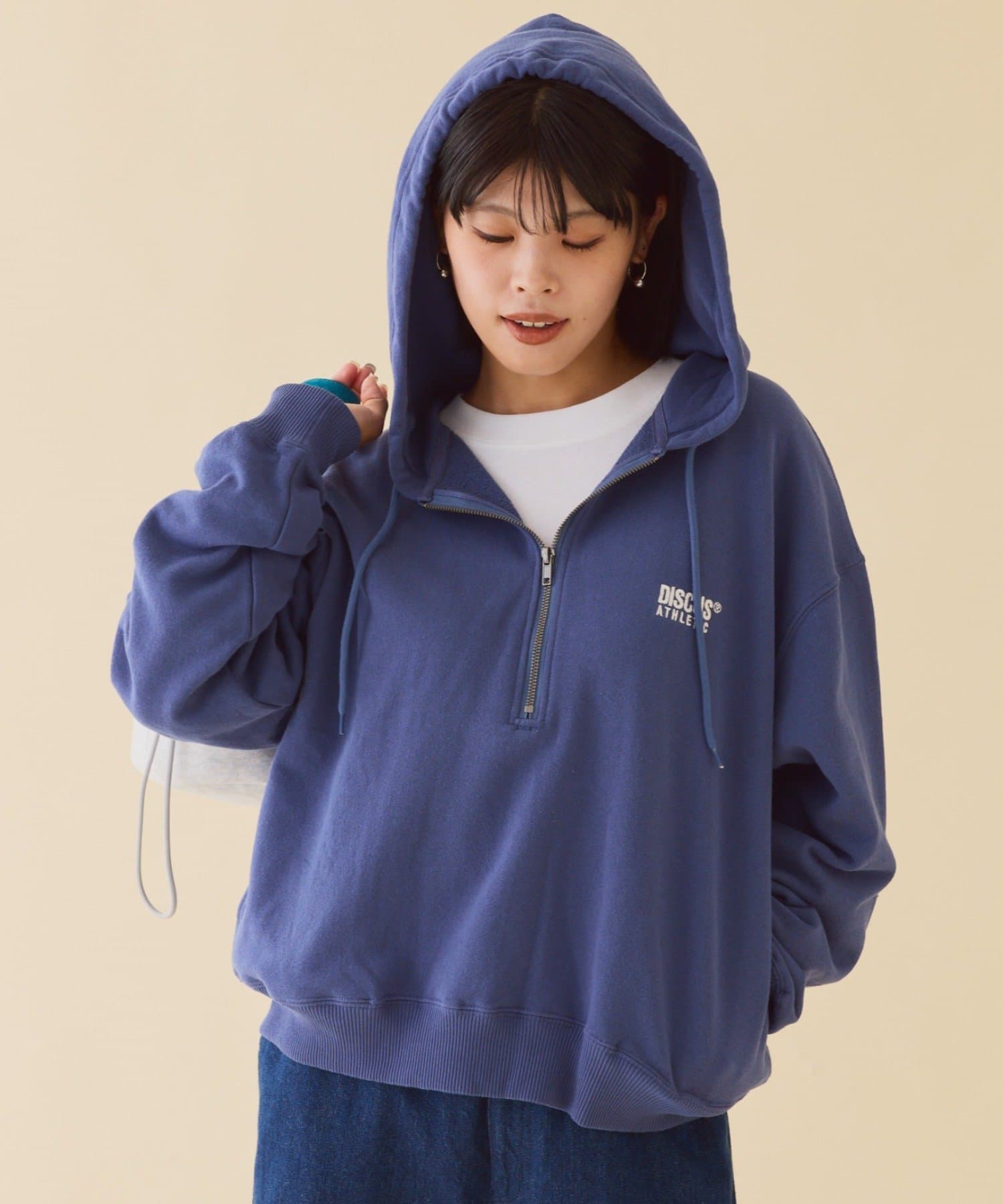 ハーフジップにすることで、こなれ感をプラスしてくれます!