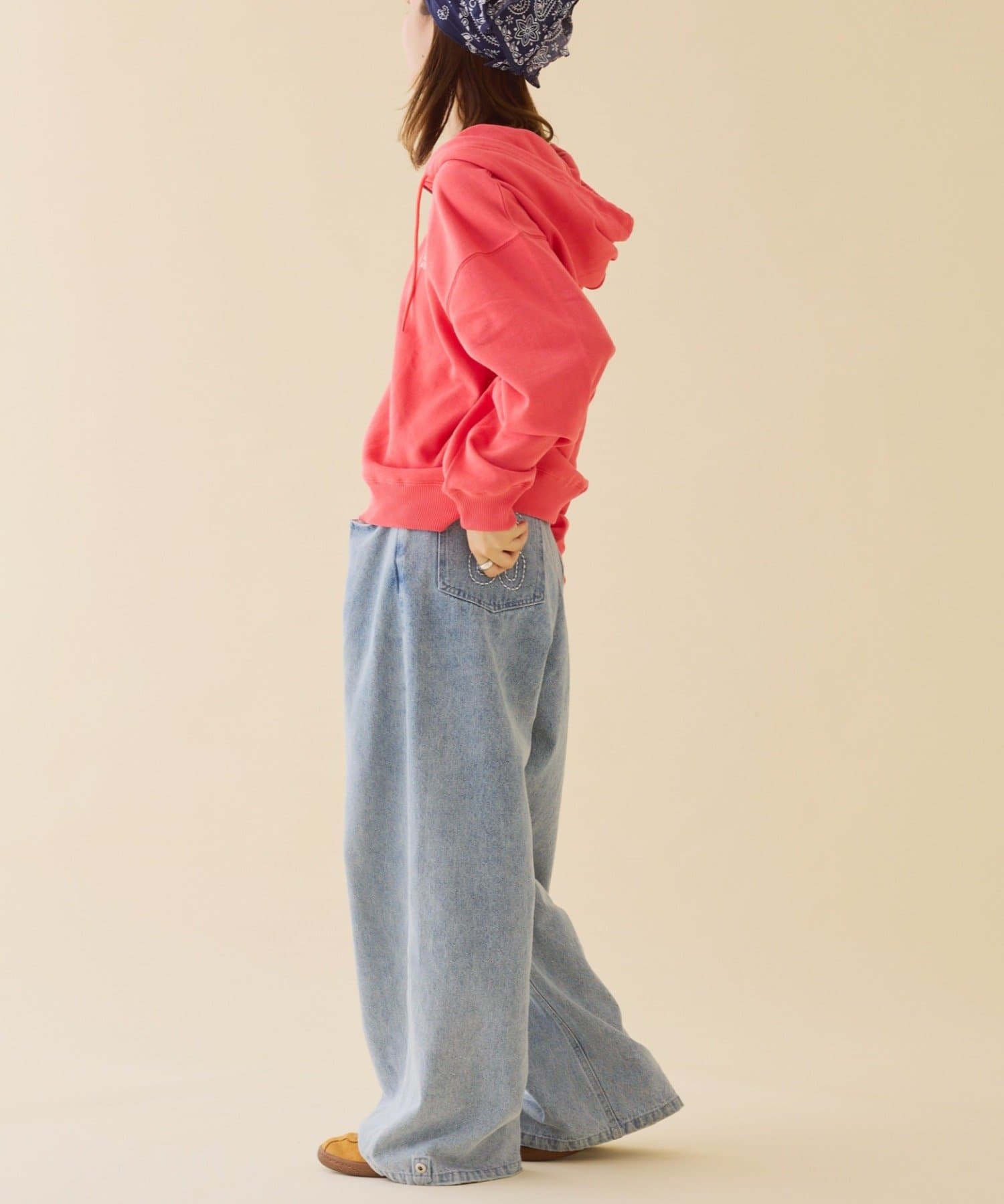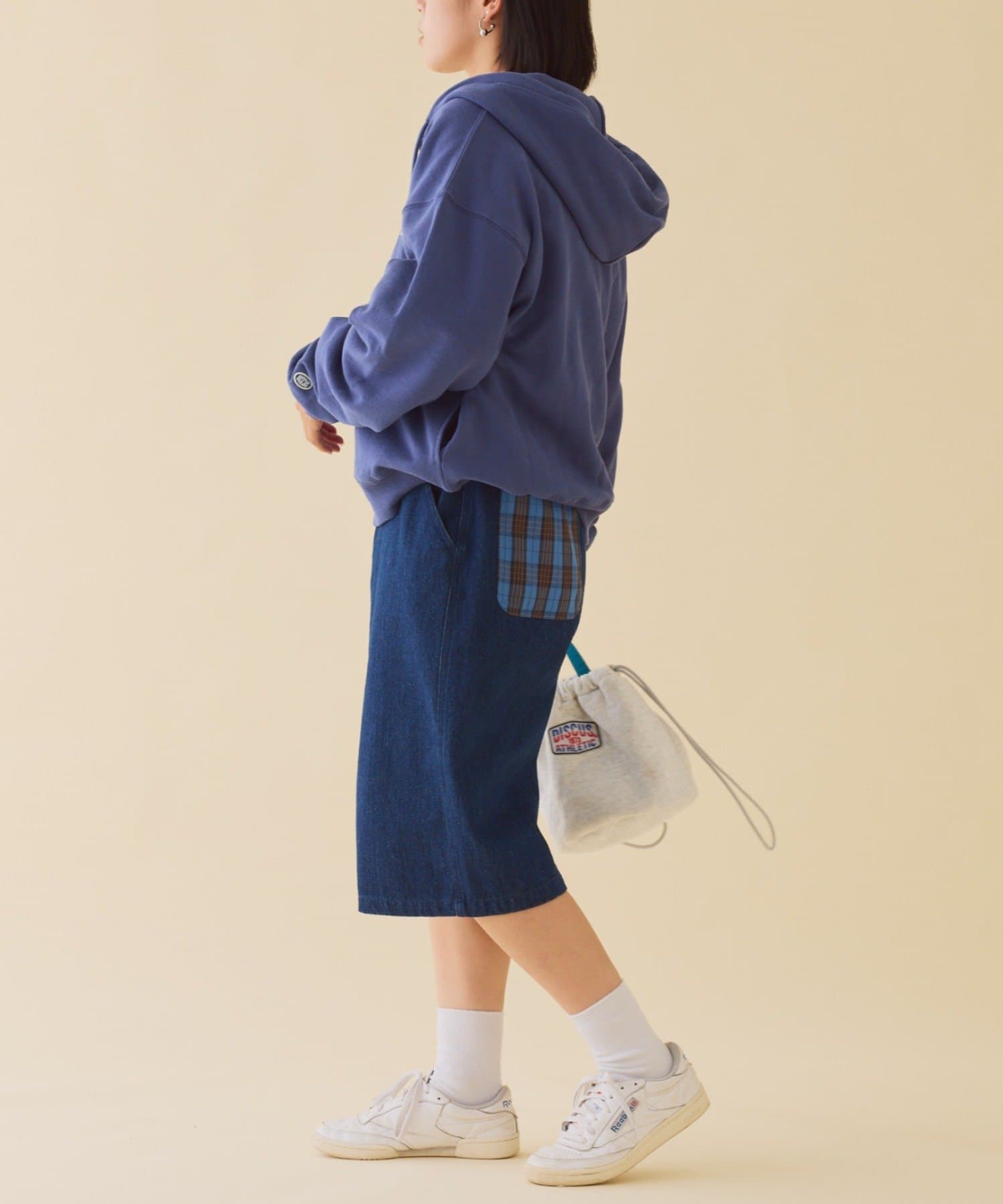胸元に施した刺繍ロゴがコーデのアクセントにぴったり。
