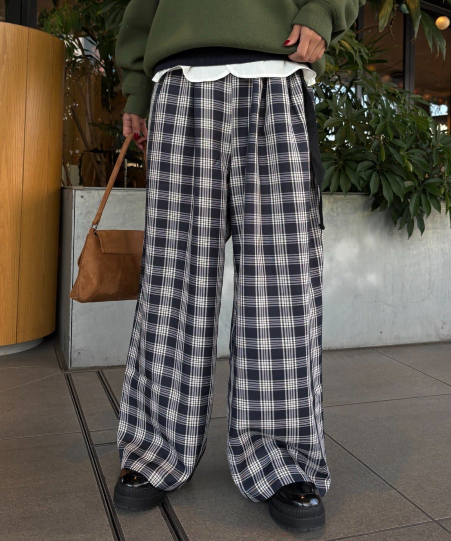 立体的なバルーンシルエットが魅力のワイドパンツ。
