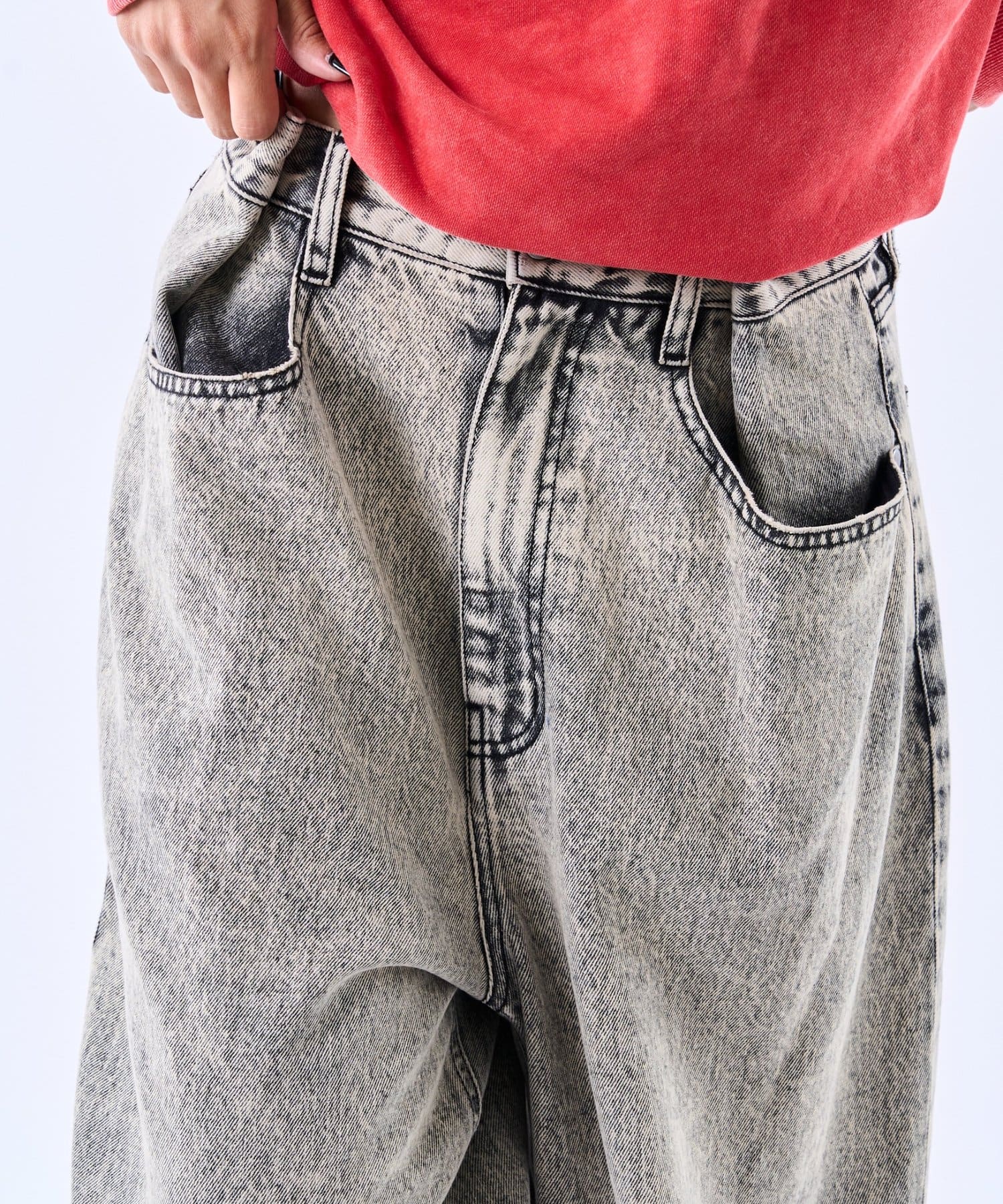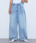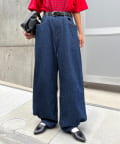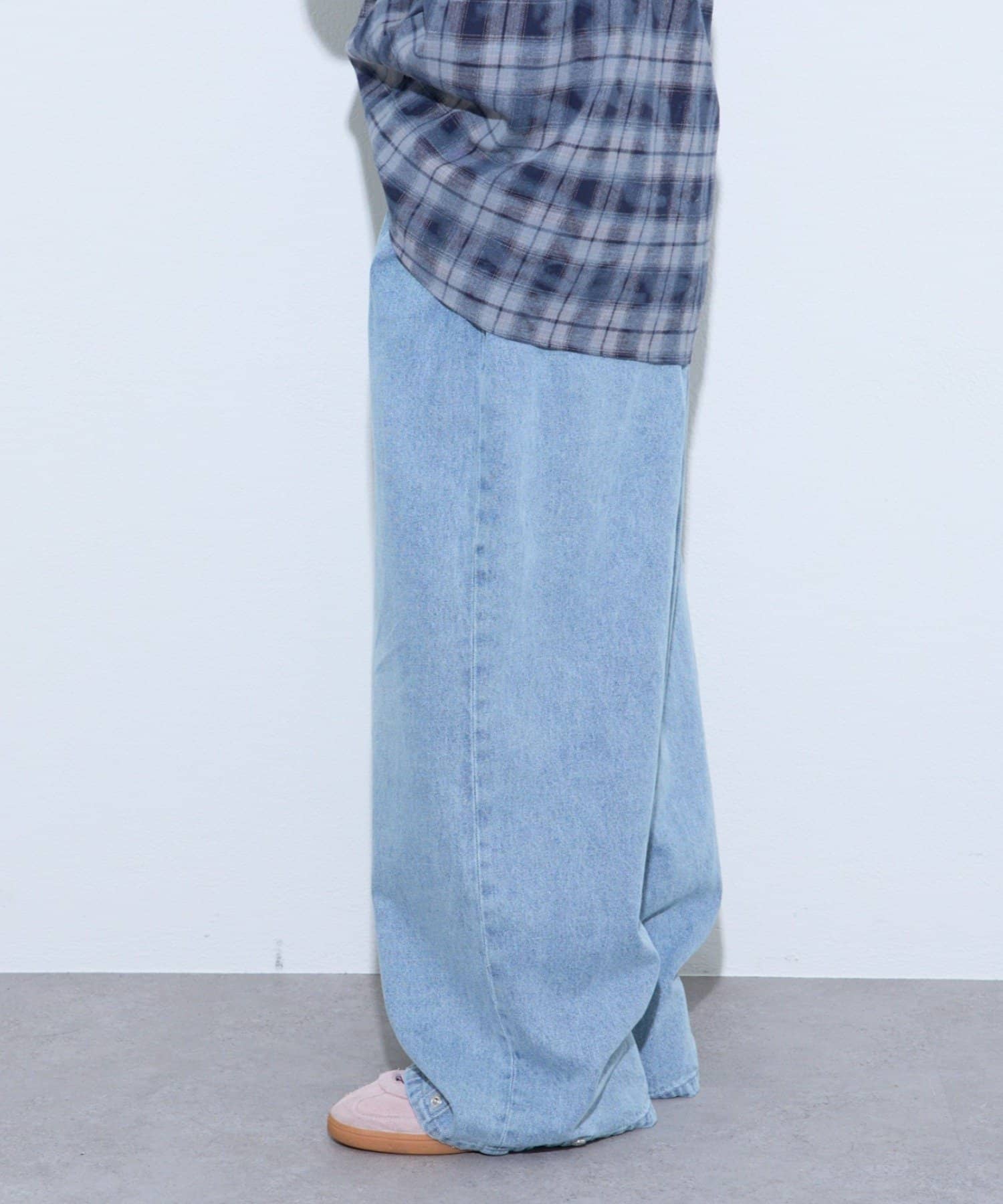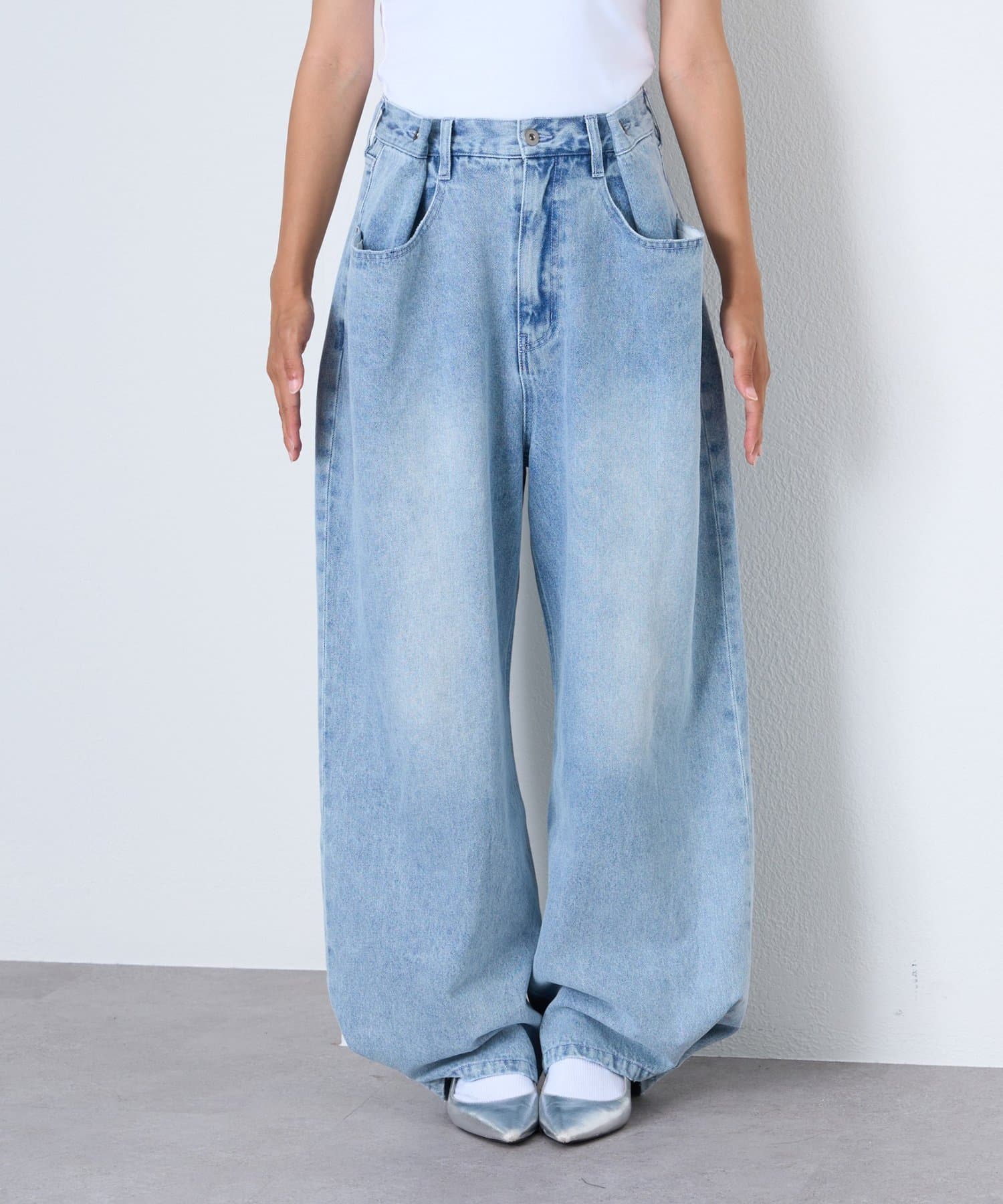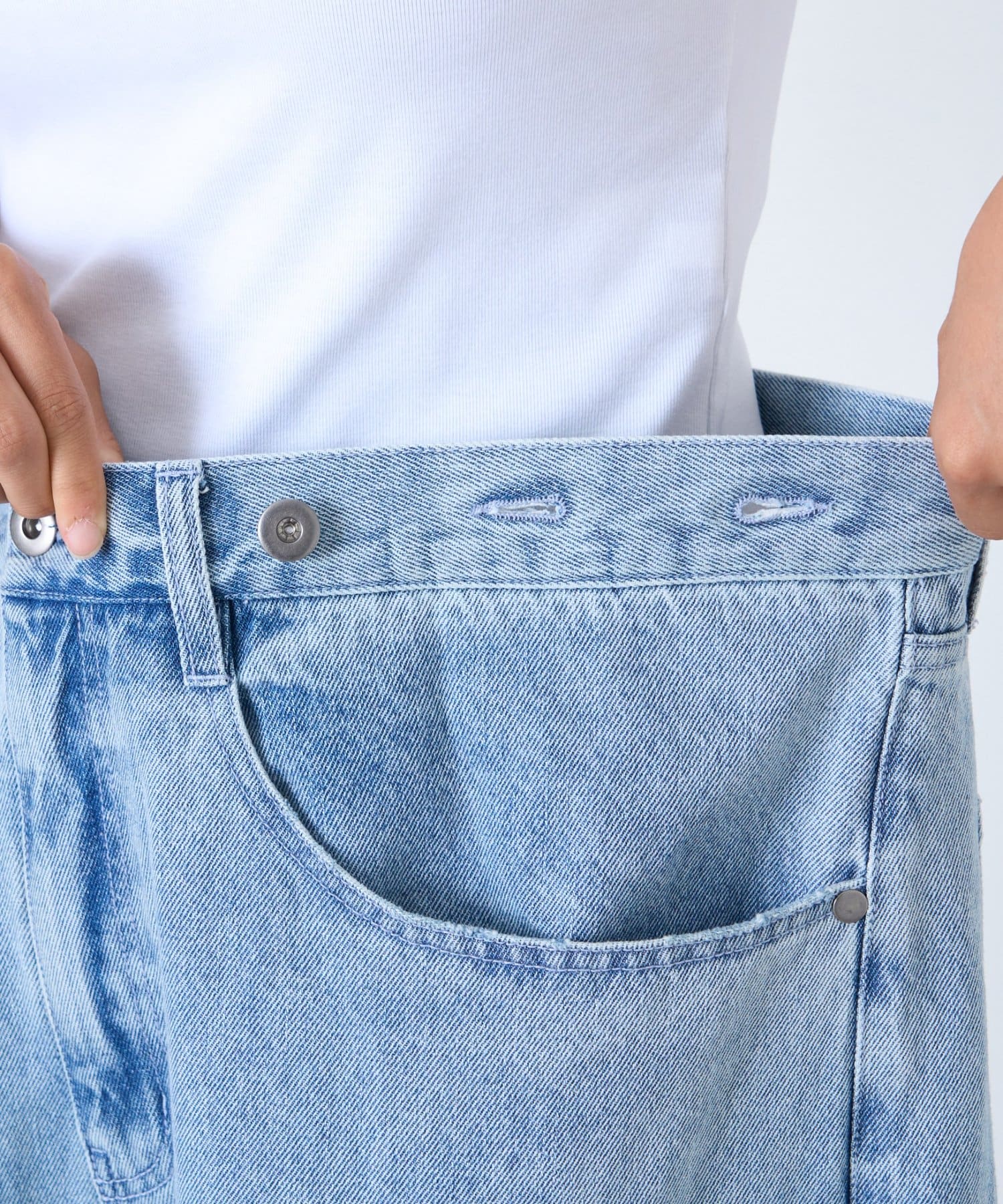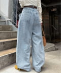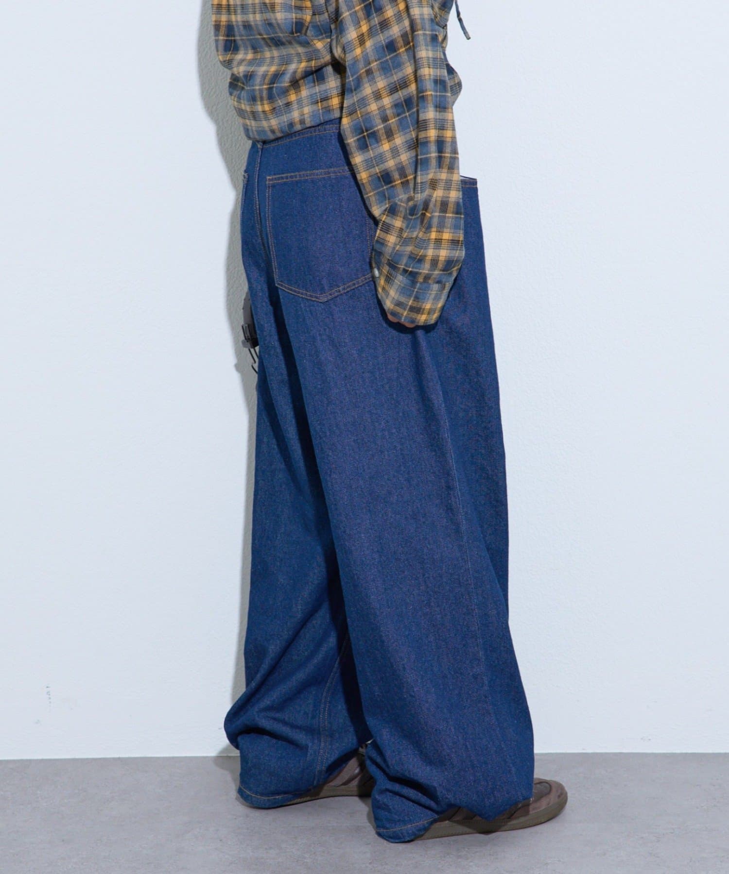 【2WAYシルエット調節可能】【UNISEX】オーバーダイウエストタックデザインデニム