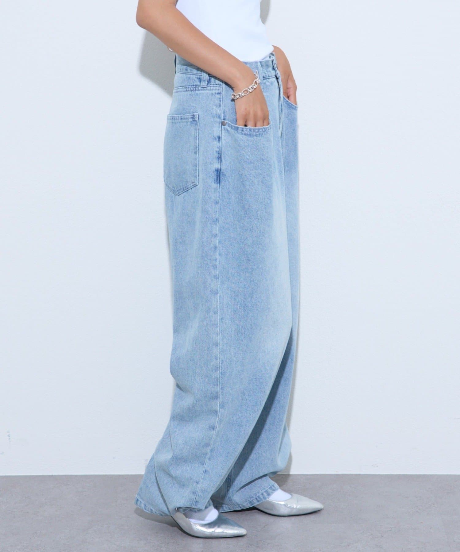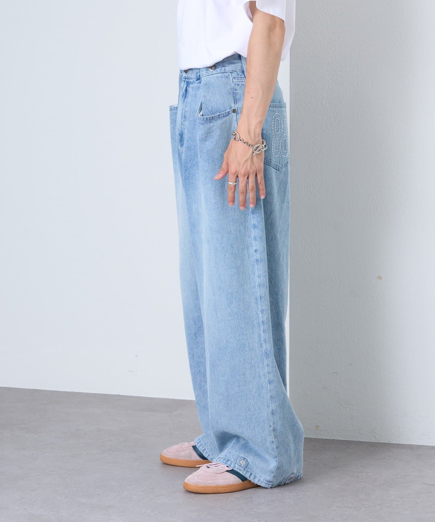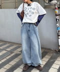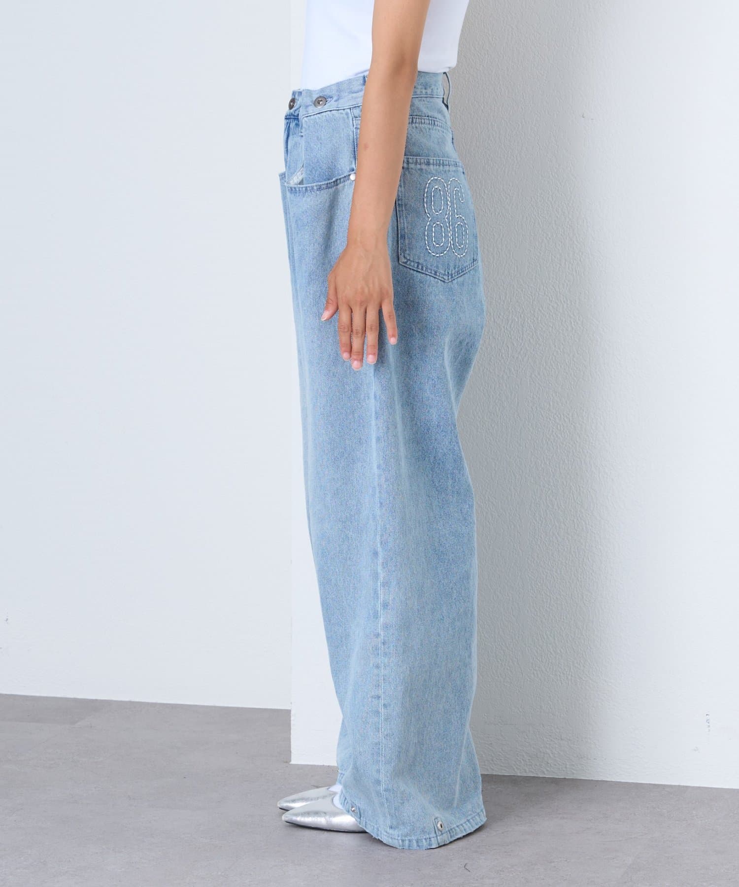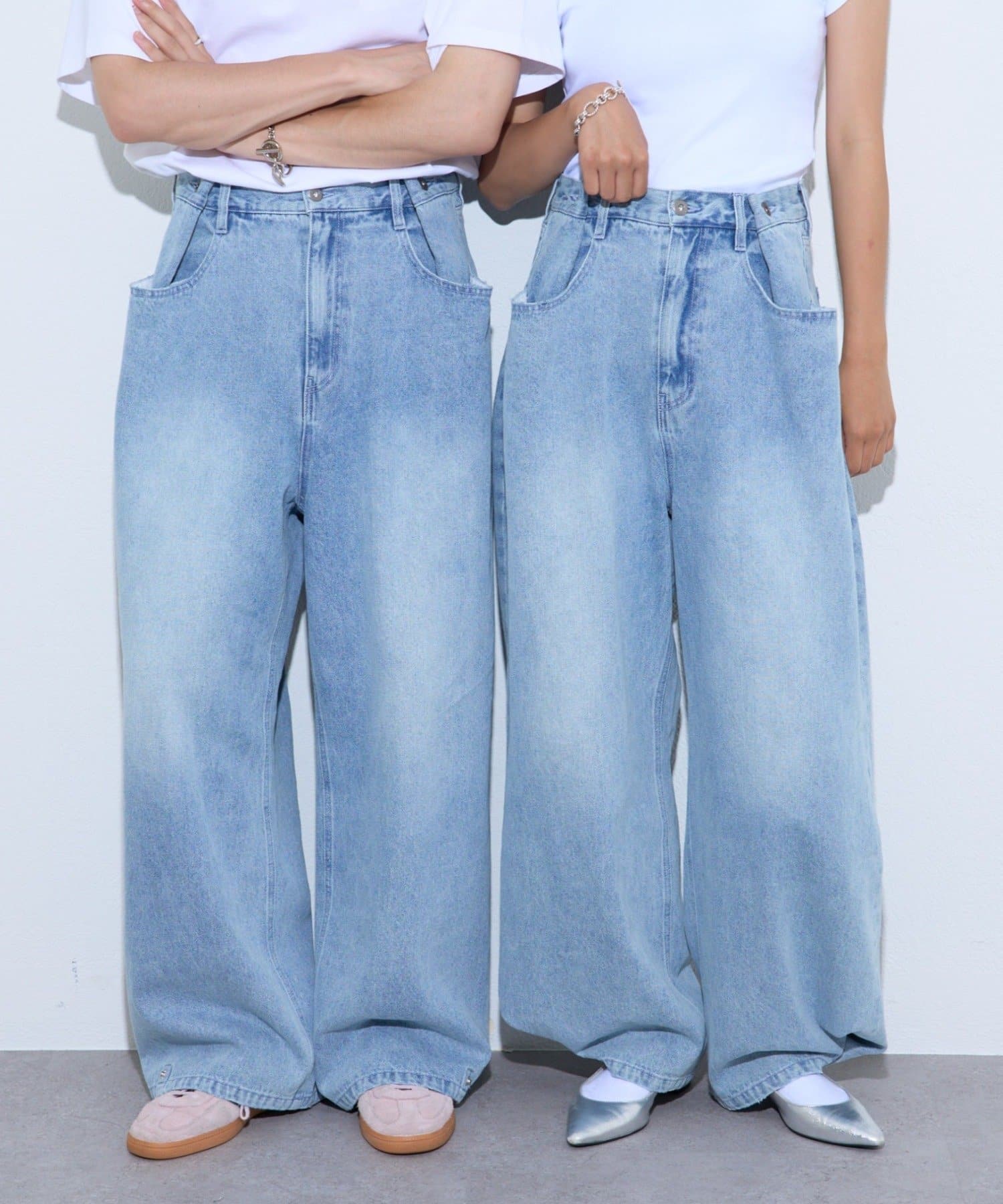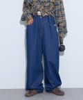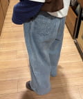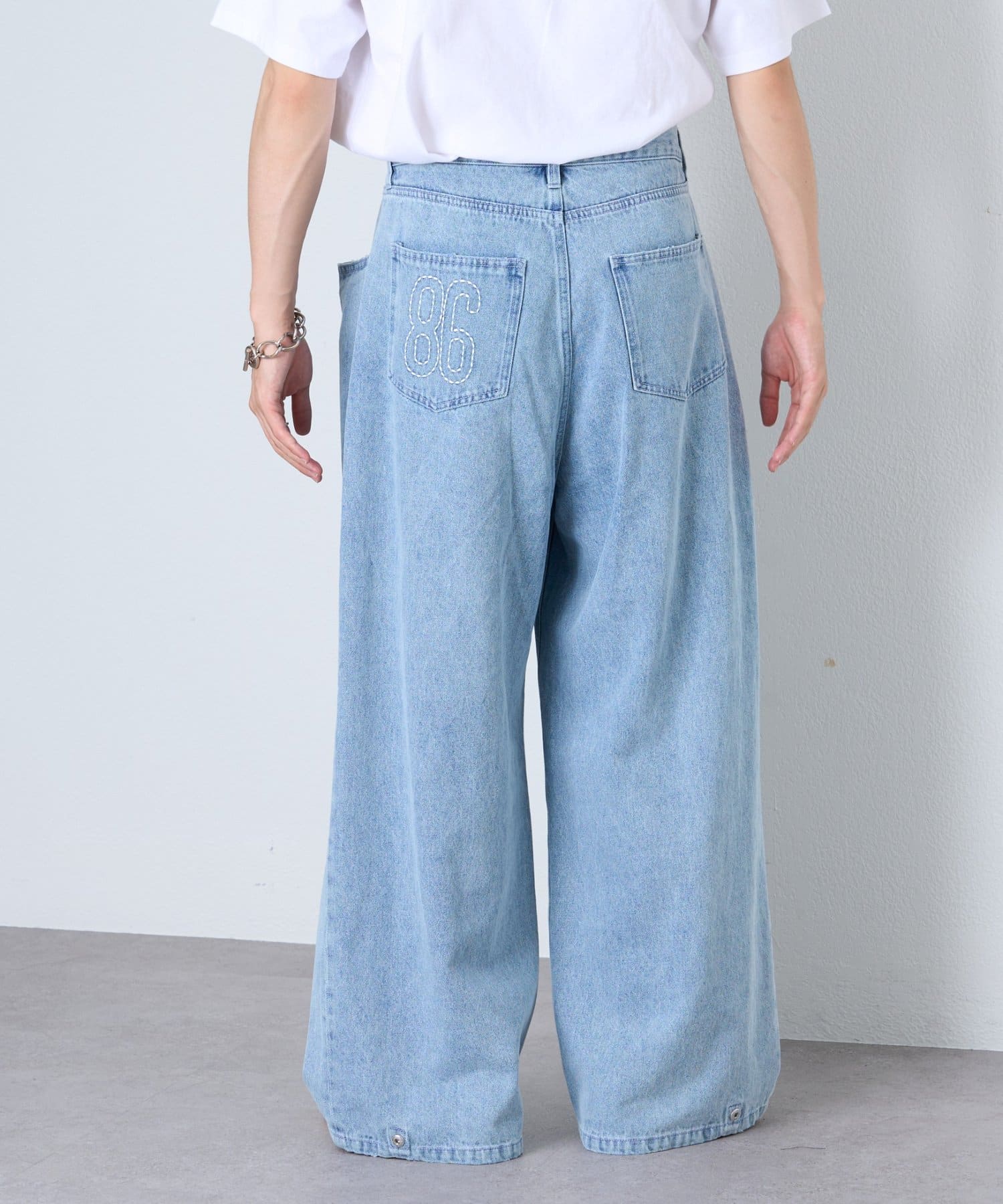 【2WAYシルエット調節可能】【UNISEX】オーバーダイウエストタックデザインデニム