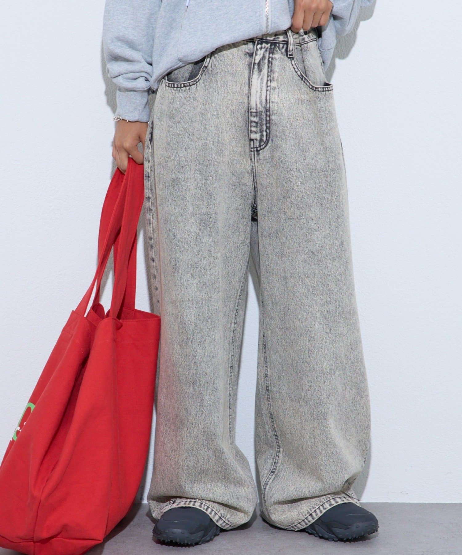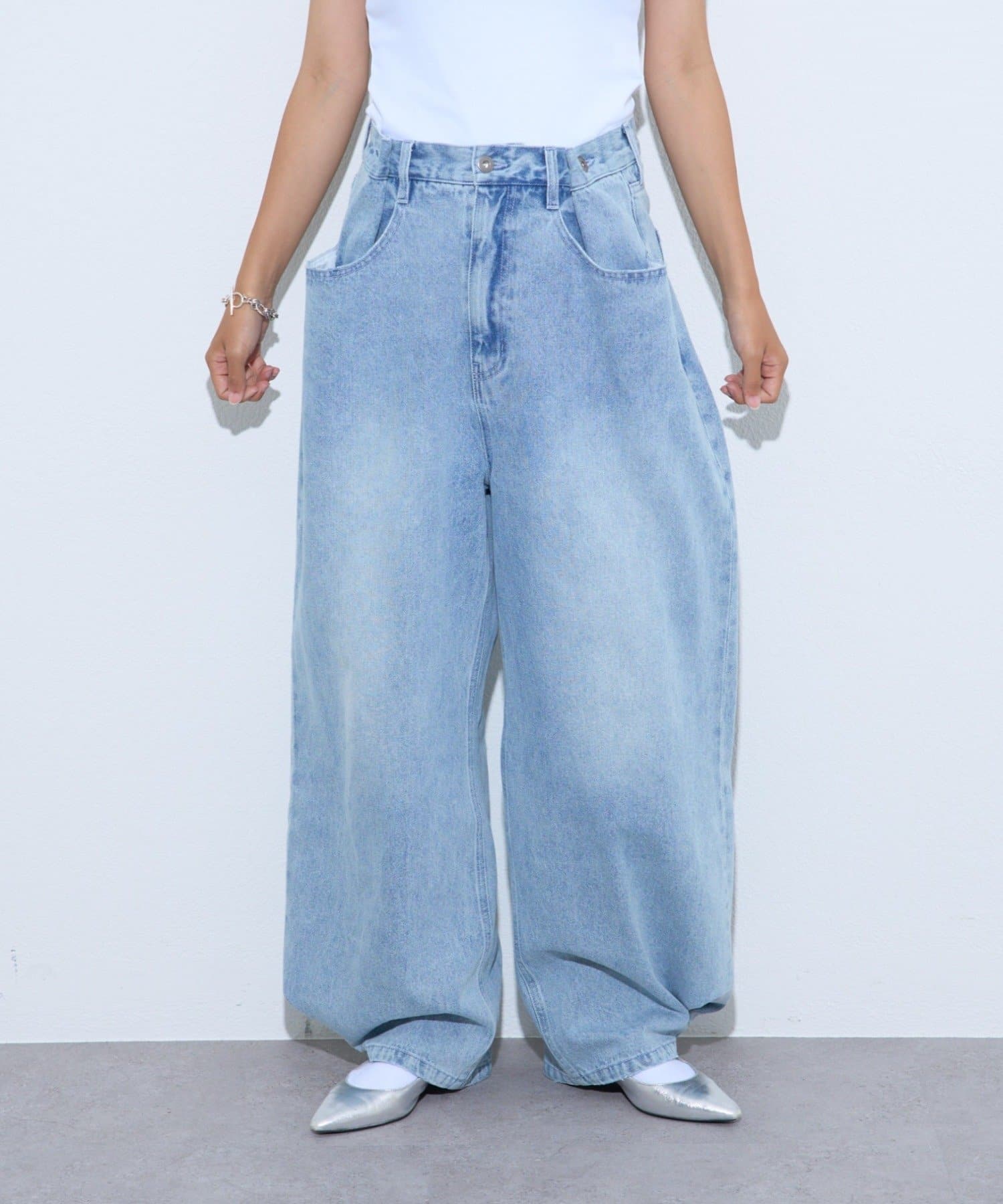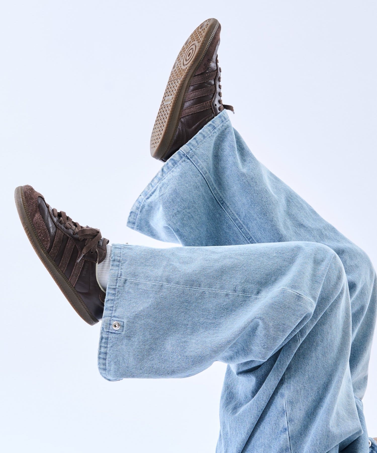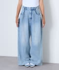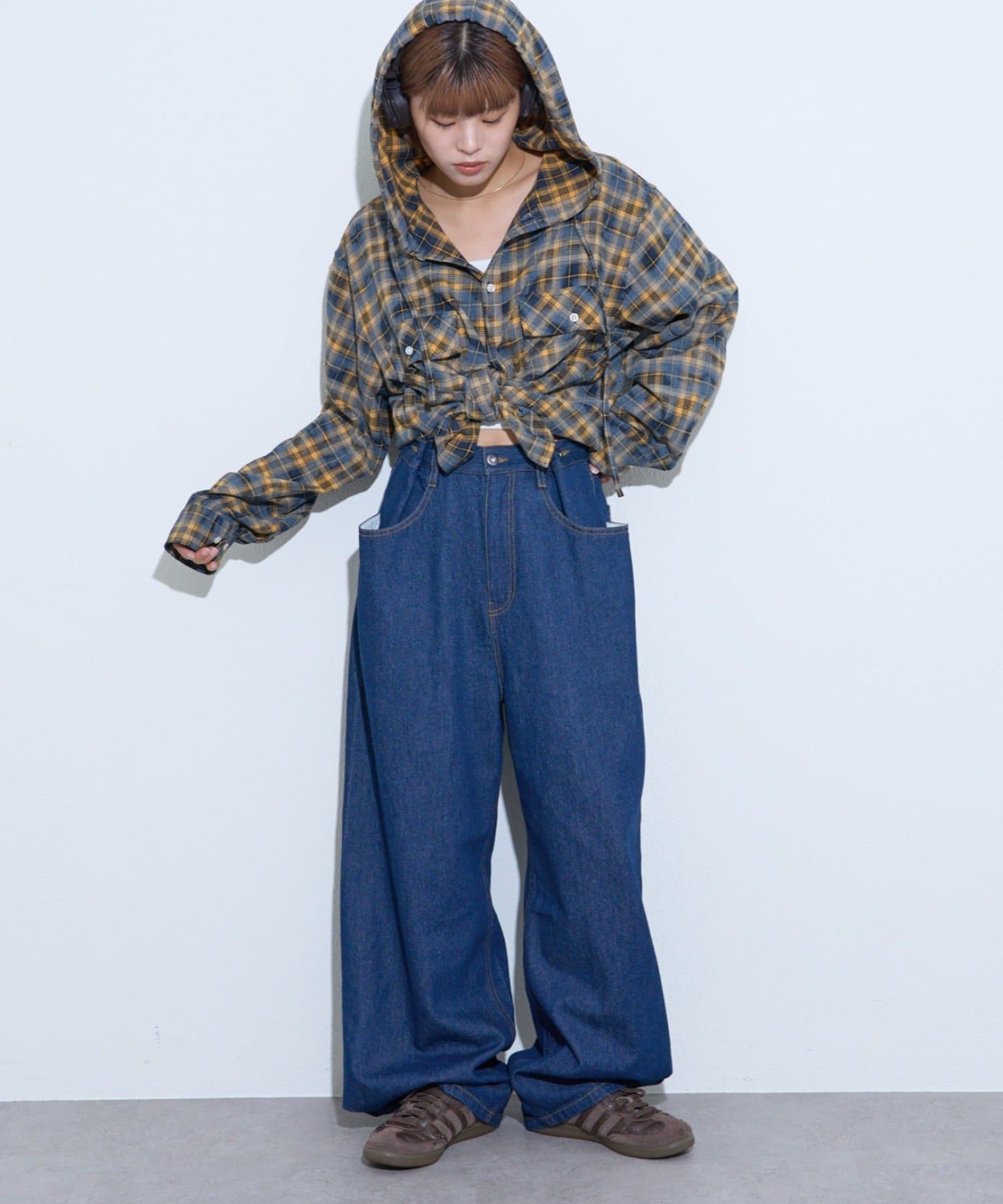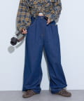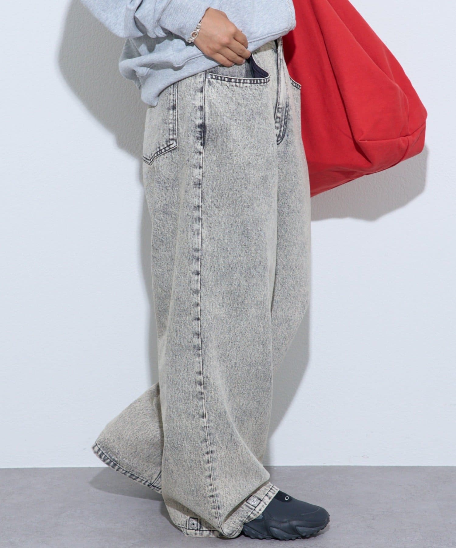 【2WAYシルエット調節可能】【UNISEX】オーバーダイウエストタックデザインデニム